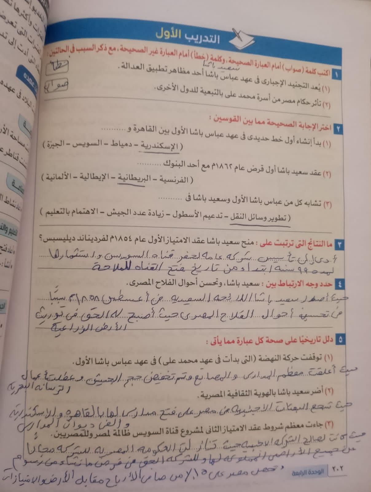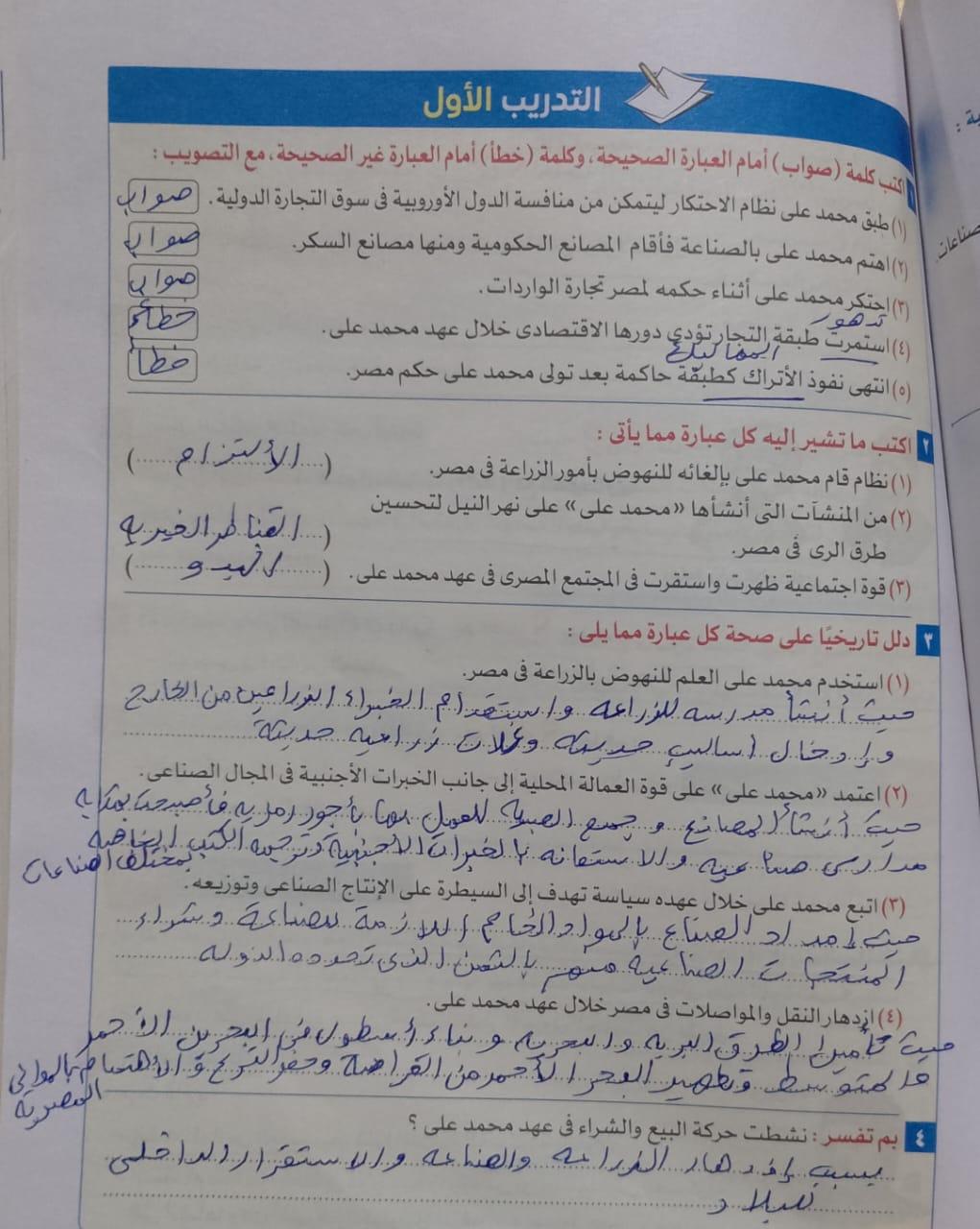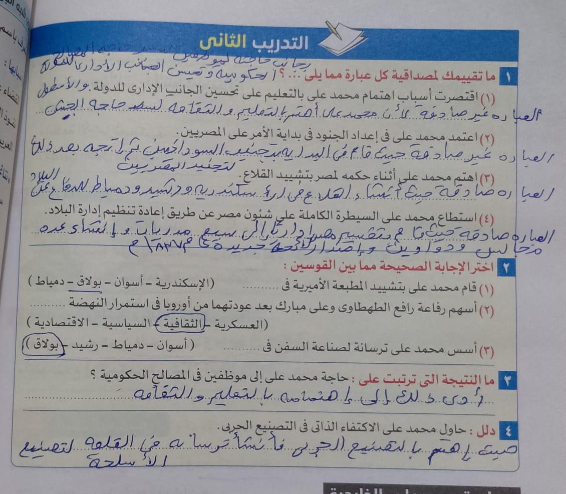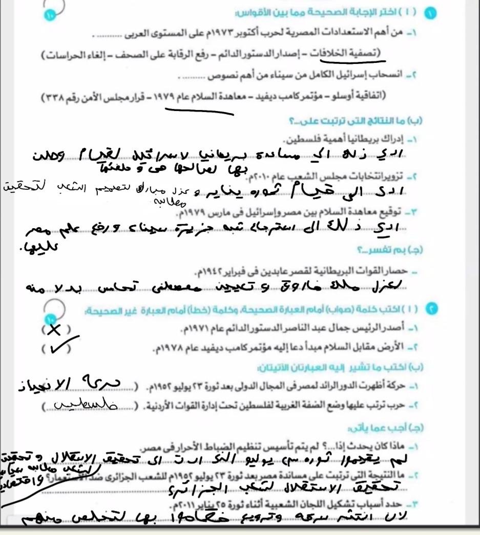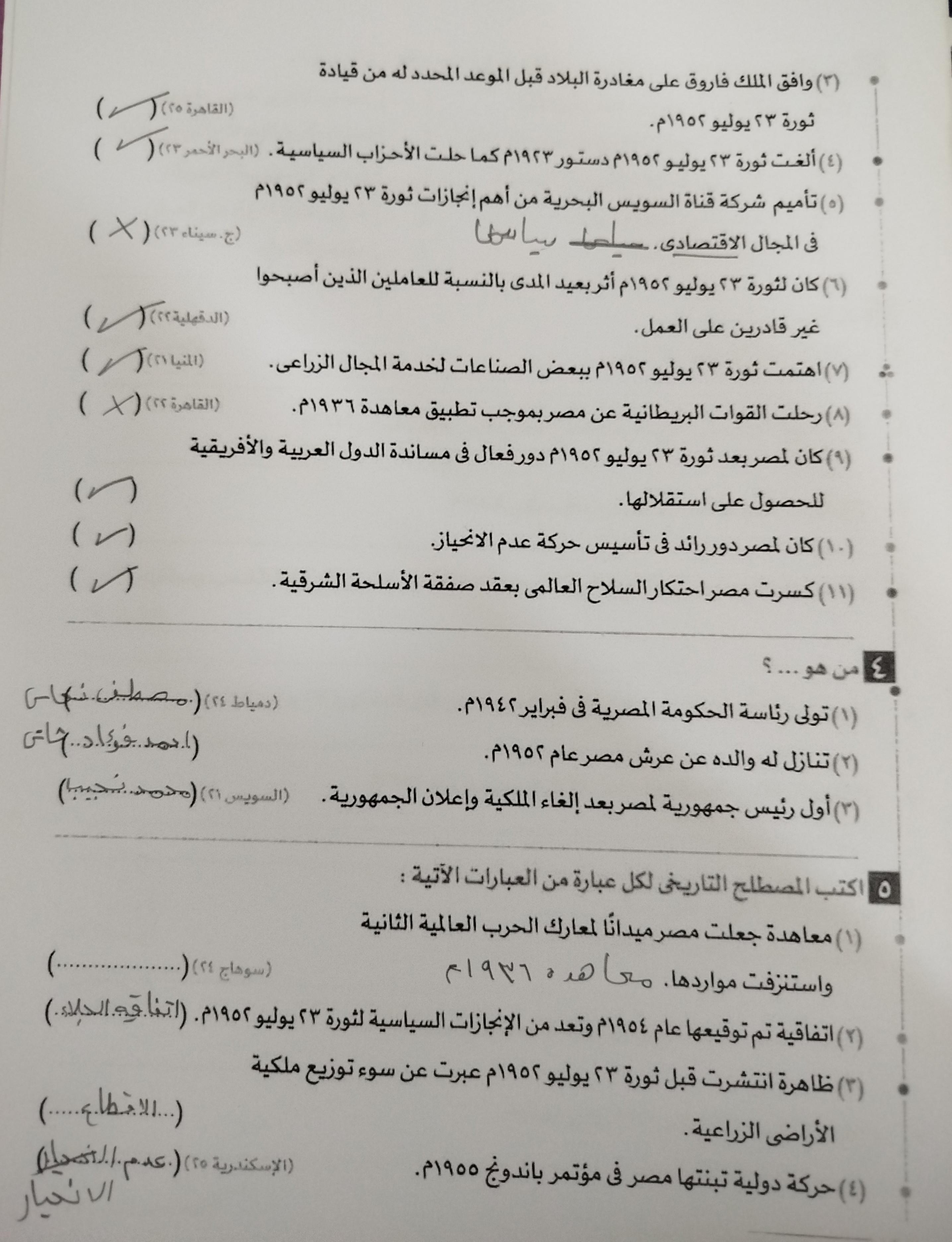 اخدنا اليوم الجزء الاول من ثوره يوليو وحلينا تدريب 1