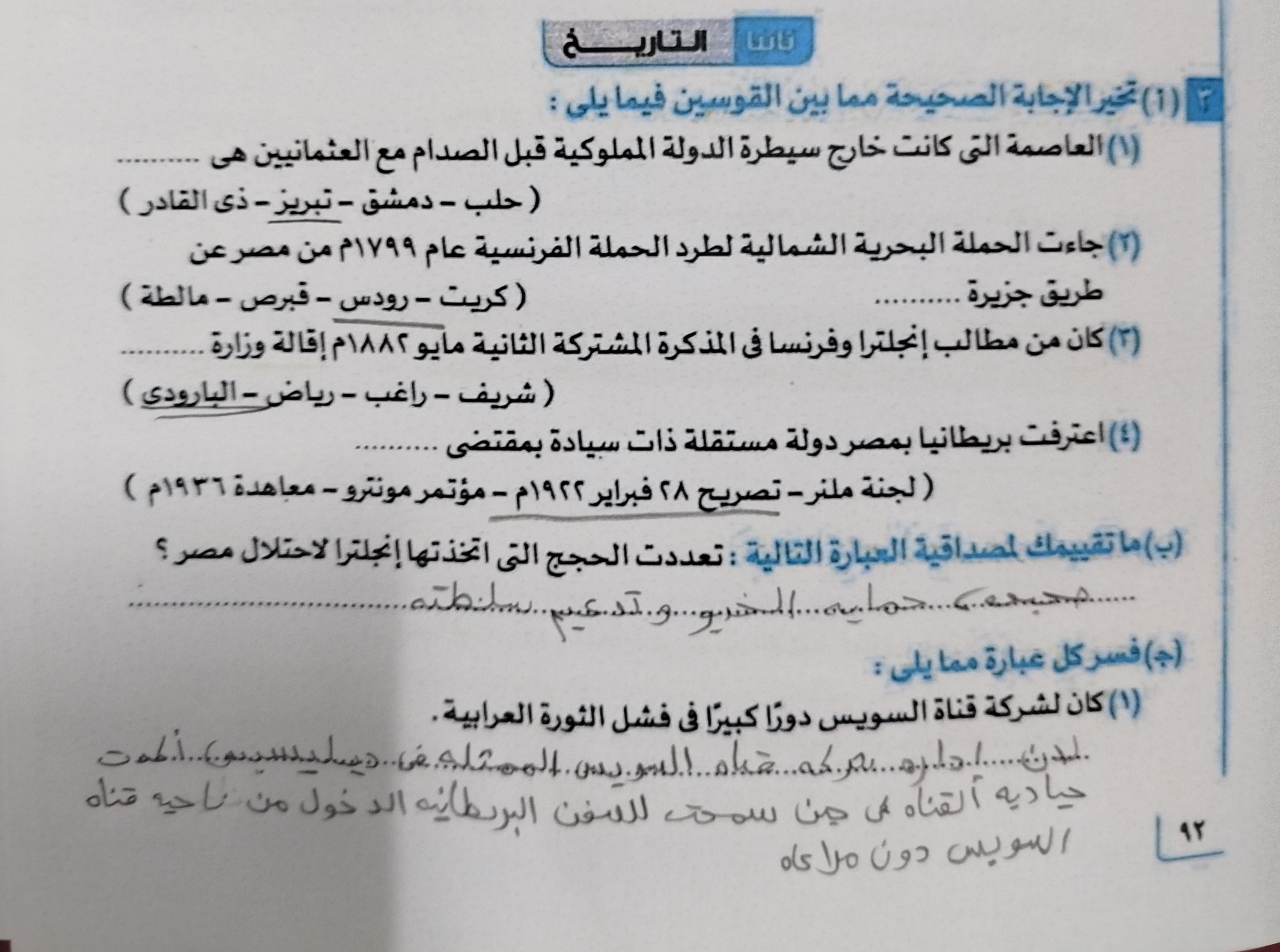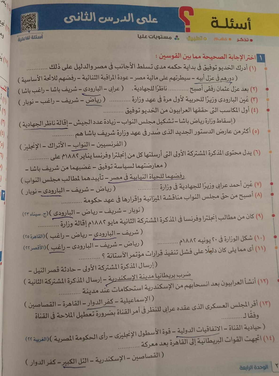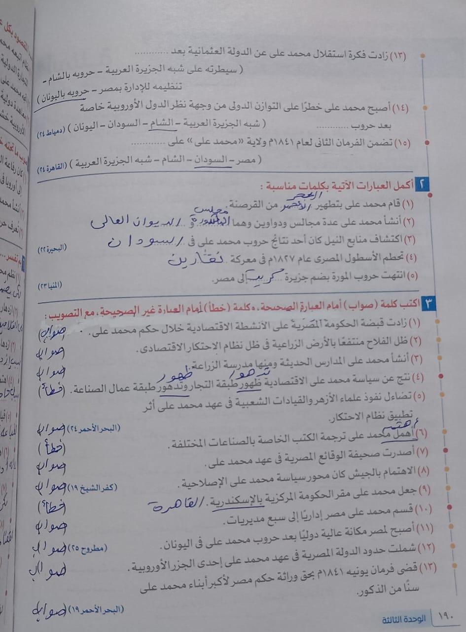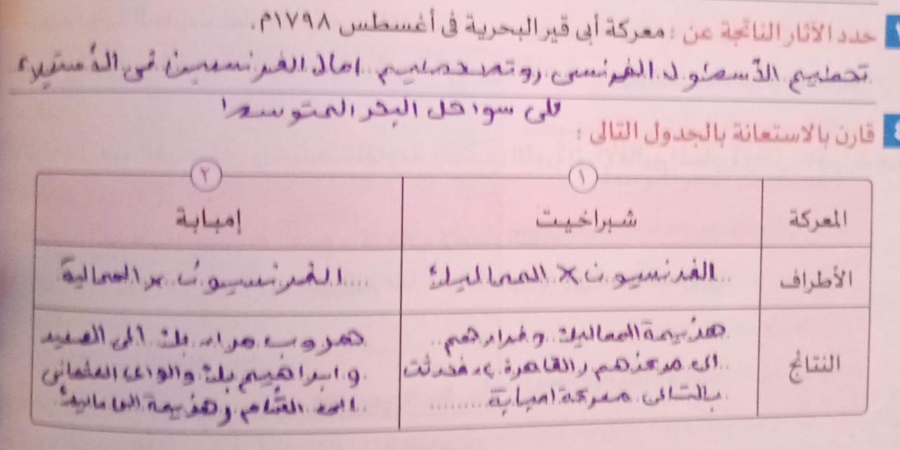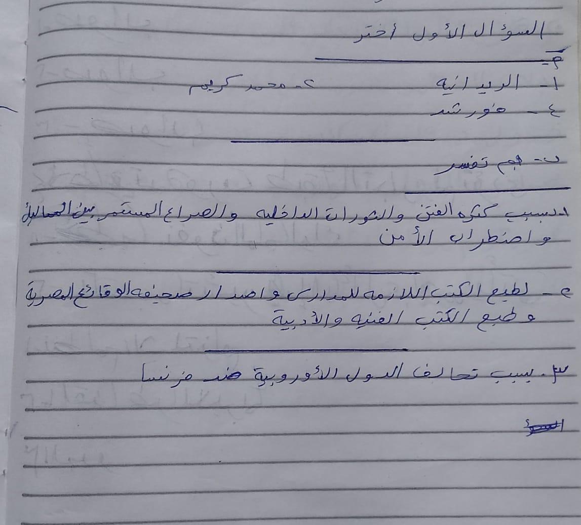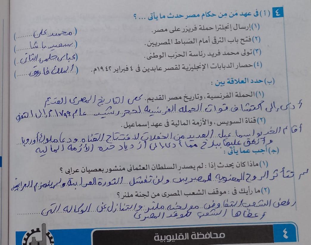 اخدنا اليوم الجزء الاول من ثوره يوليو وحلينا تدريب 1
