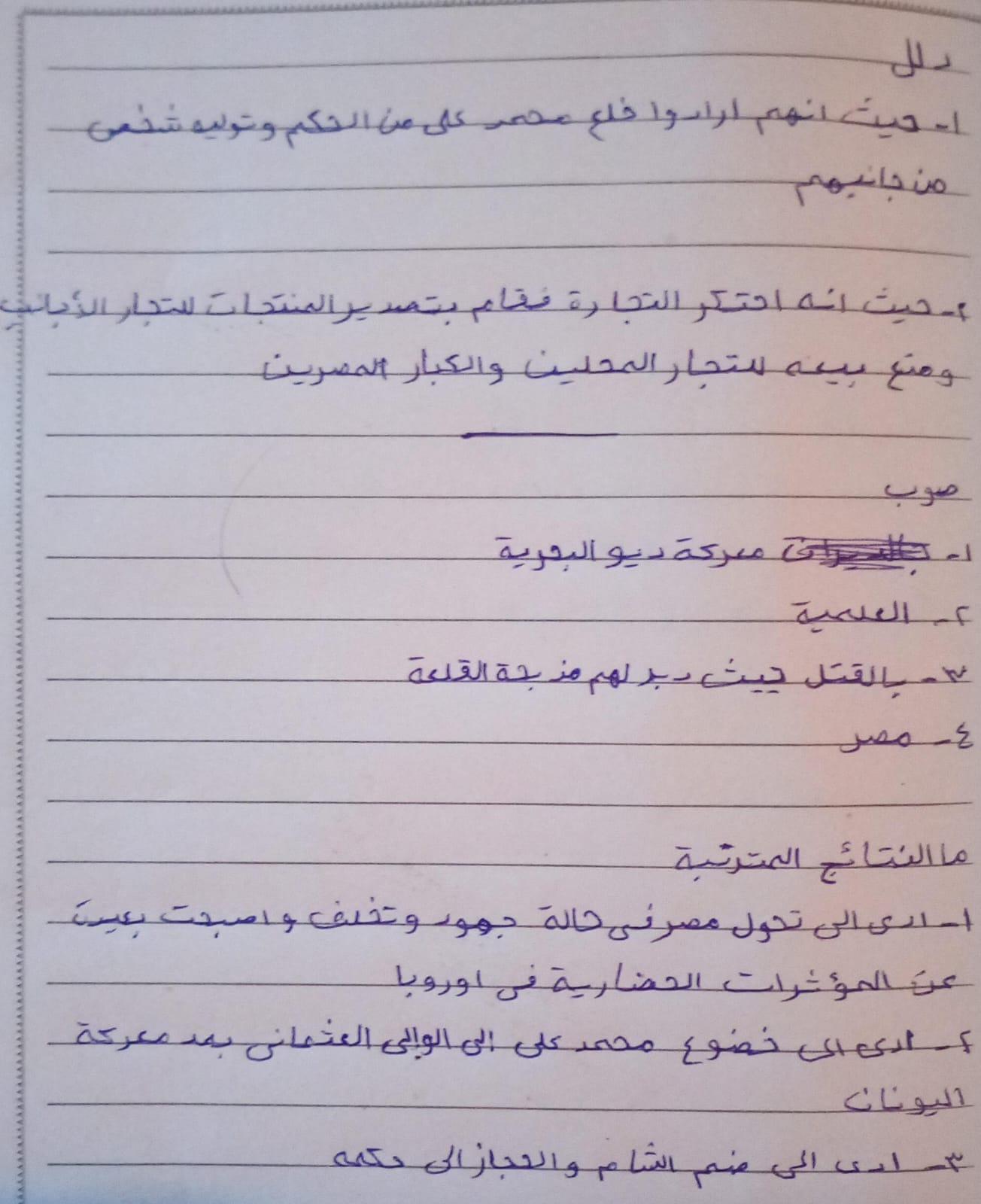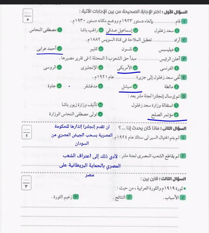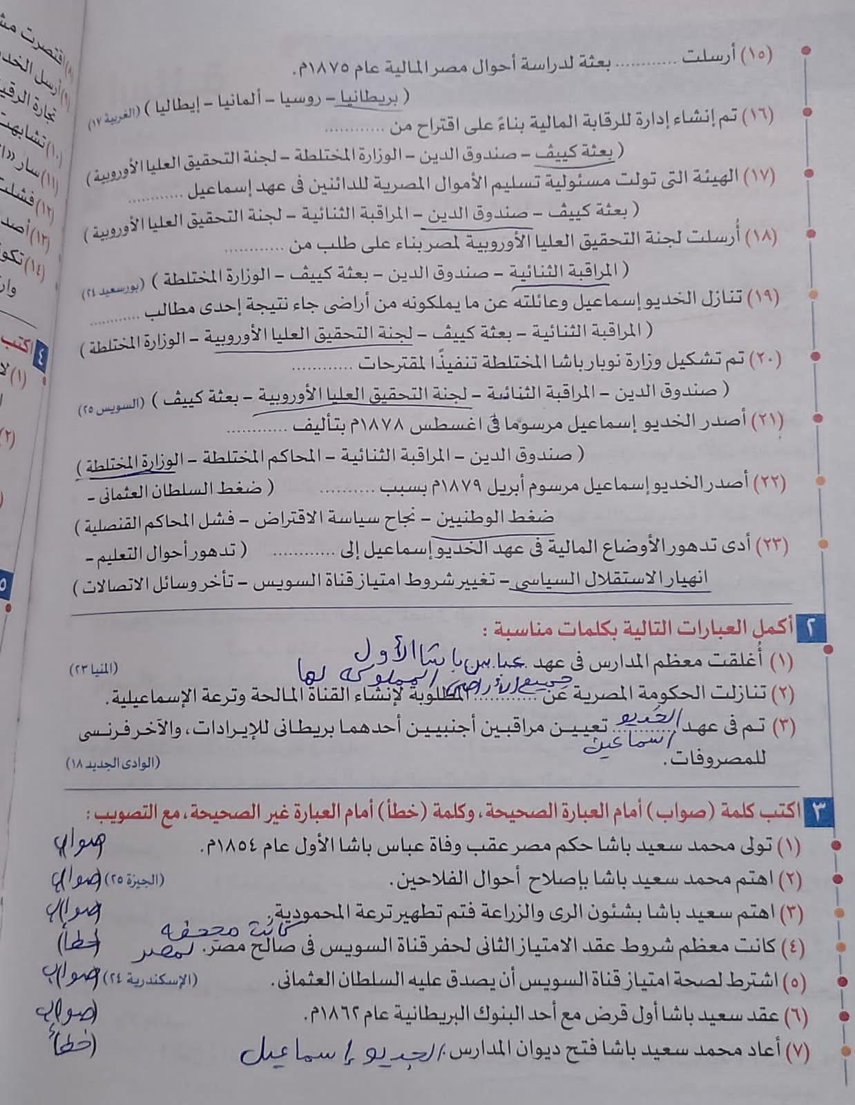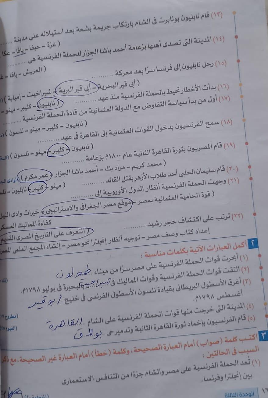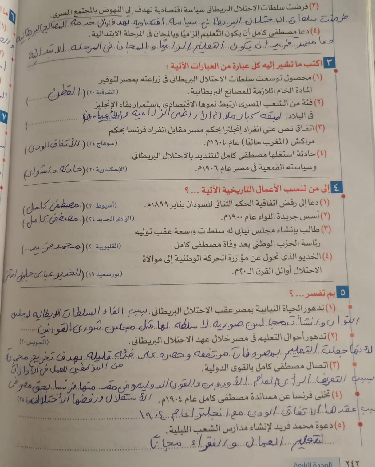 اخدنا اليوم الجزء الاول من ثوره يوليو وحلينا تدريب 1