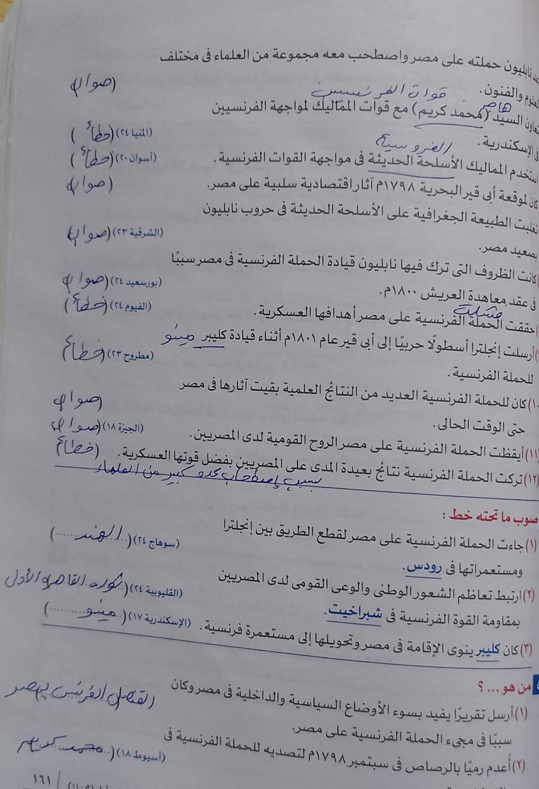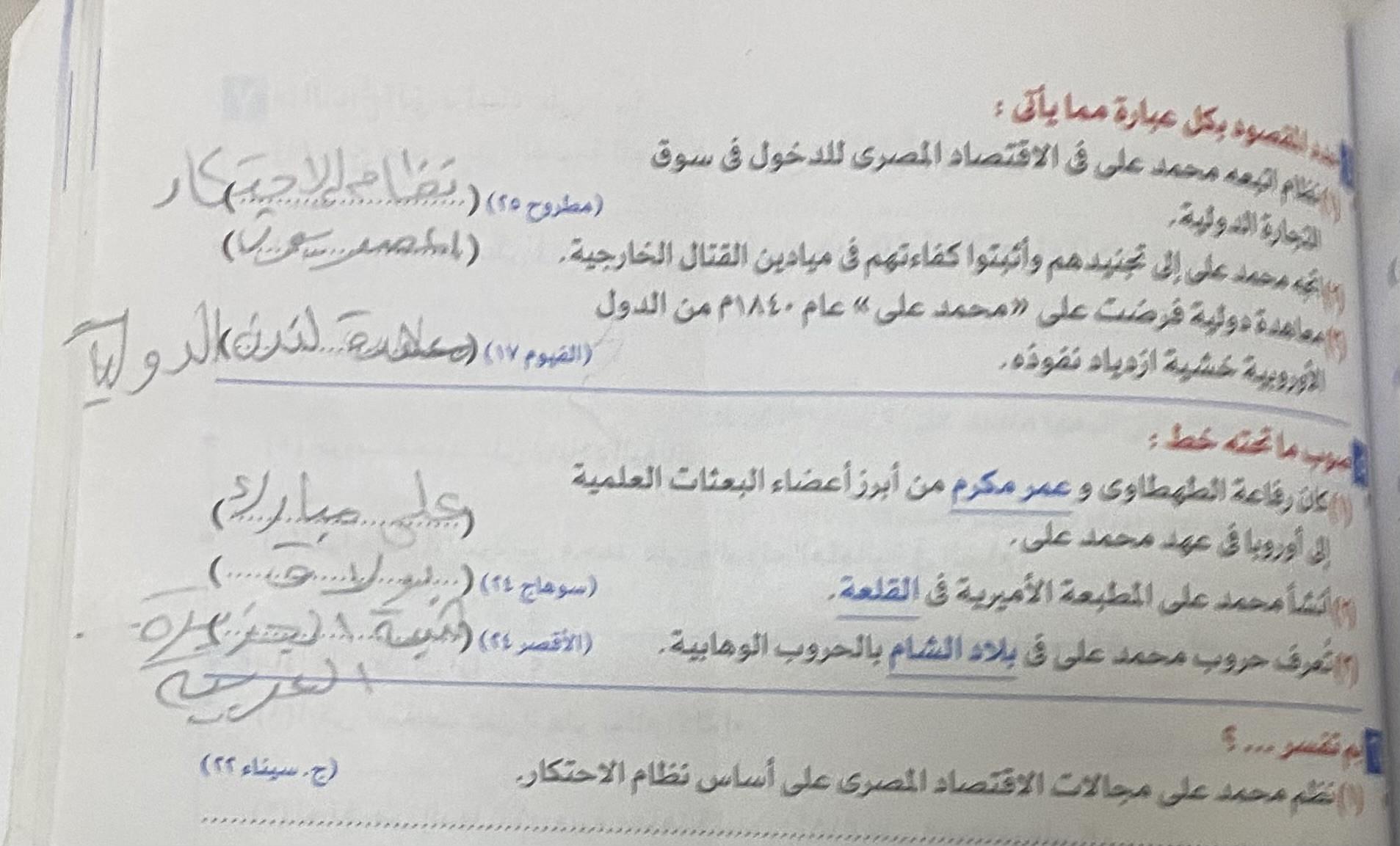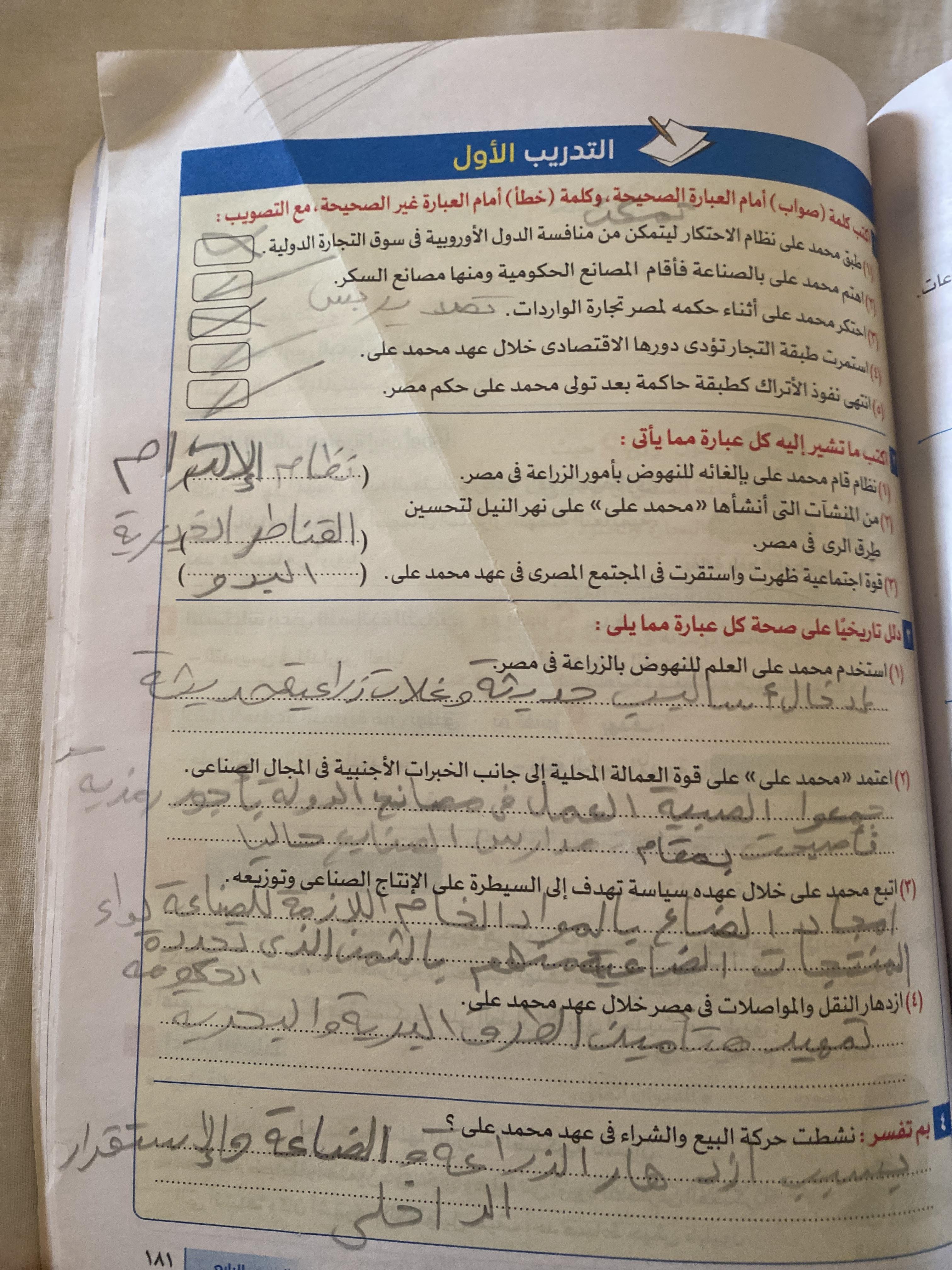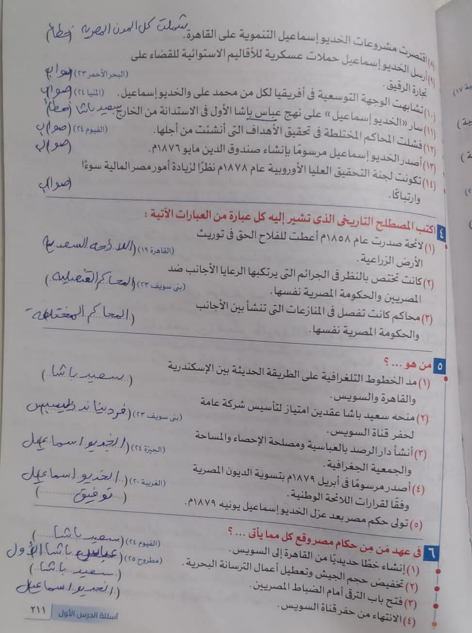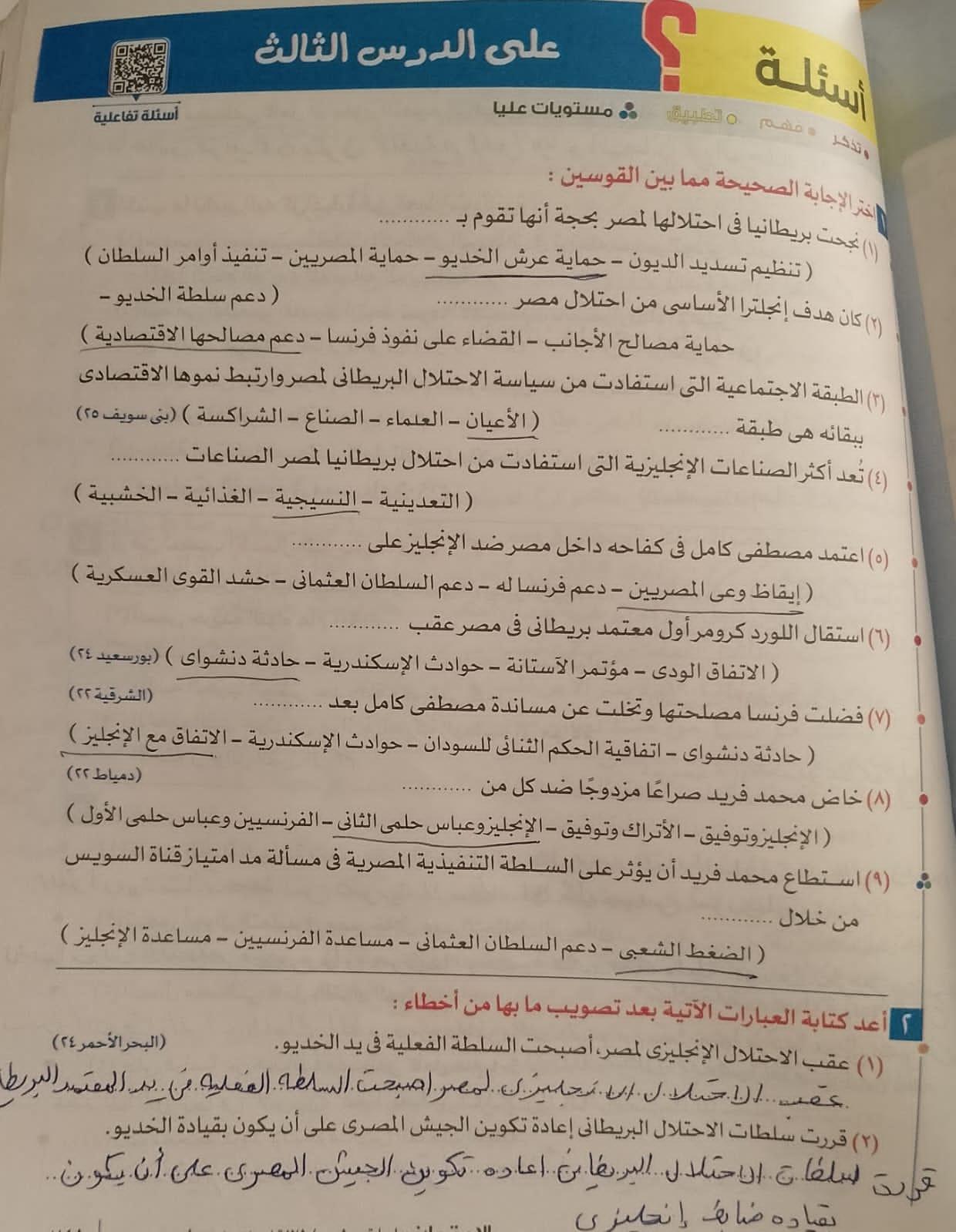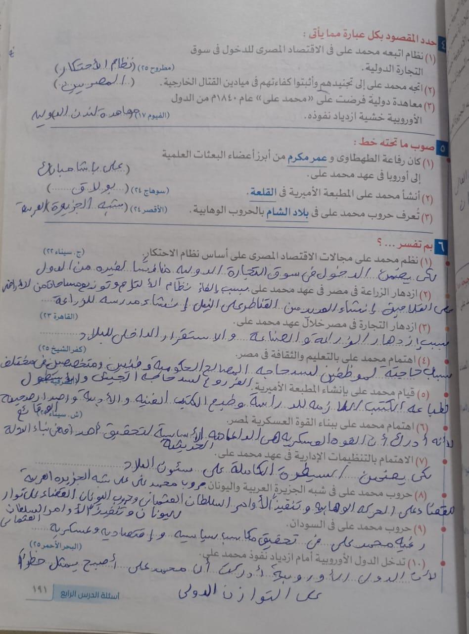 اخدنا اليوم الجزء الاول من ثوره يوليو وحلينا تدريب 1
