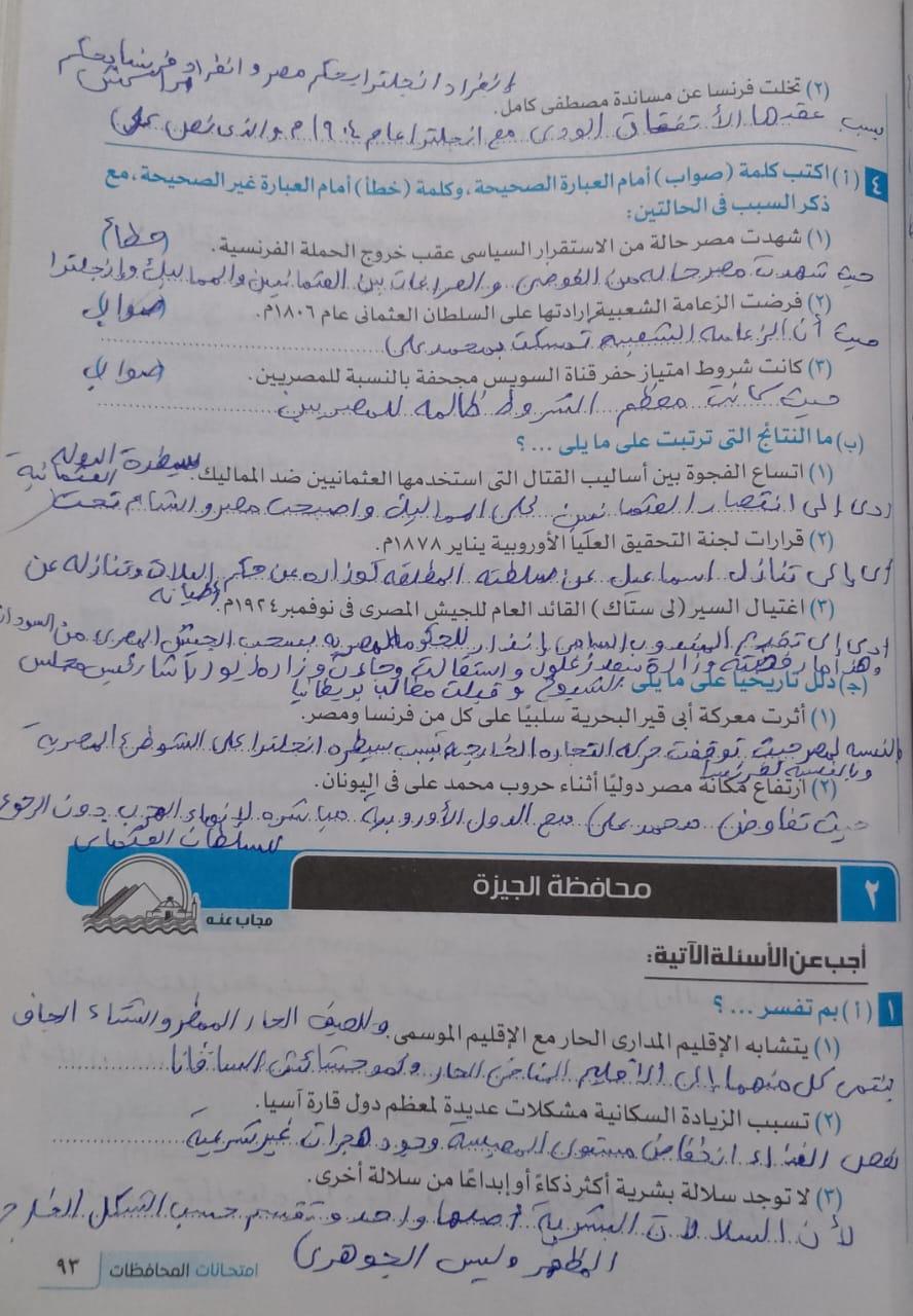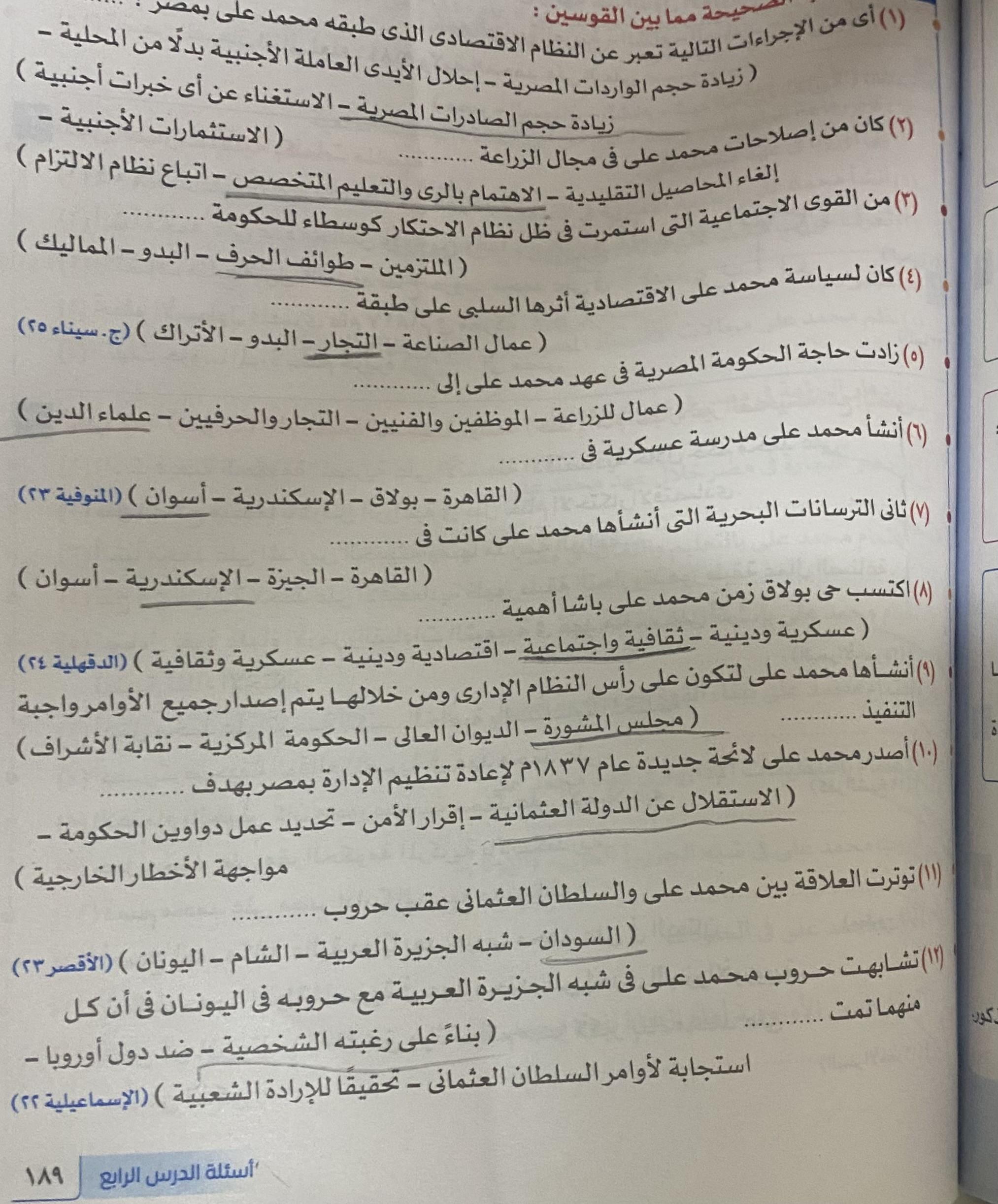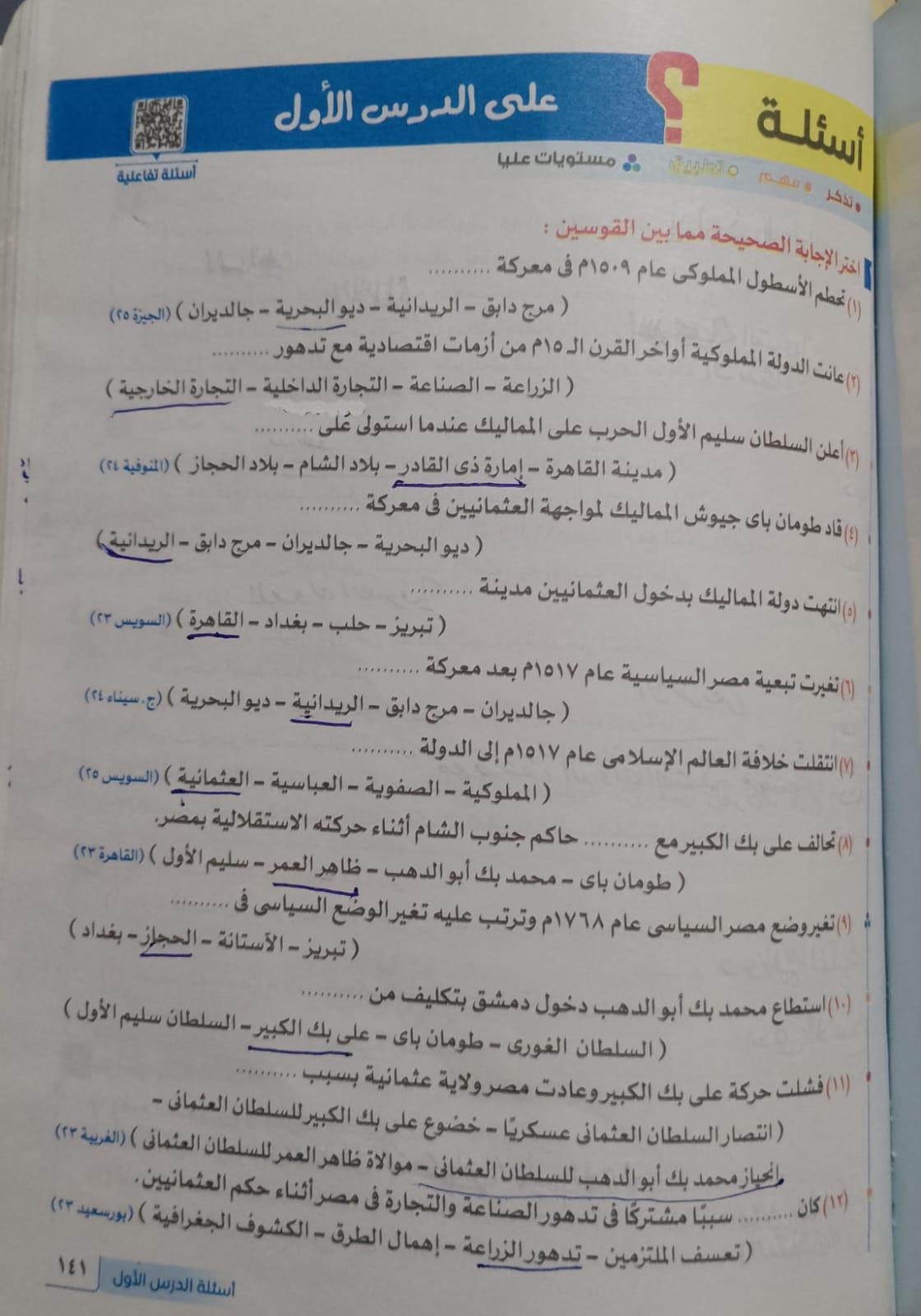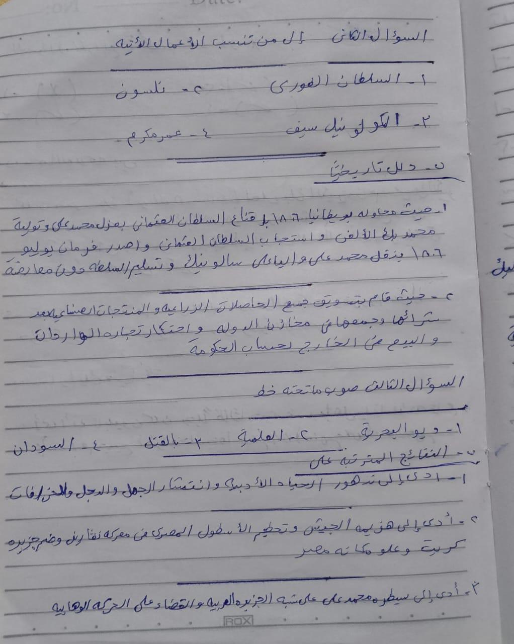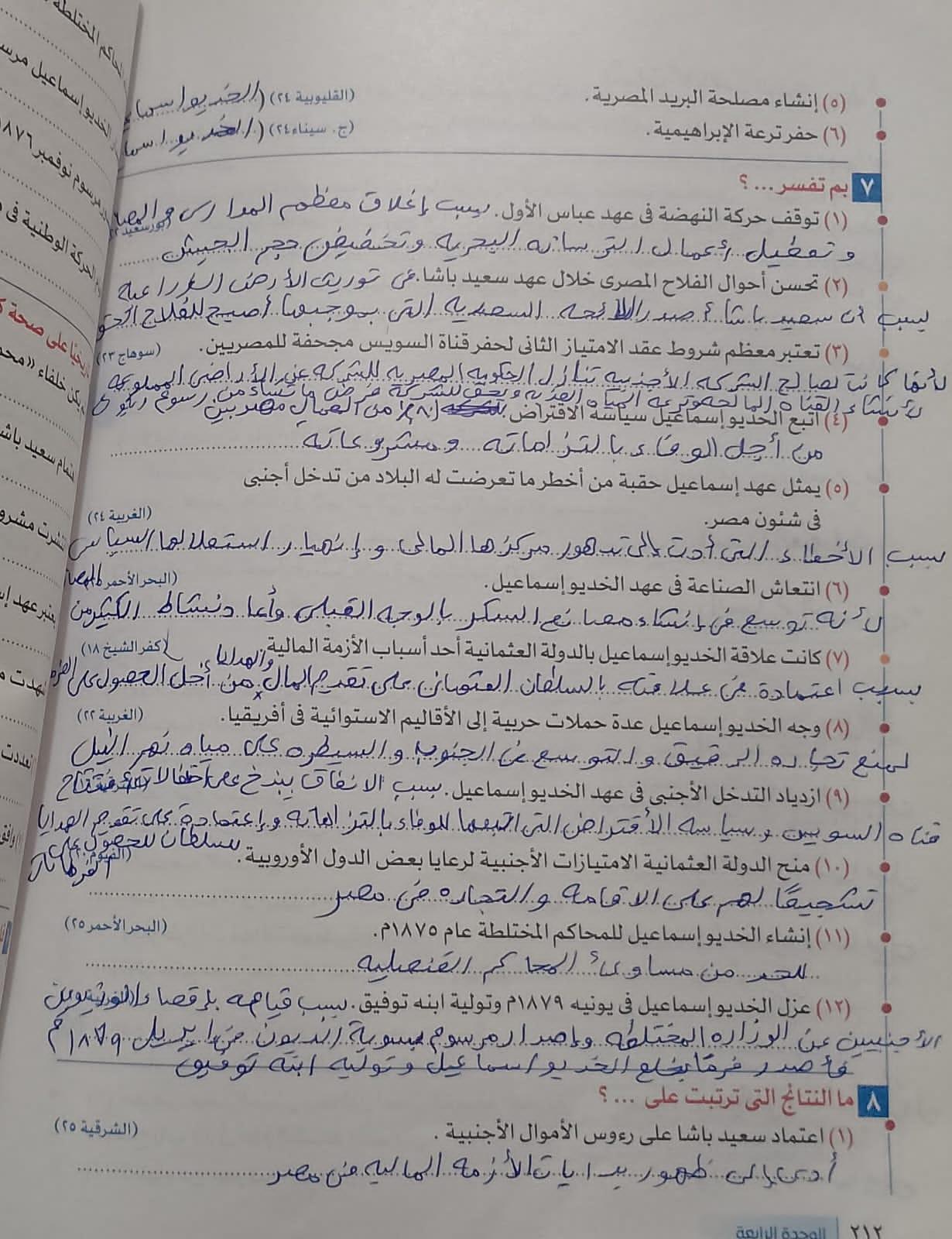 اخدنا اليوم الجزء الاول من ثوره يوليو وحلينا تدريب 1