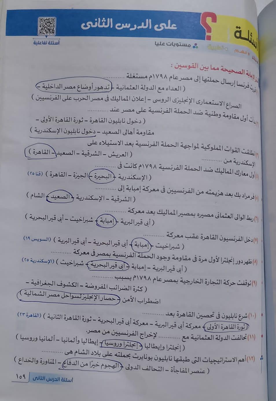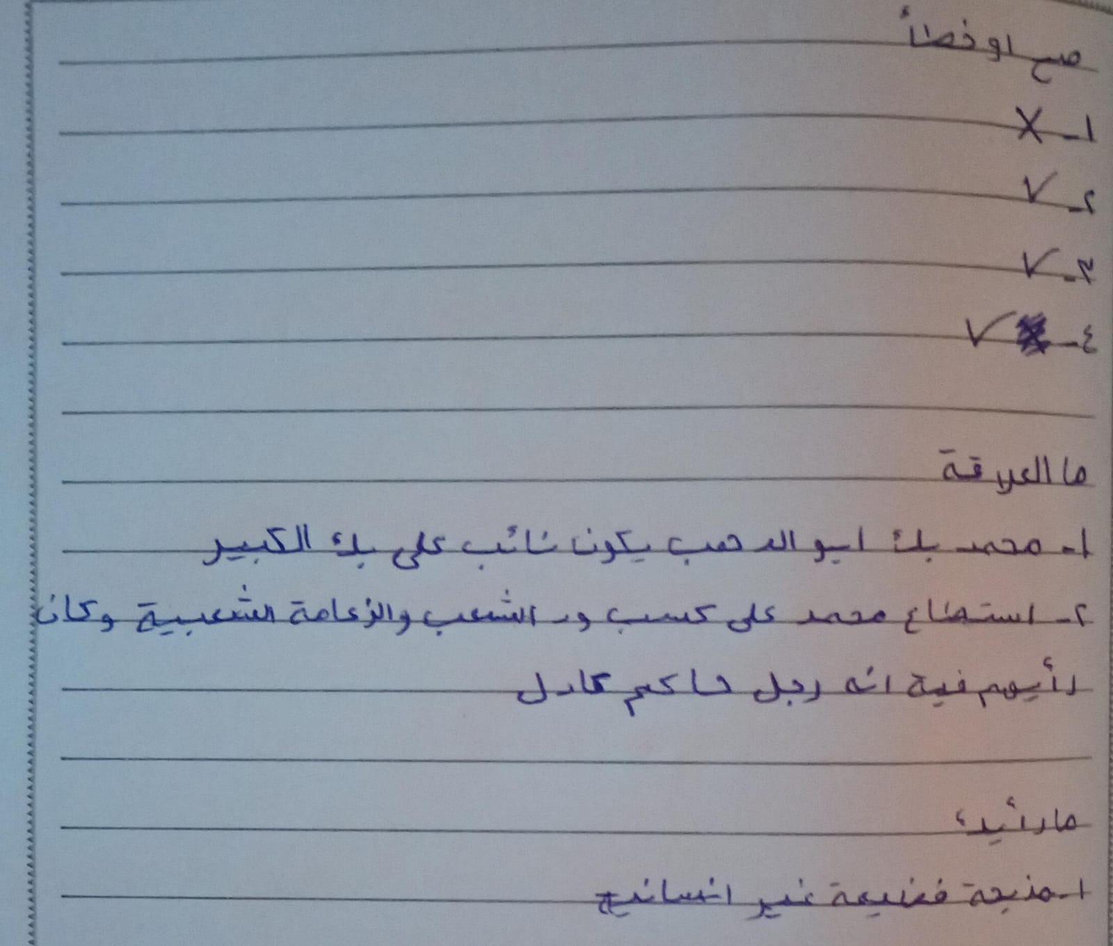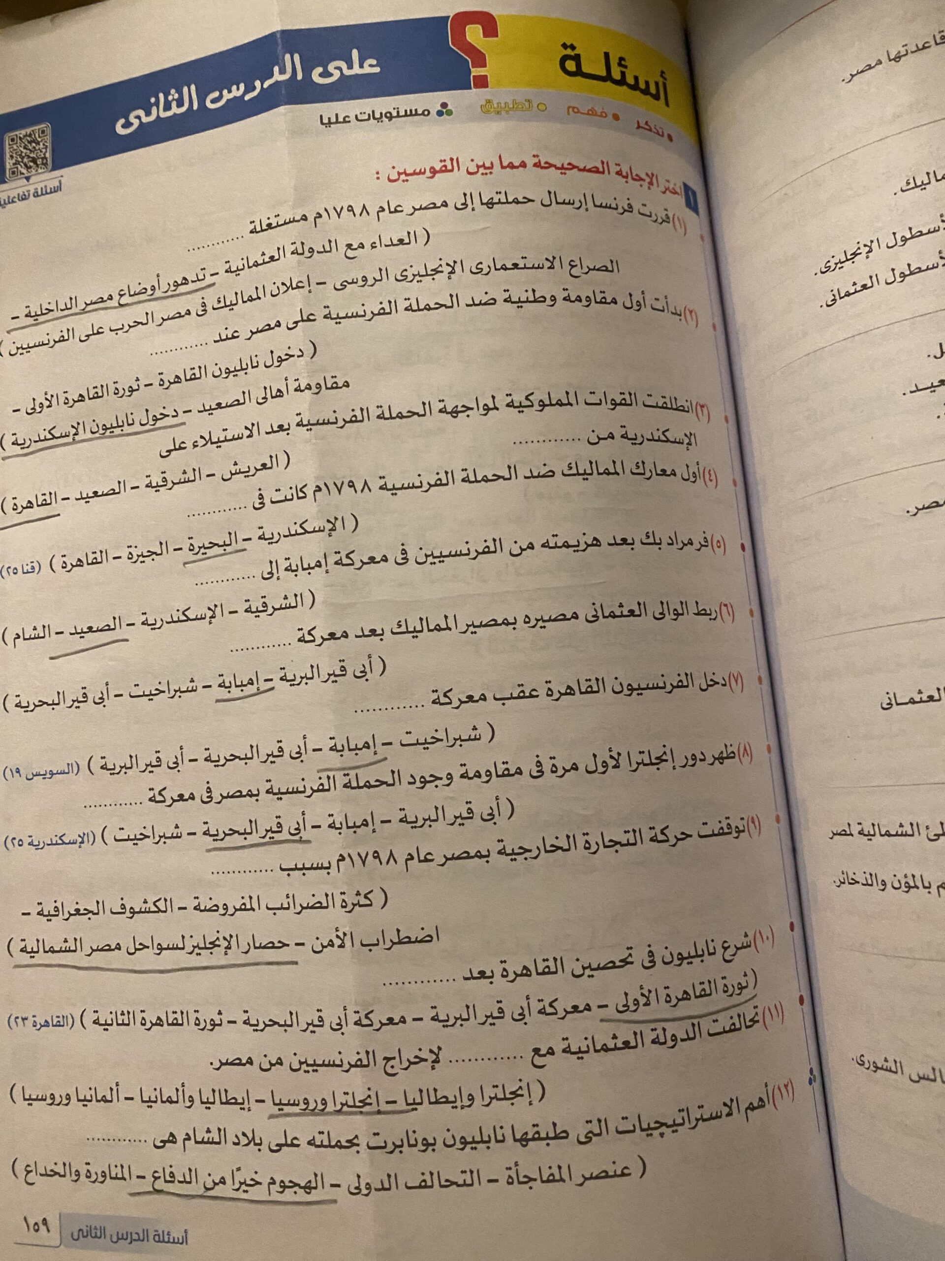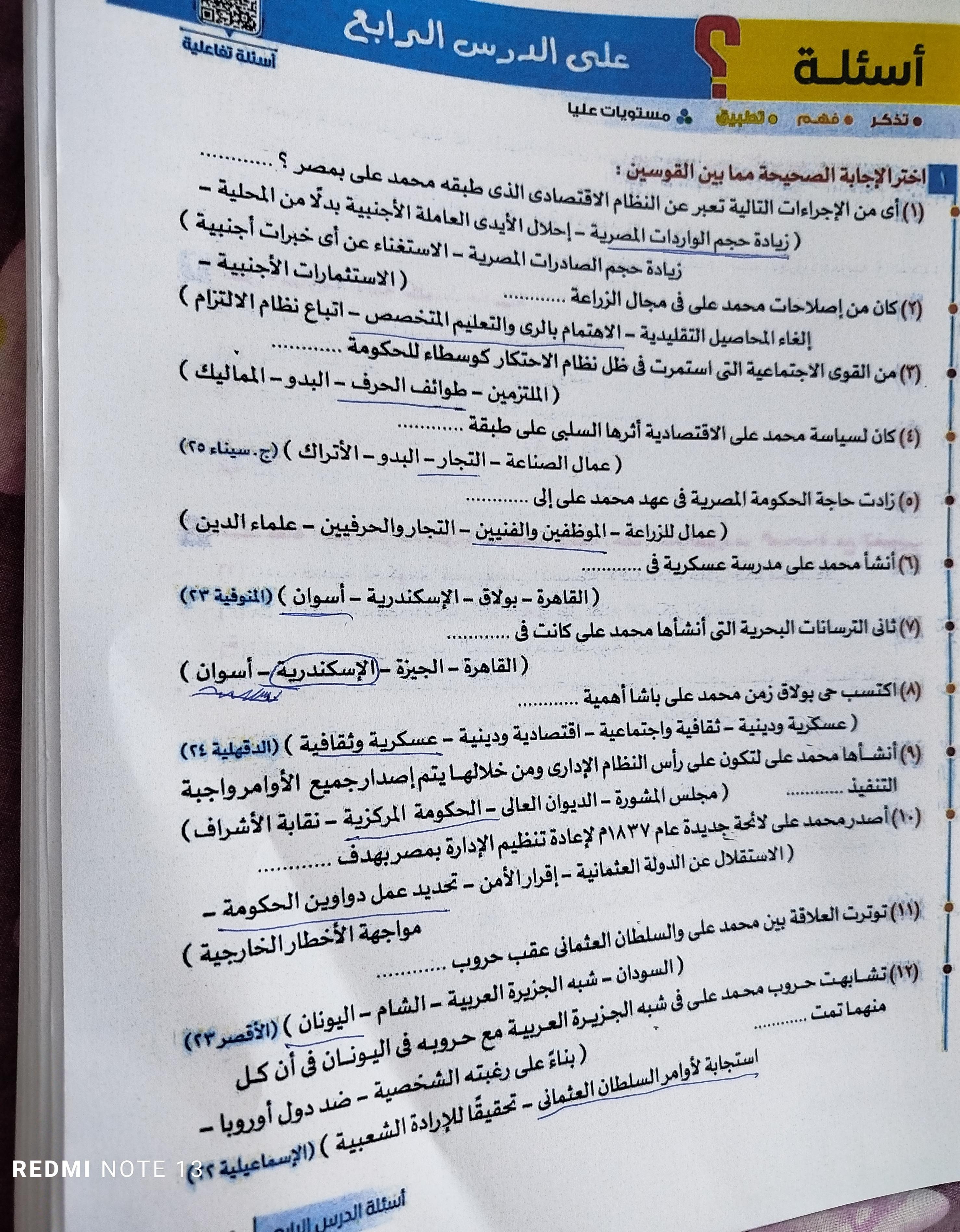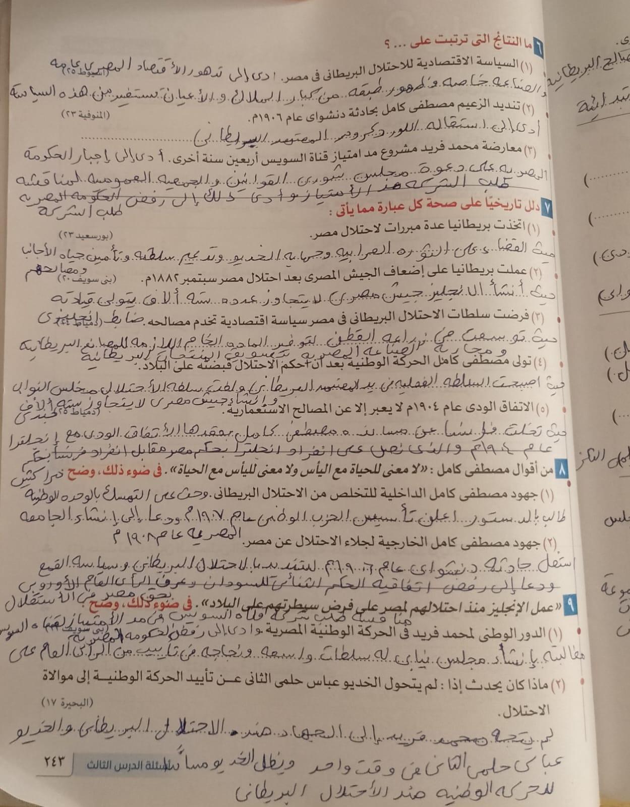اخدنا اليوم الجزء الاول من ثوره يوليو وحلينا تدريب 1