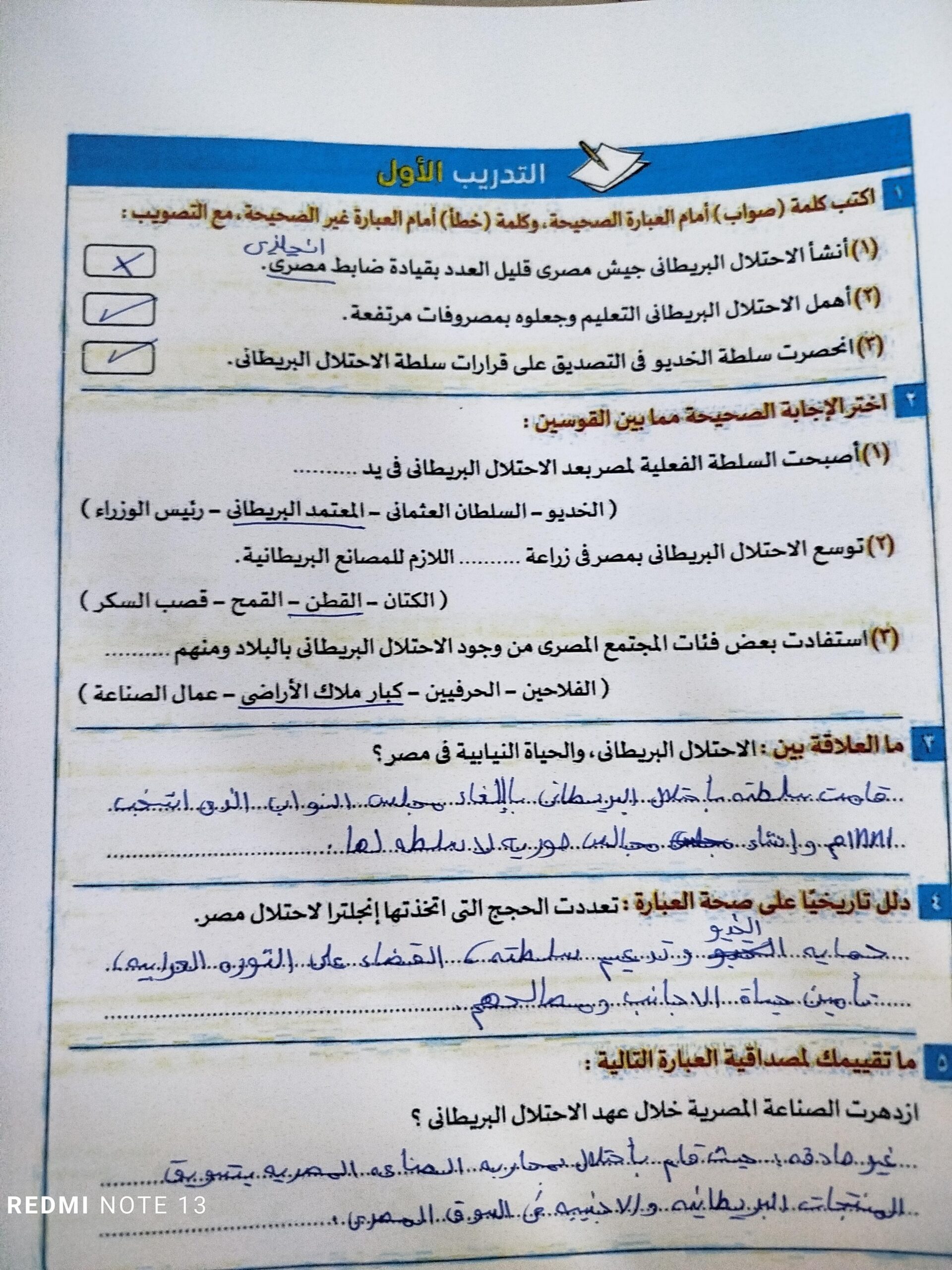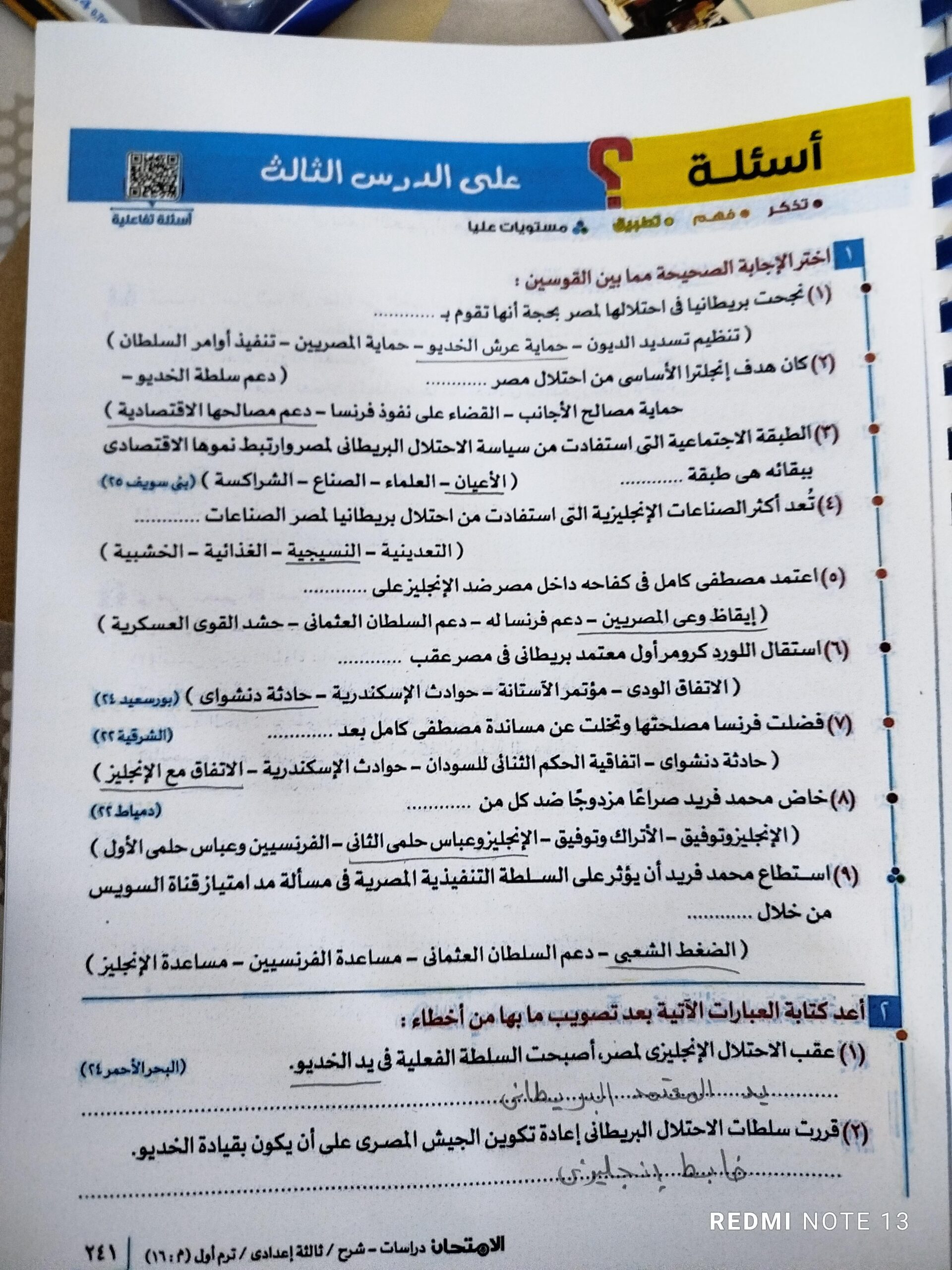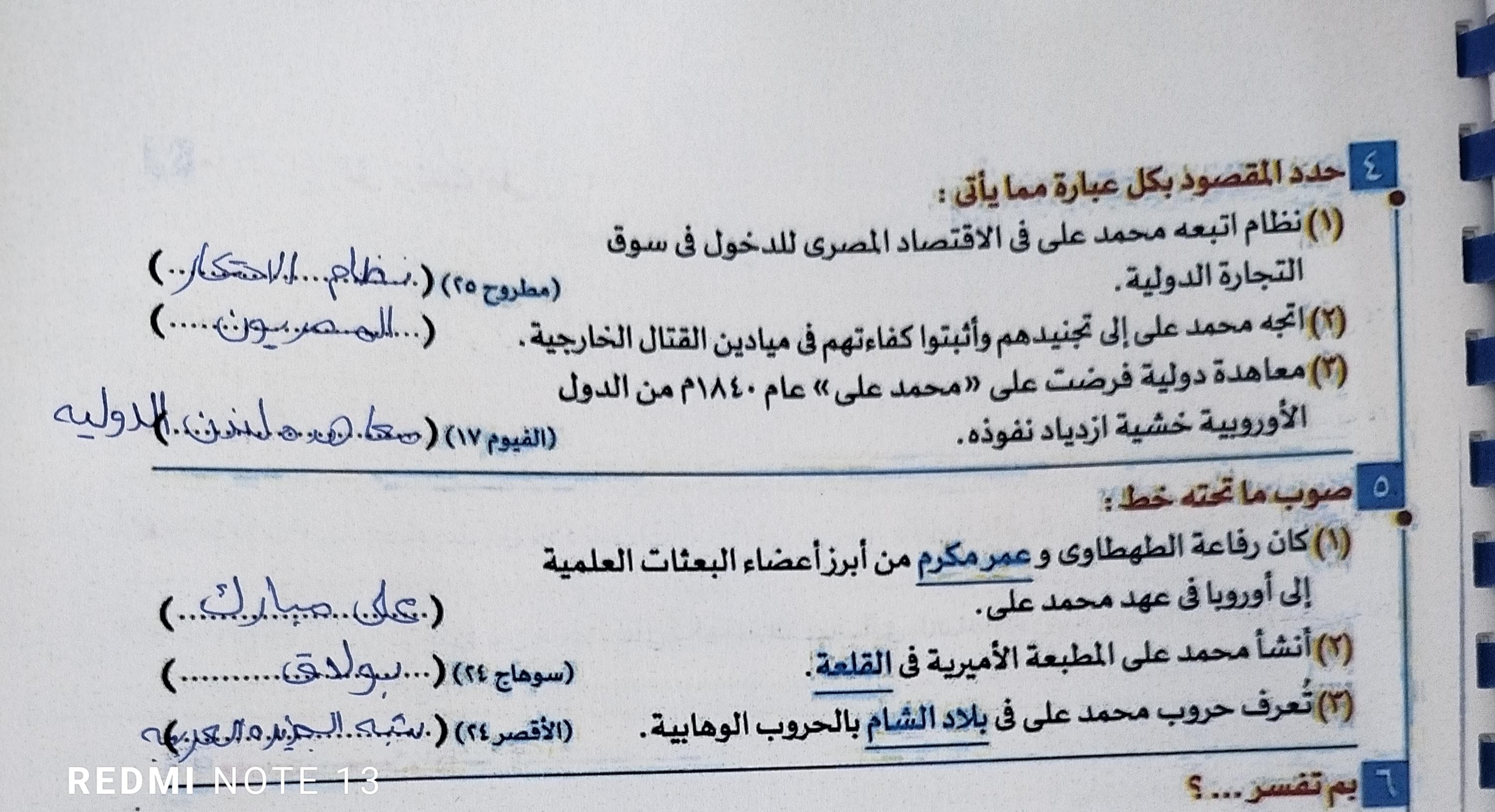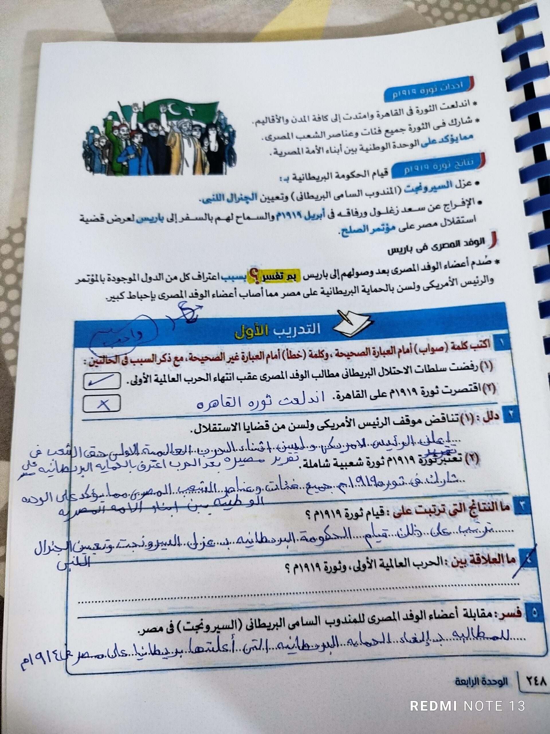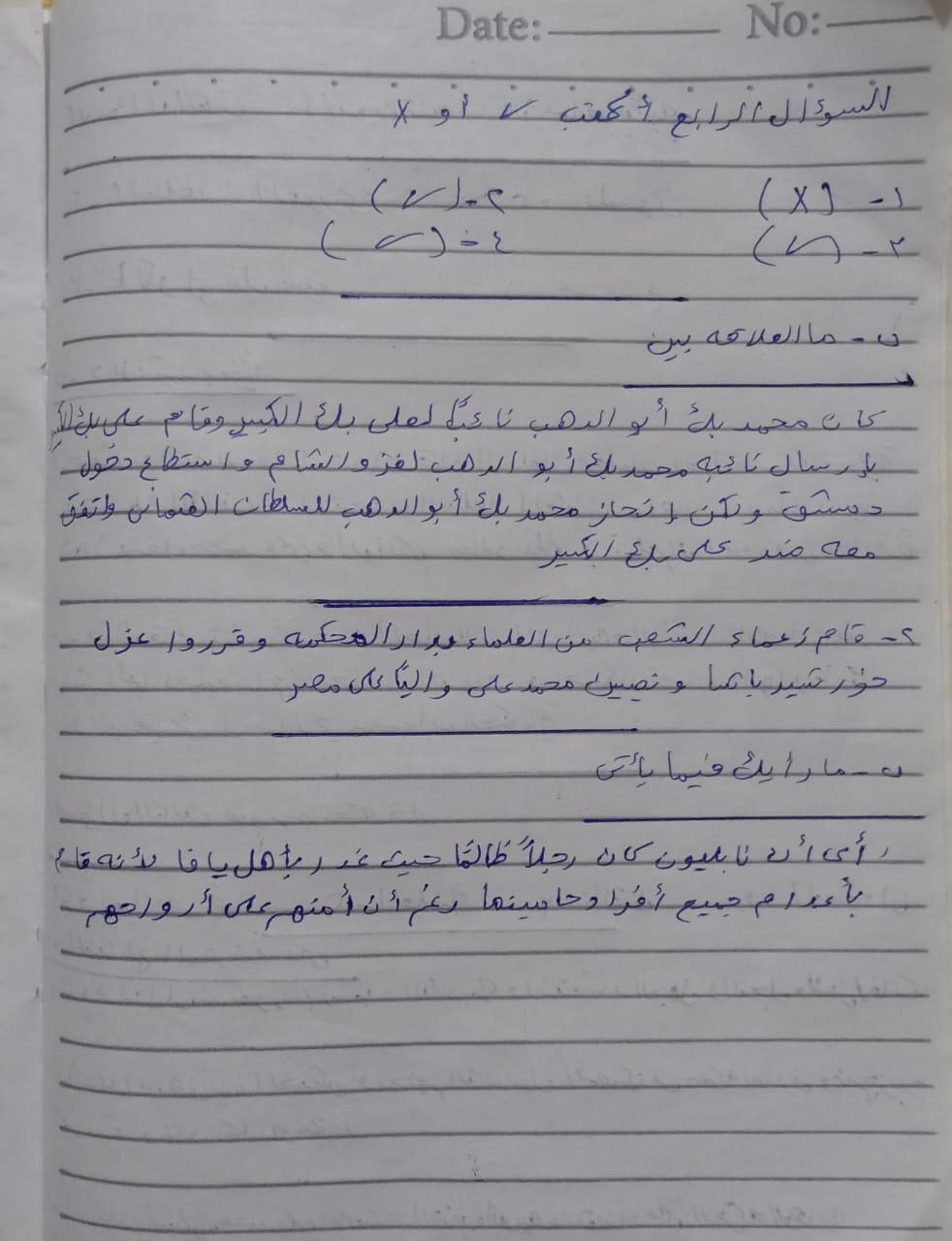 اخدنا اليوم الجزء الاول من ثوره يوليو وحلينا تدريب 1