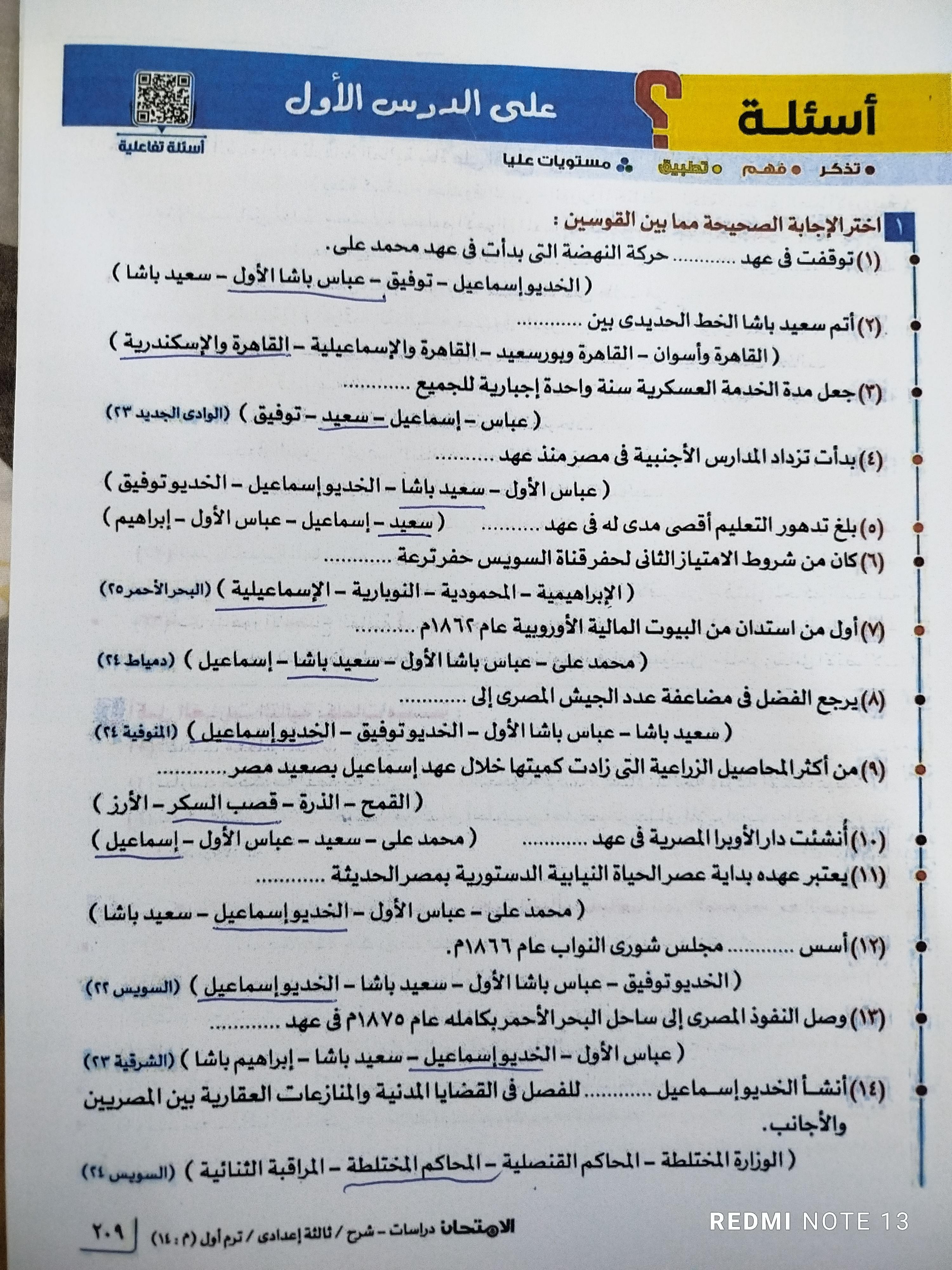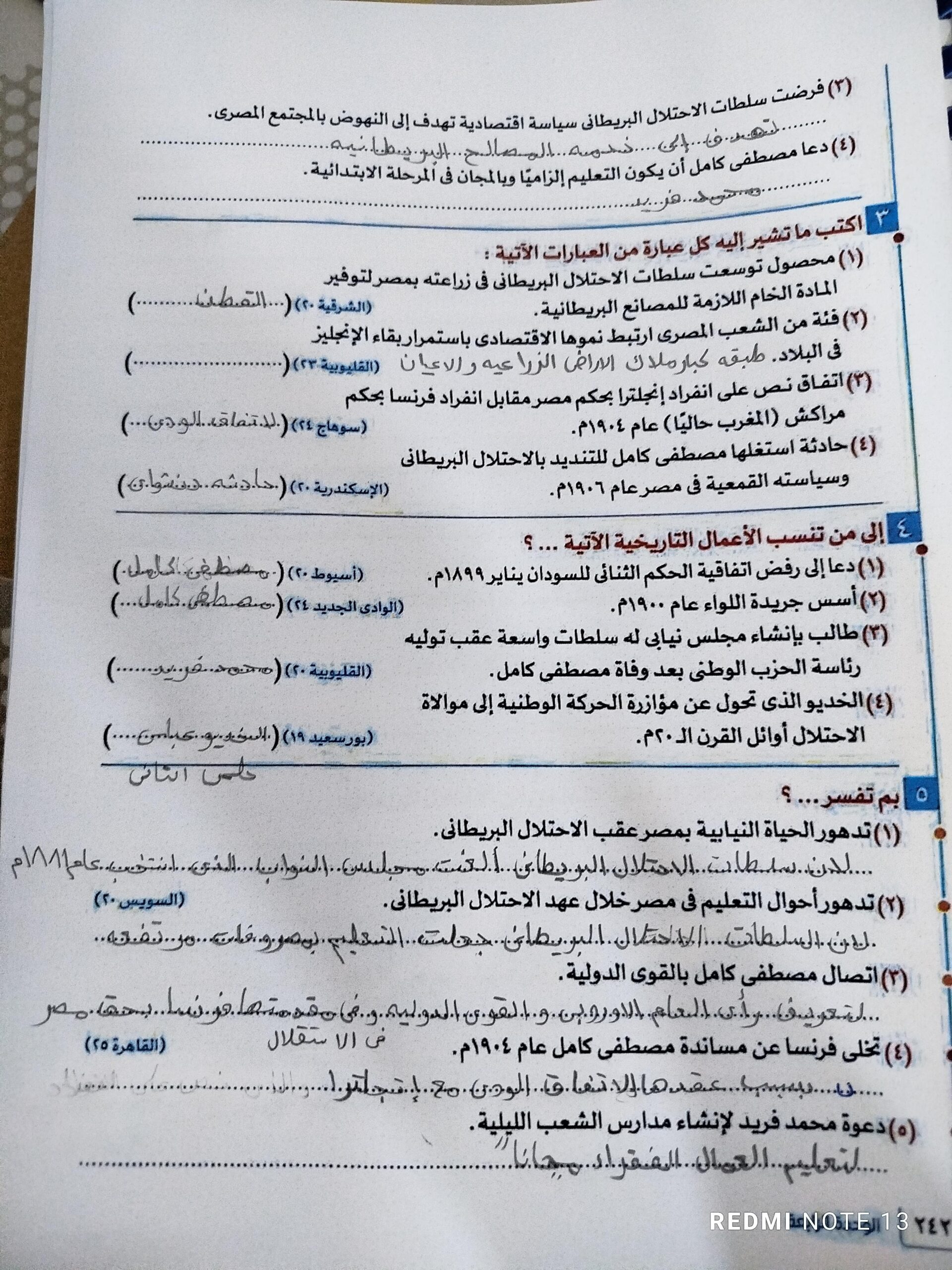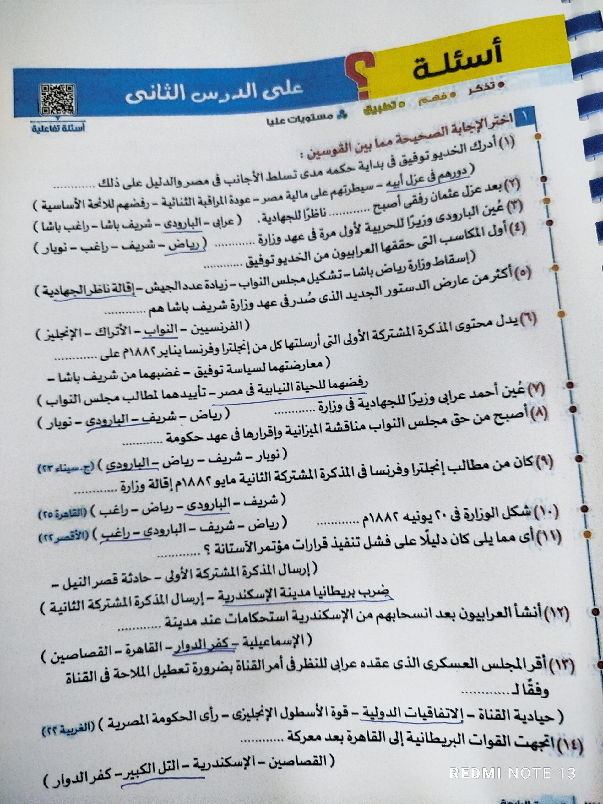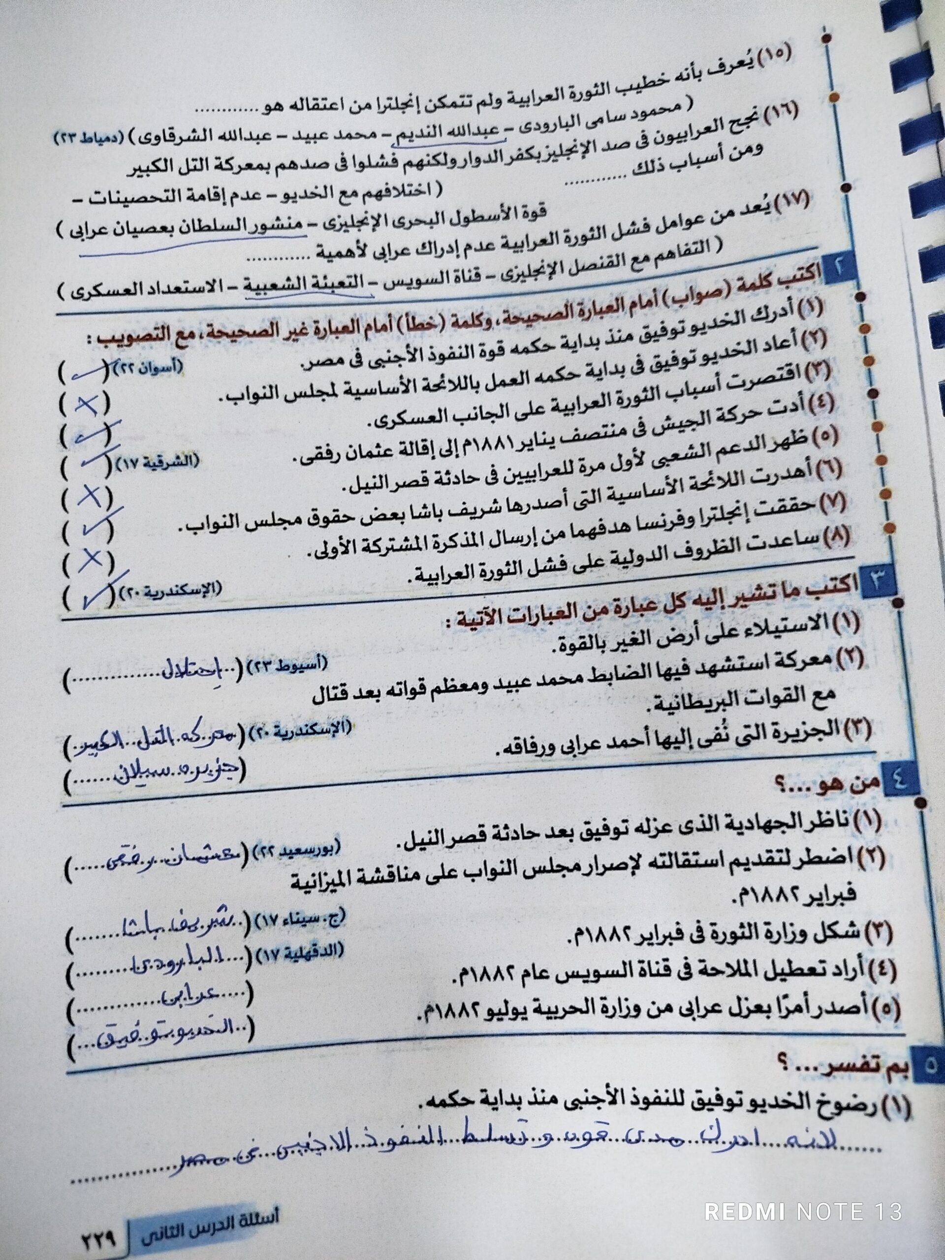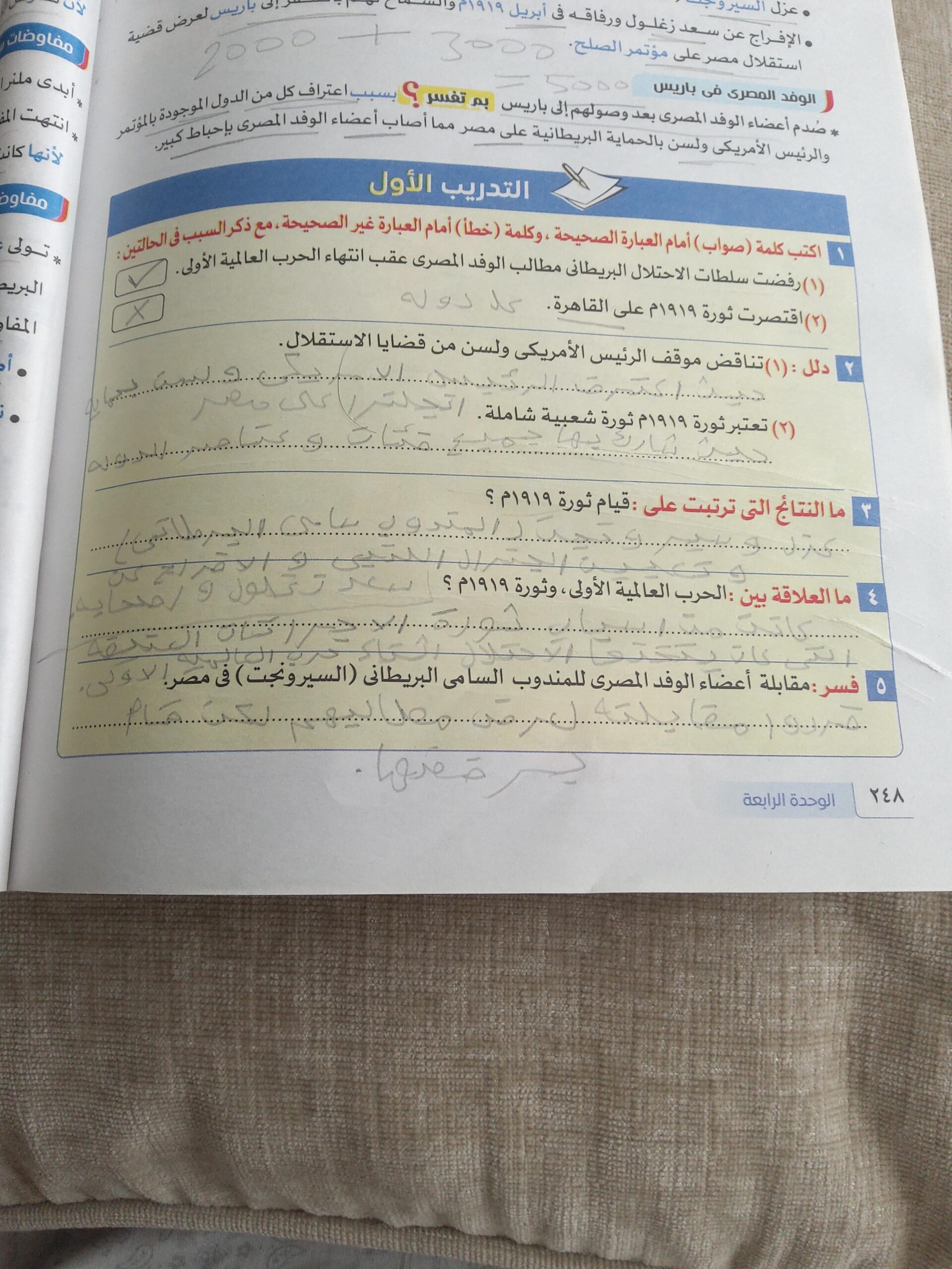 اخدنا اليوم الجزء الاول من ثوره يوليو وحلينا تدريب 1