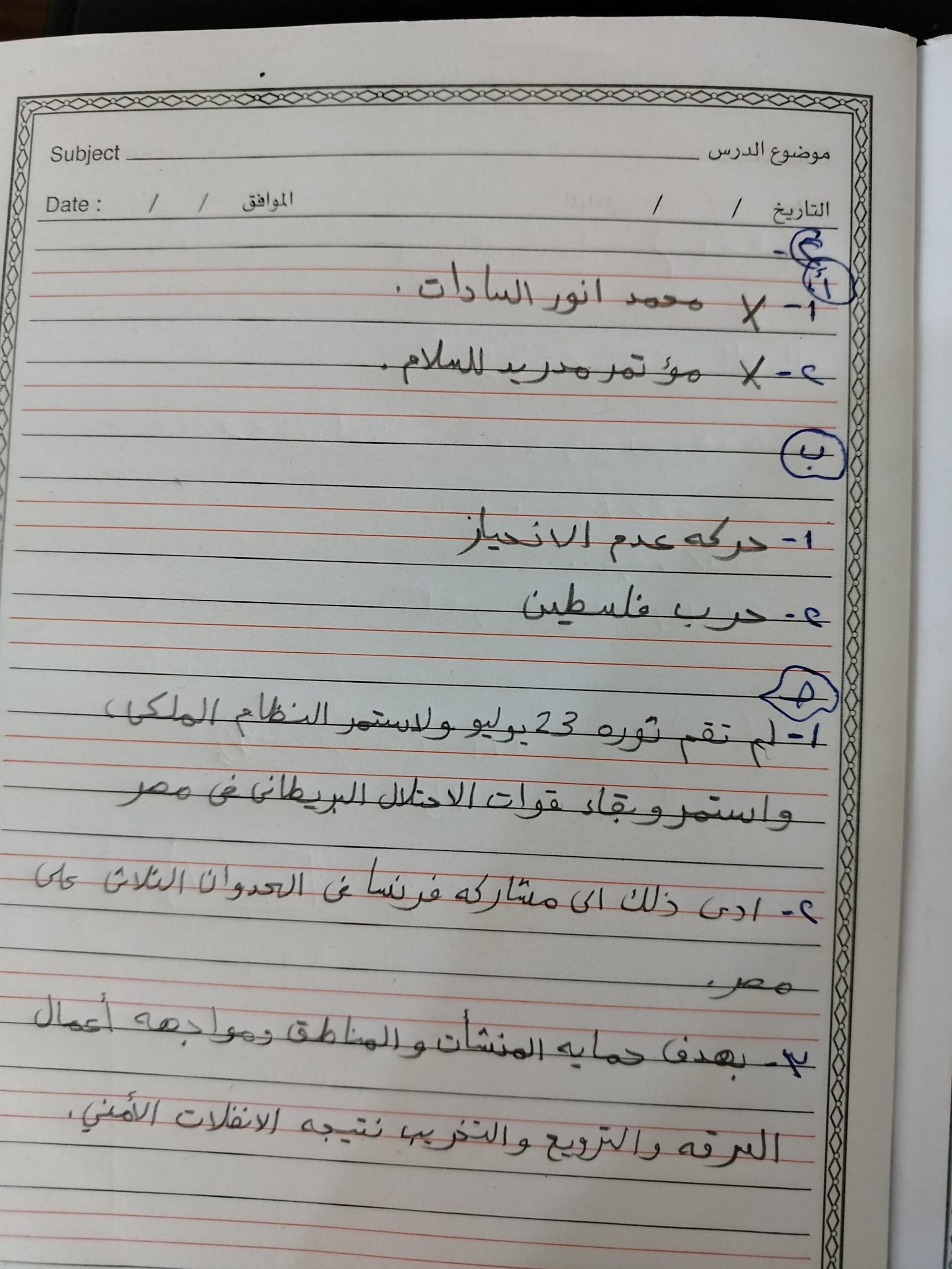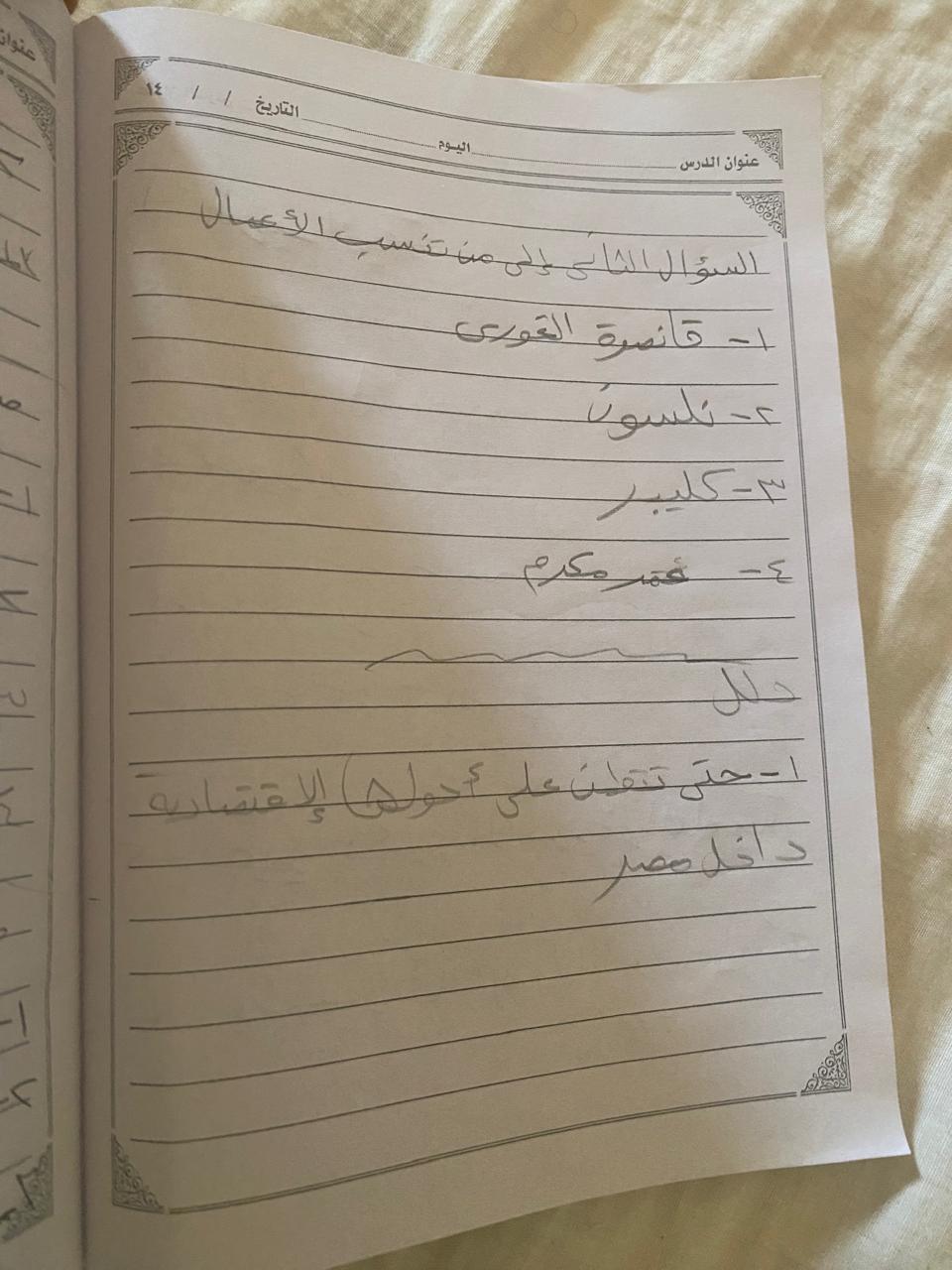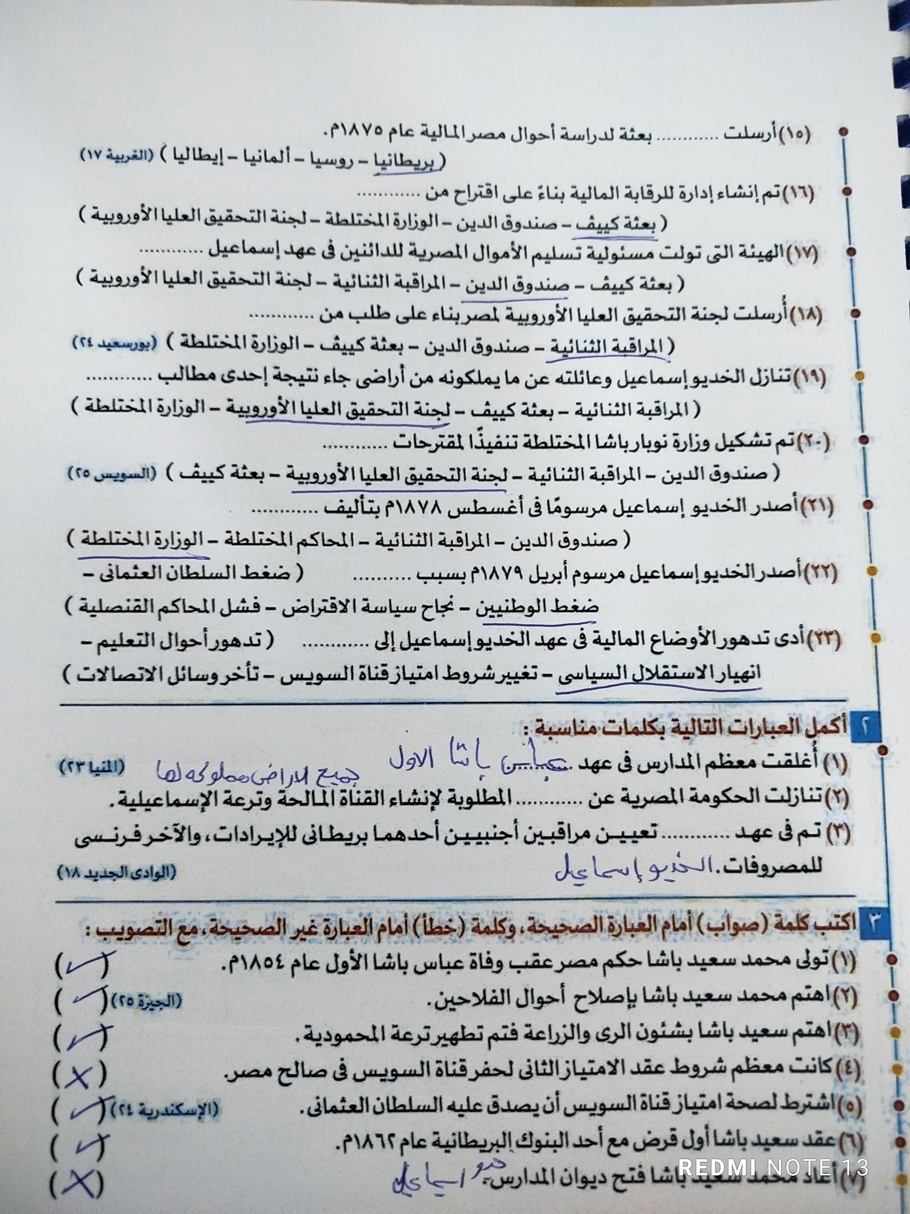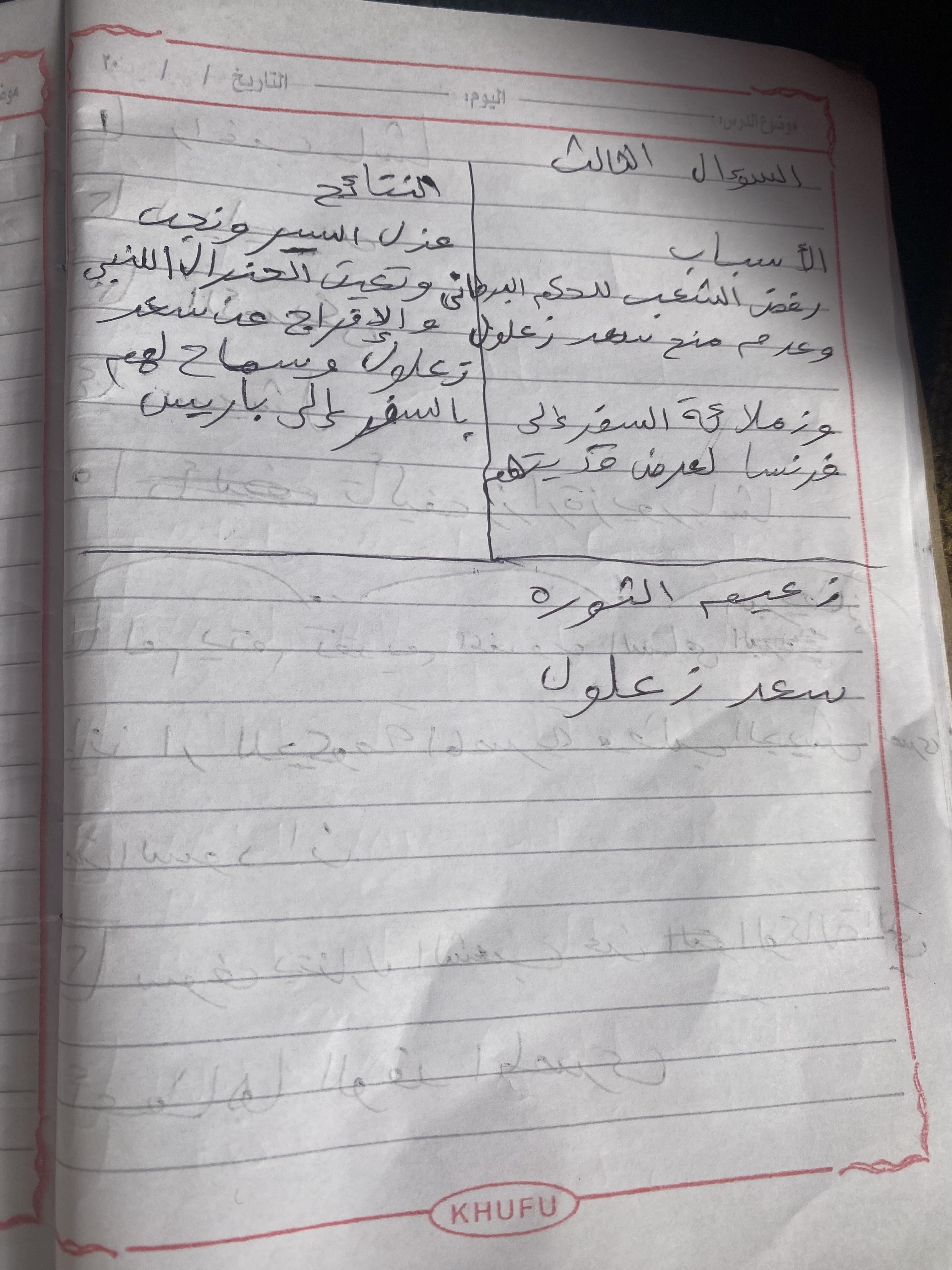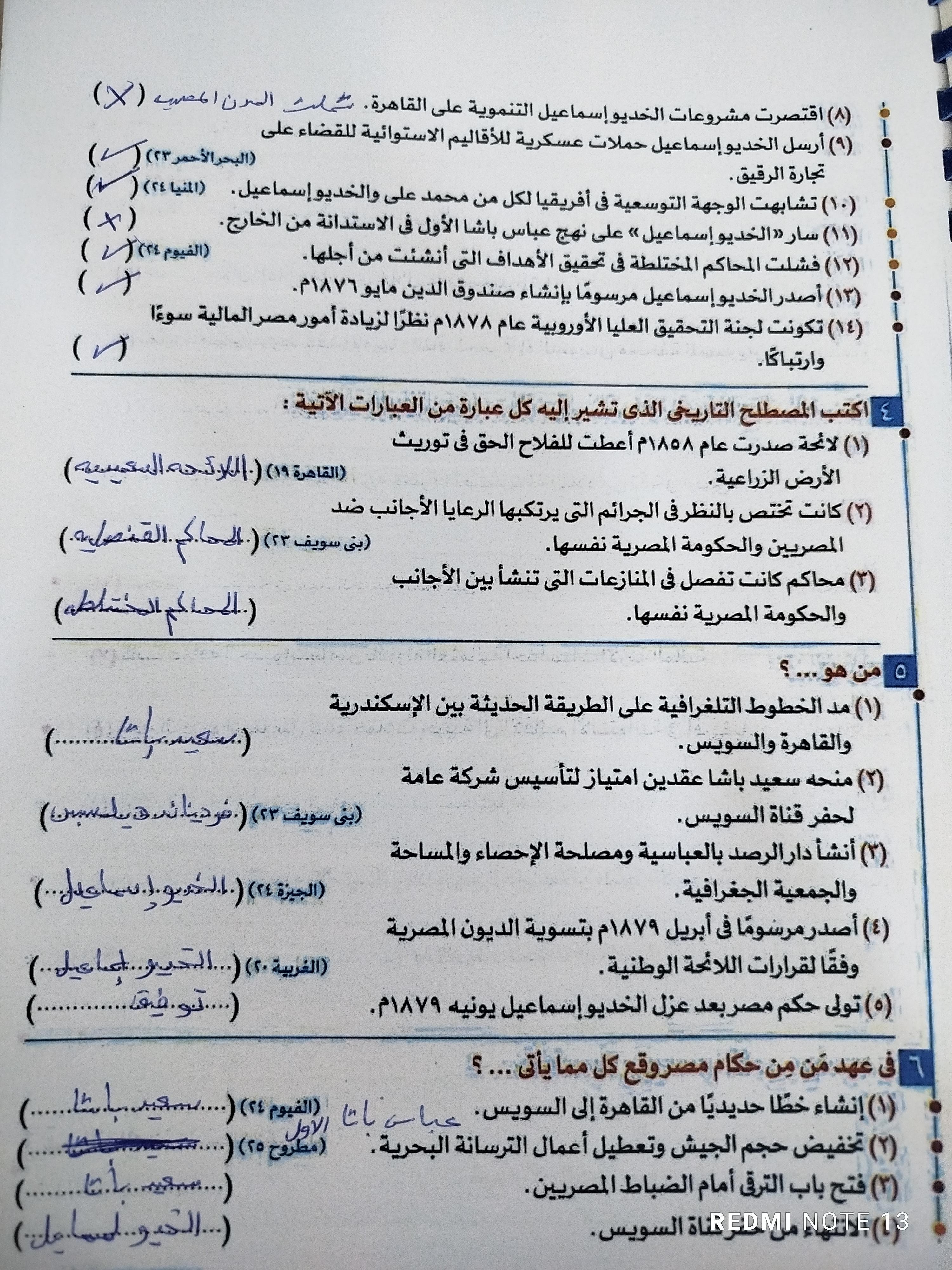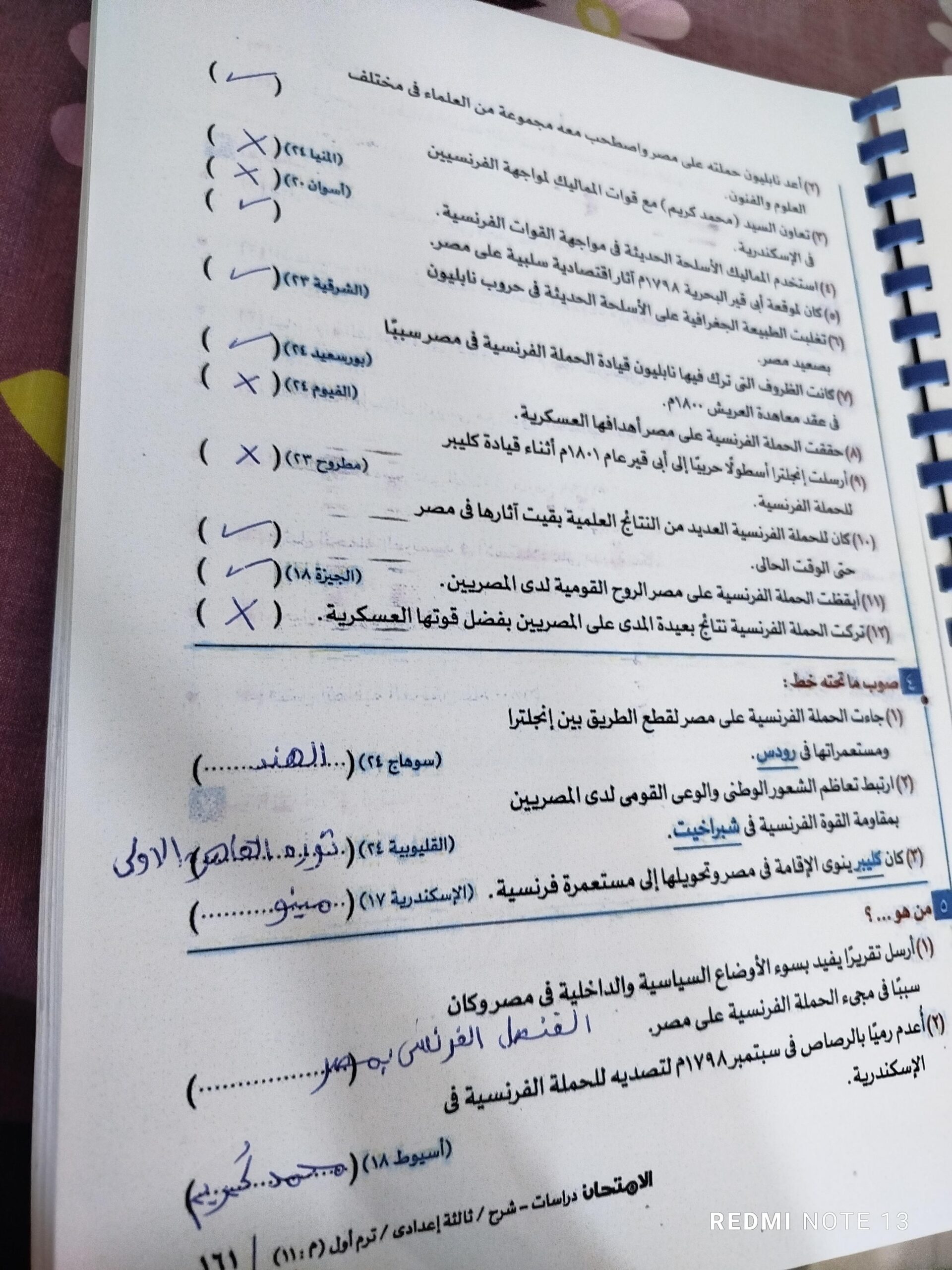 اخدنا اليوم الجزء الاول من ثوره يوليو وحلينا تدريب 1