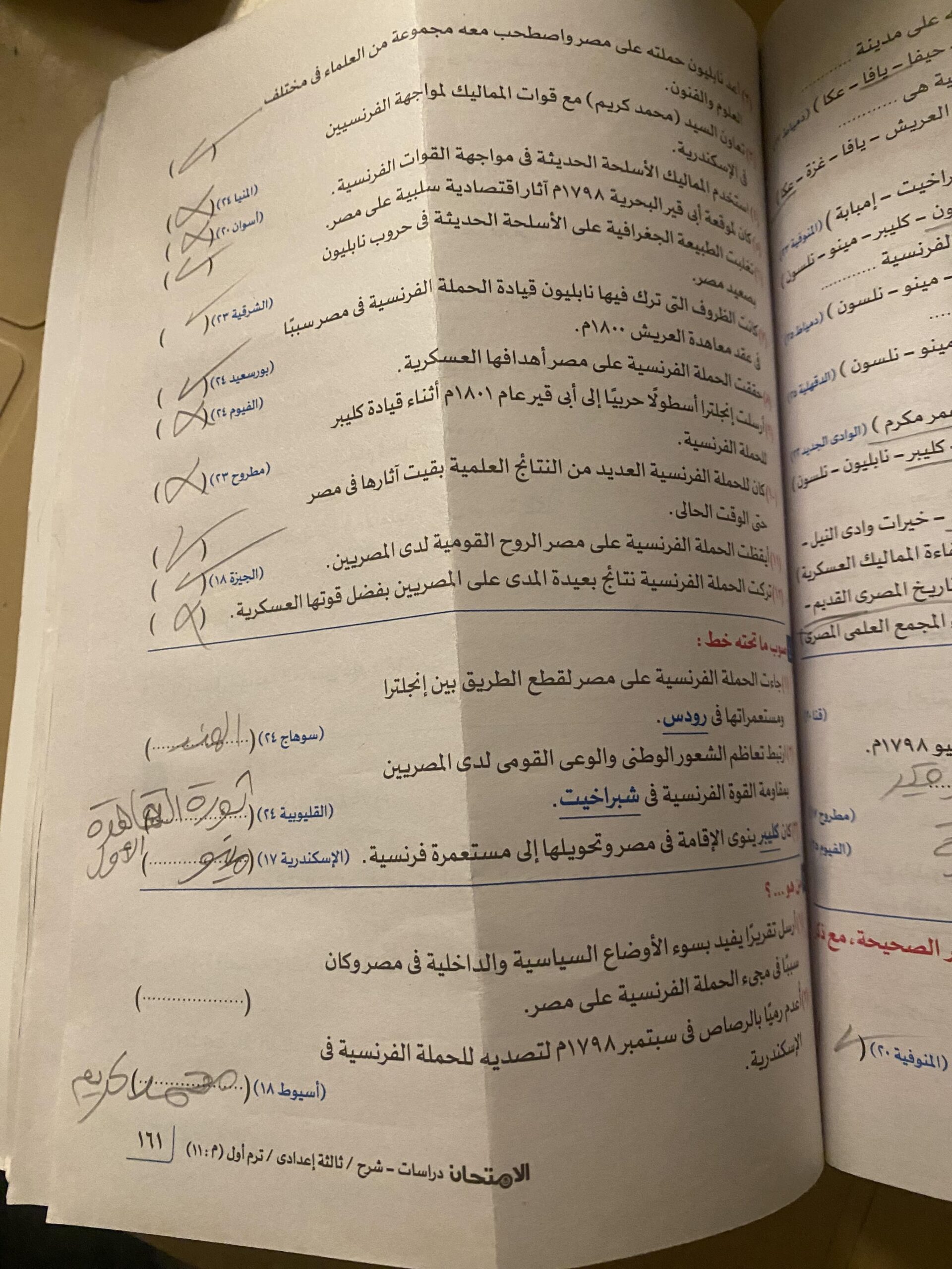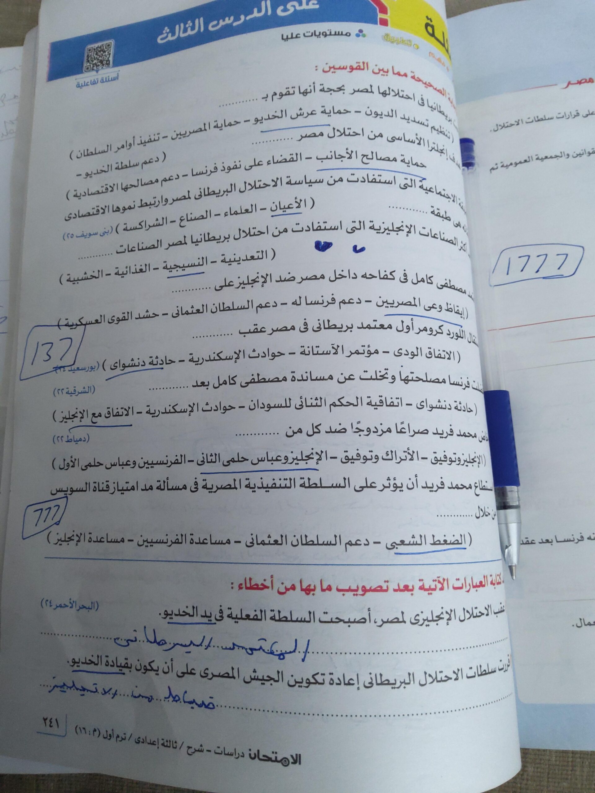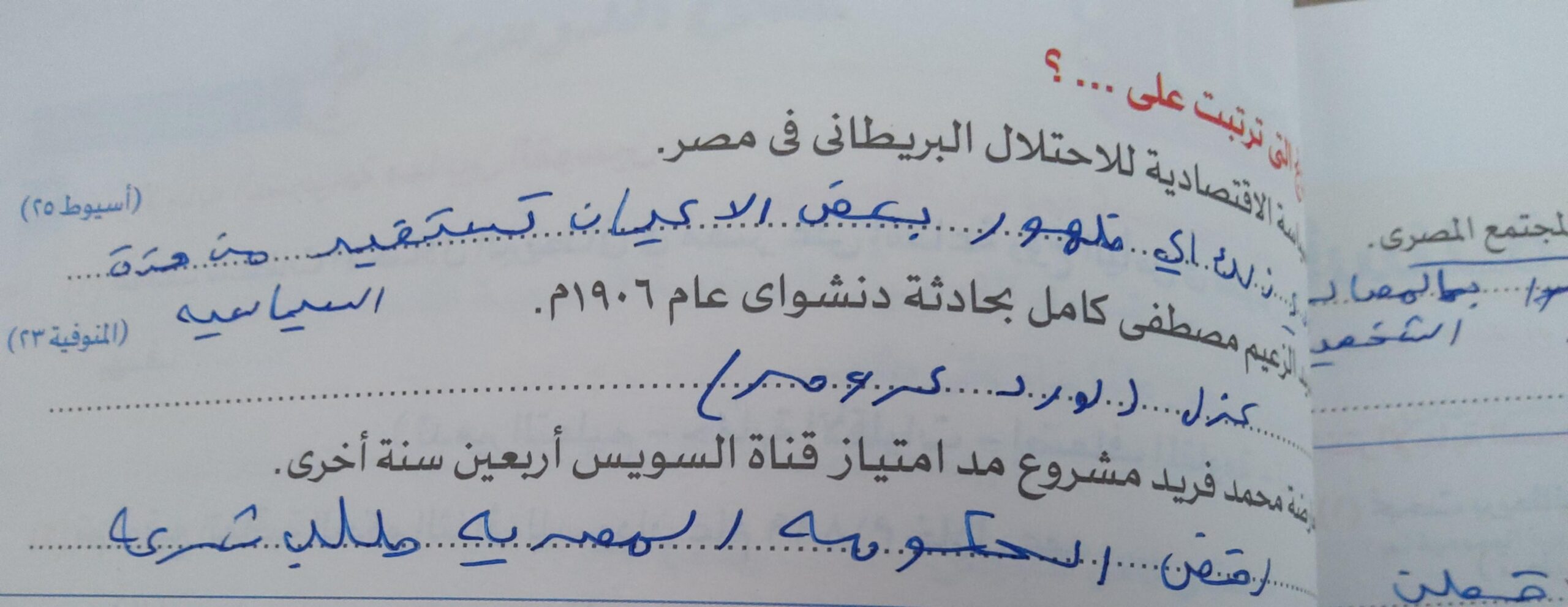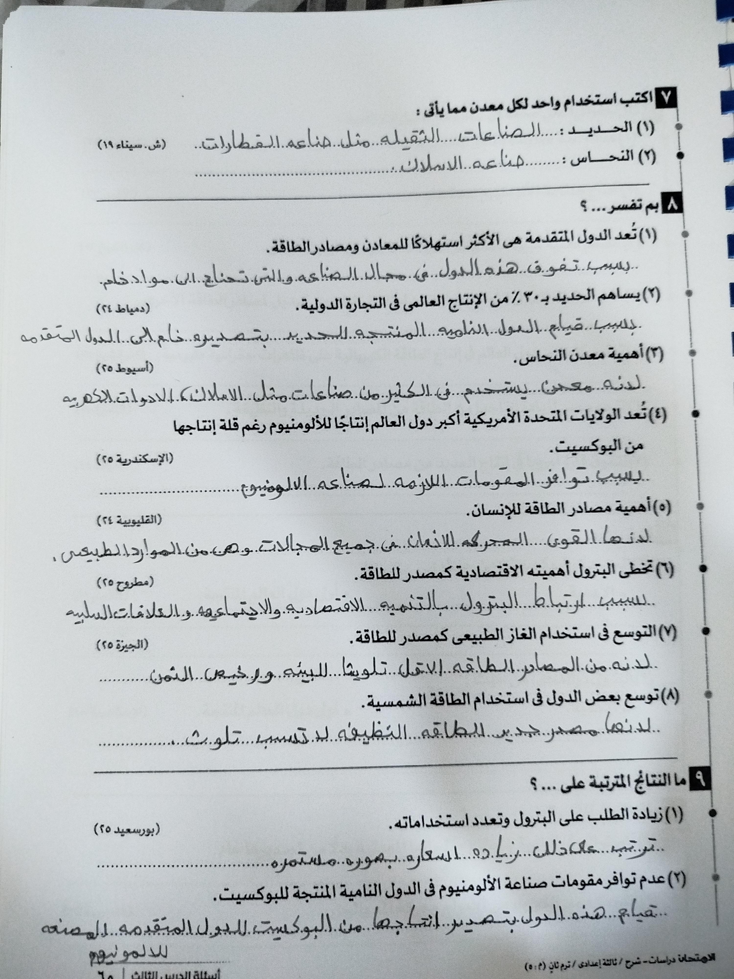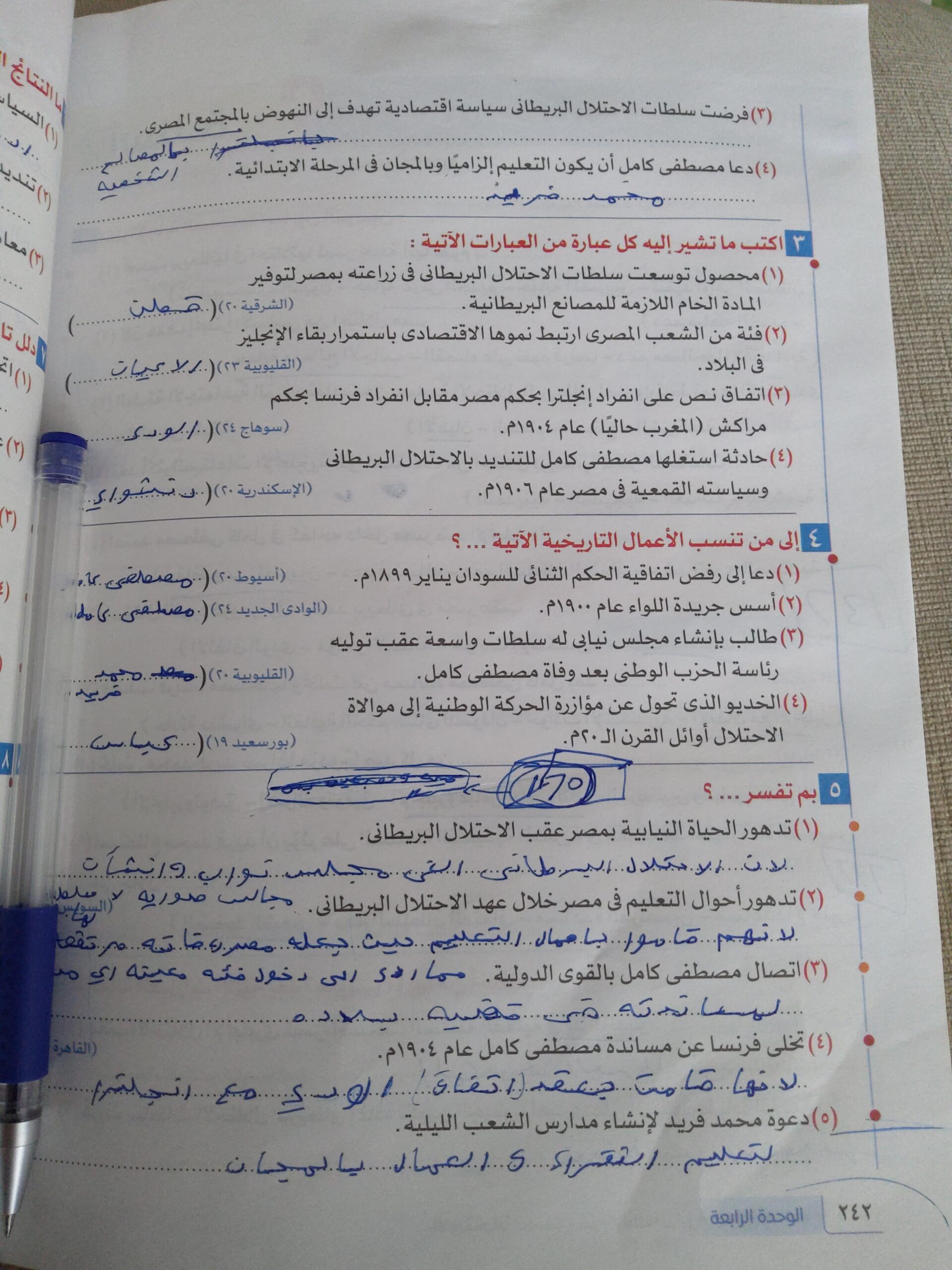 اخدنا اليوم الجزء الاول من ثوره يوليو وحلينا تدريب 1