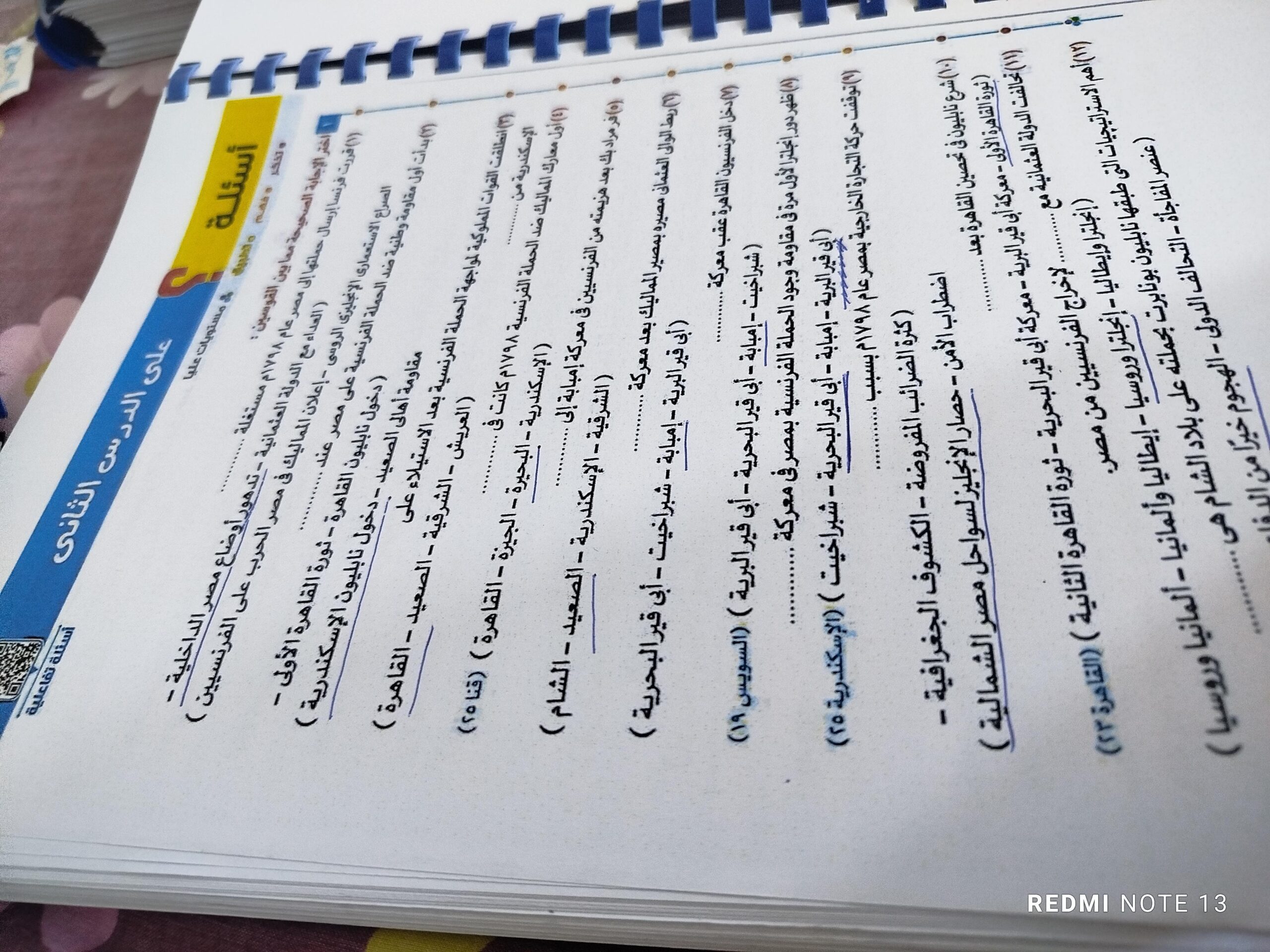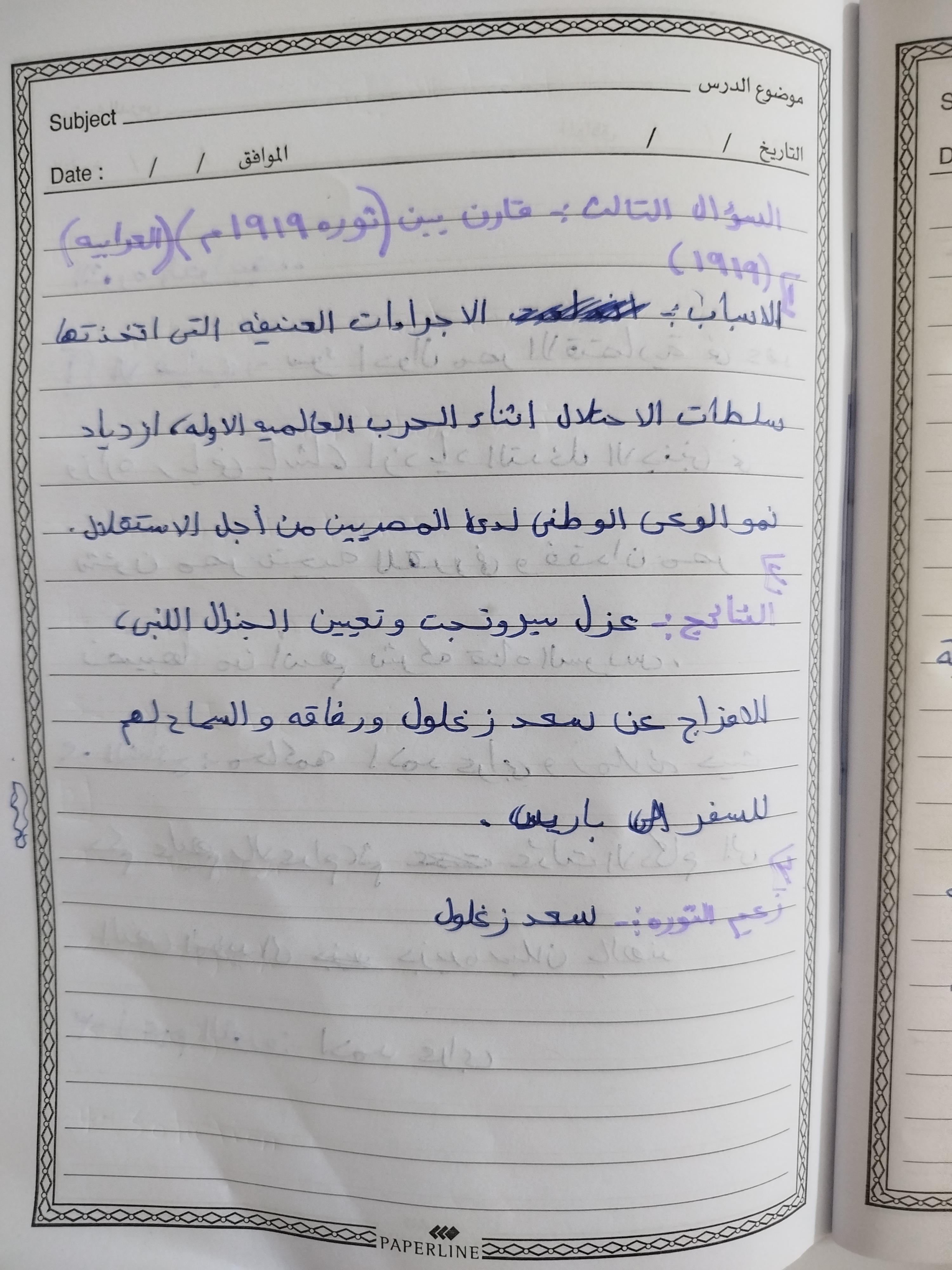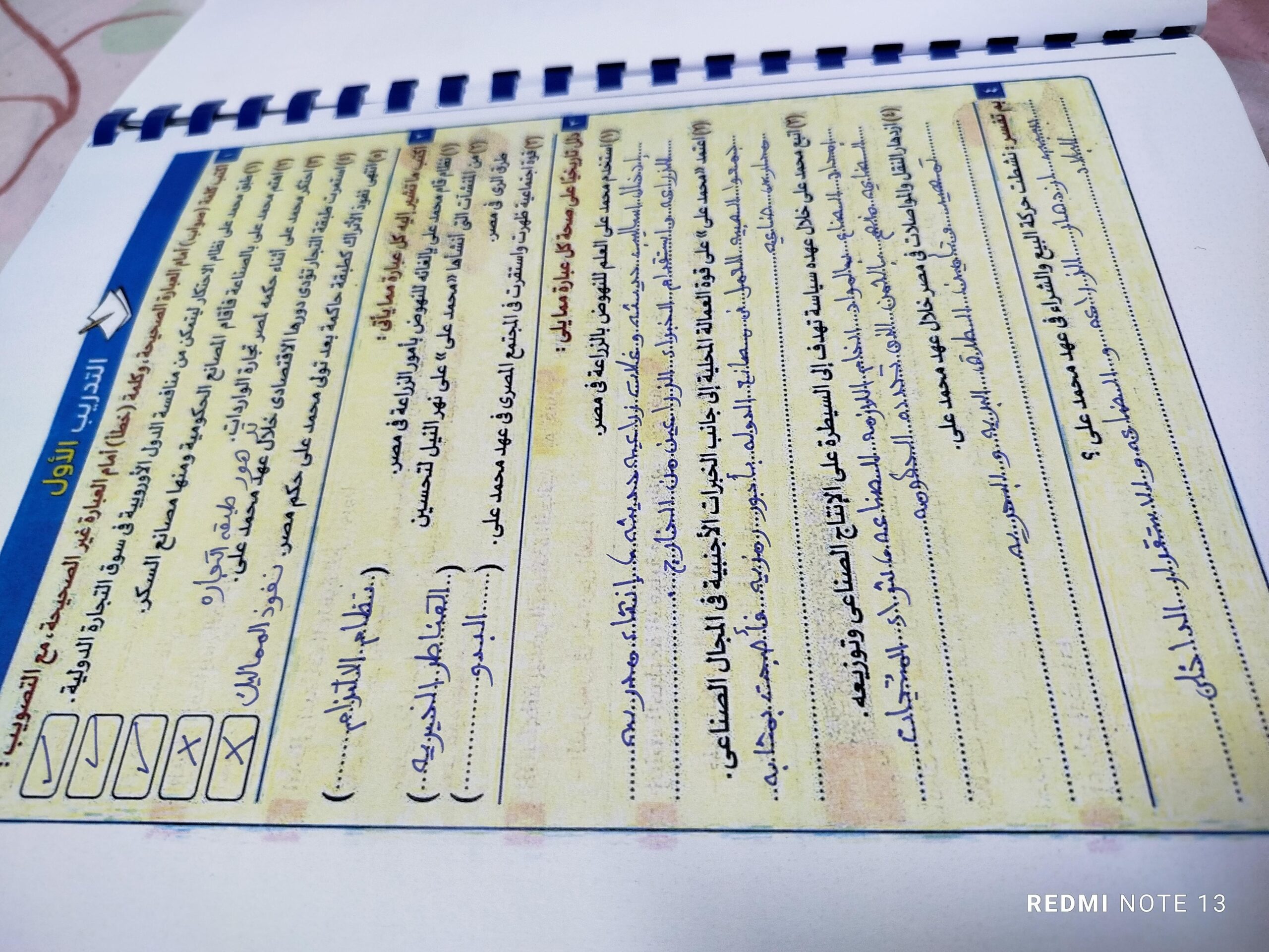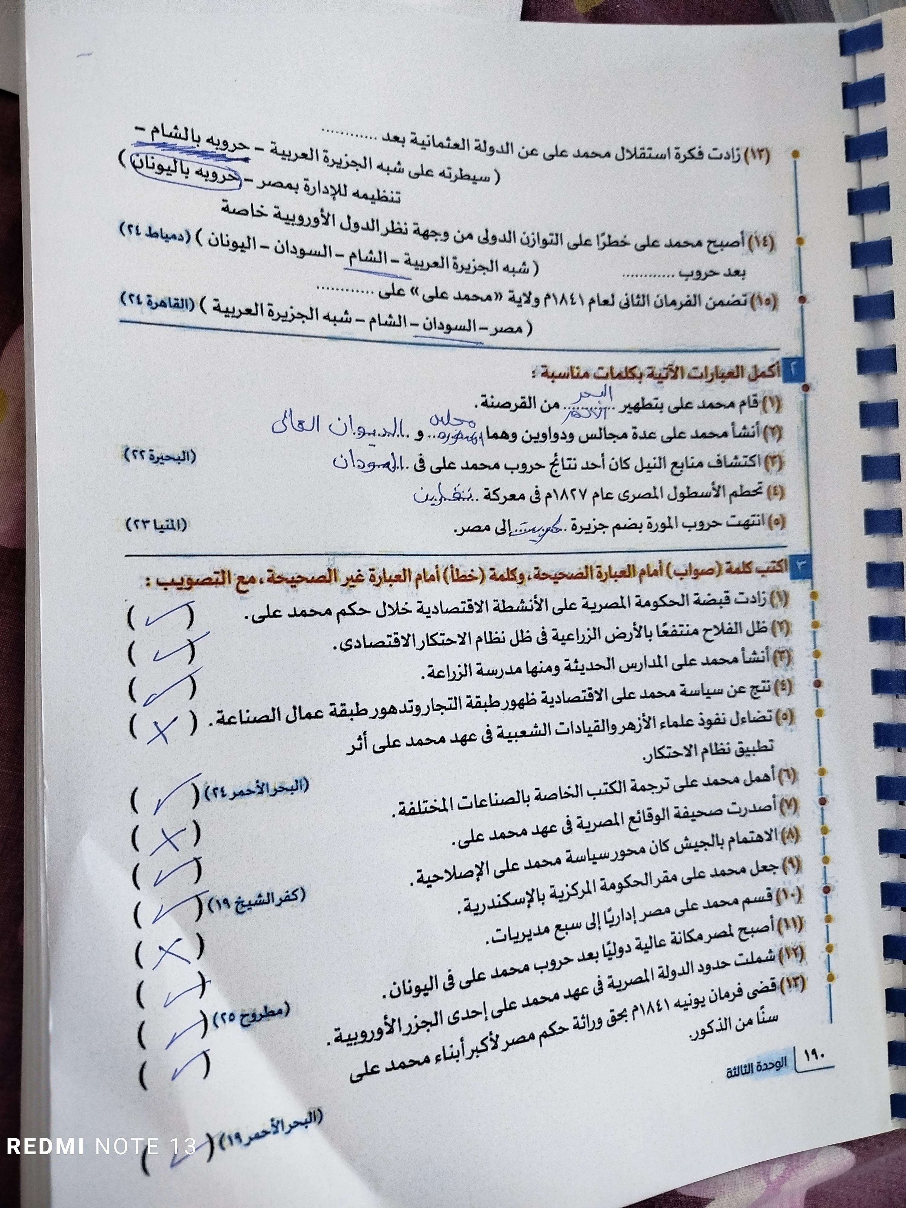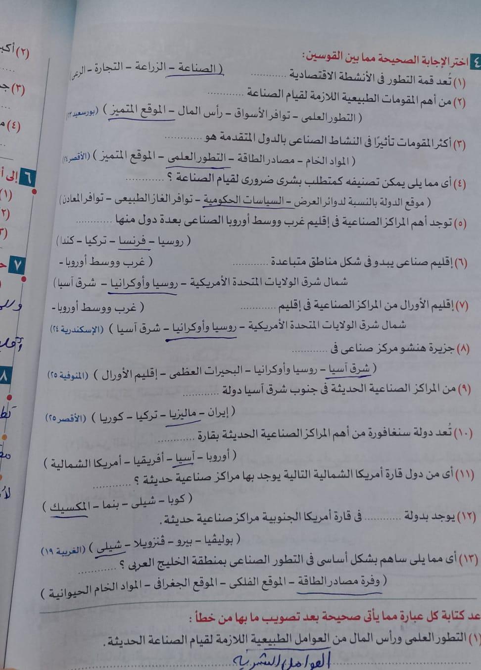 اخدنا اليوم الجزء الاول من ثوره يوليو وحلينا تدريب 1