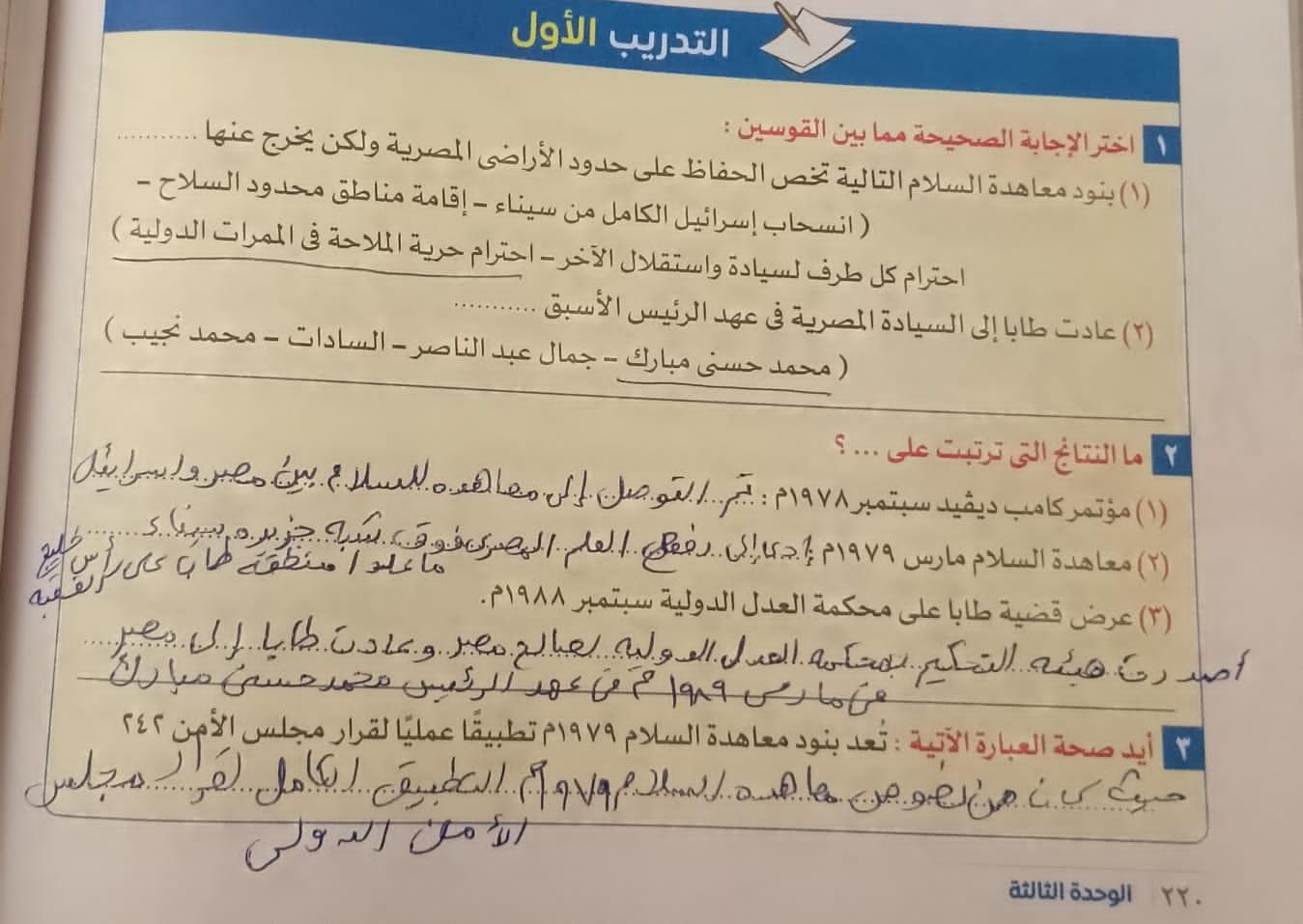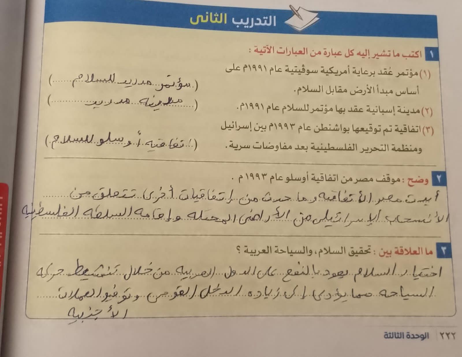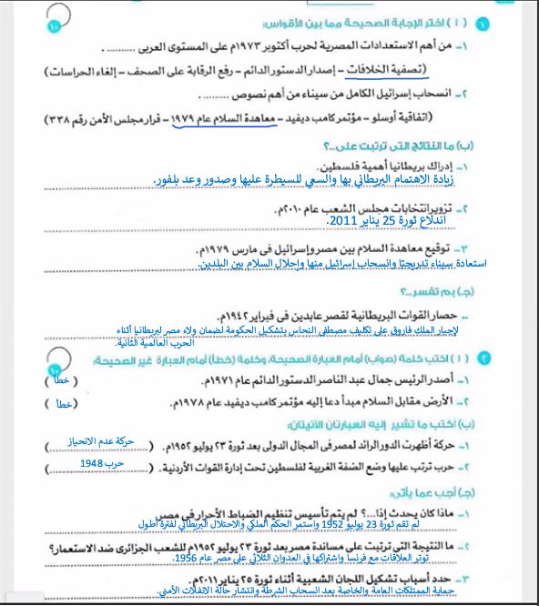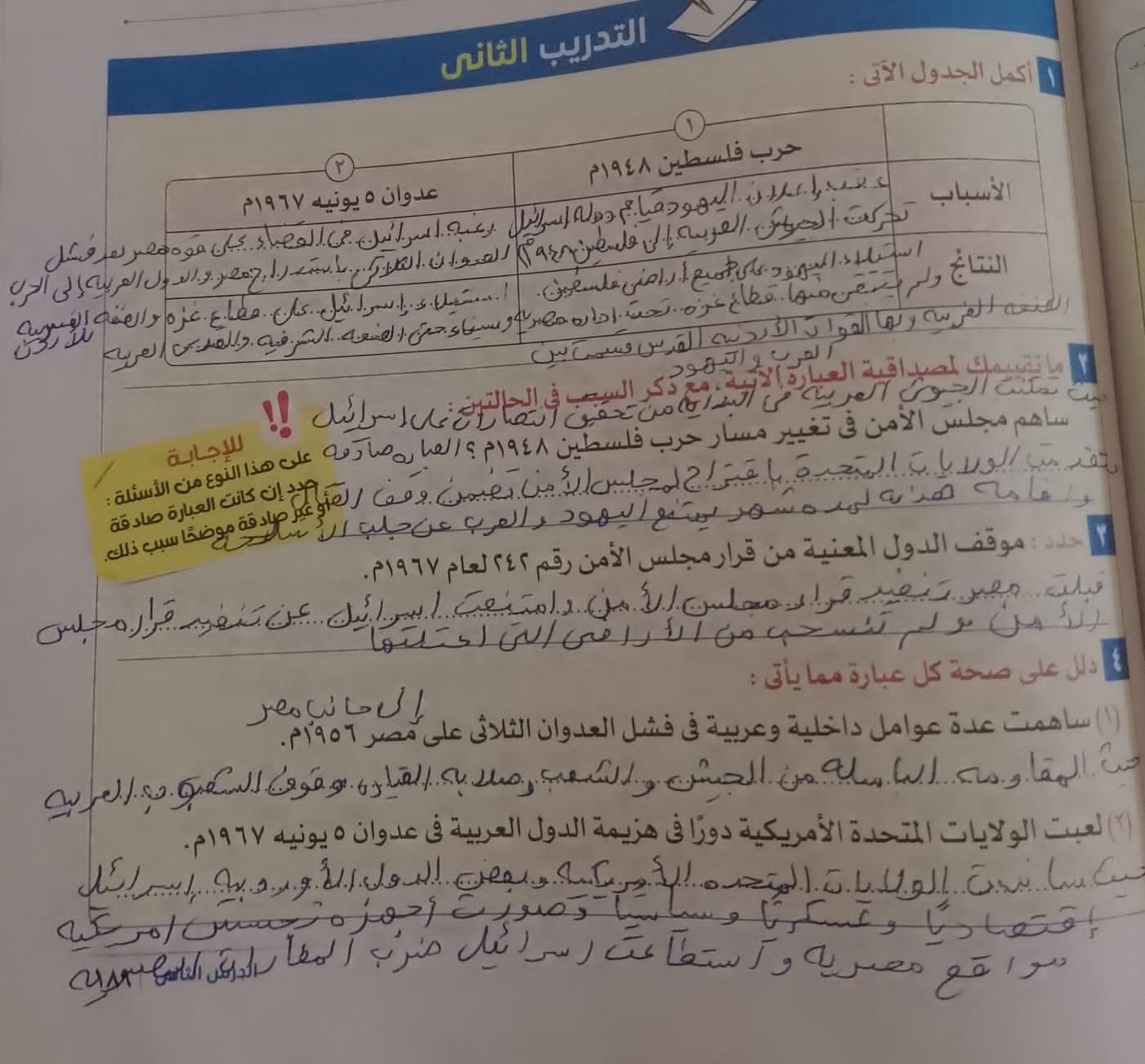 حلينا اليوم تدريبات الدرس التاني مصر والقضيه الفلسطينه ولا يوجد واجب بس يا ريت نعمل لاالواجبات السابقه
