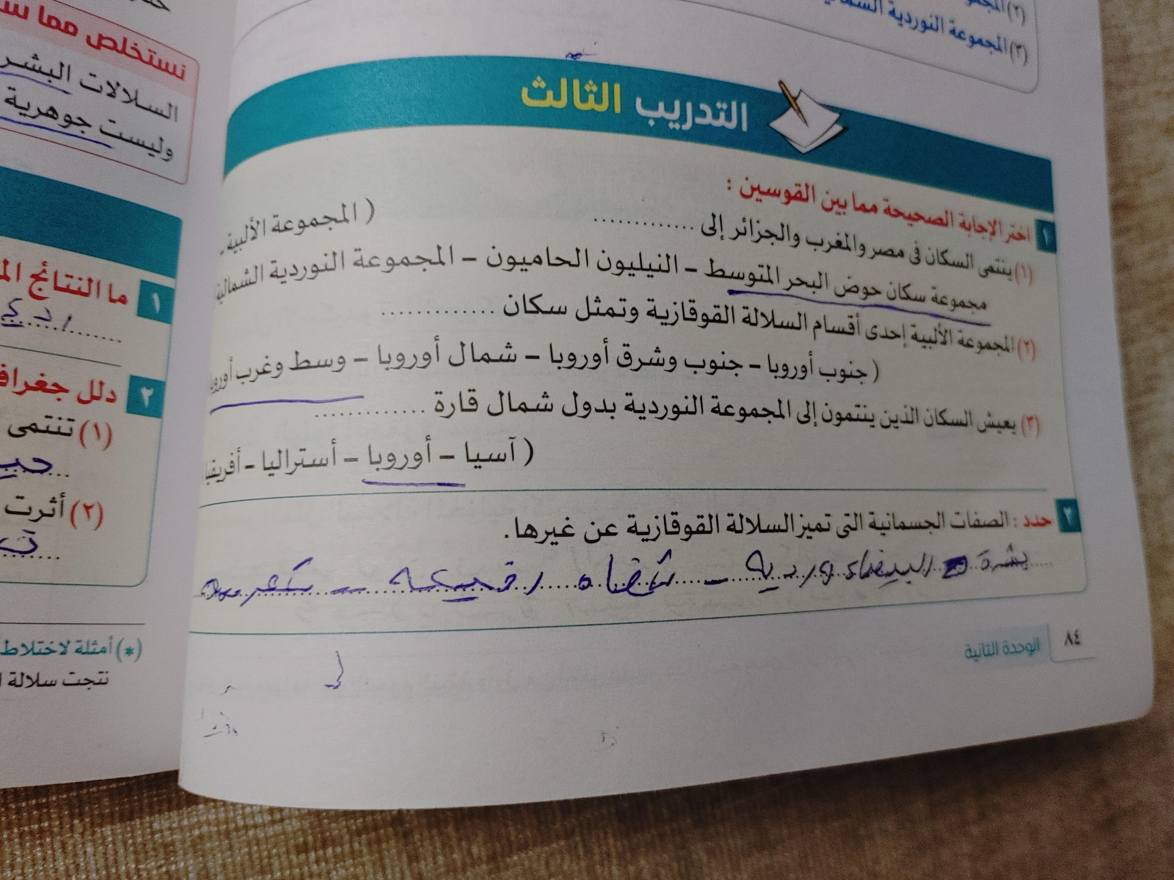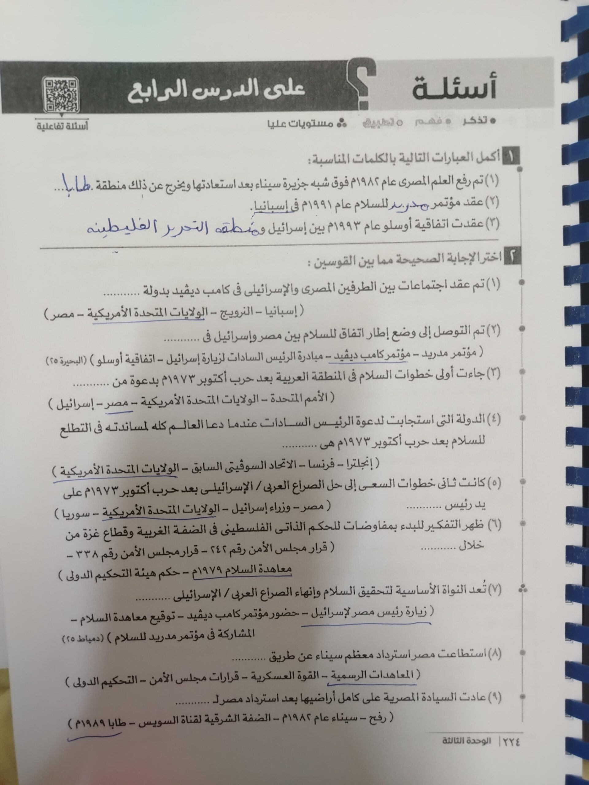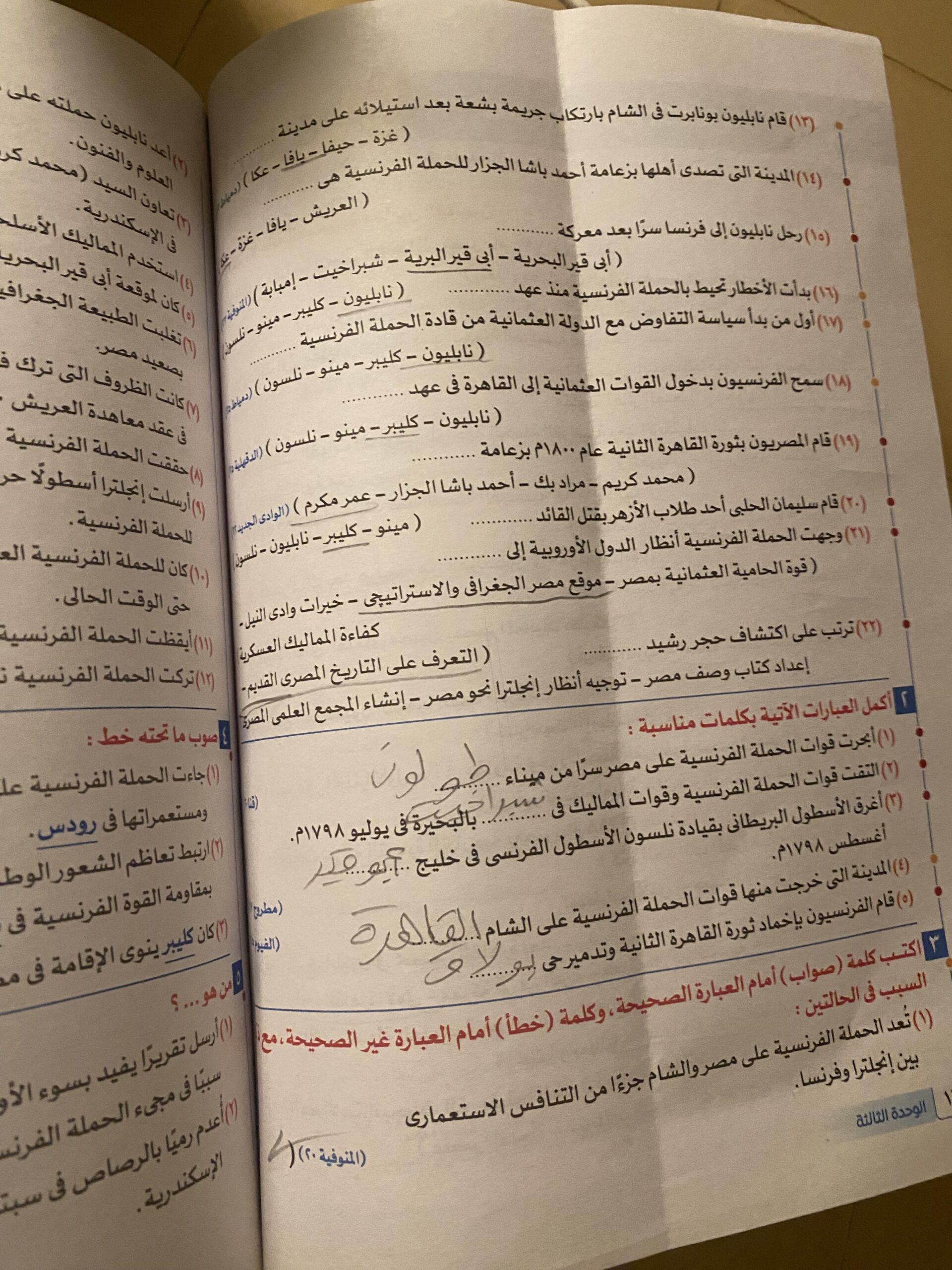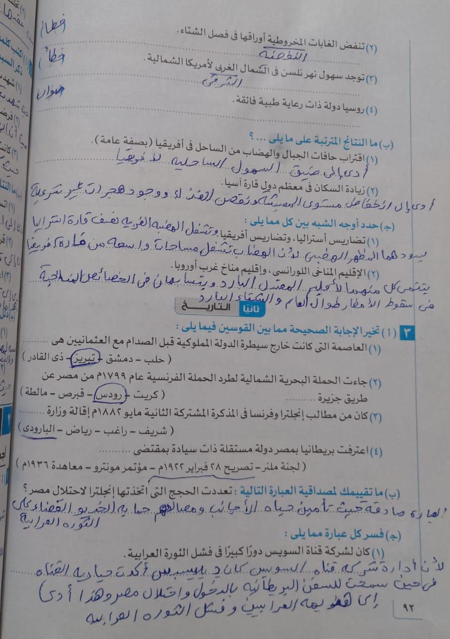 حلينا اليوم تدريبات الدرس التاني مصر والقضيه الفلسطينه ولا يوجد واجب بس يا ريت نعمل لاالواجبات السابقه