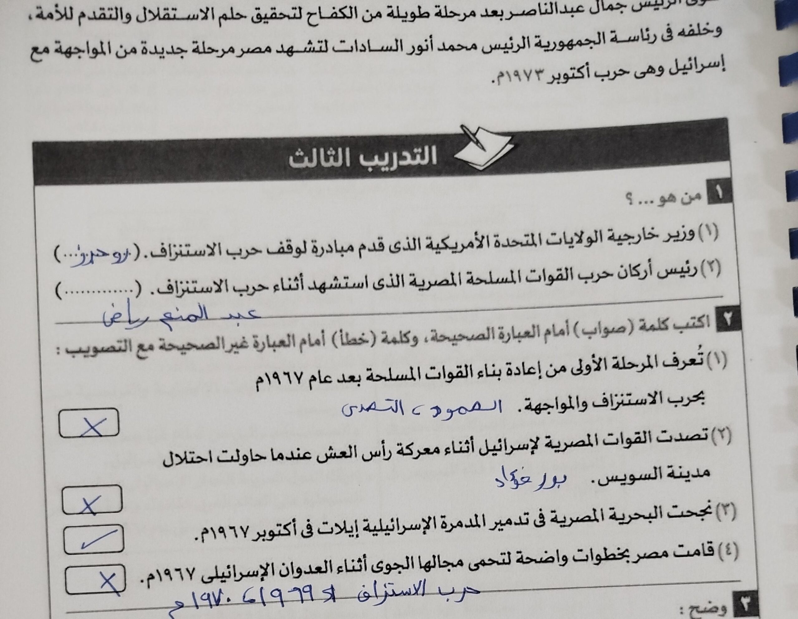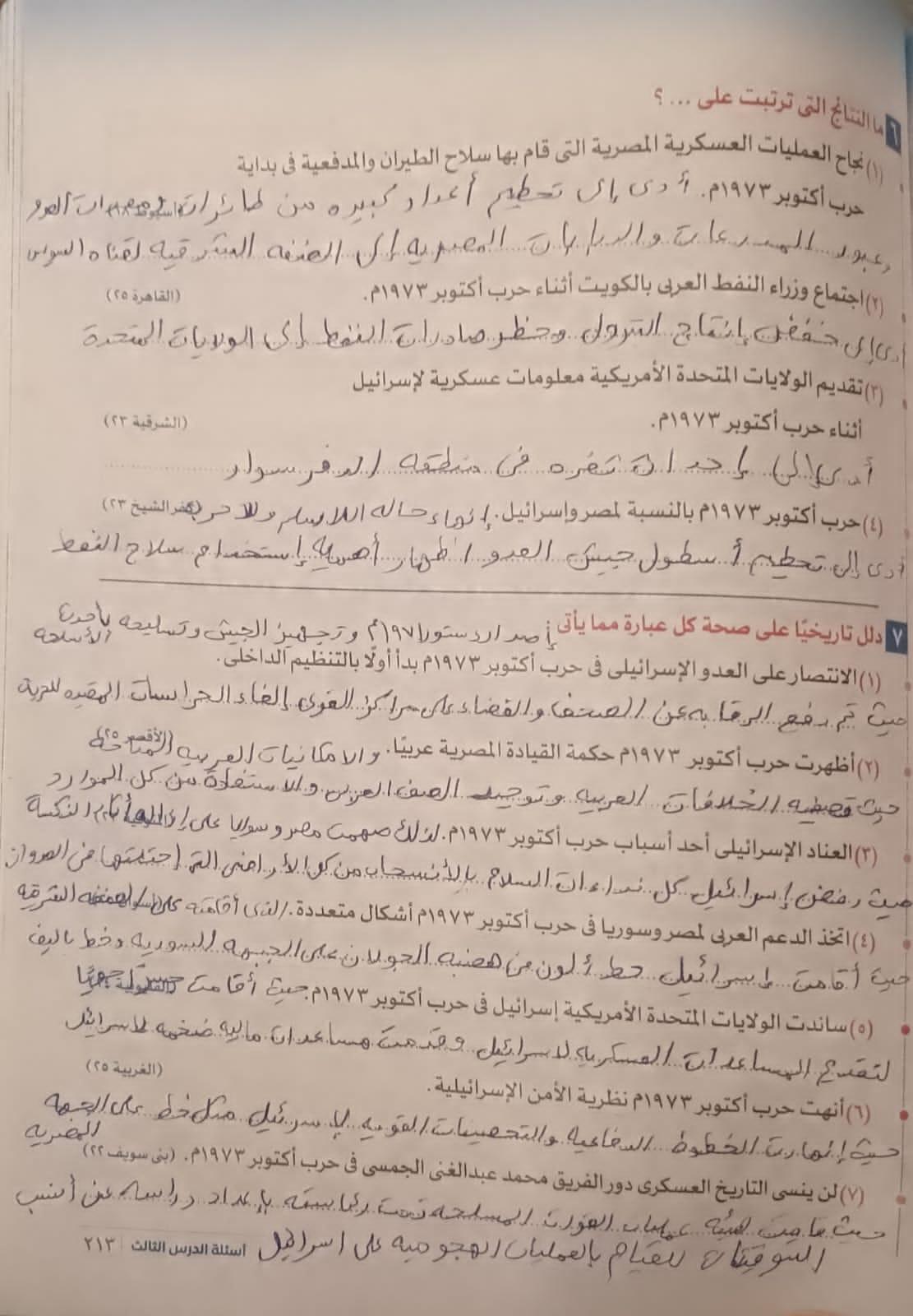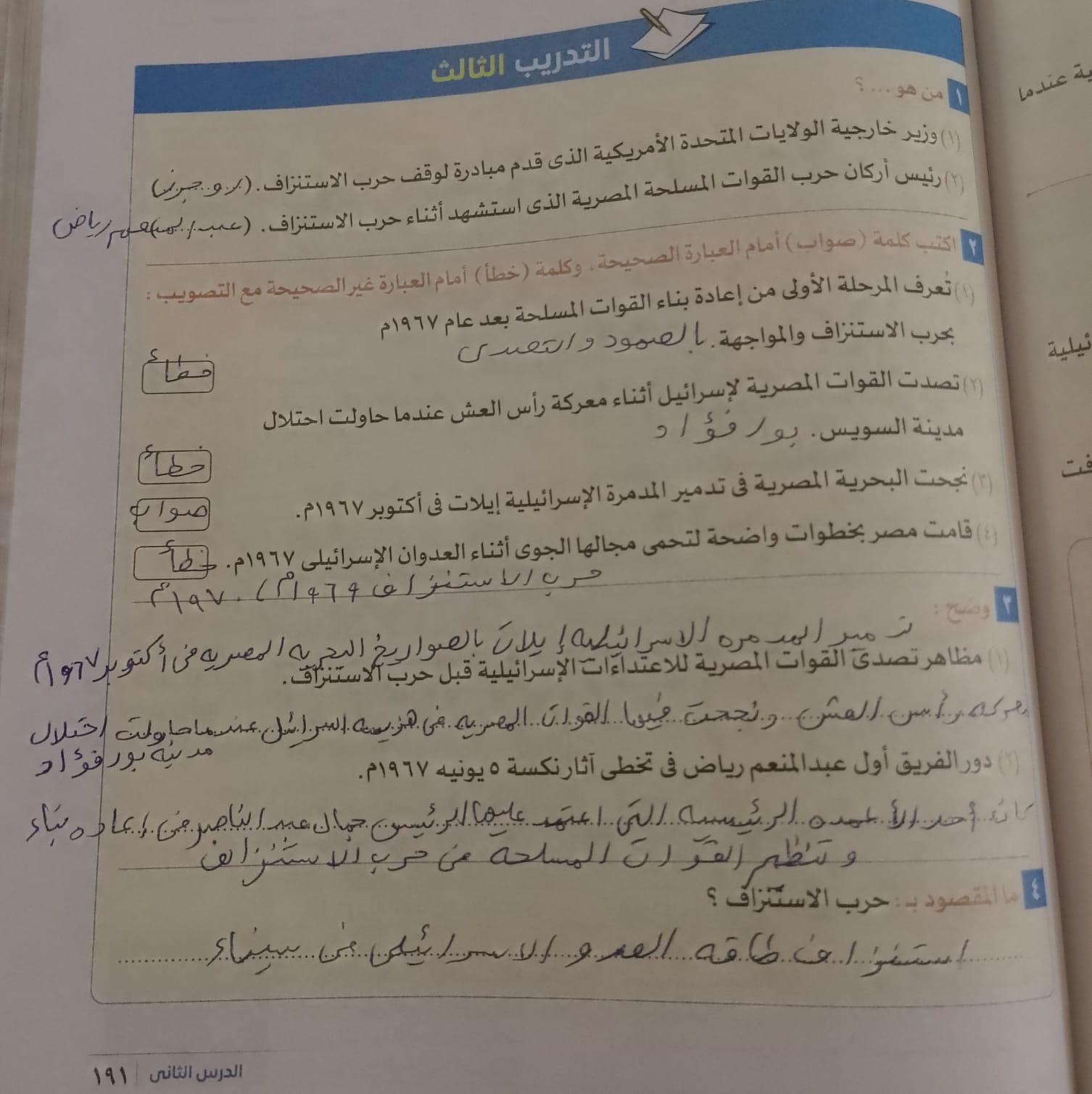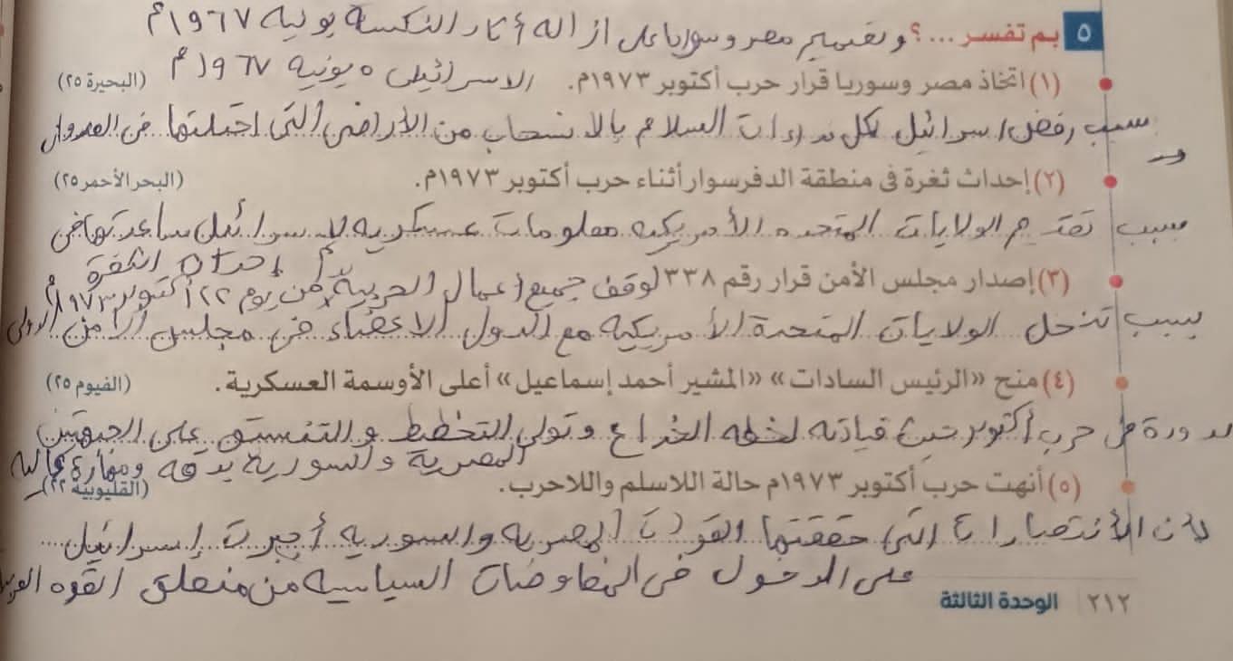 انتهينا من الدرس وحل التدريبات والواجب السؤال الخامس والسادس والسابع فقط من تدريبات حرب اكتوبر