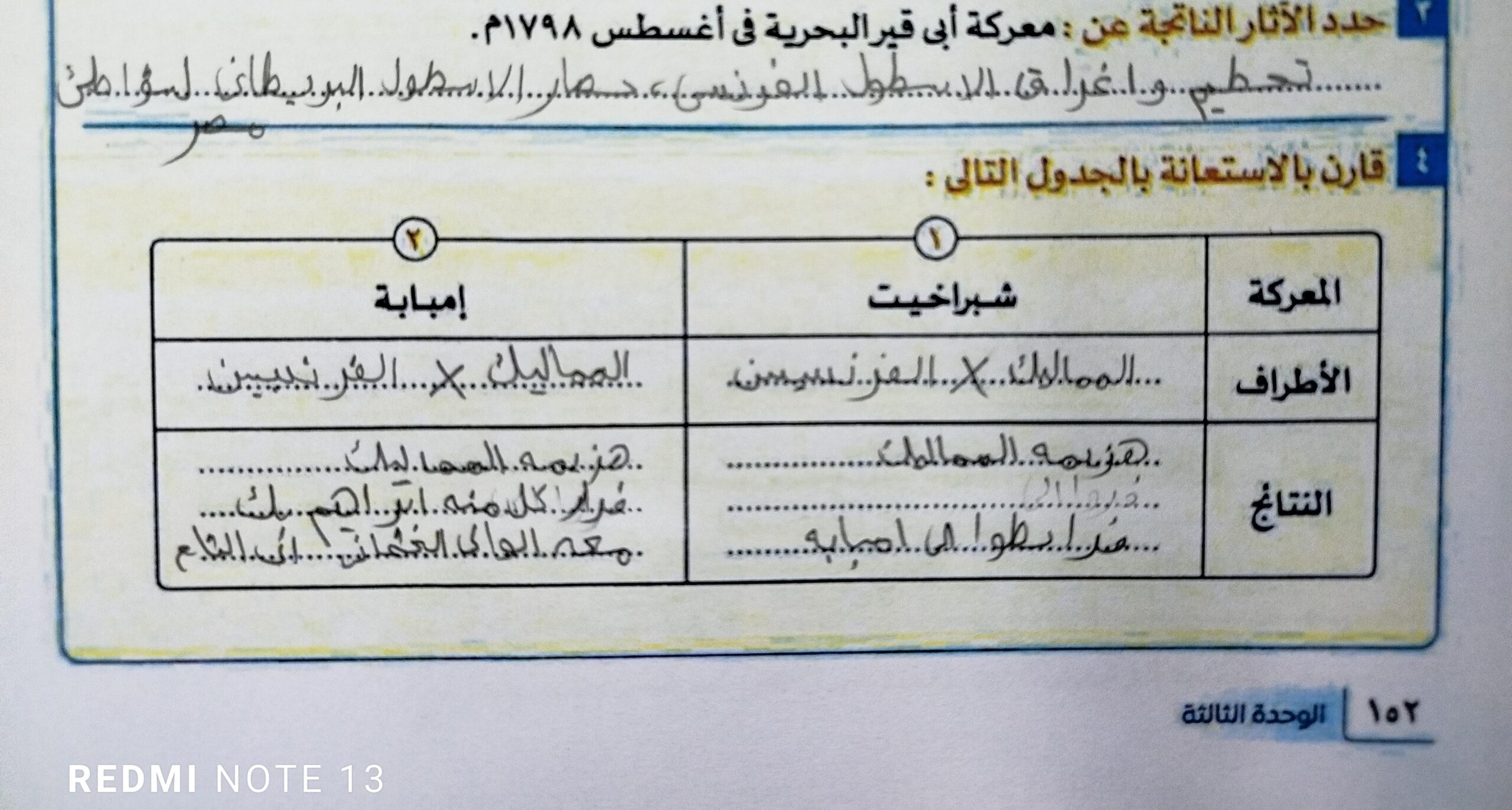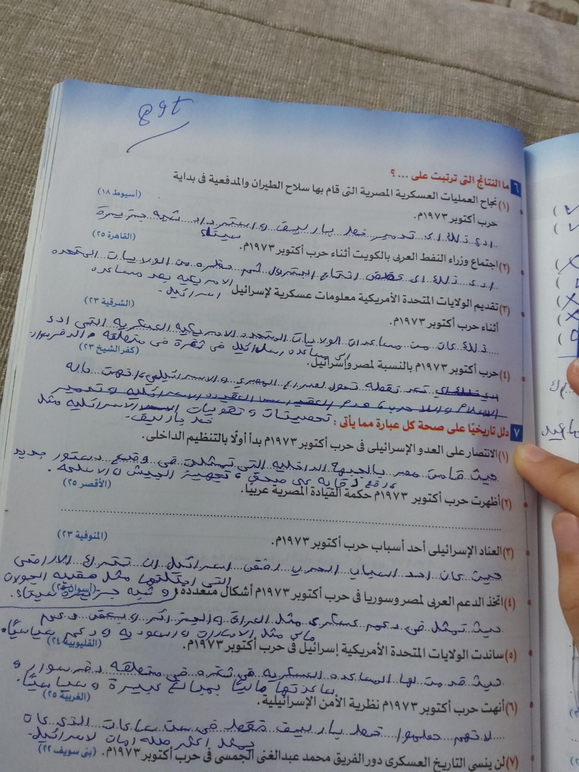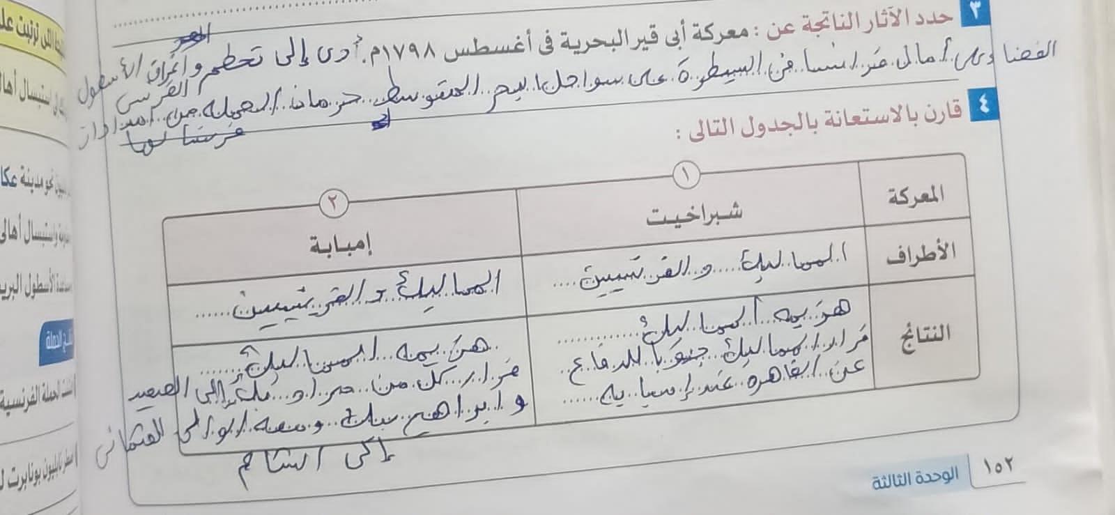 انتهينا من الدرس وحل التدريبات والواجب السؤال الخامس والسادس والسابع فقط من تدريبات حرب اكتوبر