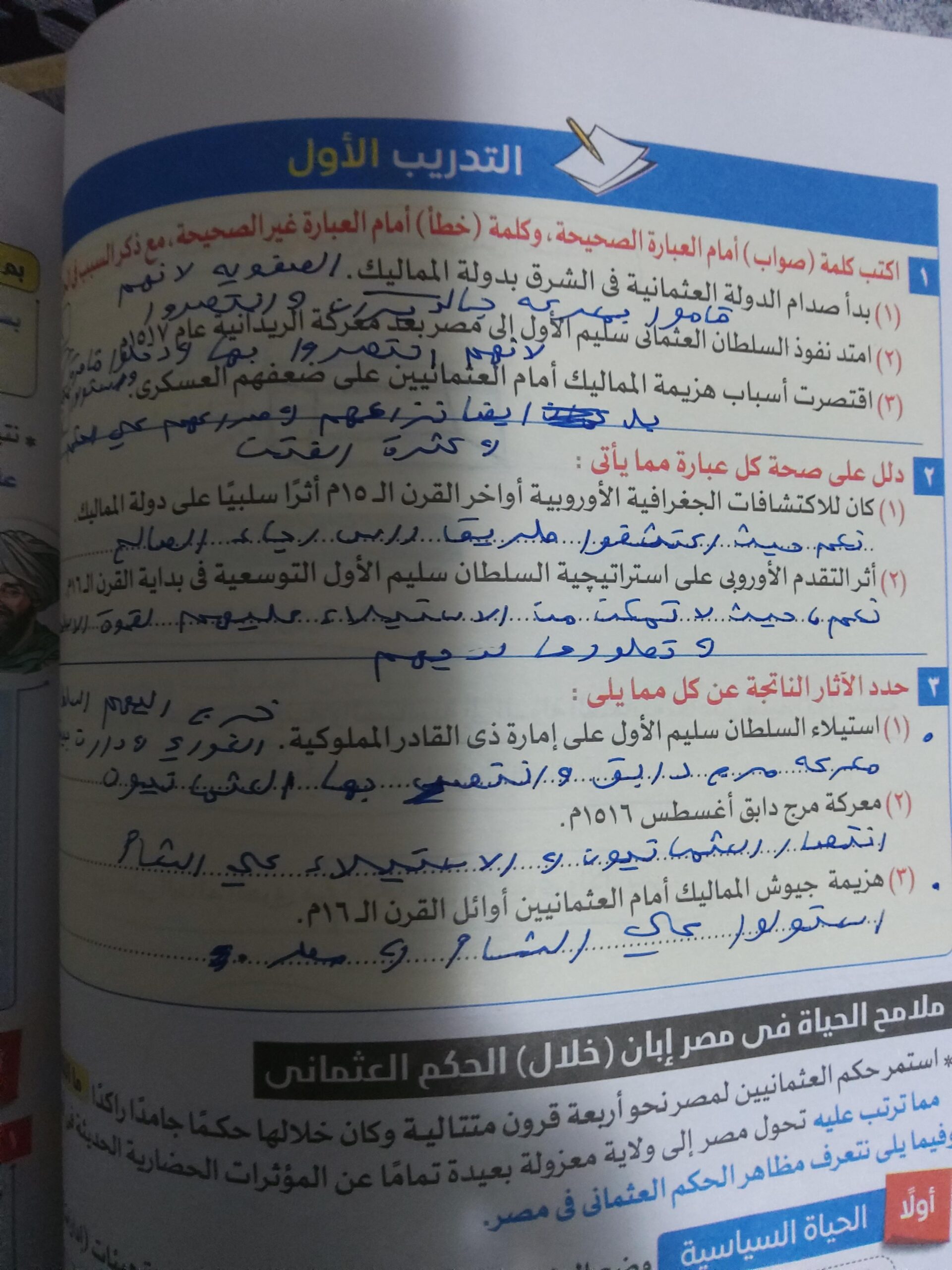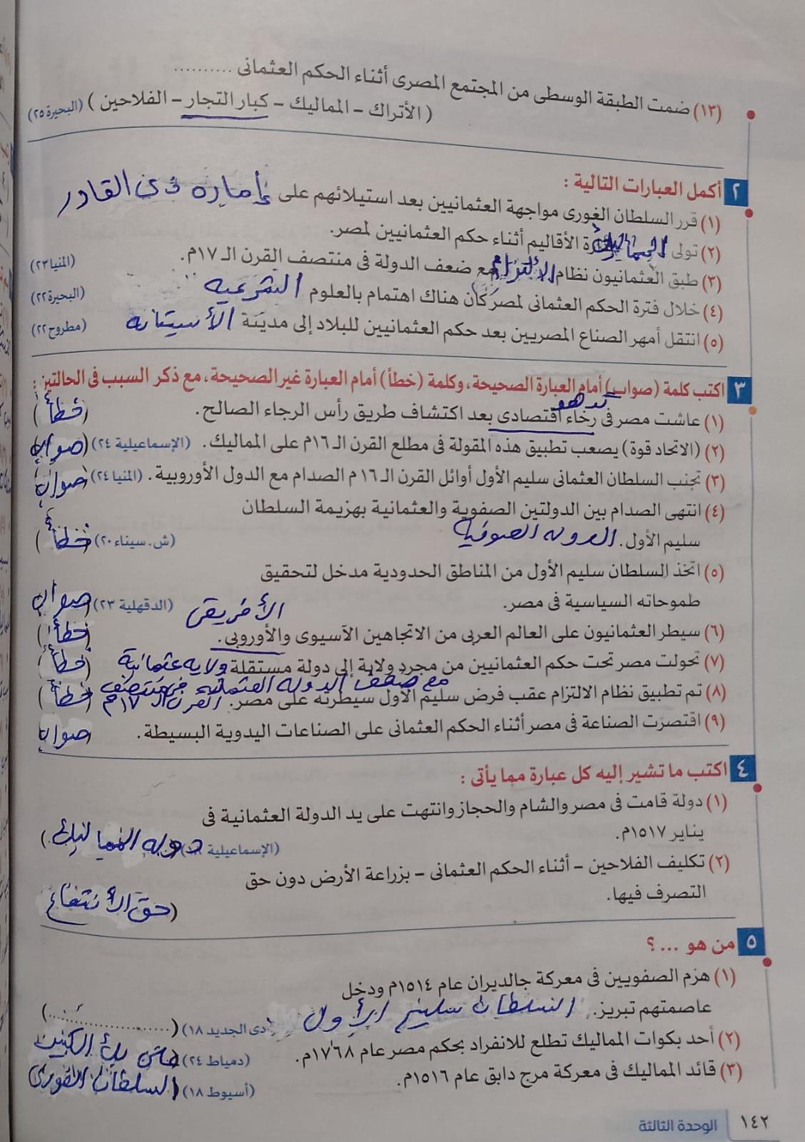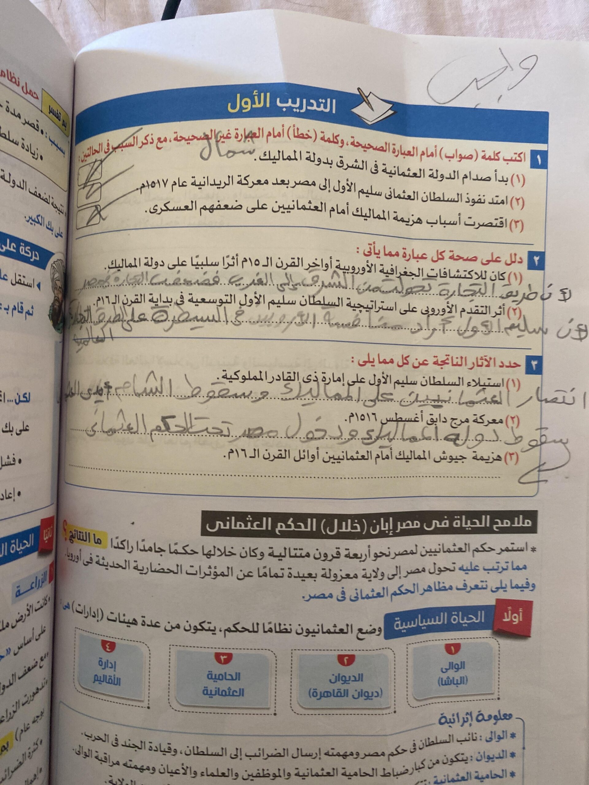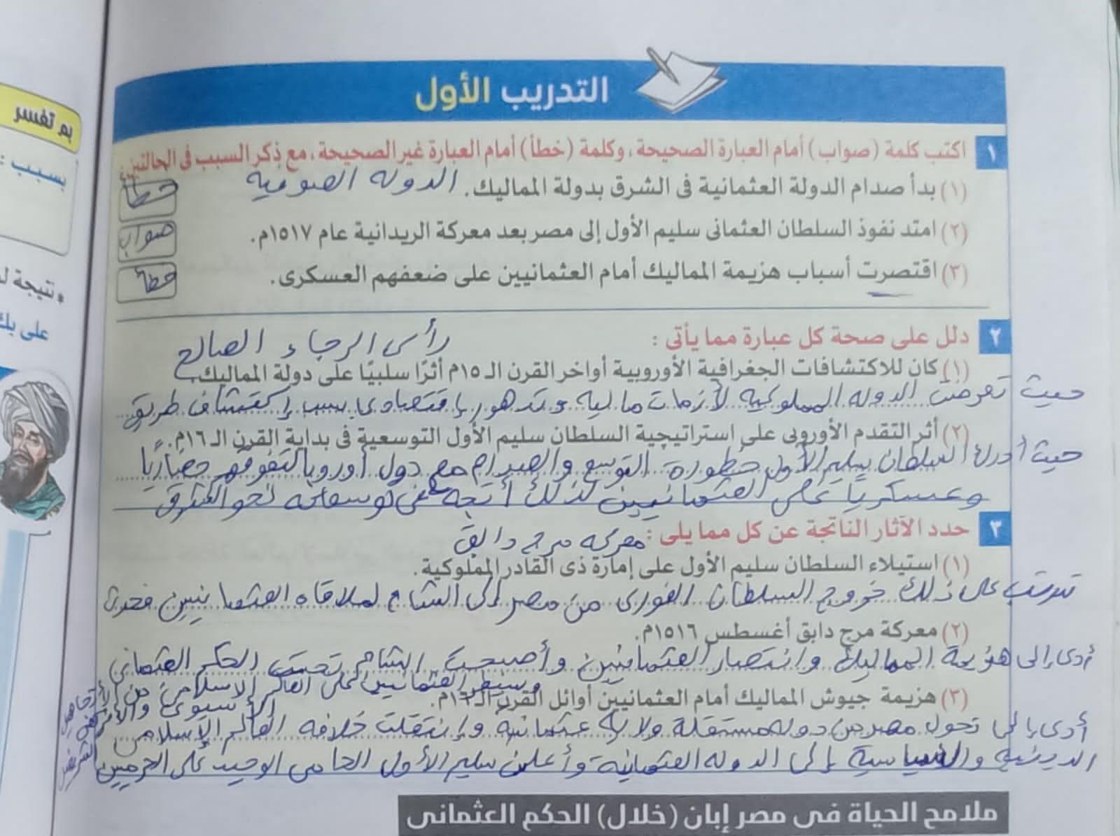 اخدنا اليوم الجزء الاول من مصر بين المماليك والعثمانين والواجب تدريب 1 ص 136