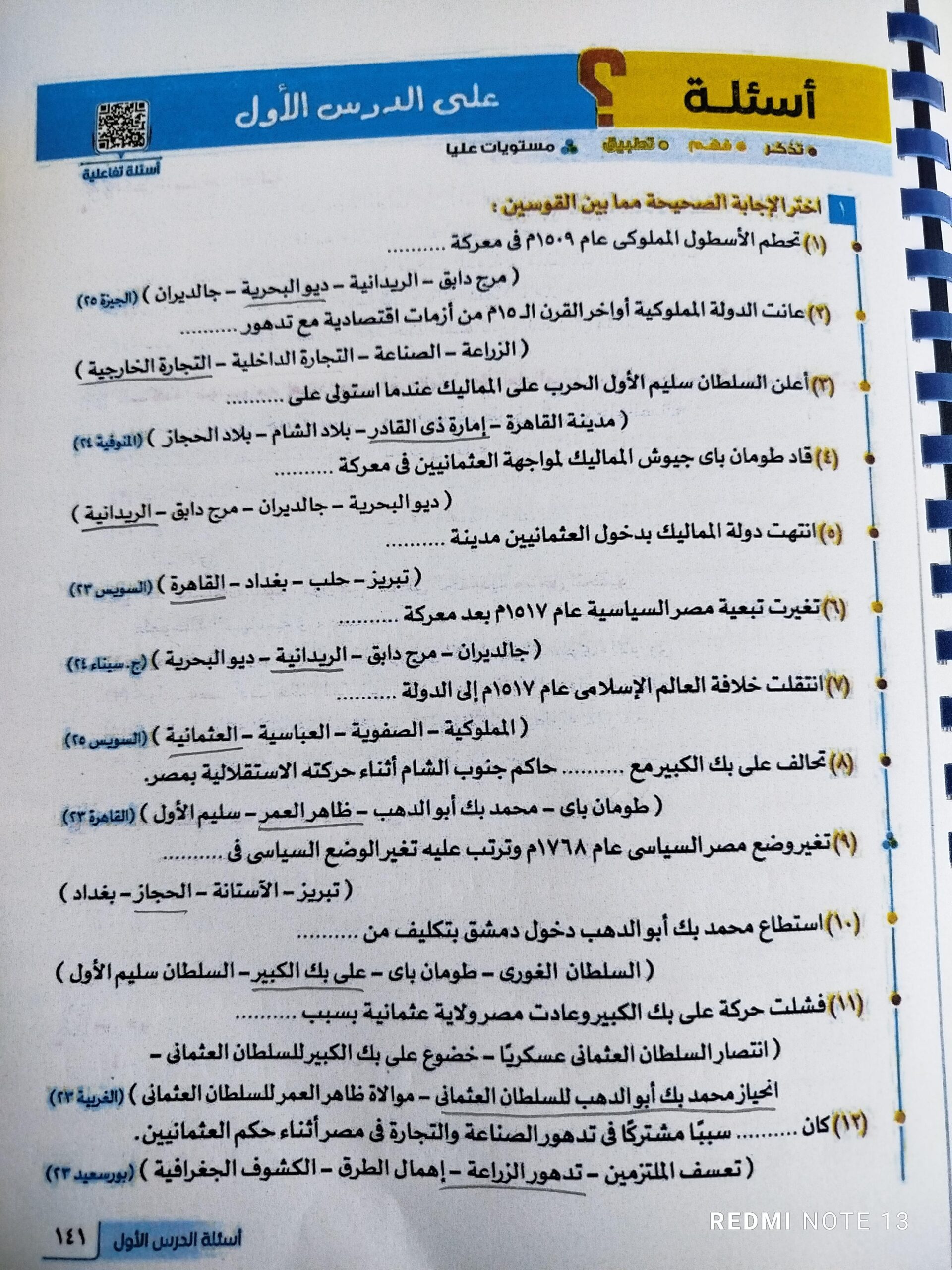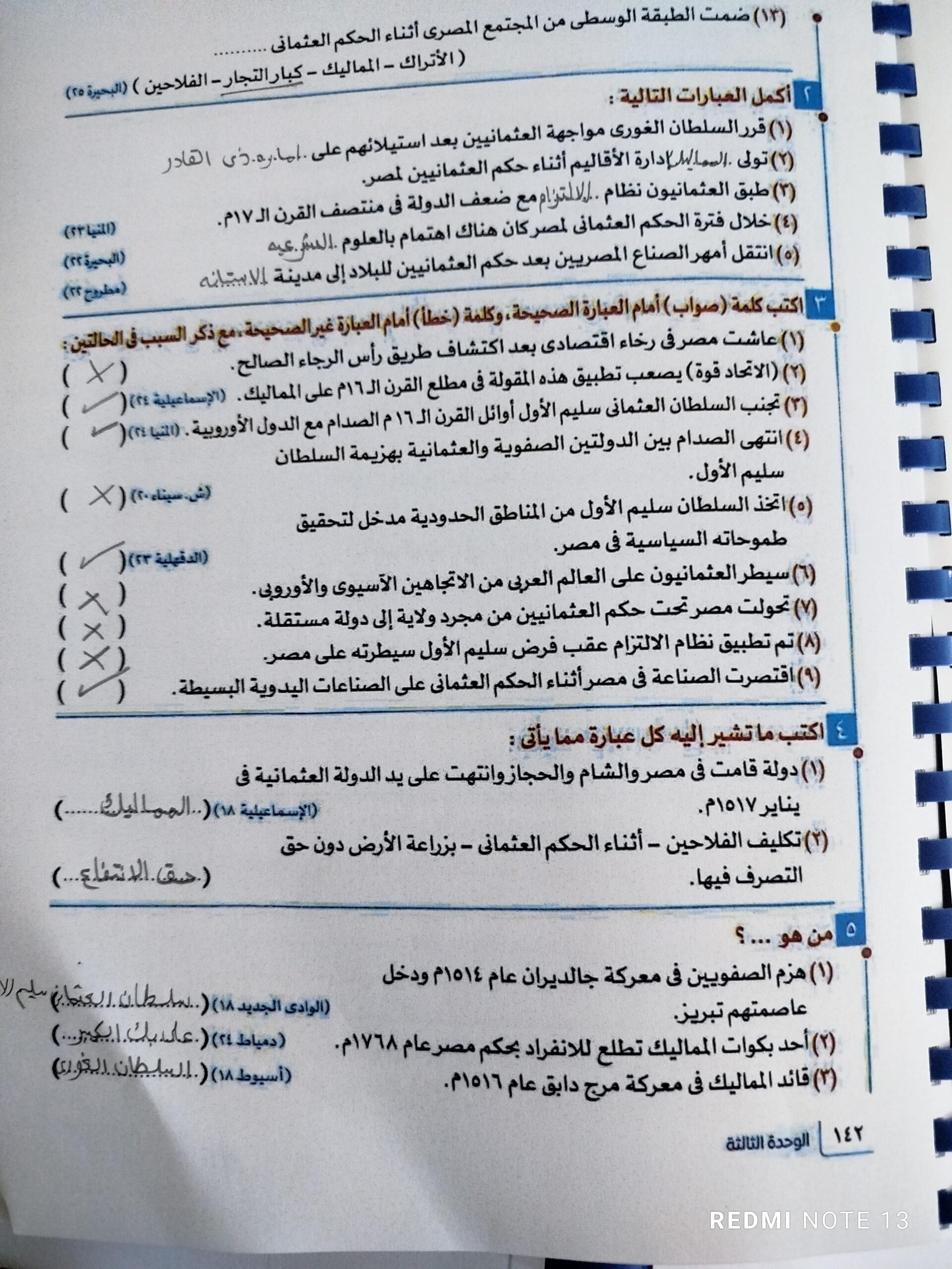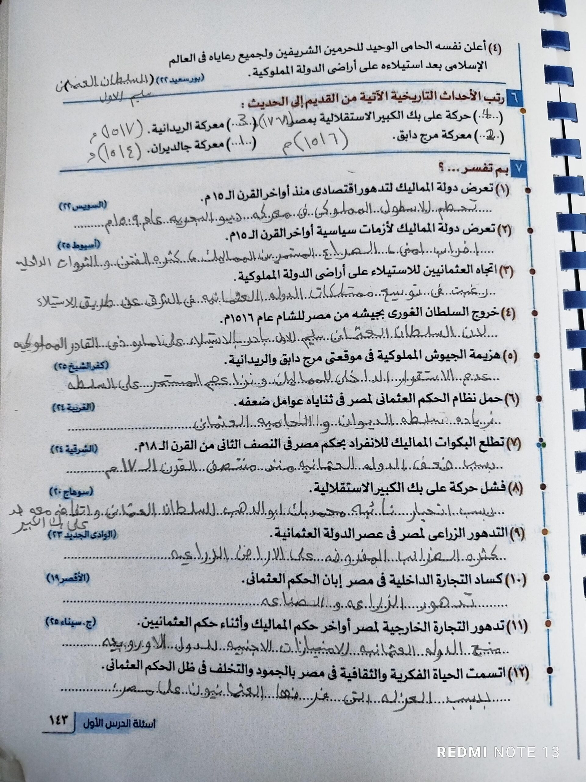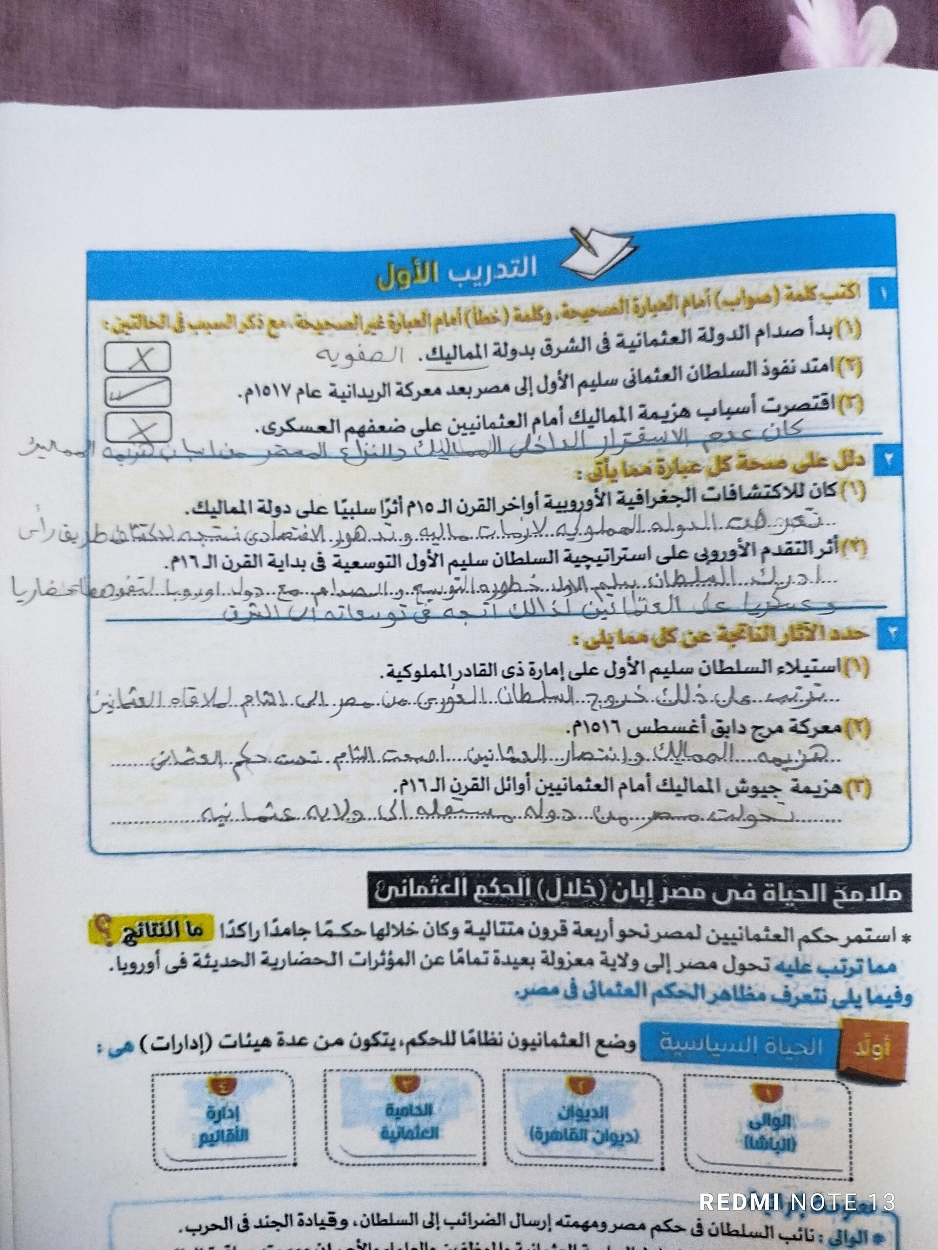 اخدنا اليوم الجزء الاول من مصر بين المماليك والعثمانين والواجب تدريب 1 ص 136