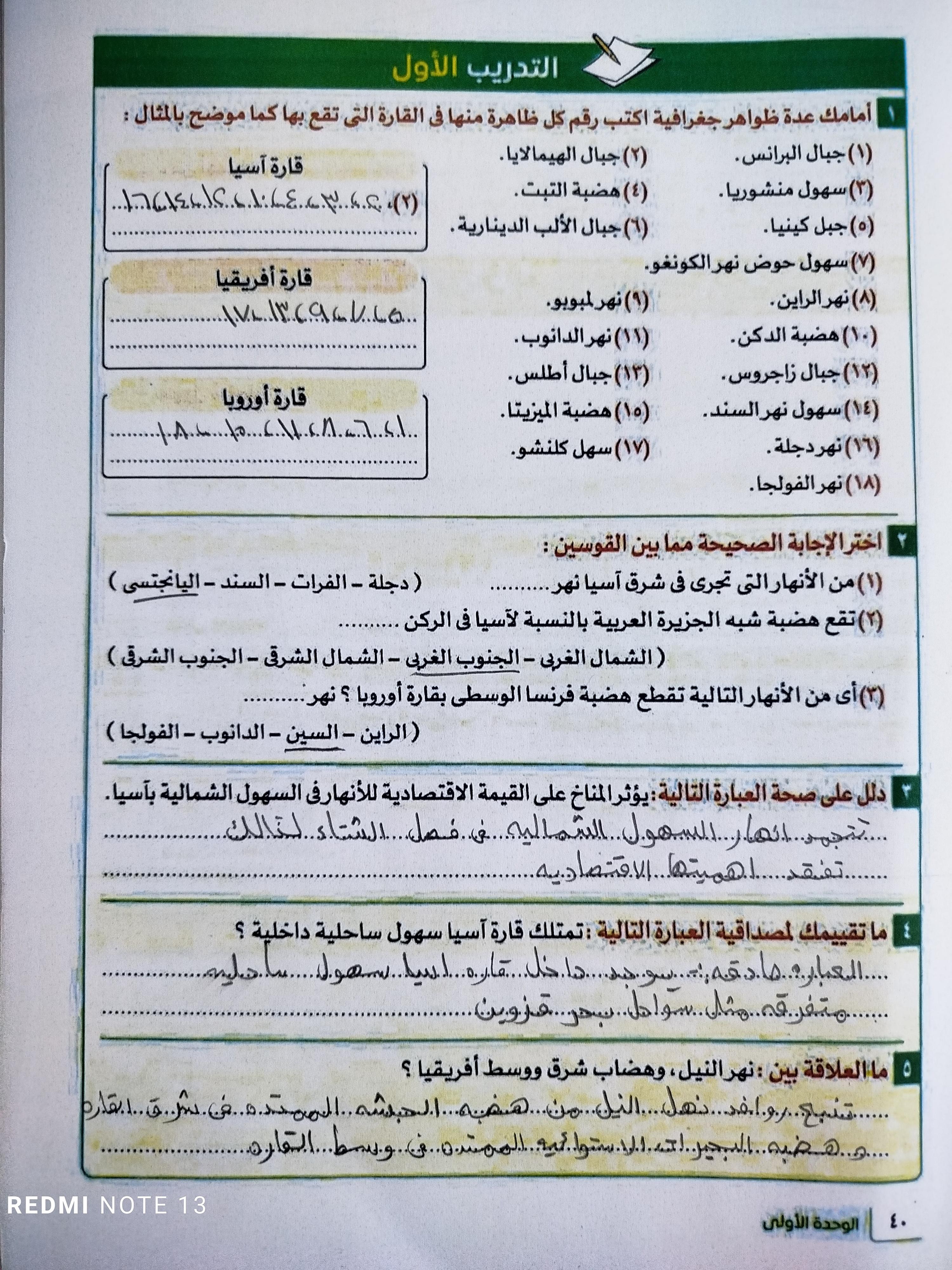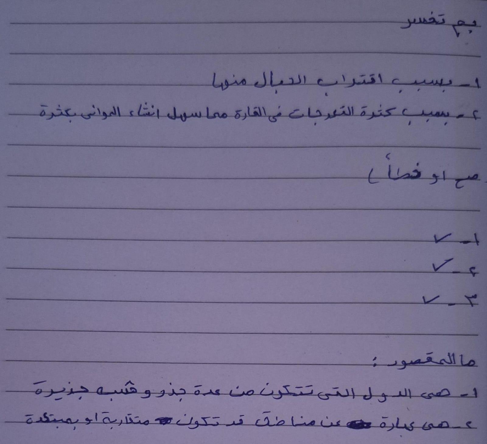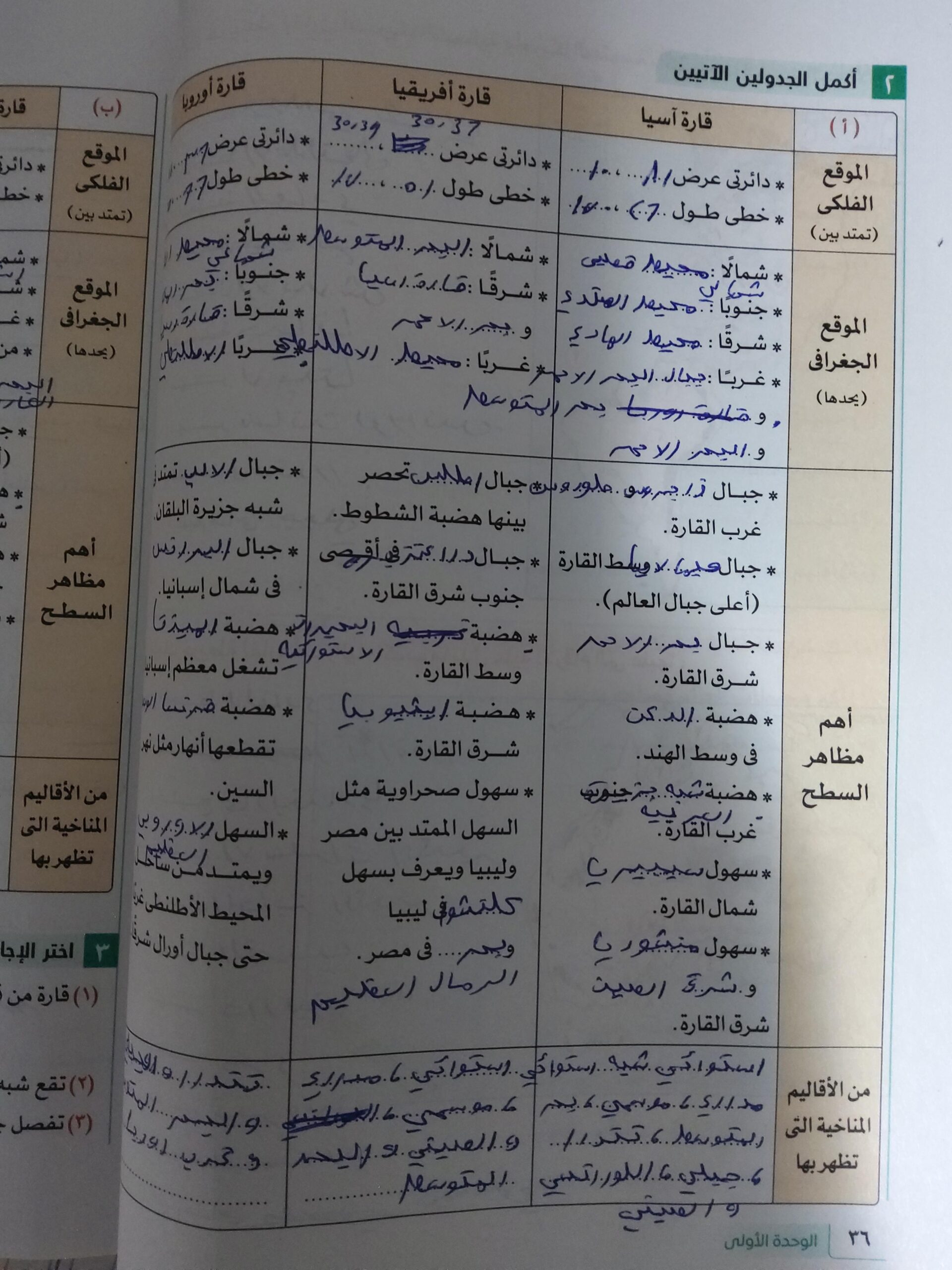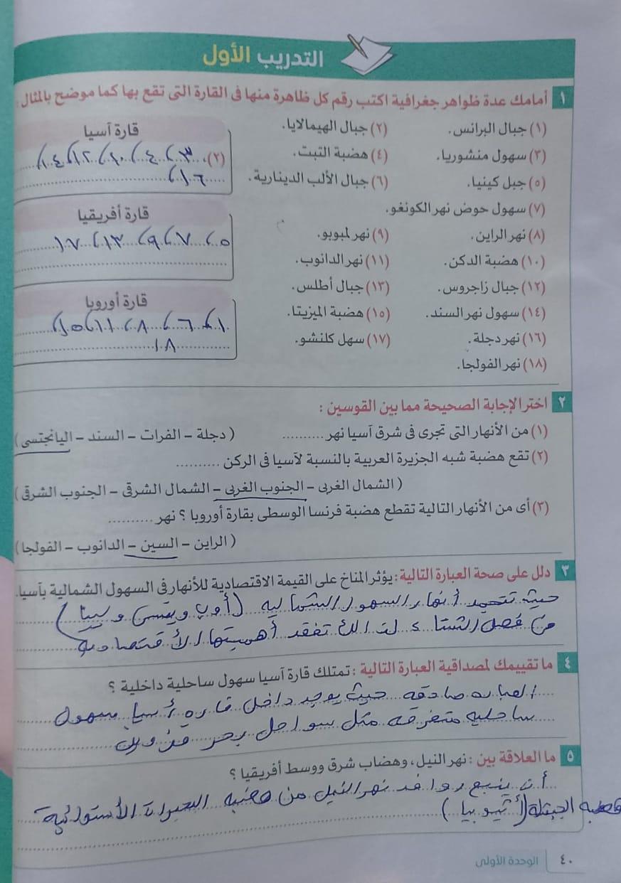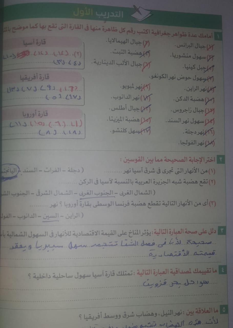 اخدنا الجزء الاول من الدرس التاني تضاريس العالم والواجب التدريب الاول ص38