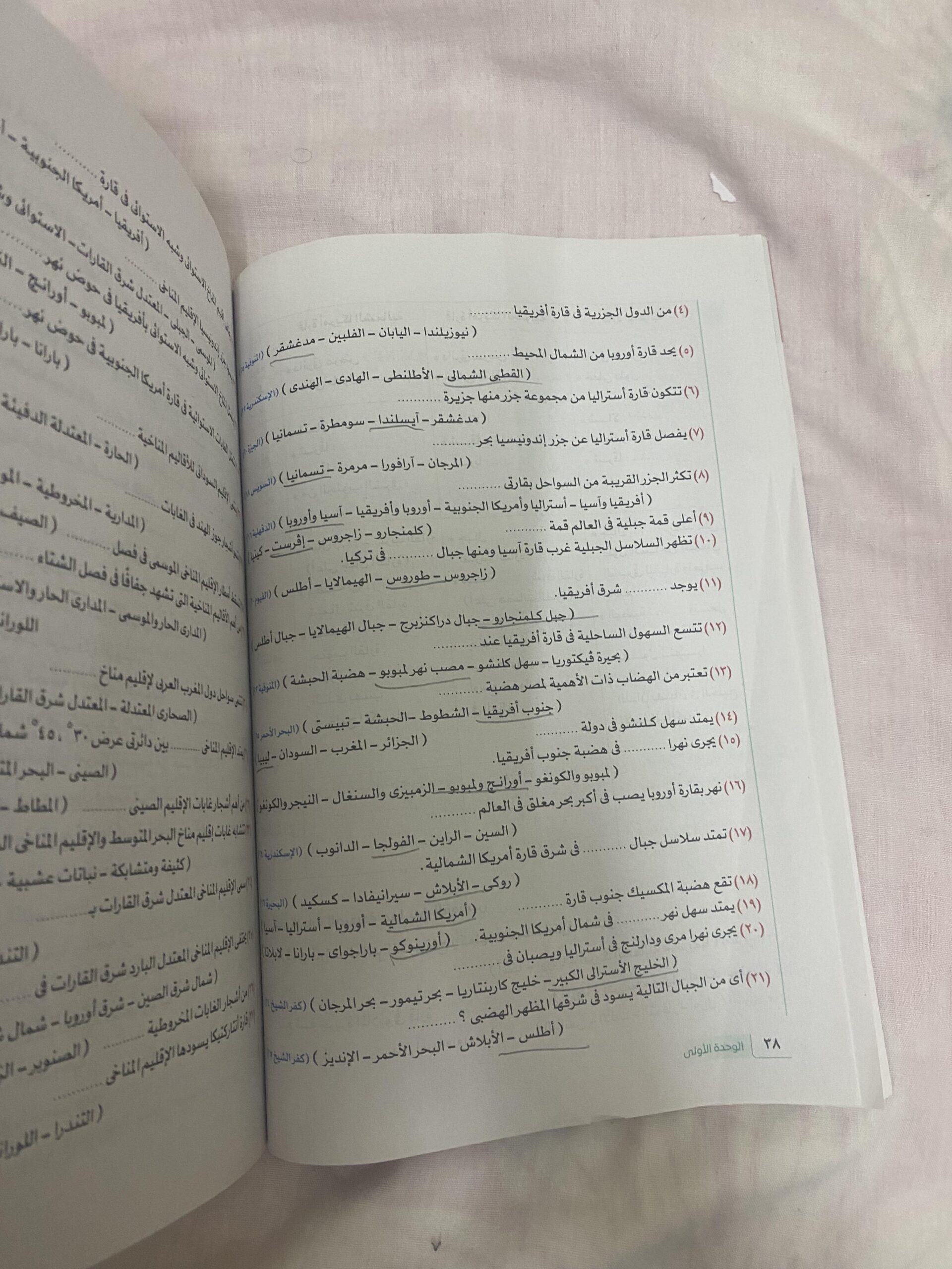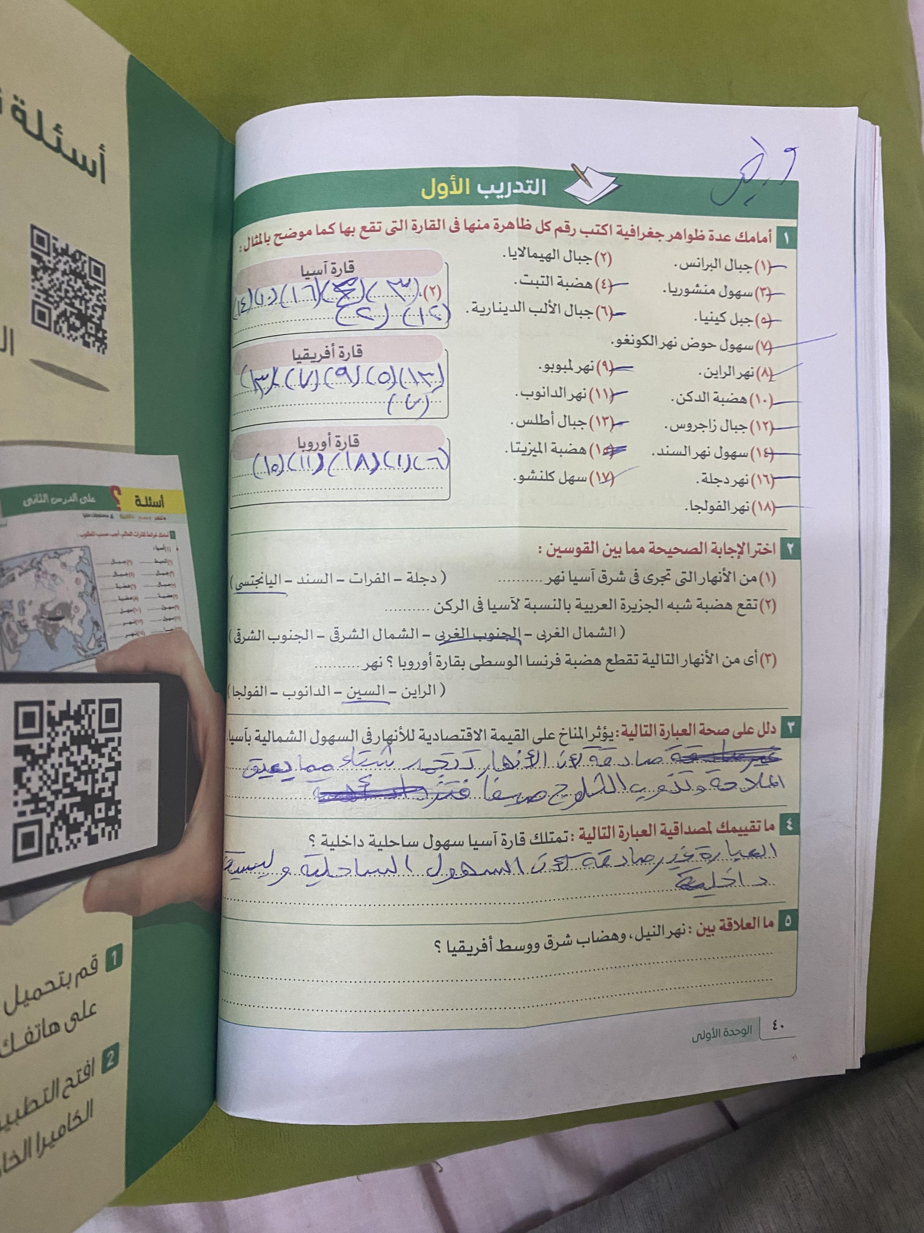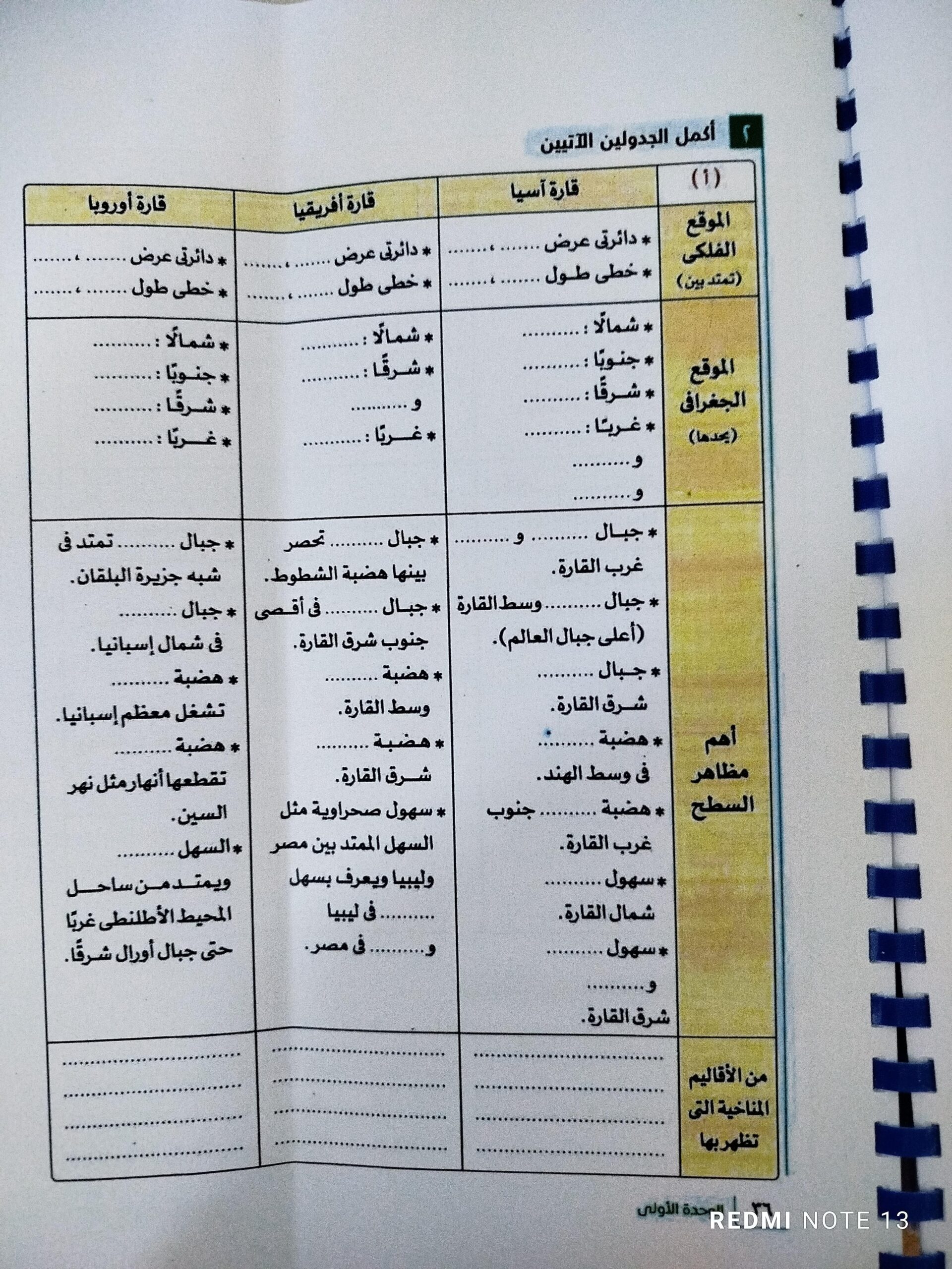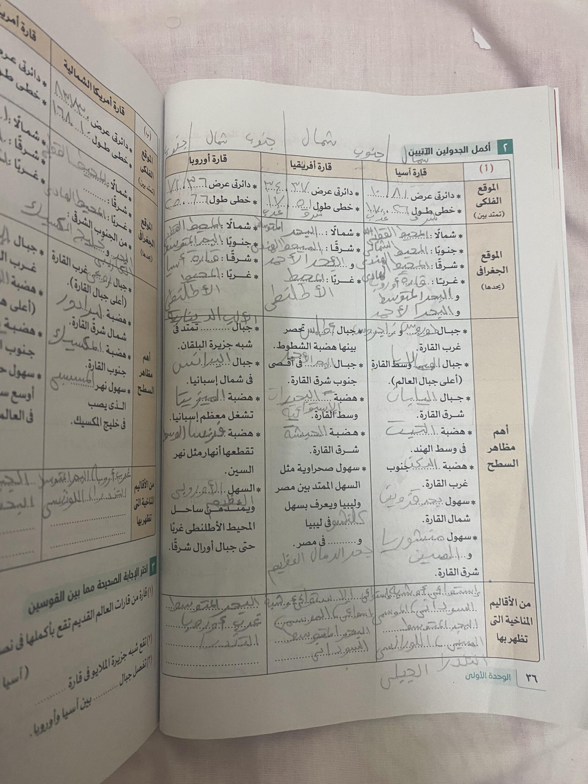 اخدنا الجزء الاول من الدرس التاني تضاريس العالم والواجب التدريب الاول ص38