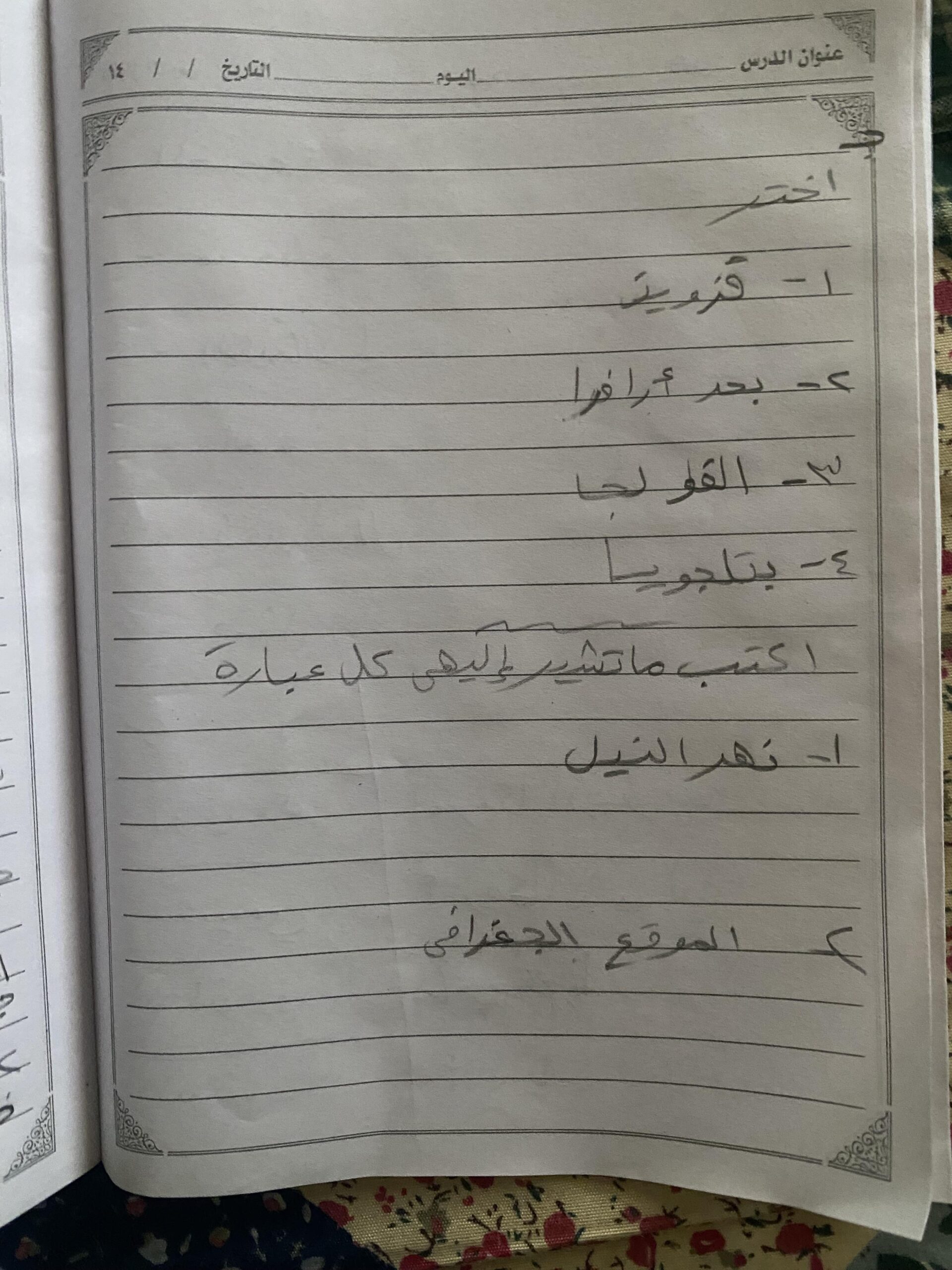اخذنا اليوم اختبار الدرس الاول