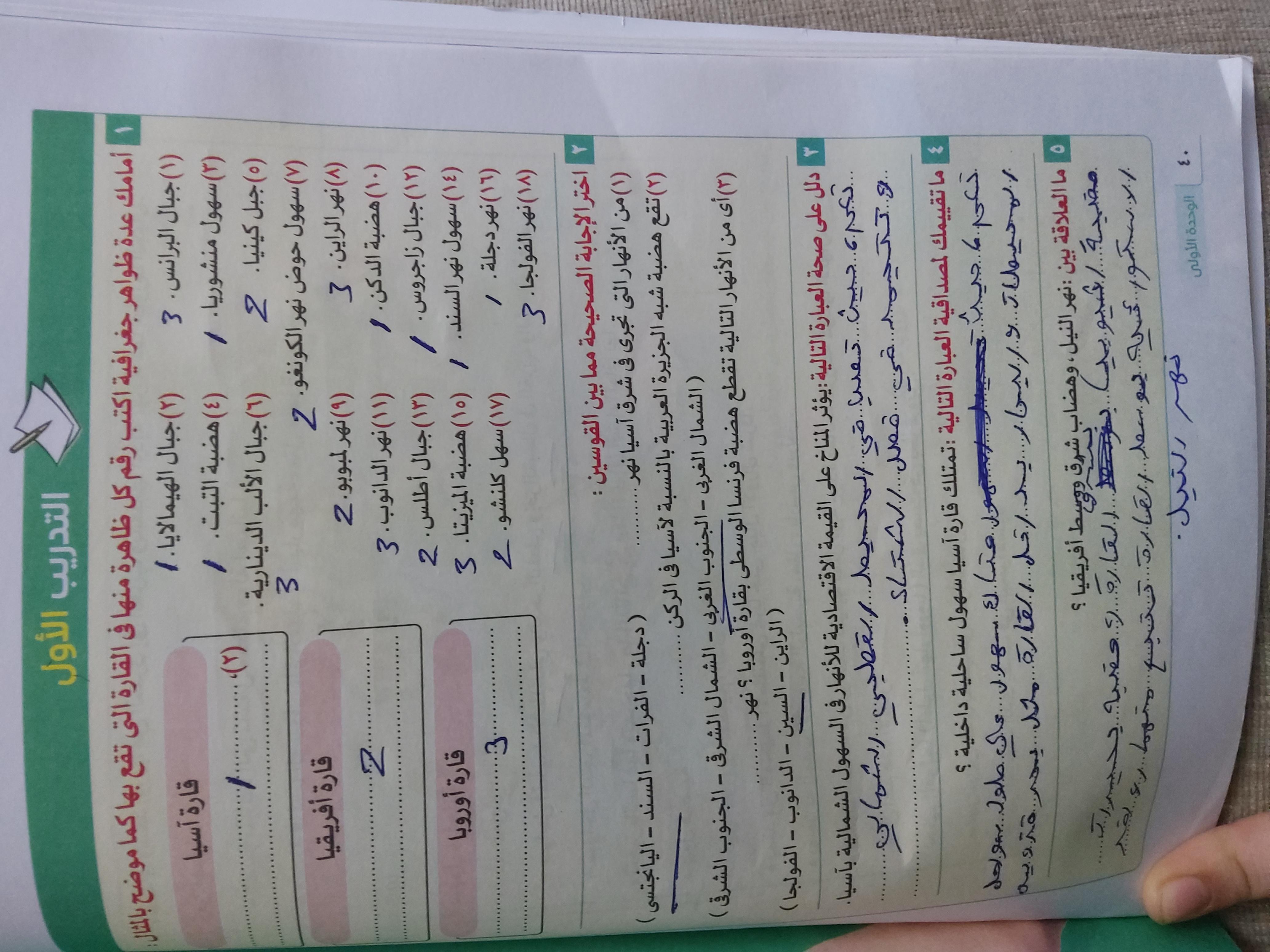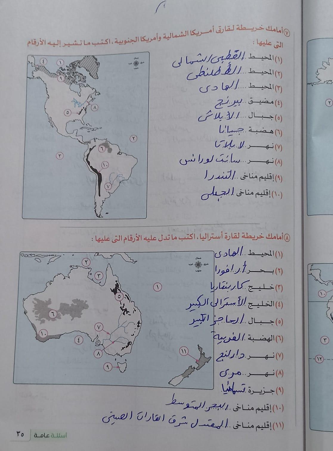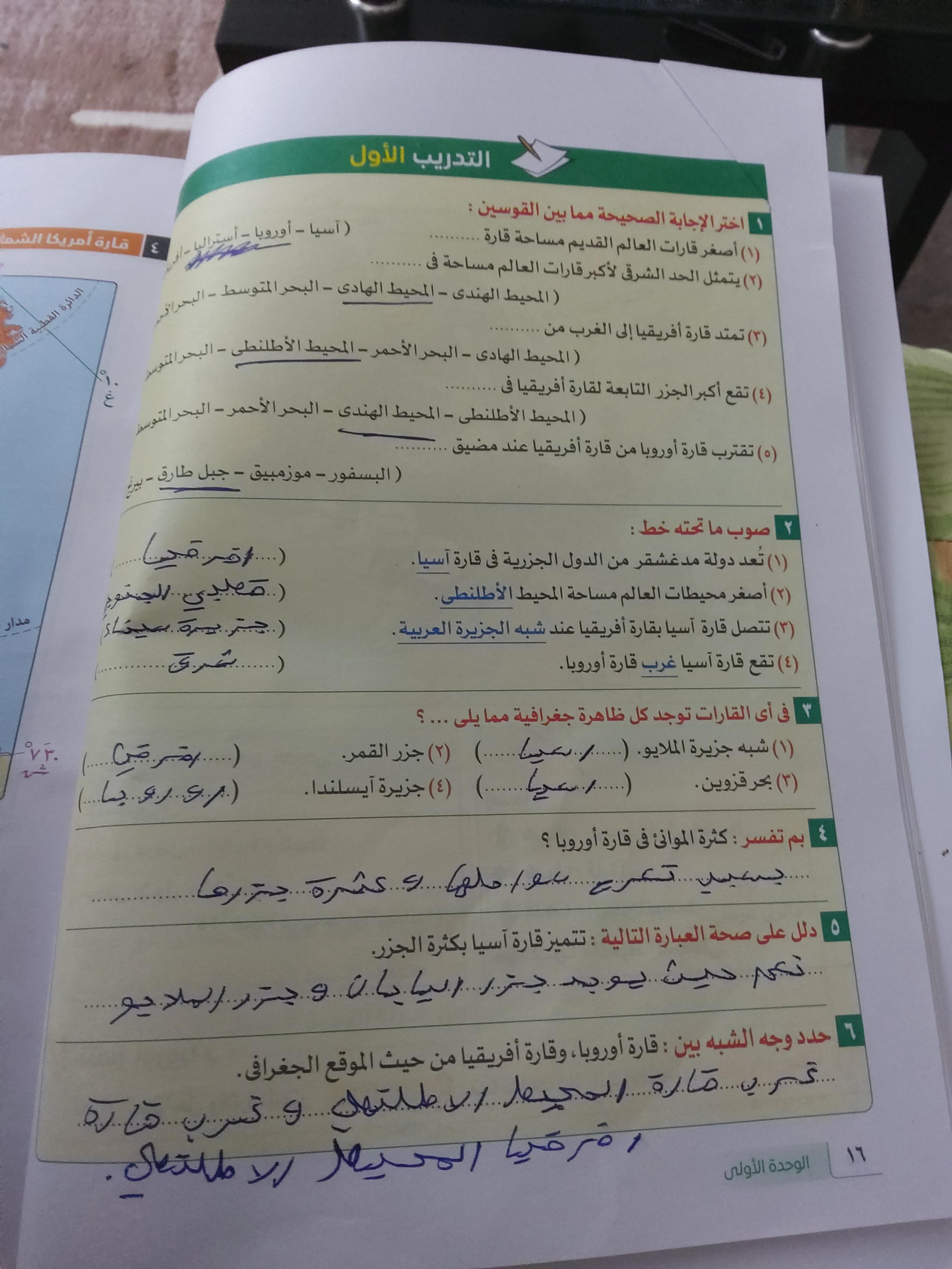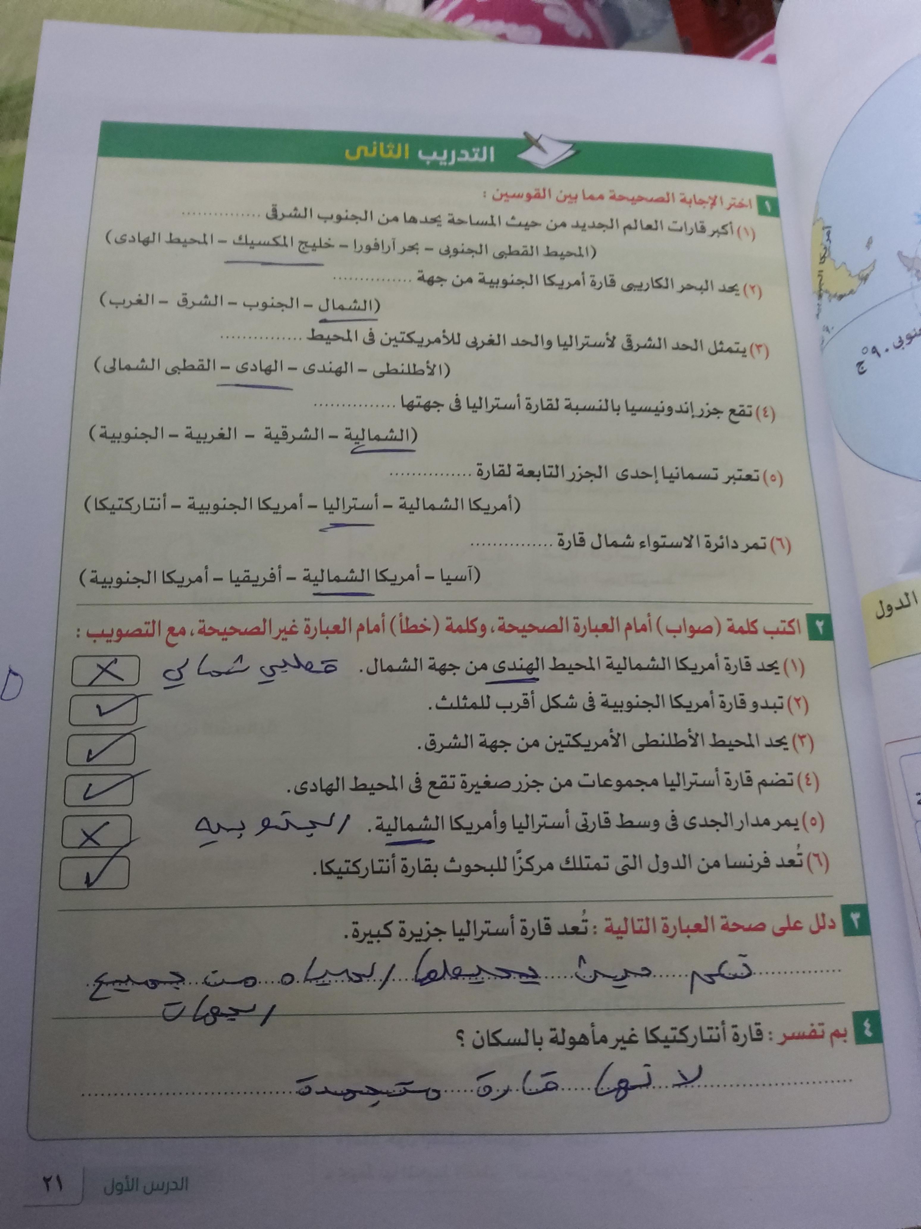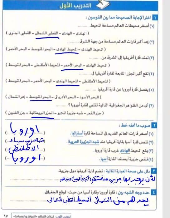 استكملنا اليوم باقي القارات والواجب هيكون تدريب 1 وتدرب 2 ص 17 و22