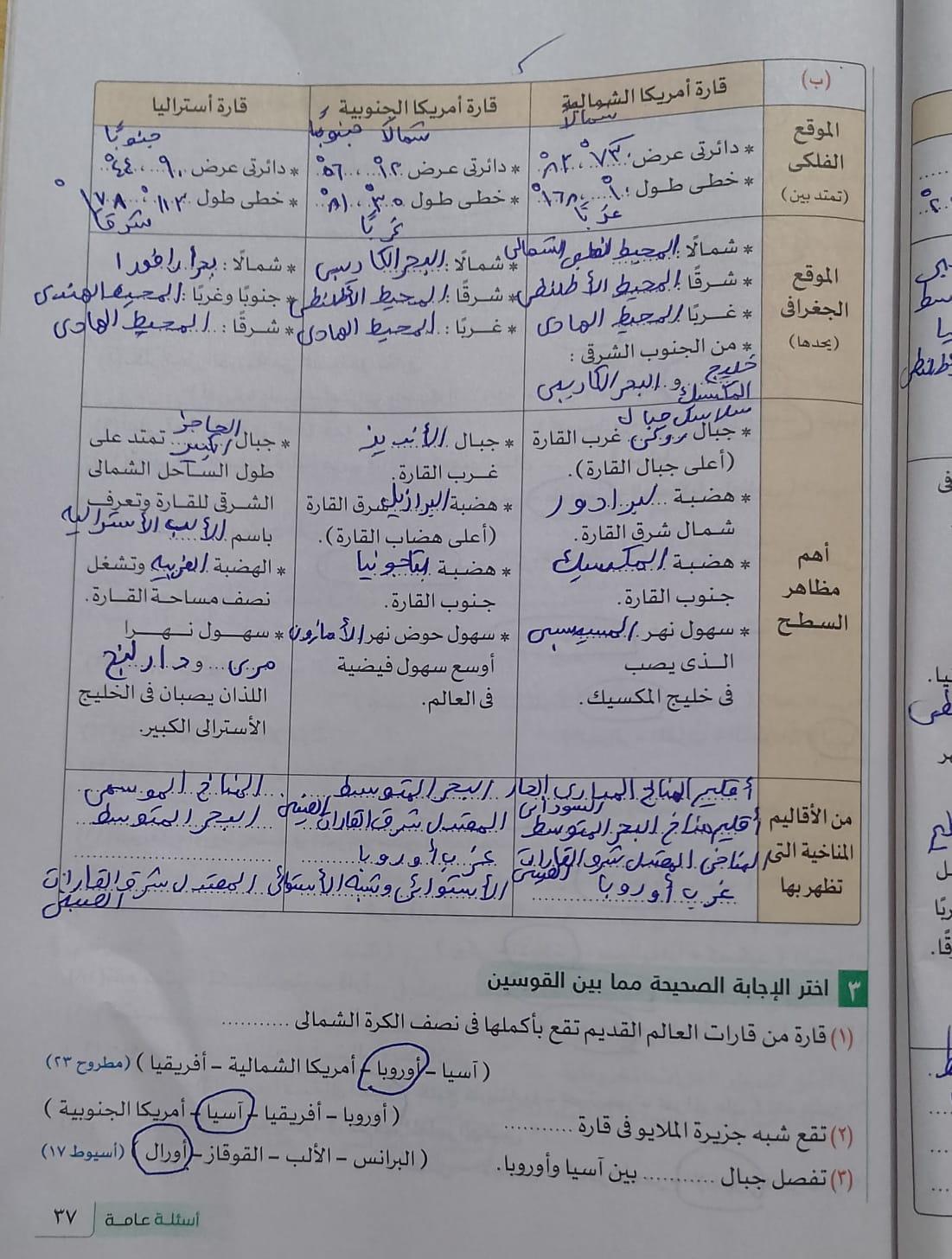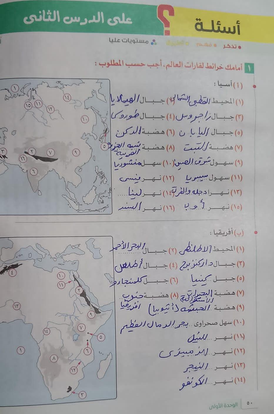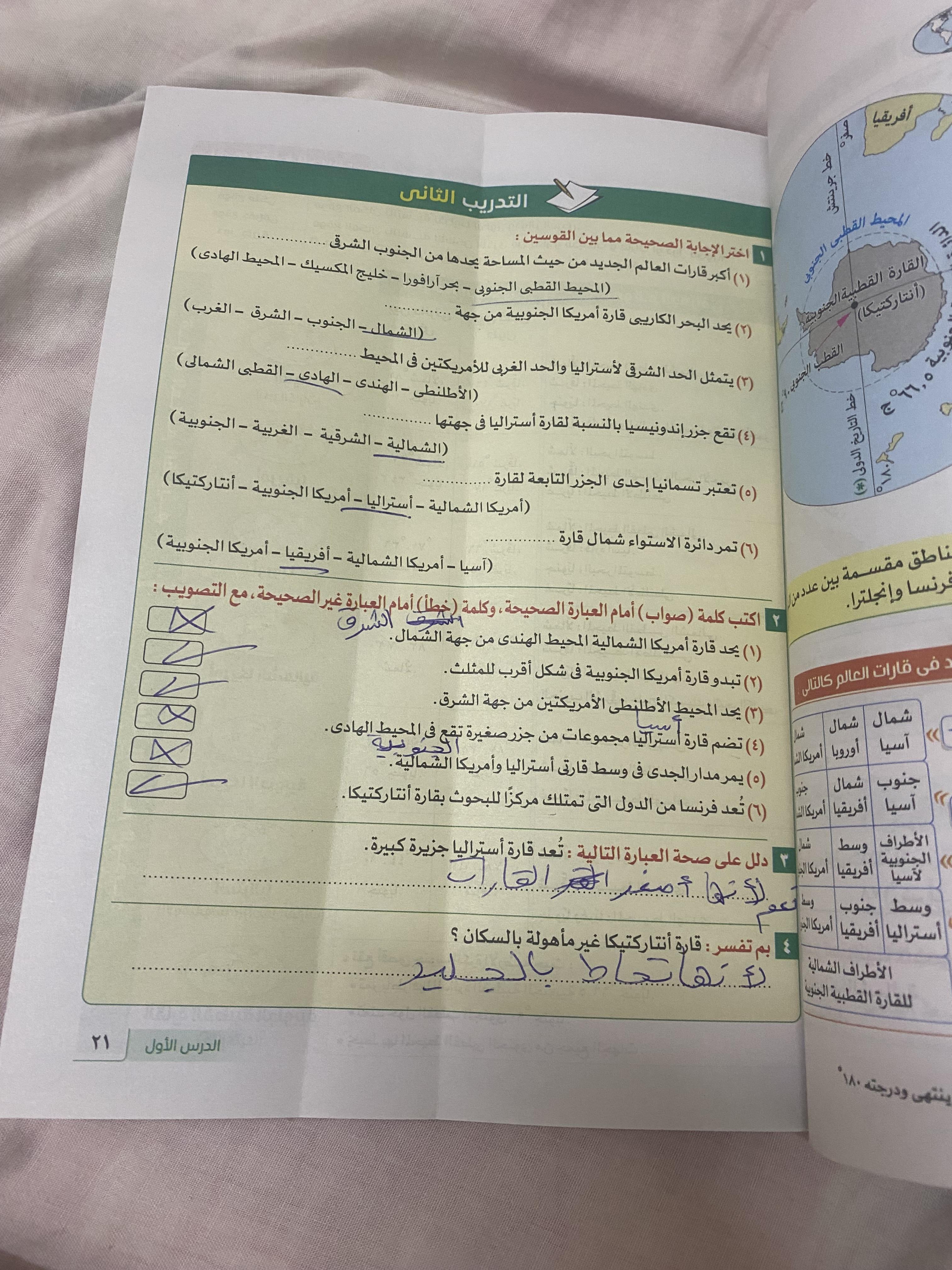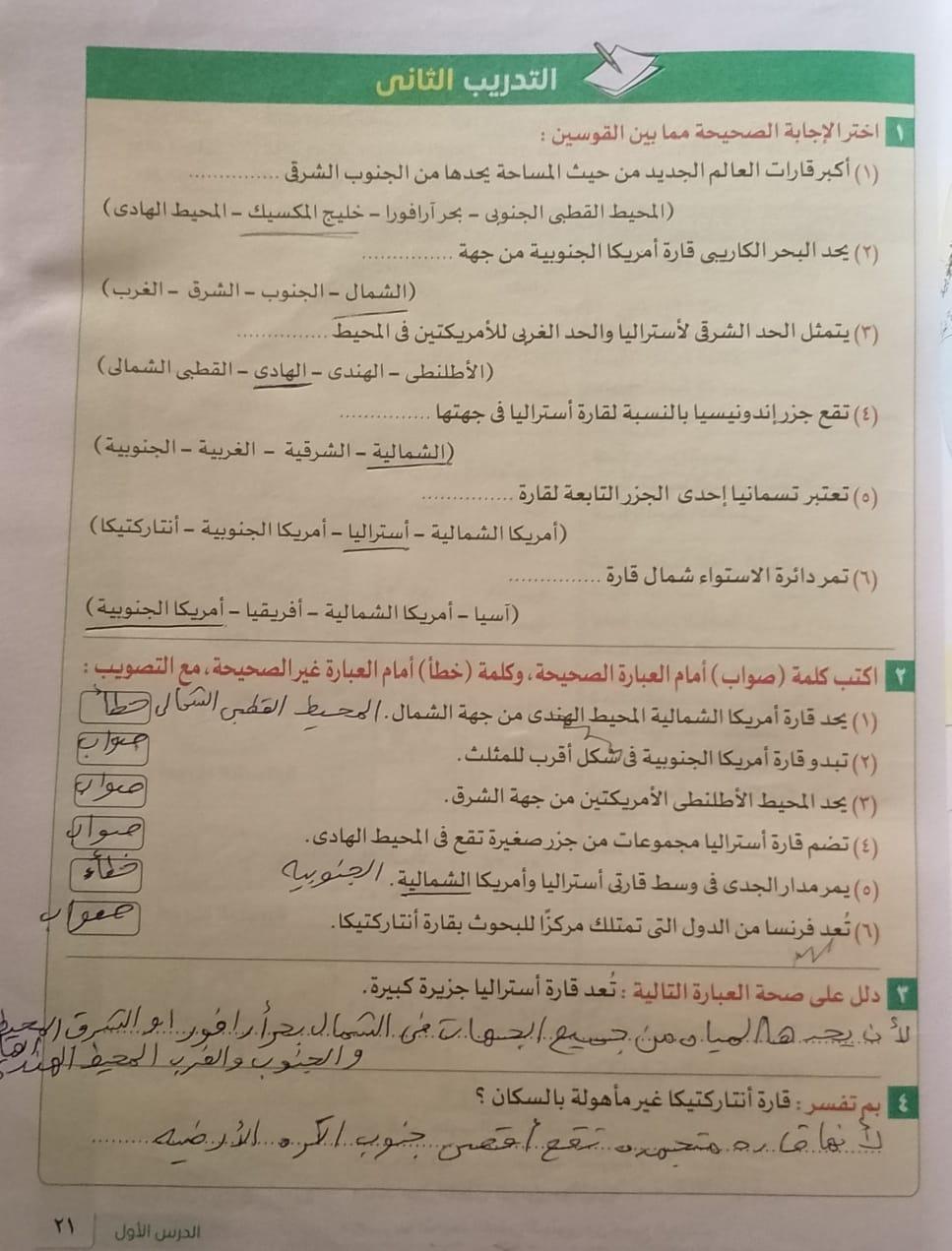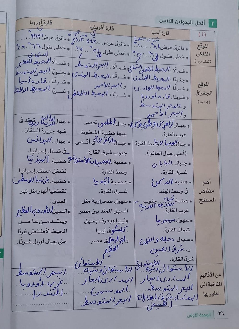 استكملنا اليوم باقي القارات والواجب هيكون تدريب 1 وتدرب 2 ص 17 و22