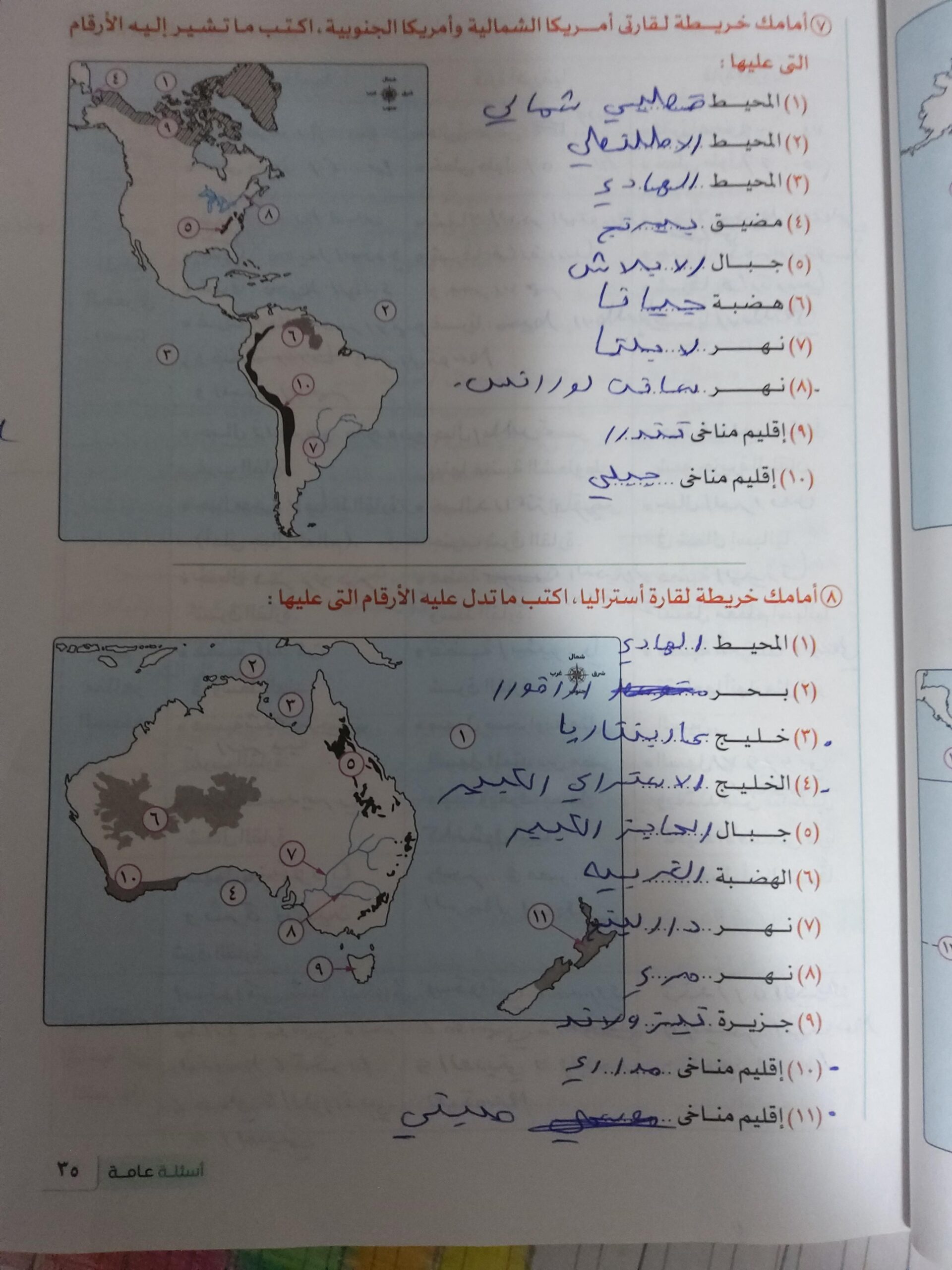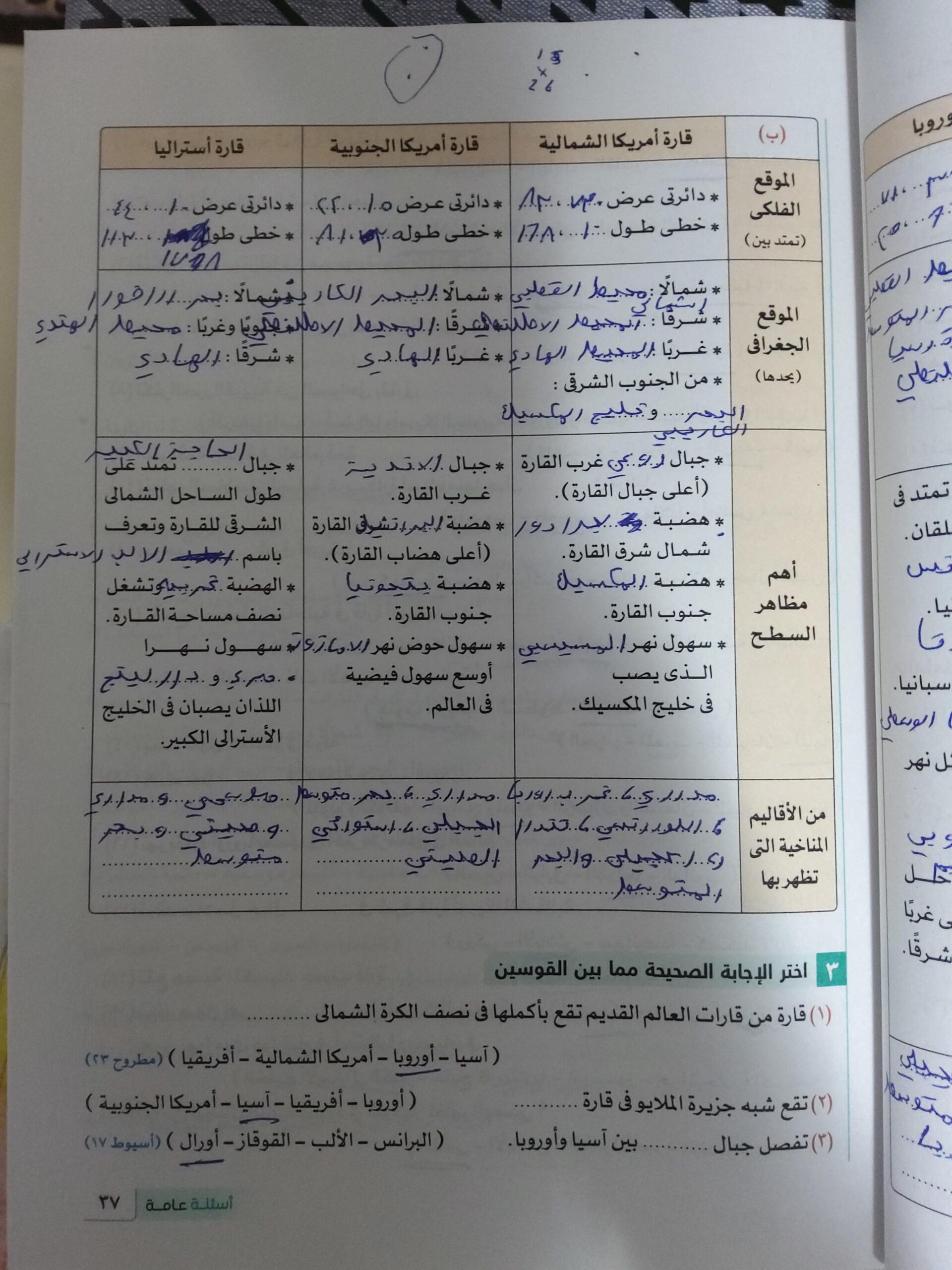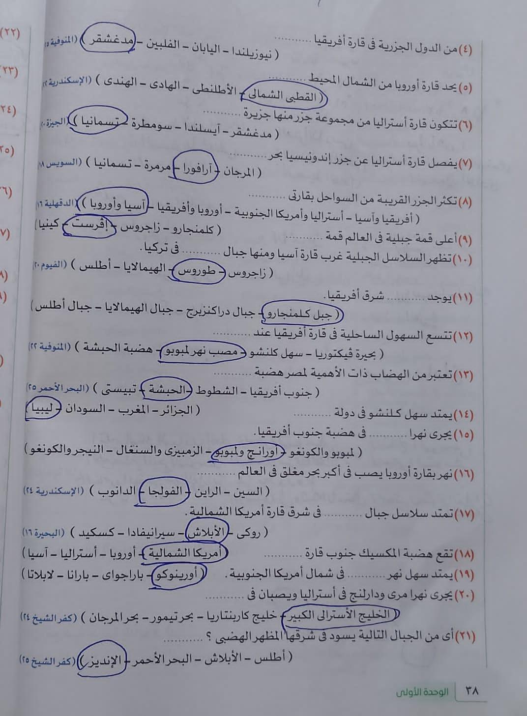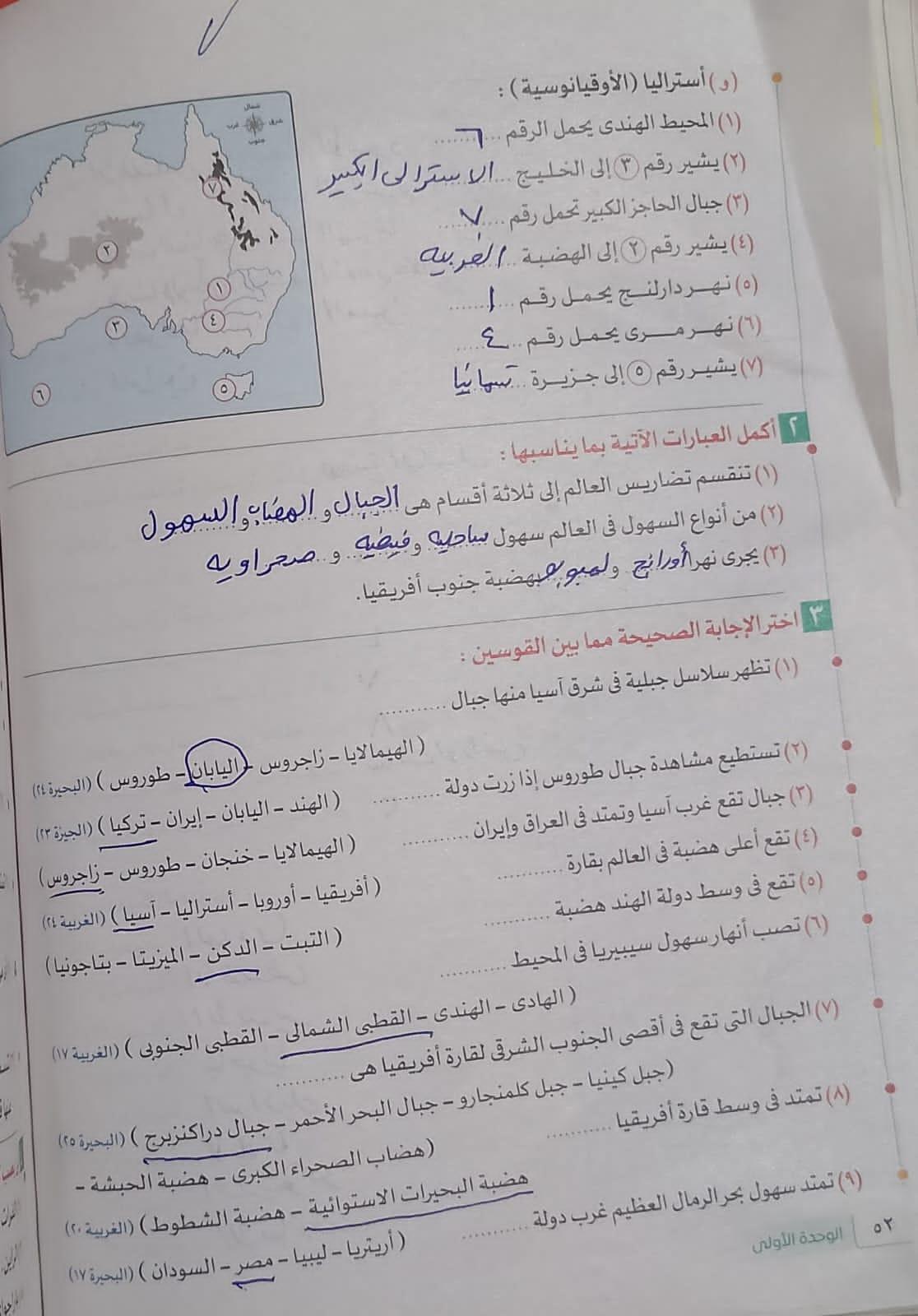 استكملنا اليوم باقي القارات والواجب هيكون تدريب 1 وتدرب 2 ص 17 و22