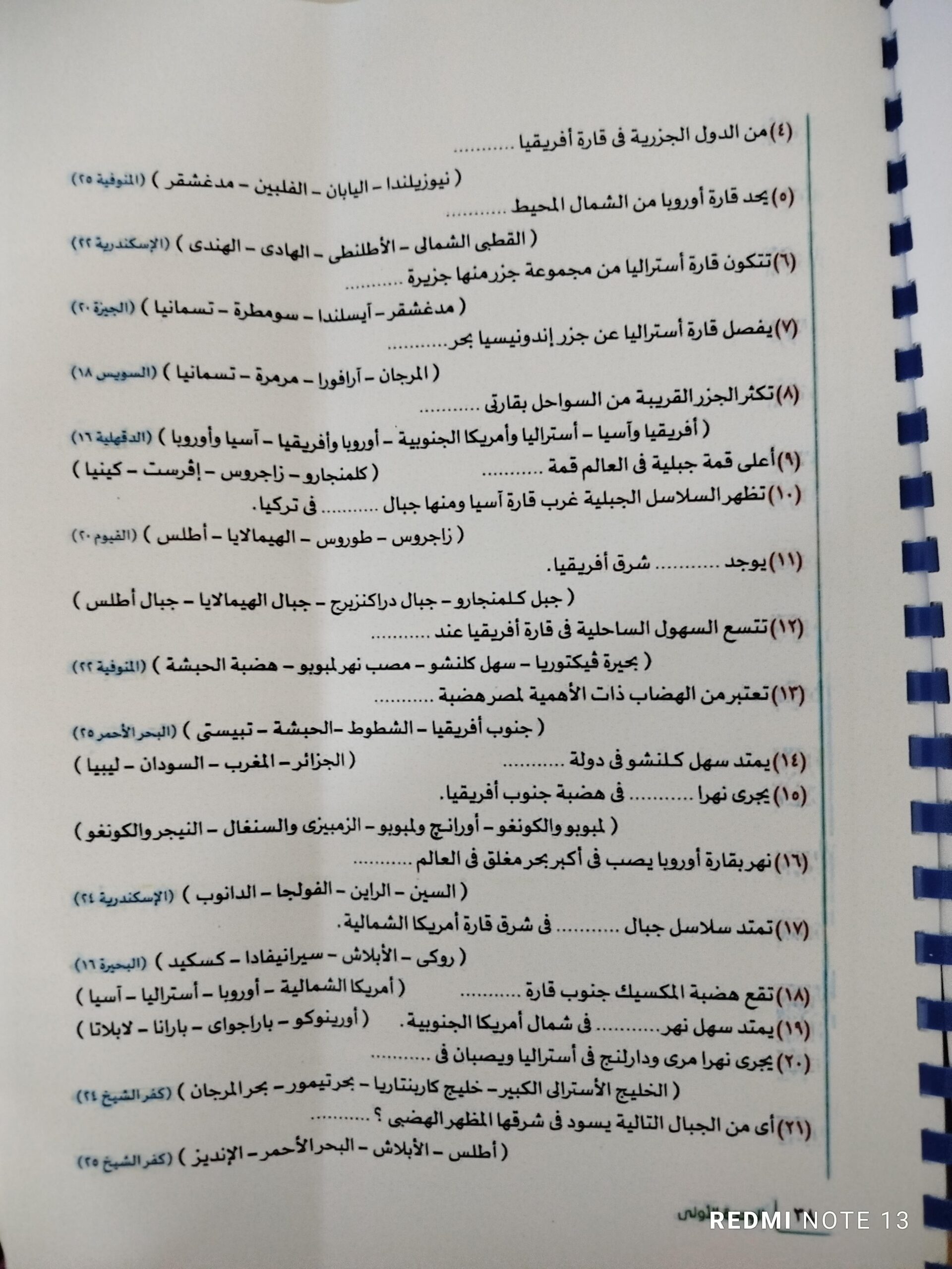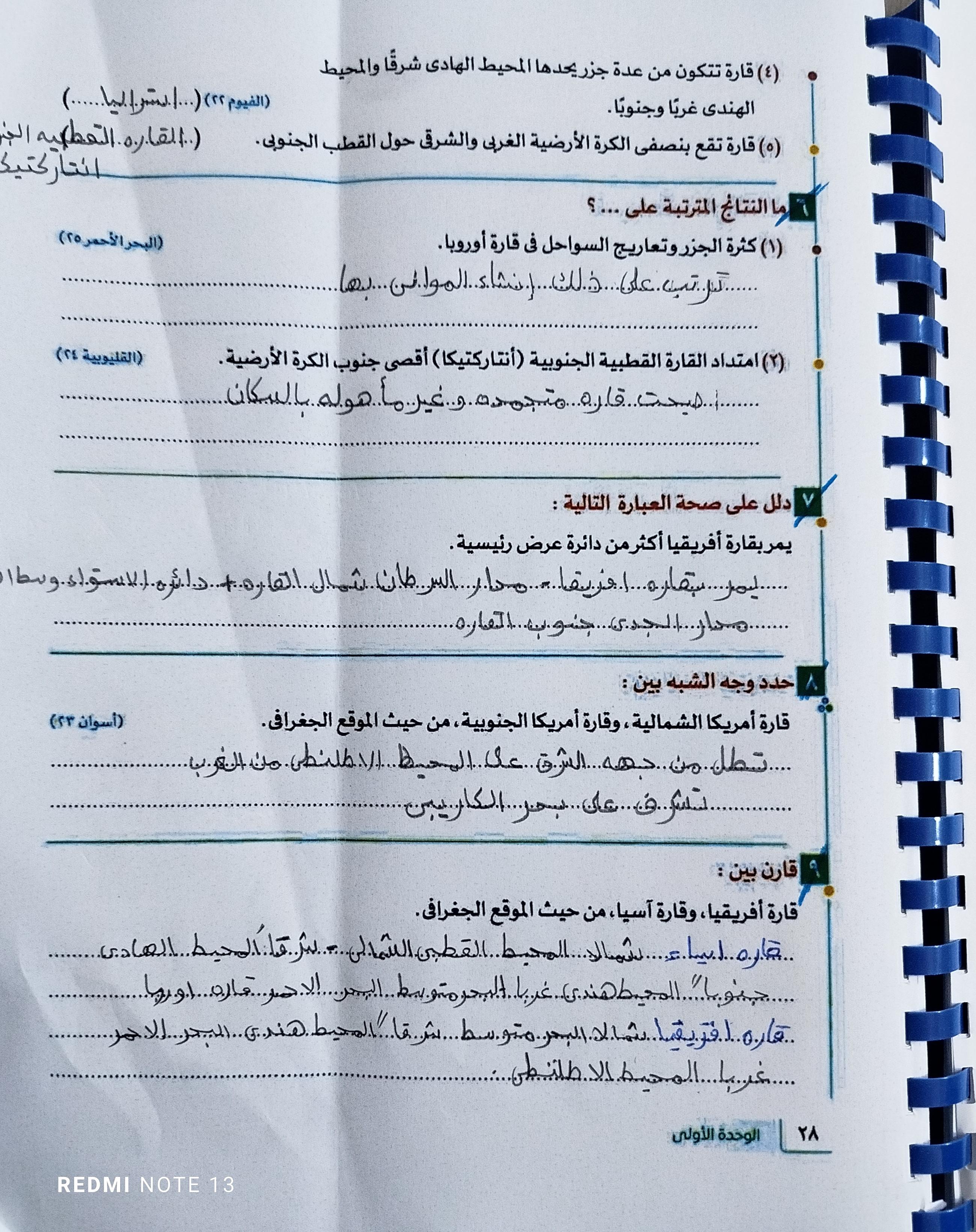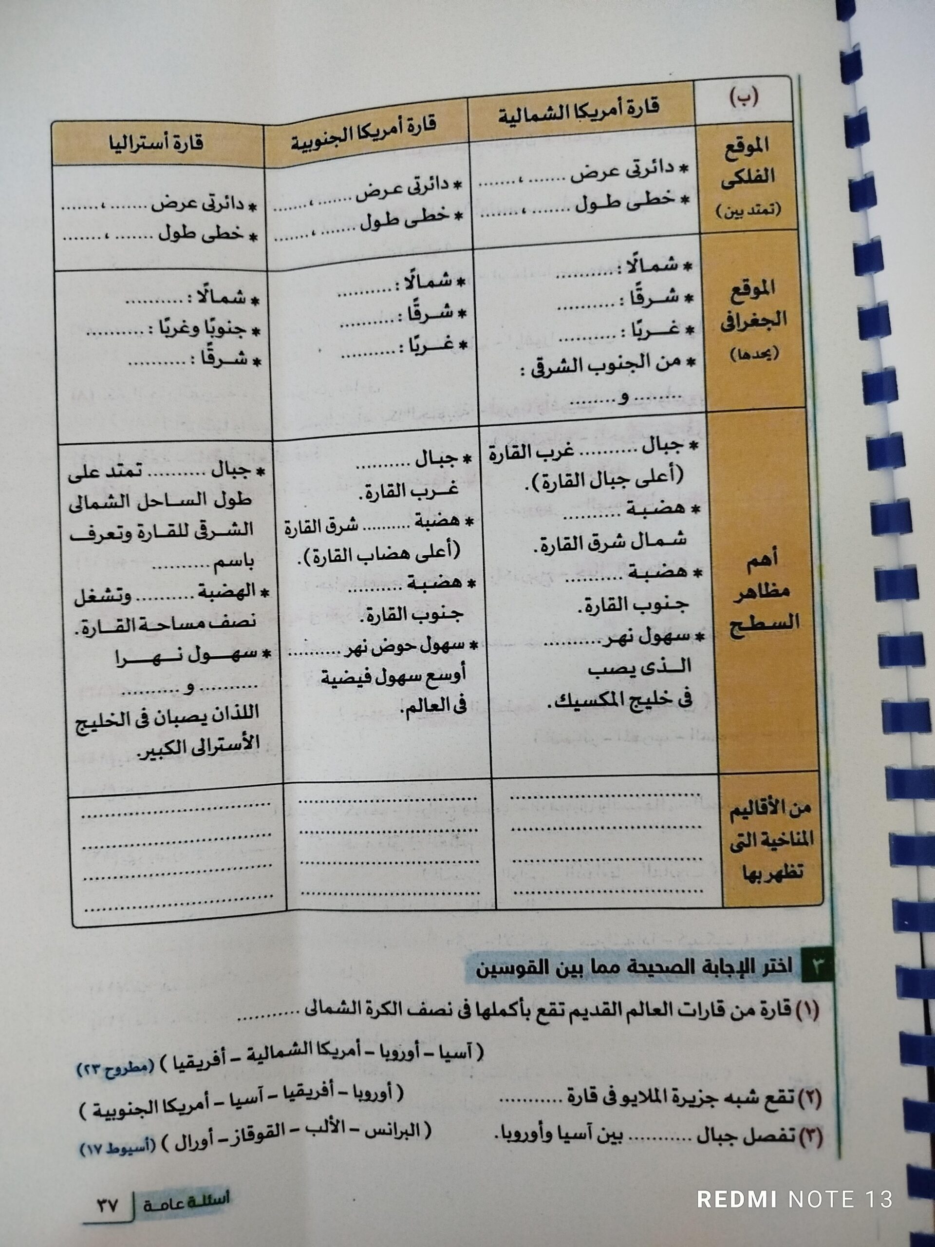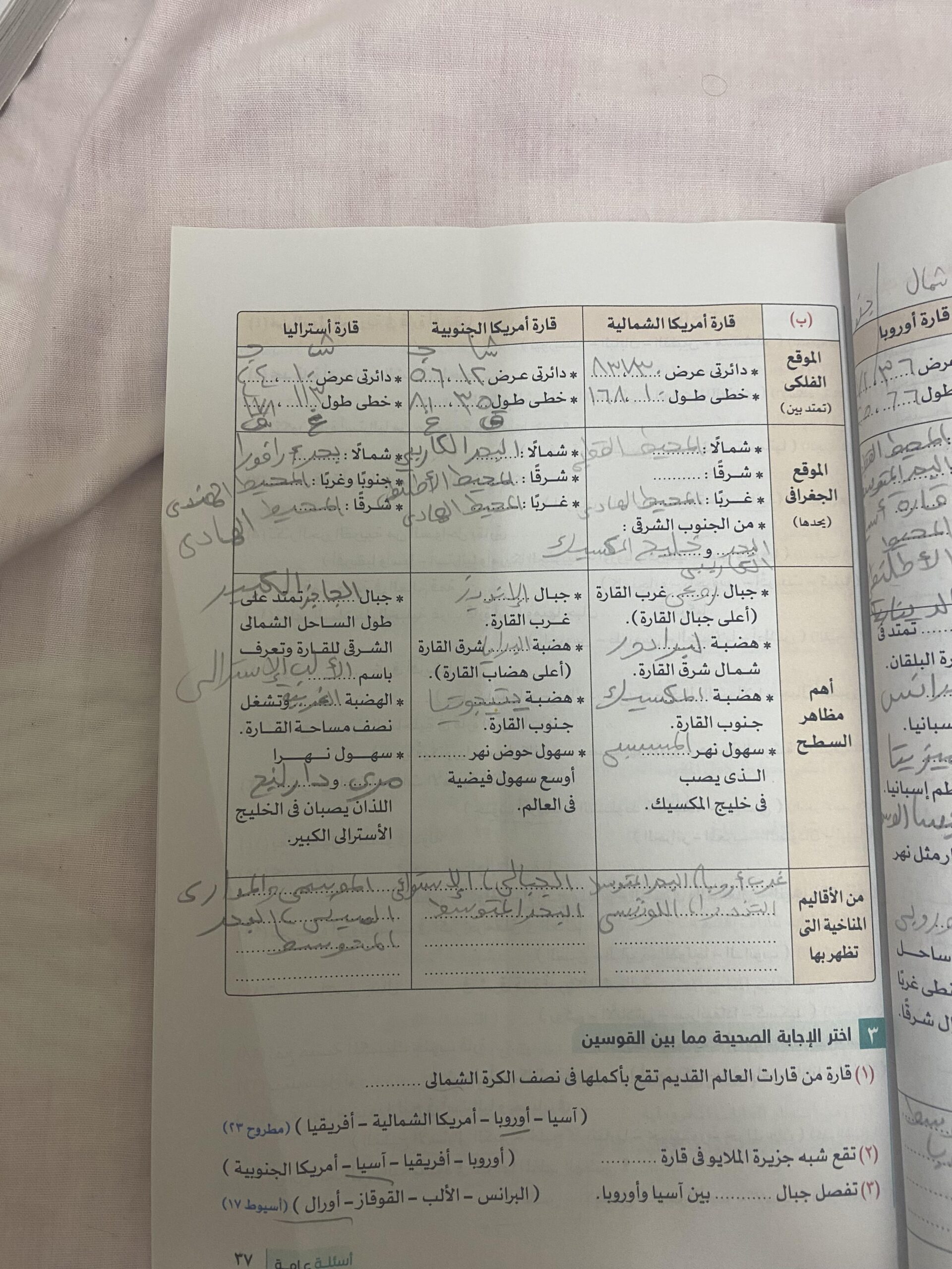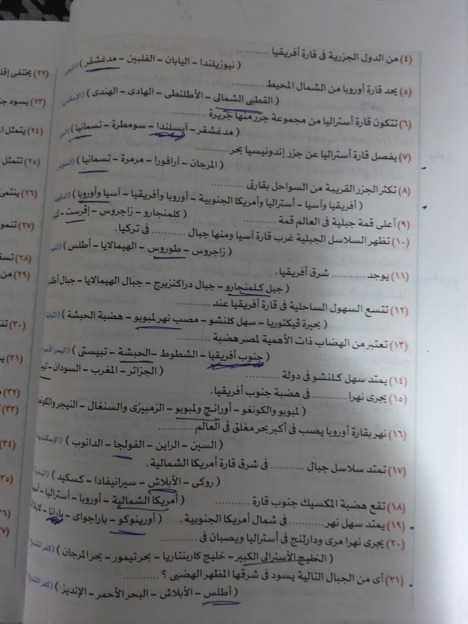 استكملنا اليوم باقي القارات والواجب هيكون تدريب 1 وتدرب 2 ص 17 و22