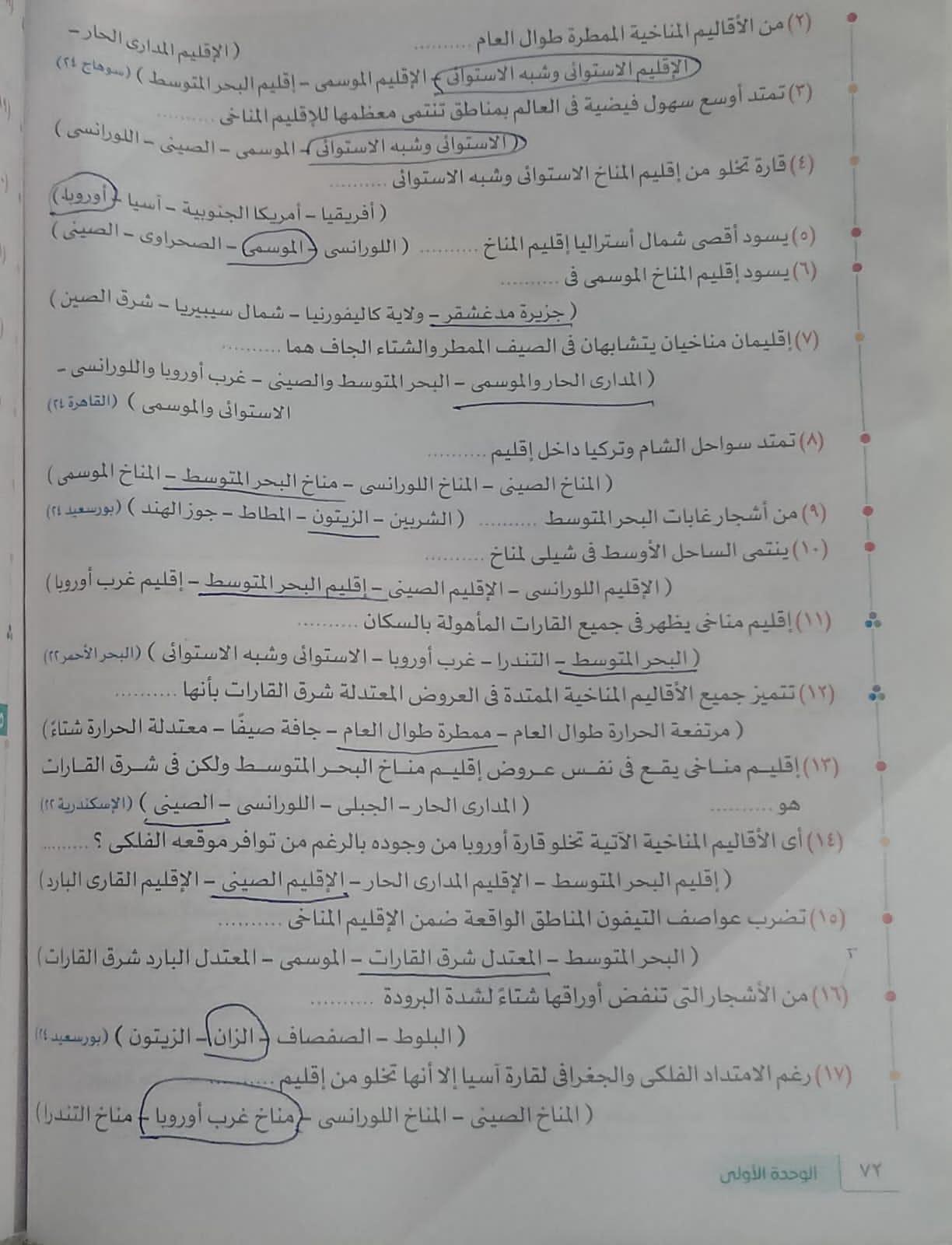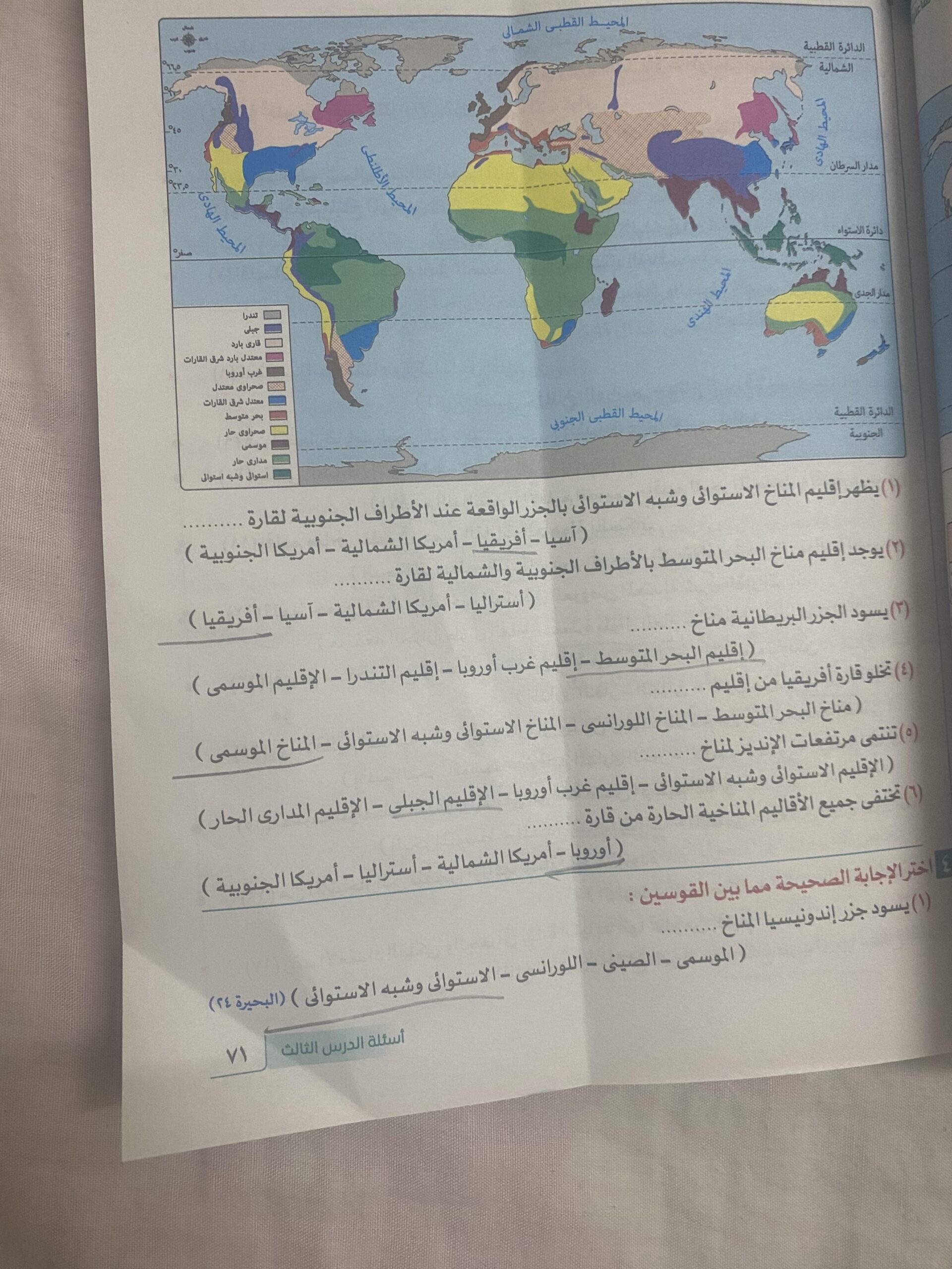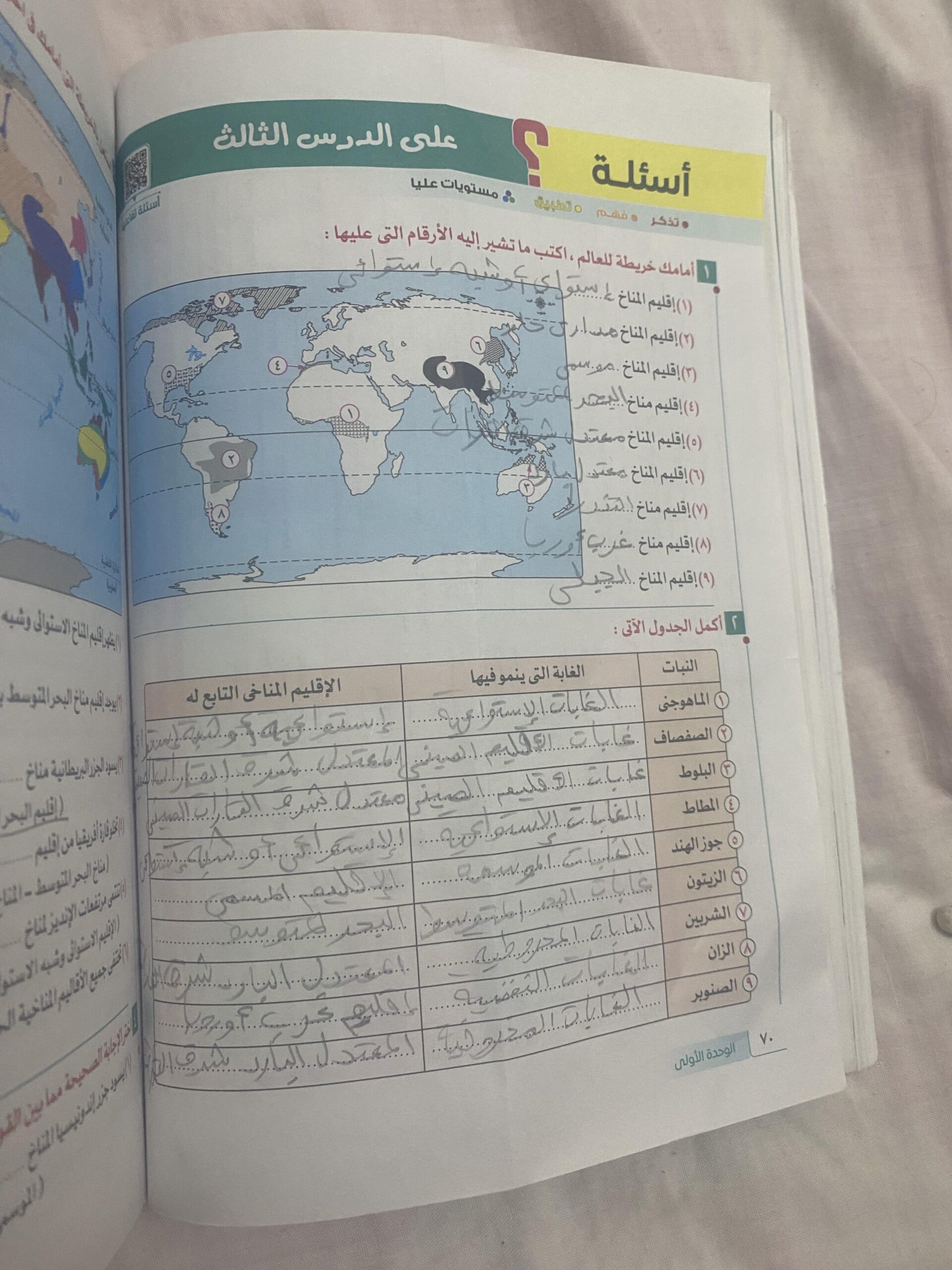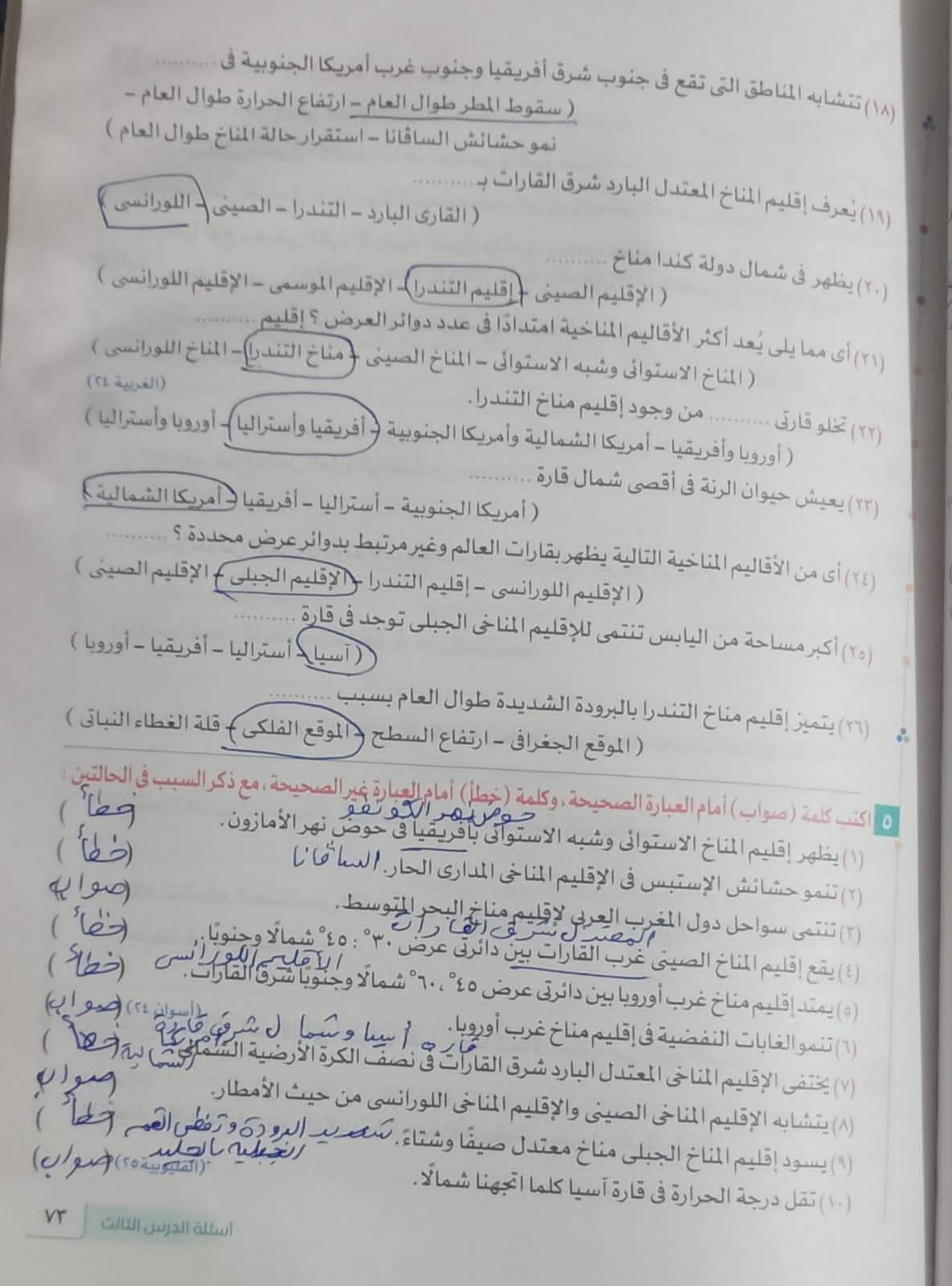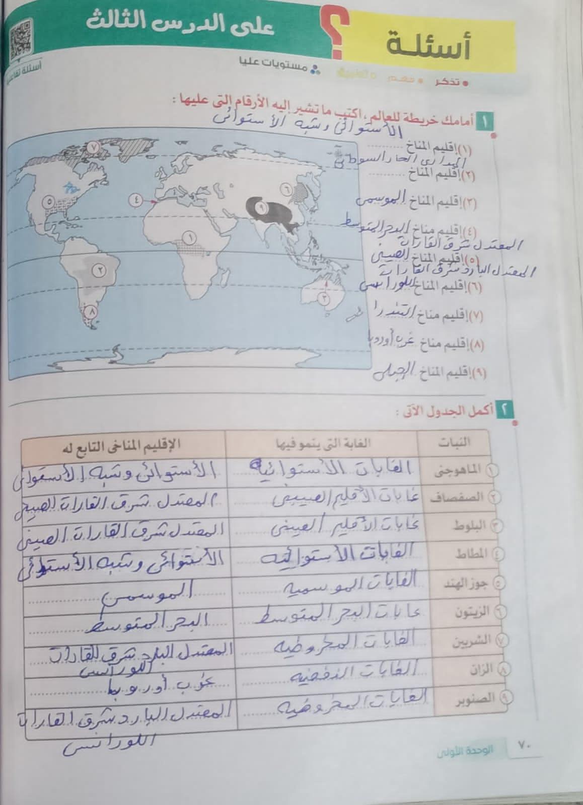 كملنا الدرس التالت المناخ والنبات الطبيعي والواجب من ص 70 الي 74