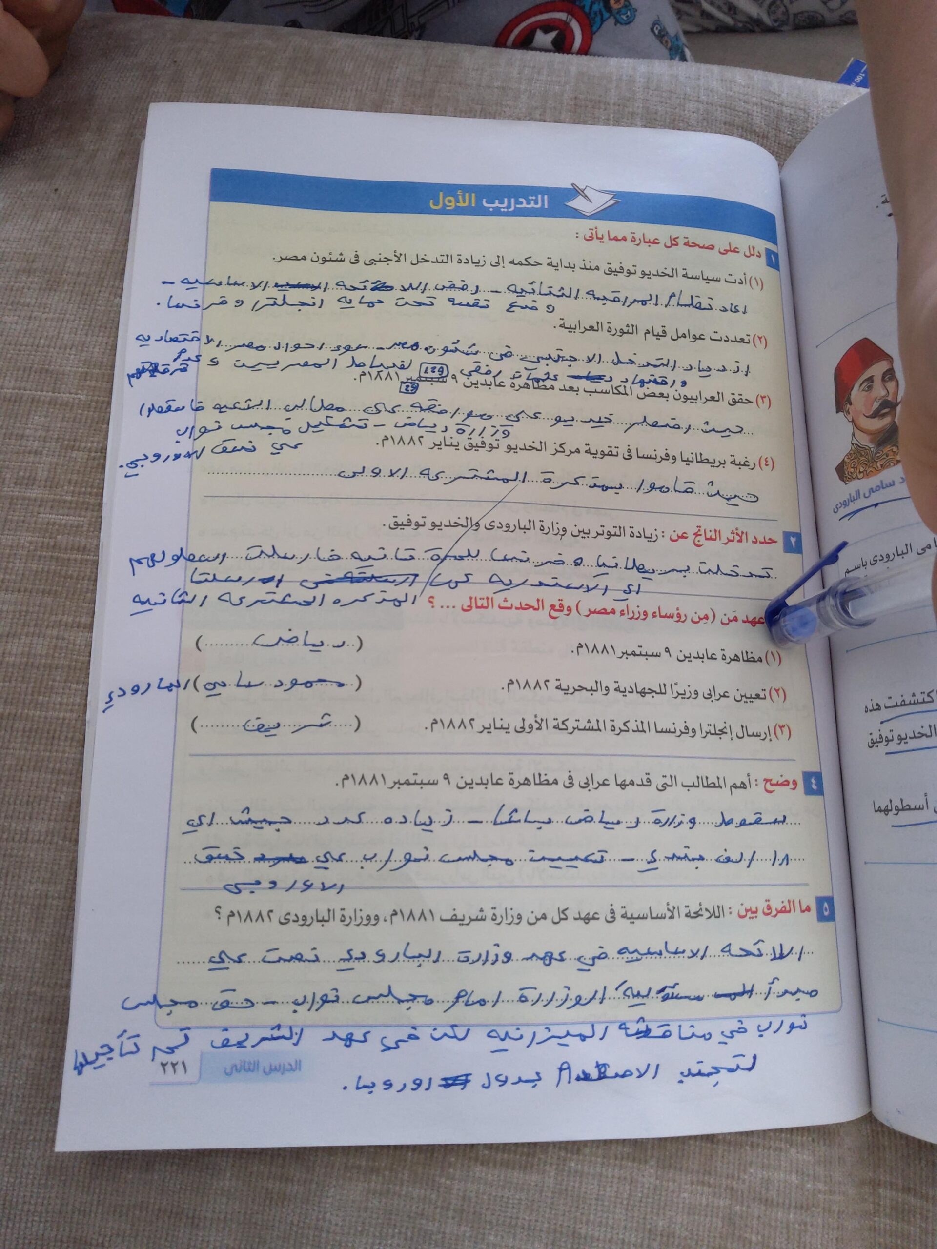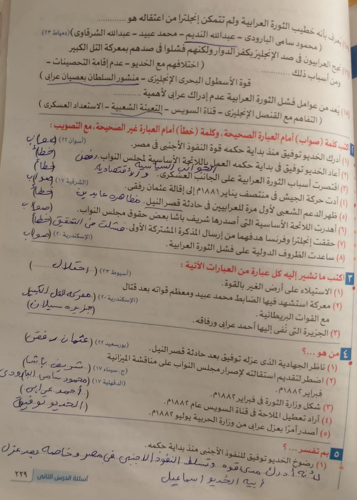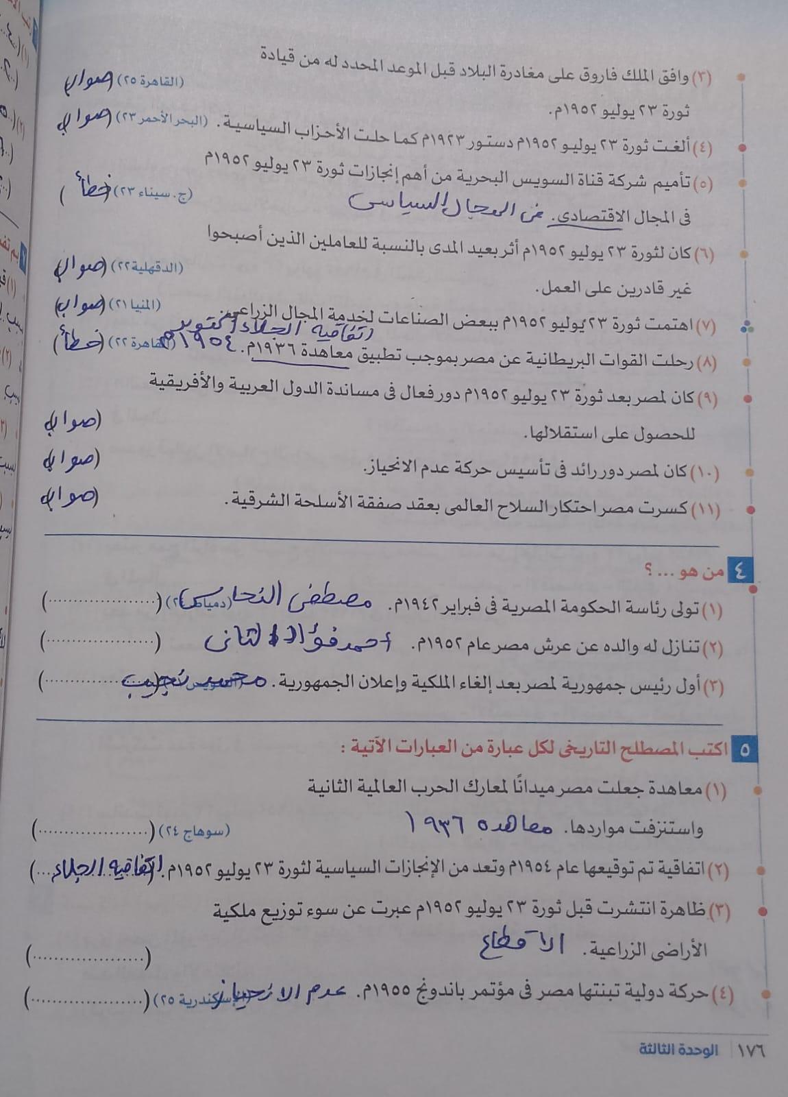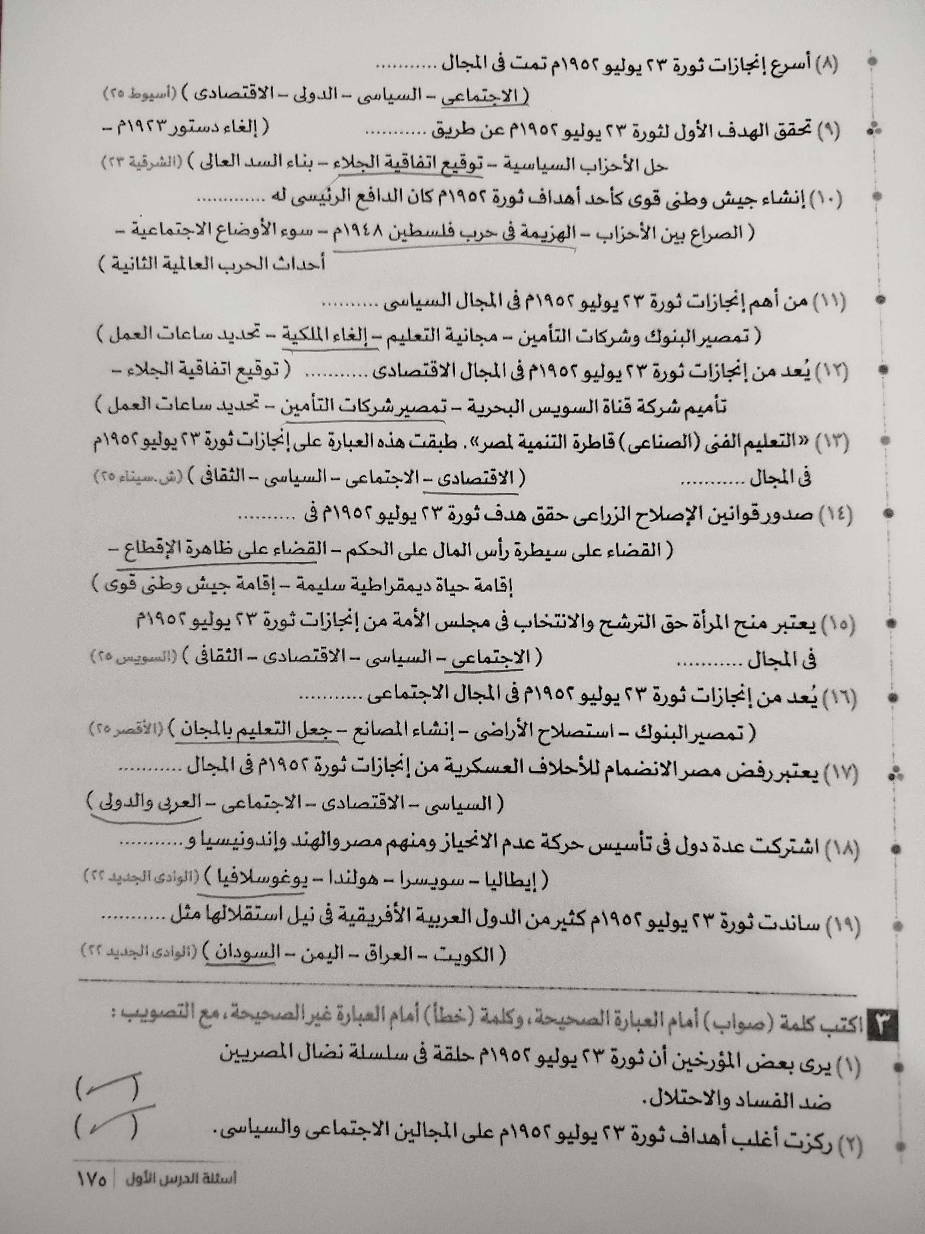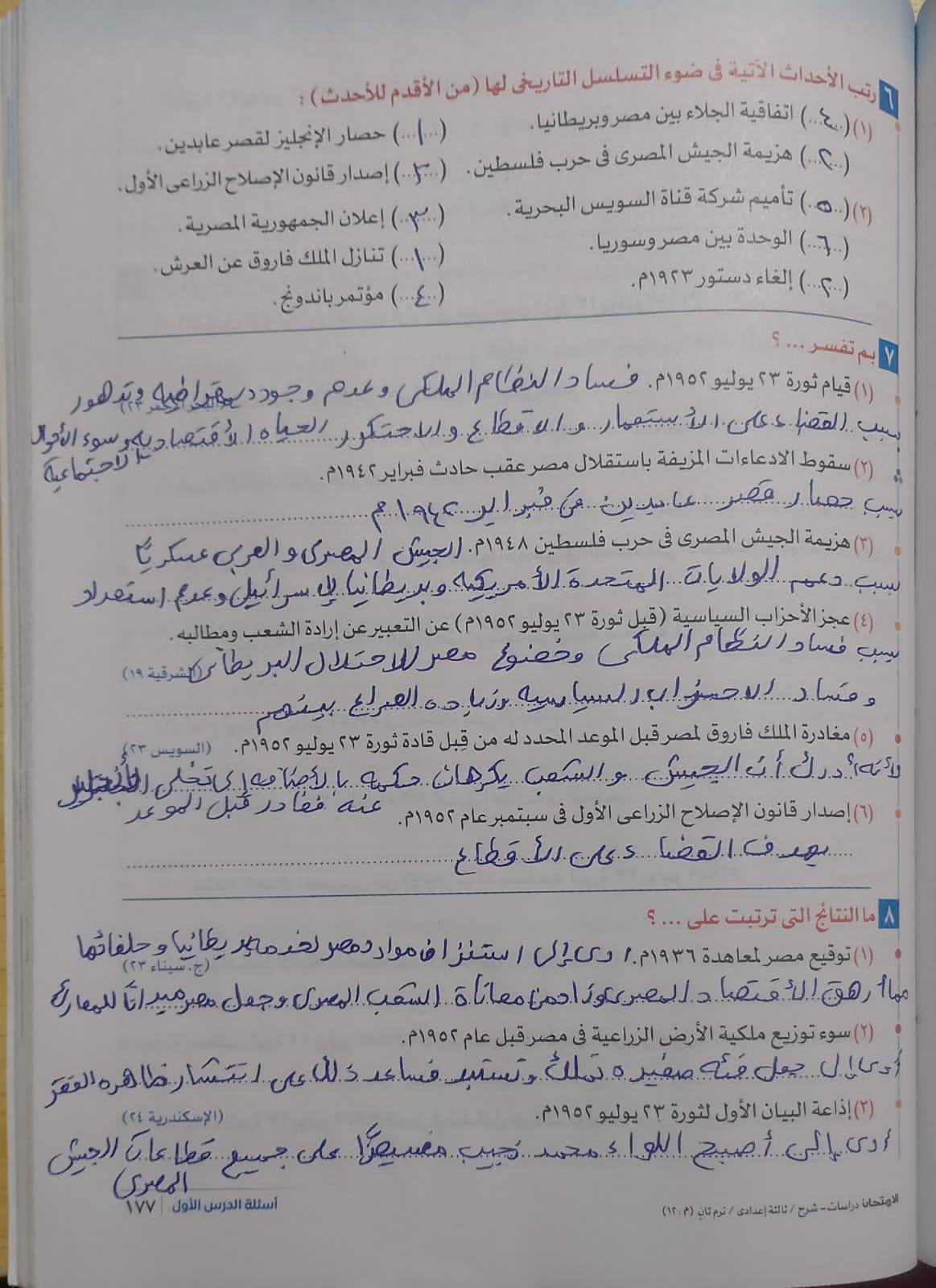 انتهينا من ثوره يوليو والواجب تدريبات الدرس لحد ص 177