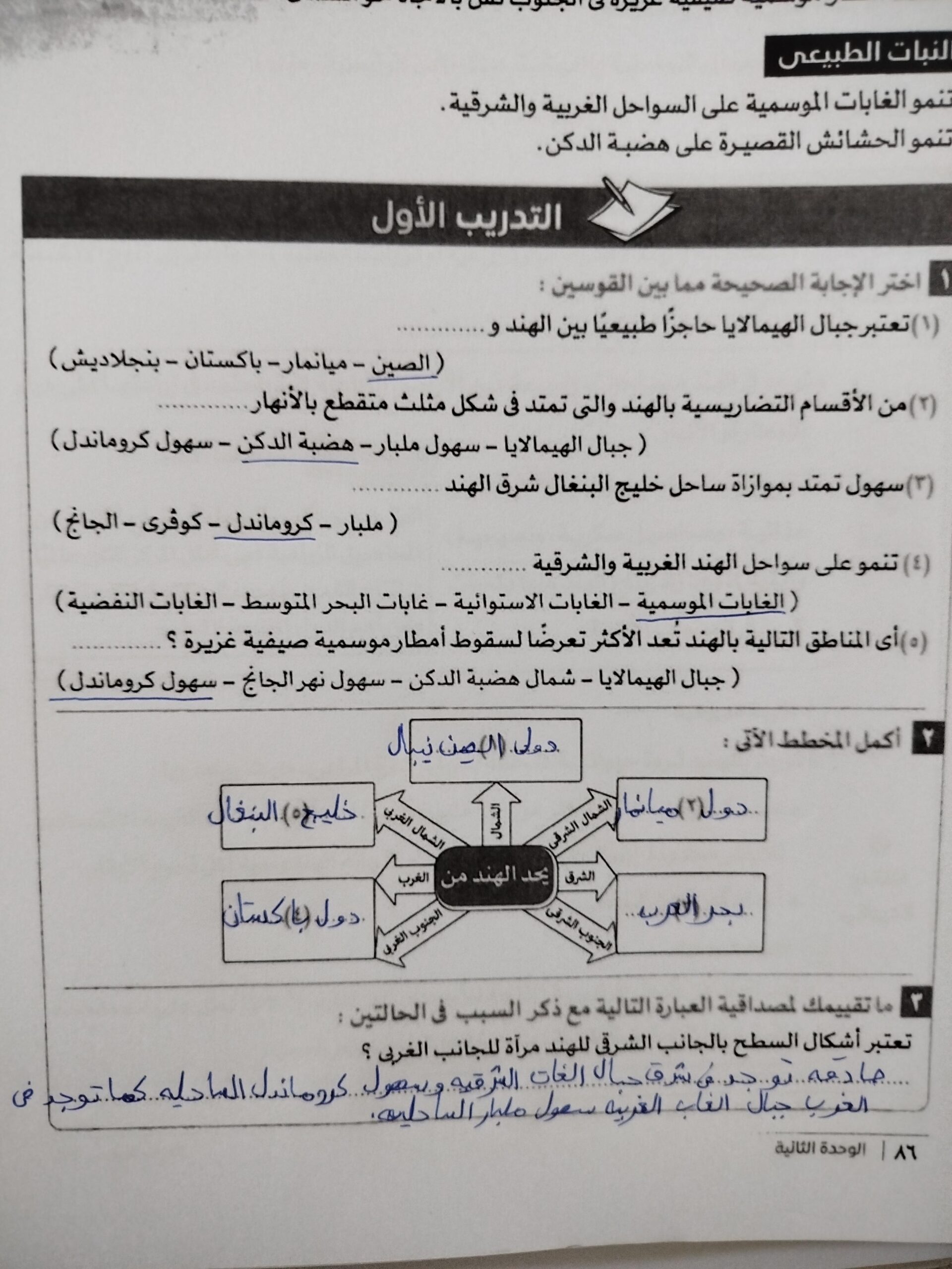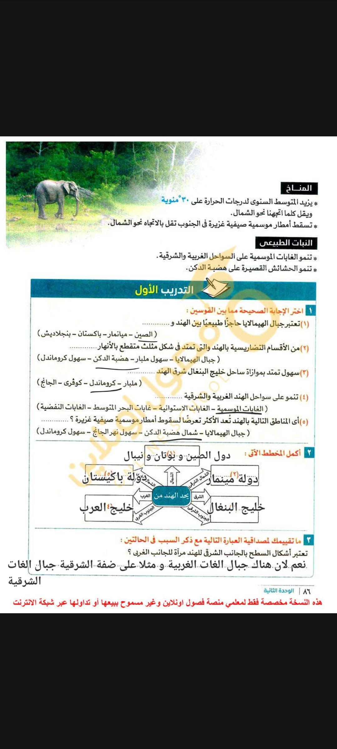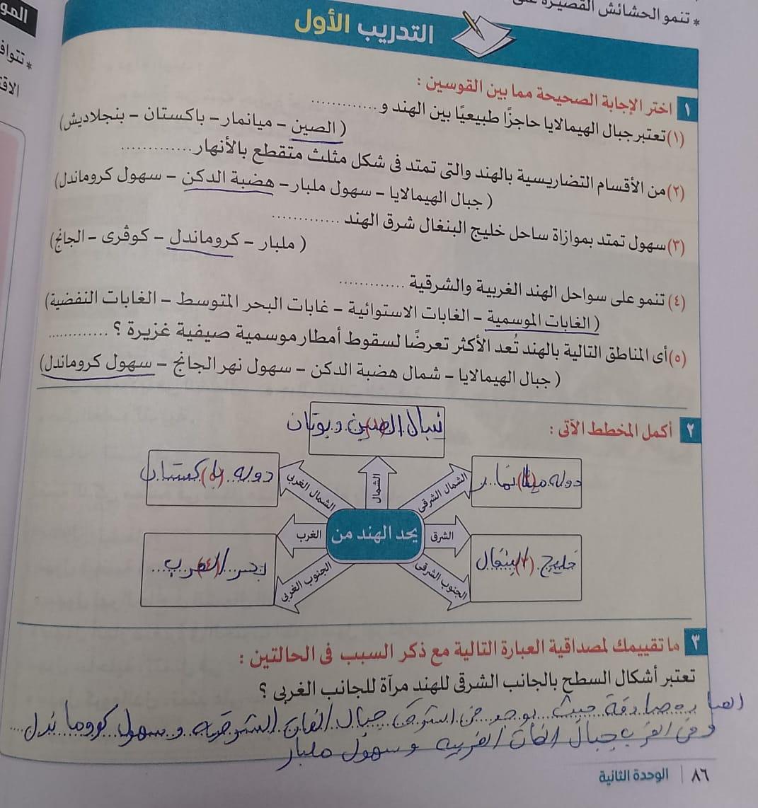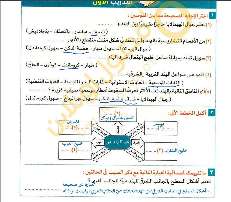 كملنا اليوم دوله الهند بحل التدريبات والواجب من سؤال 9 الي 14