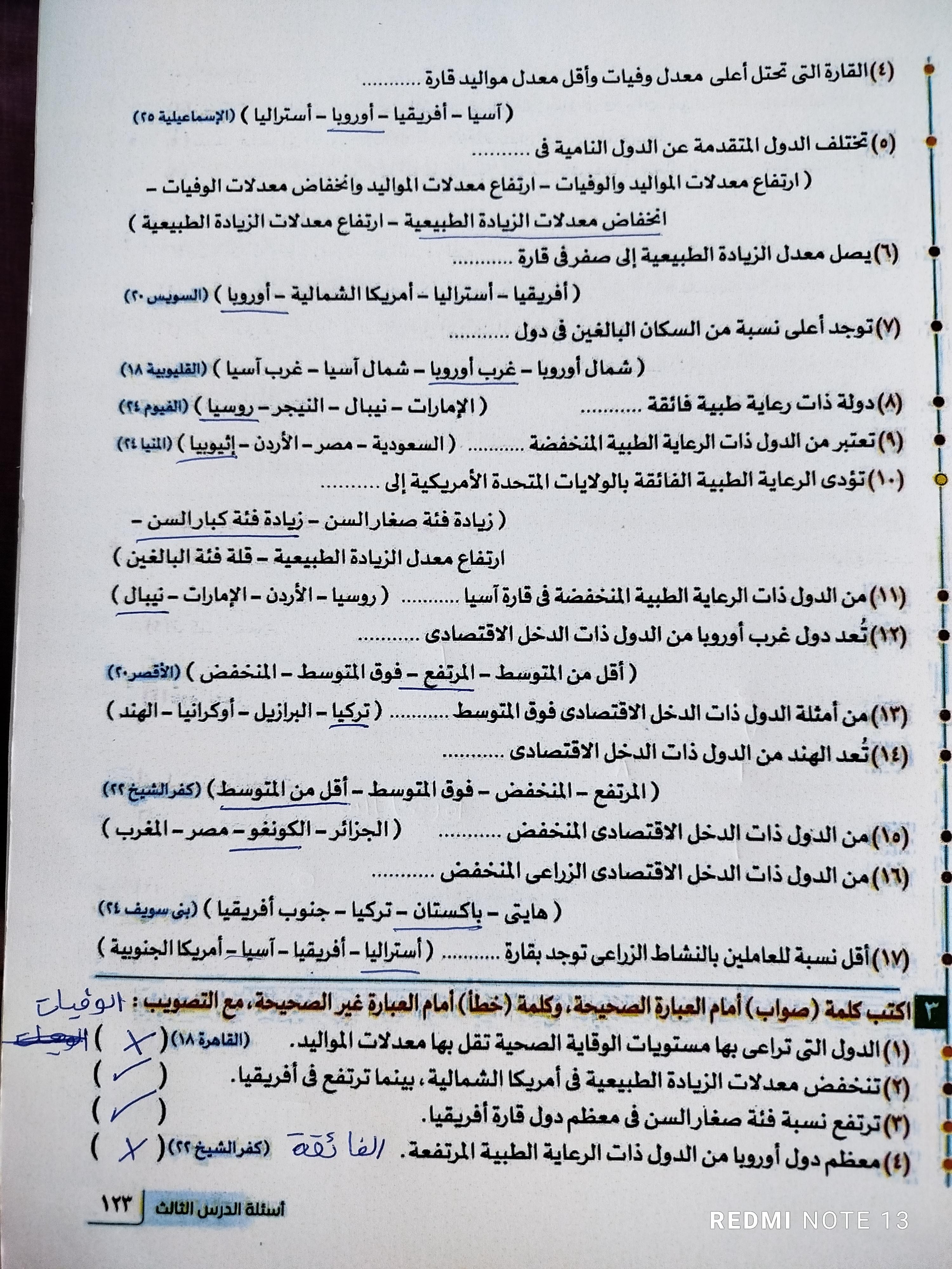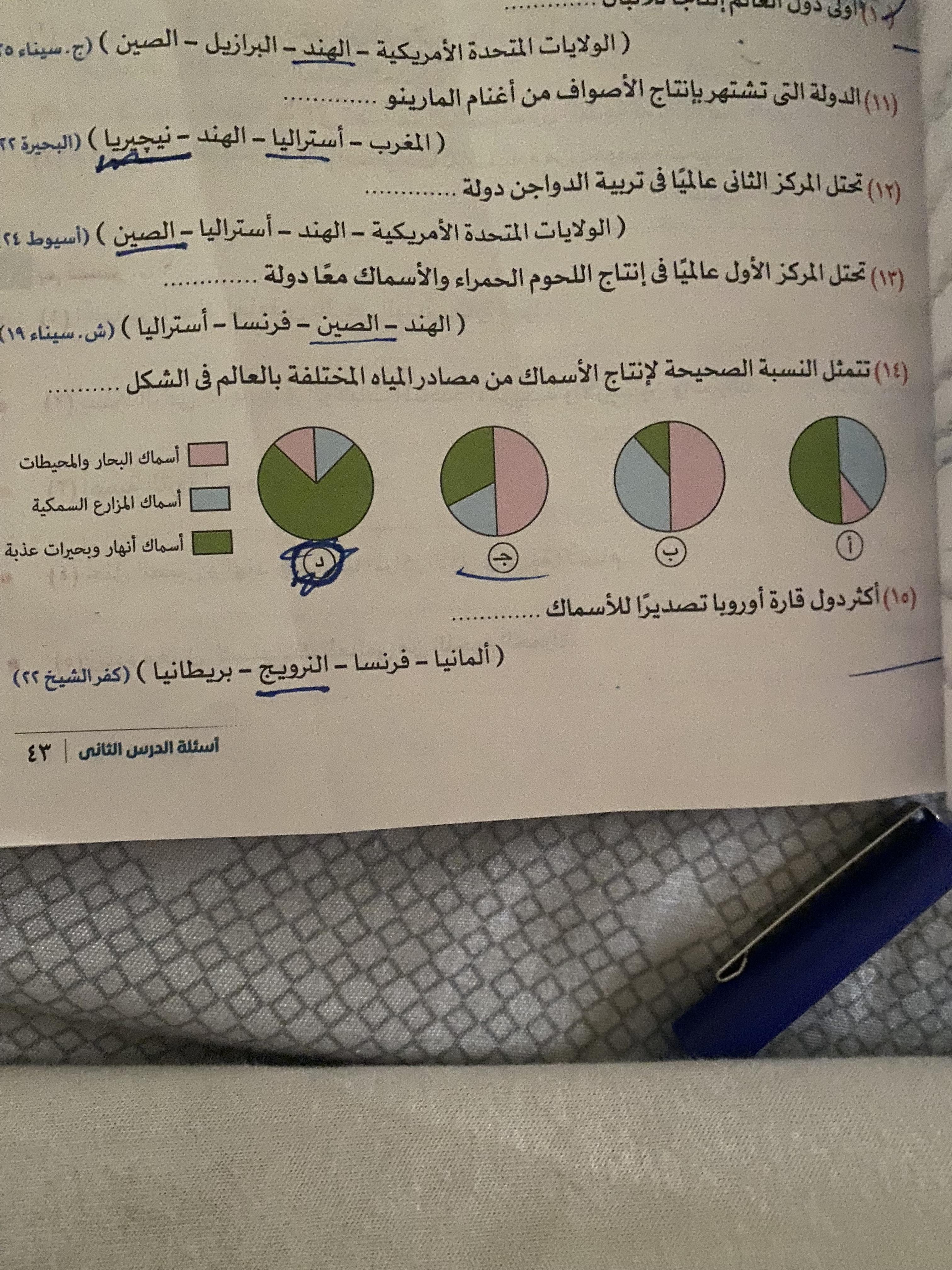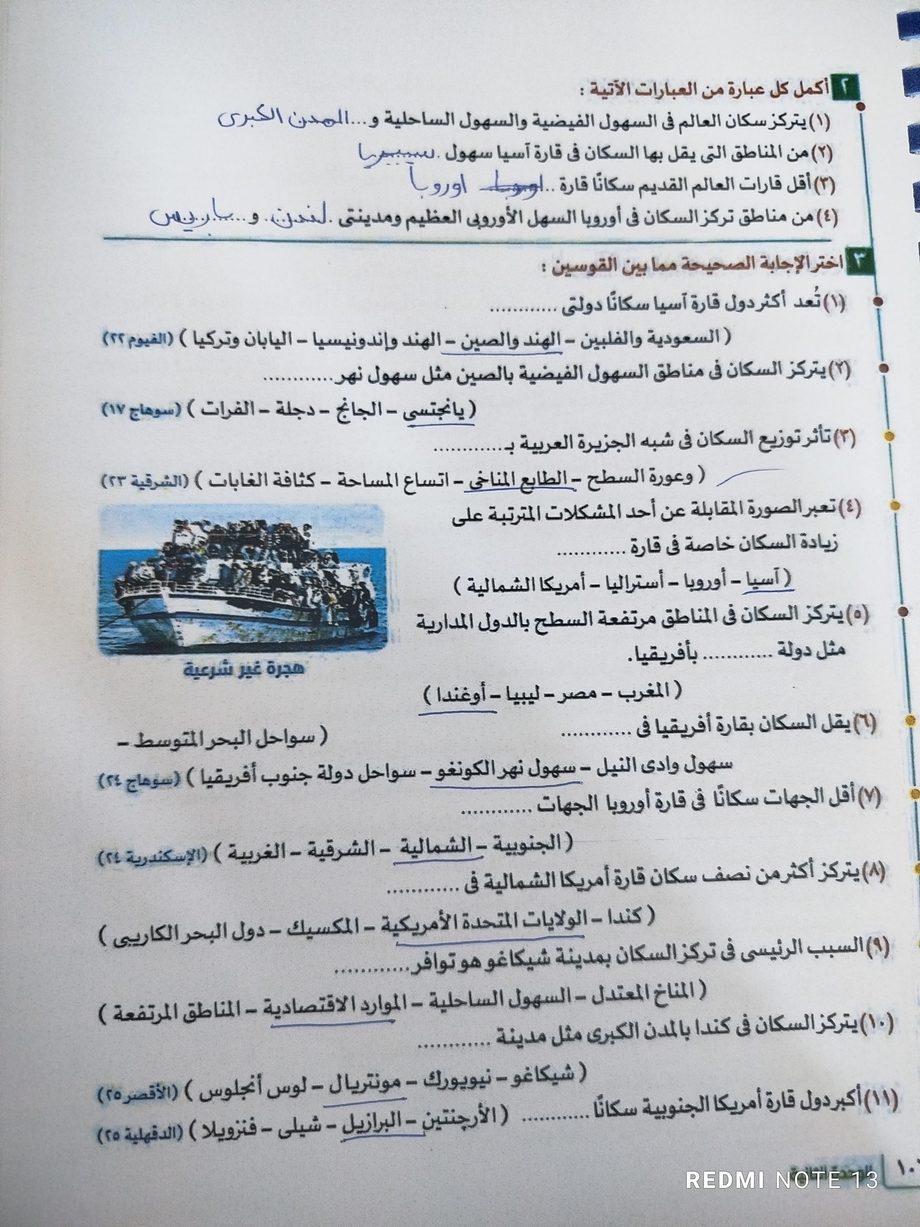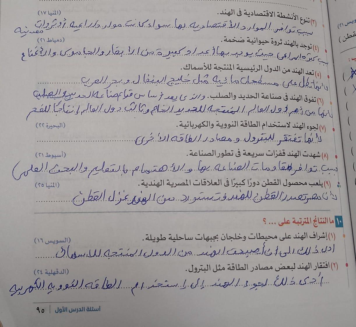 كملنا اليوم دوله الهند بحل التدريبات والواجب من سؤال 9 الي 14