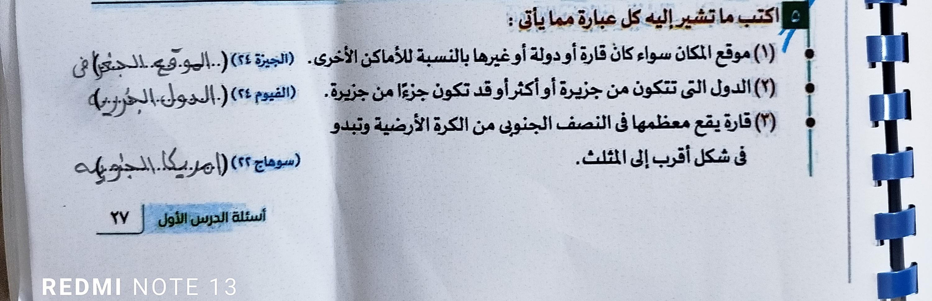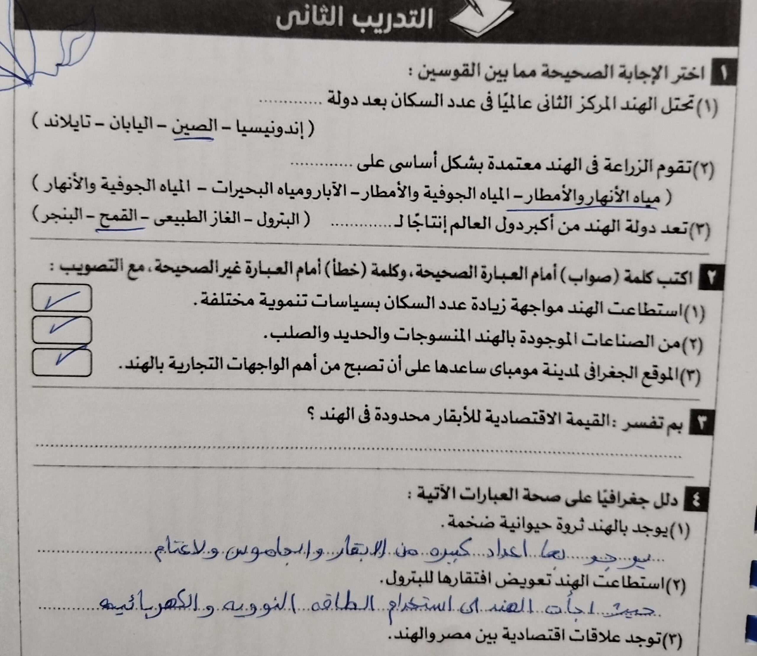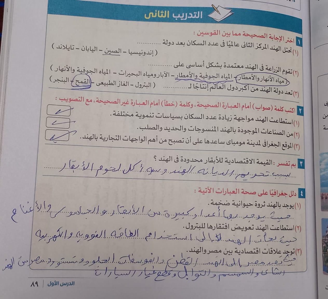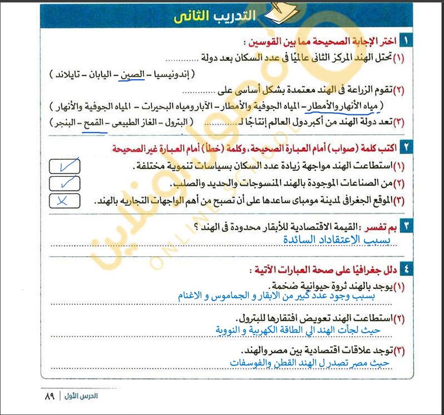 اخدنا اليوم دوله الهند والواجب تدريب 1 و2