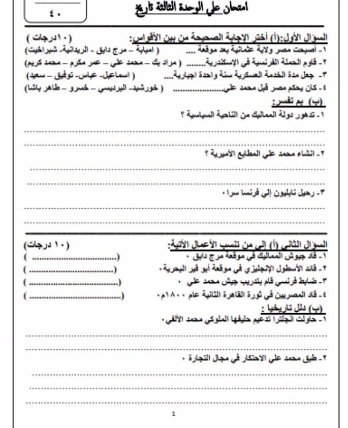 كملنا حل اختبلارات علي وحده التاريخ التالته والاختبلار الحصه الجايه الخميس ان شاء الله
