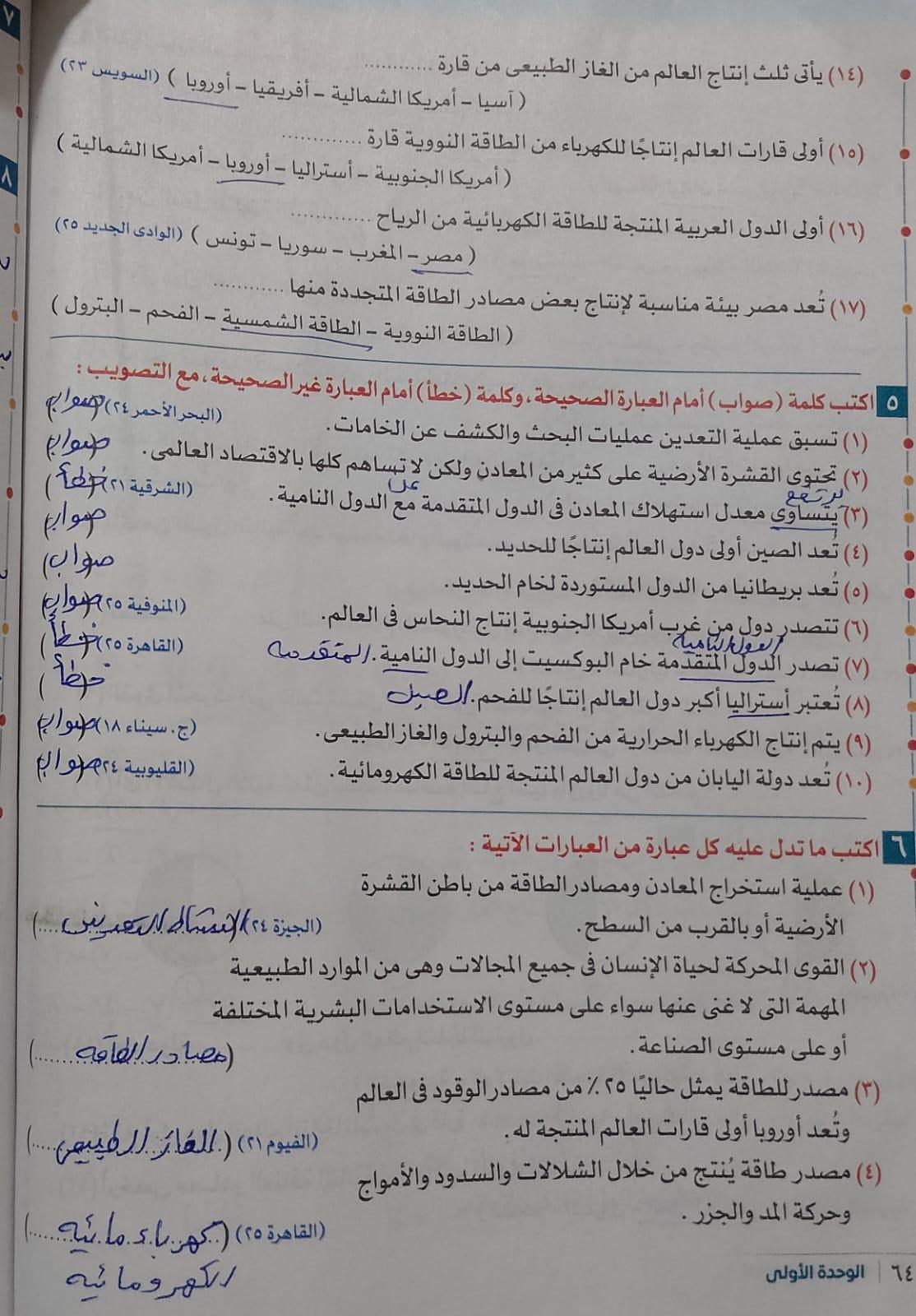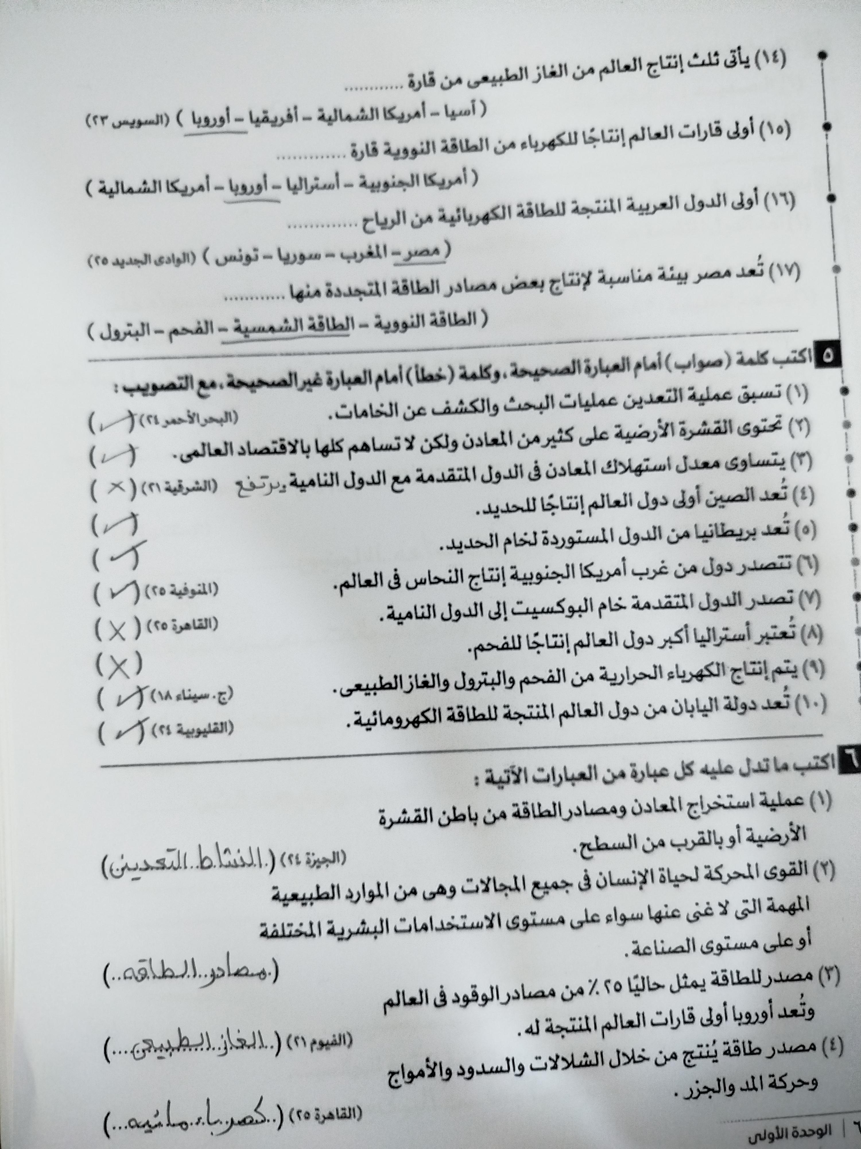 حلينا تدريبات عن الوحده والواجب في كتاب المراجعه ص 42