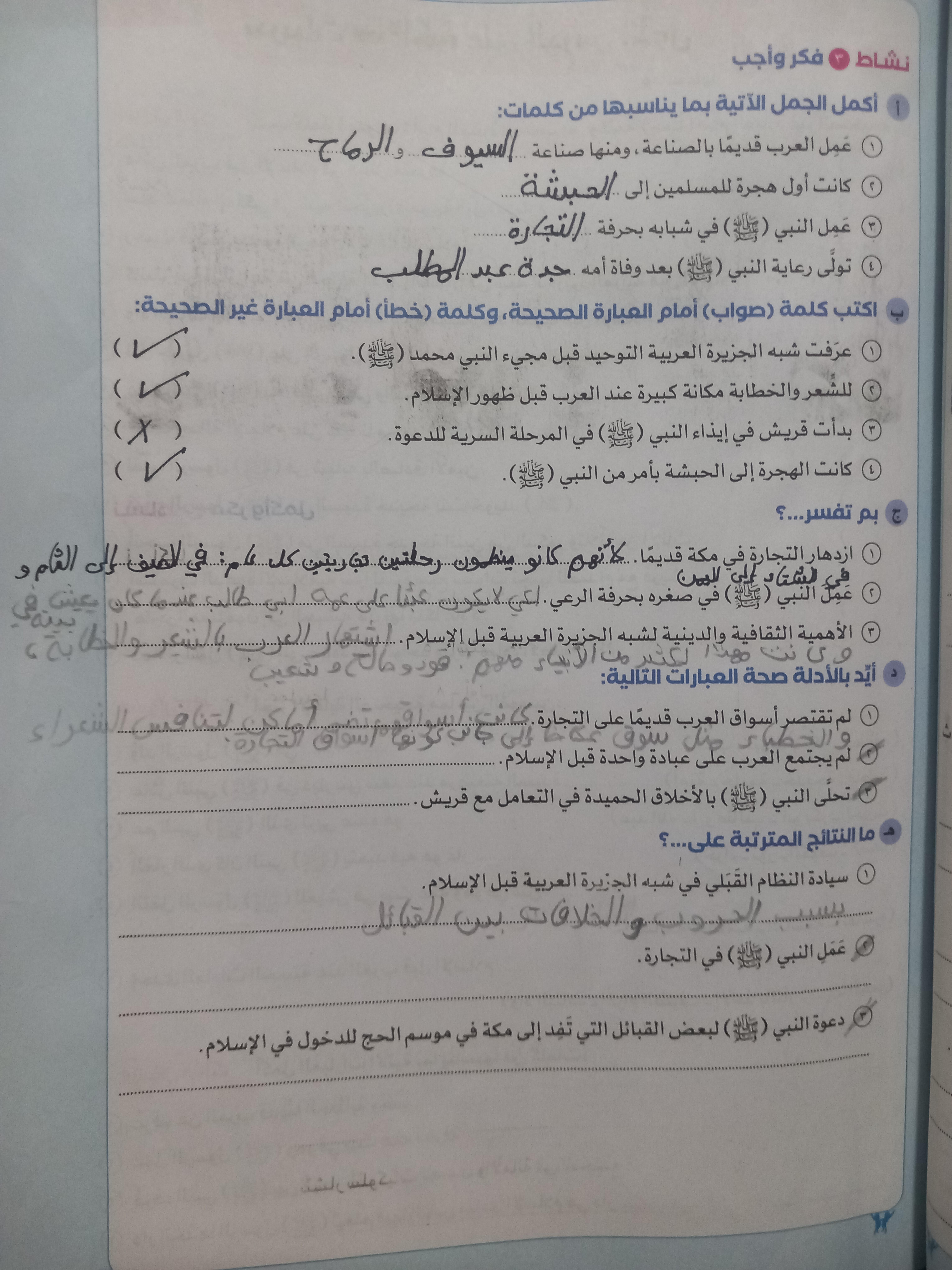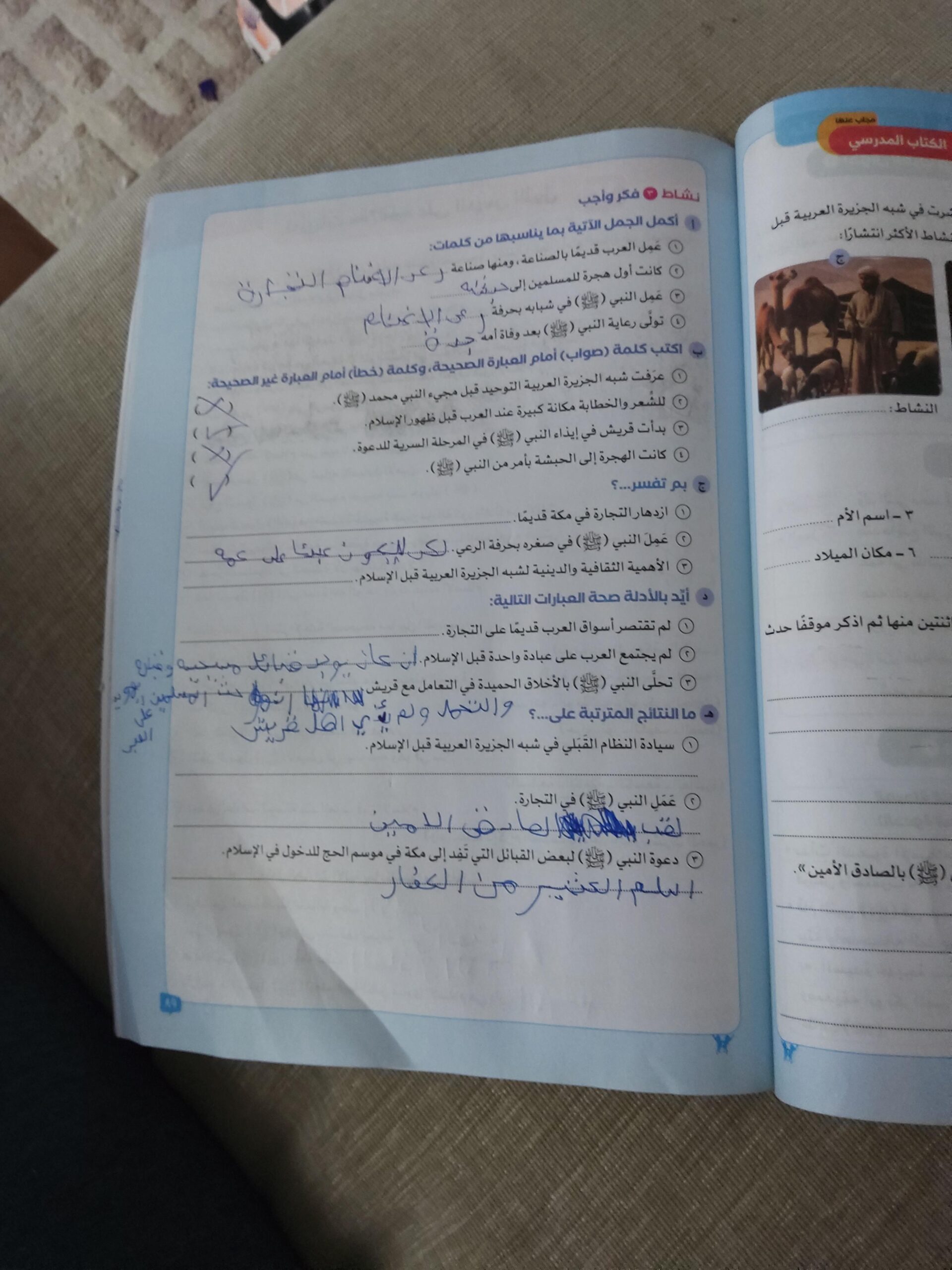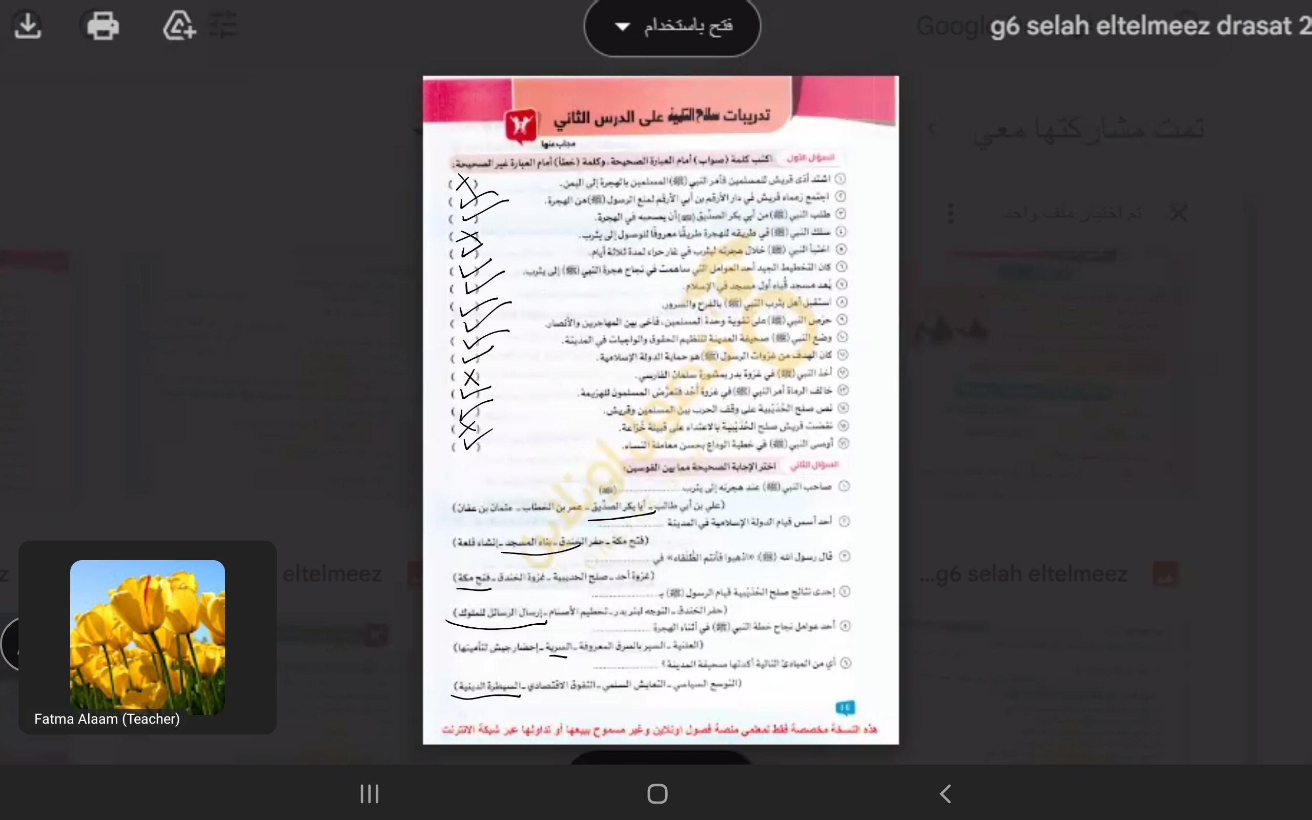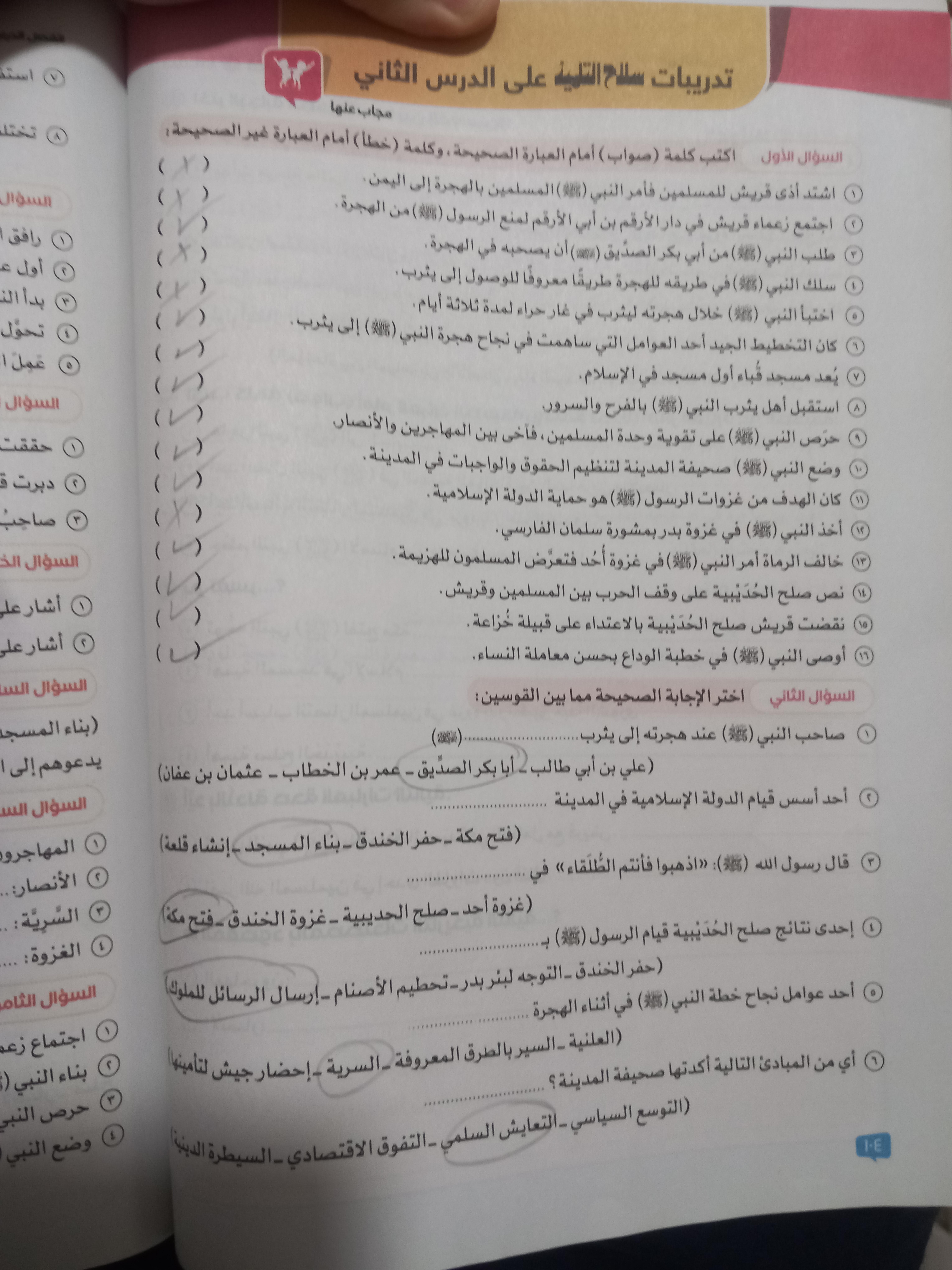 اخدنا اليوم باقي درس الهجره وعالميه الدعوه والواجب ص 104