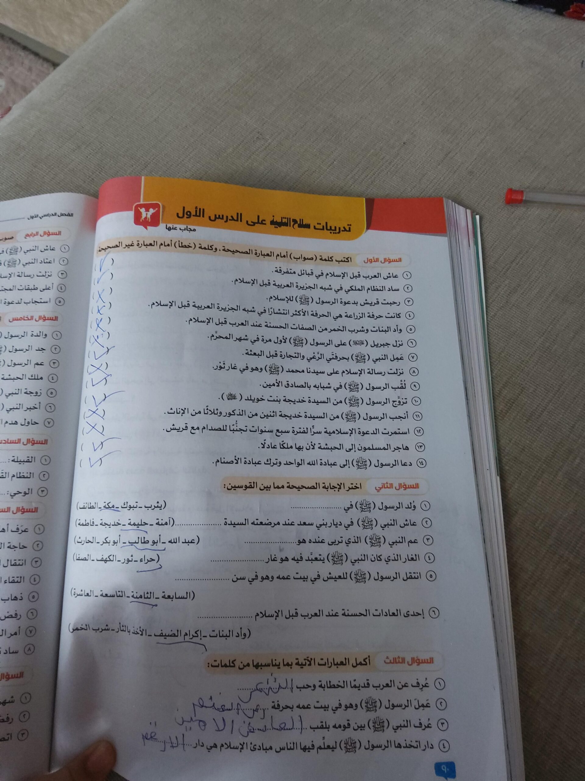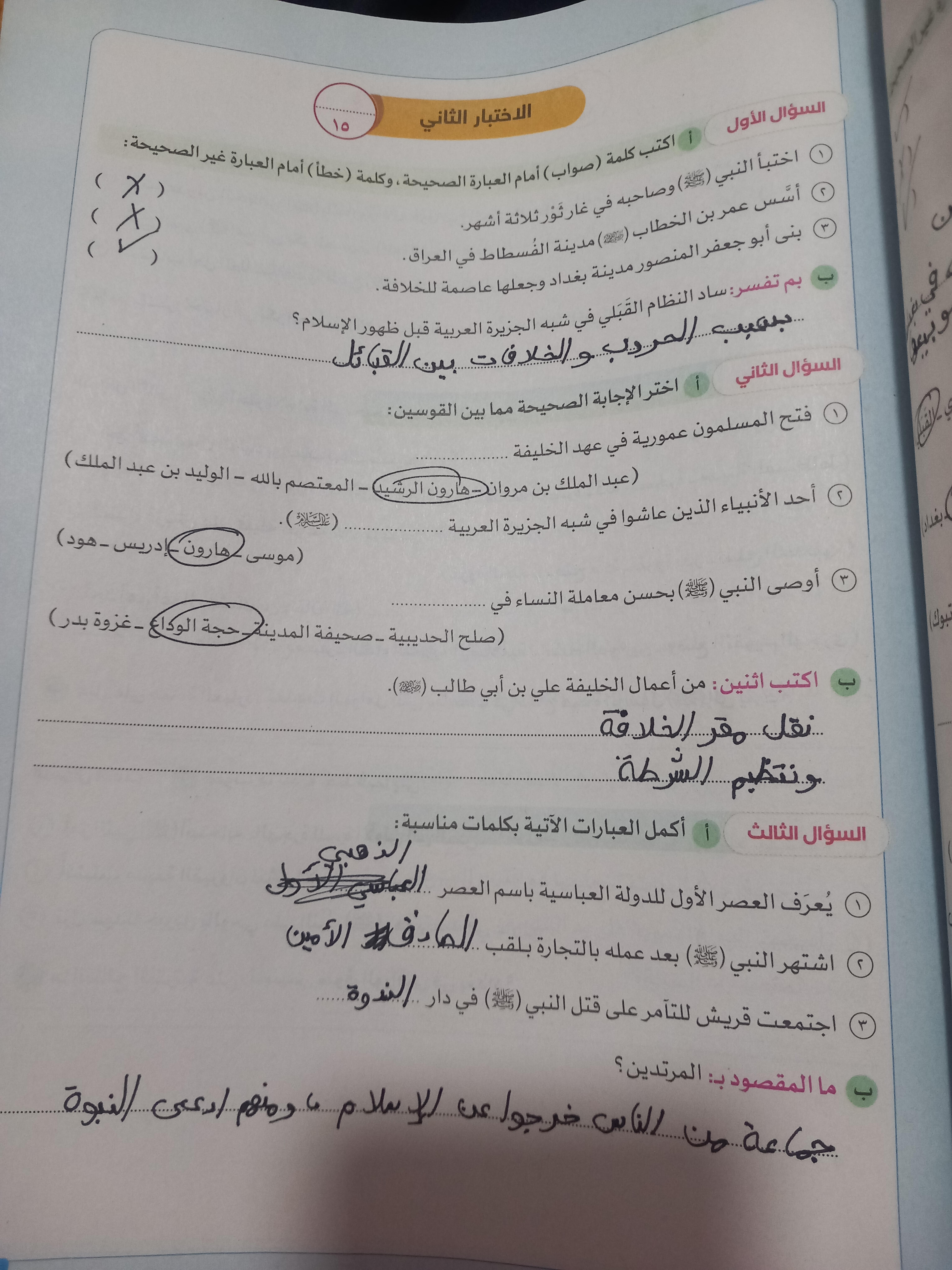 اخذنا اليوم اختبار الشهر الدرس الاول