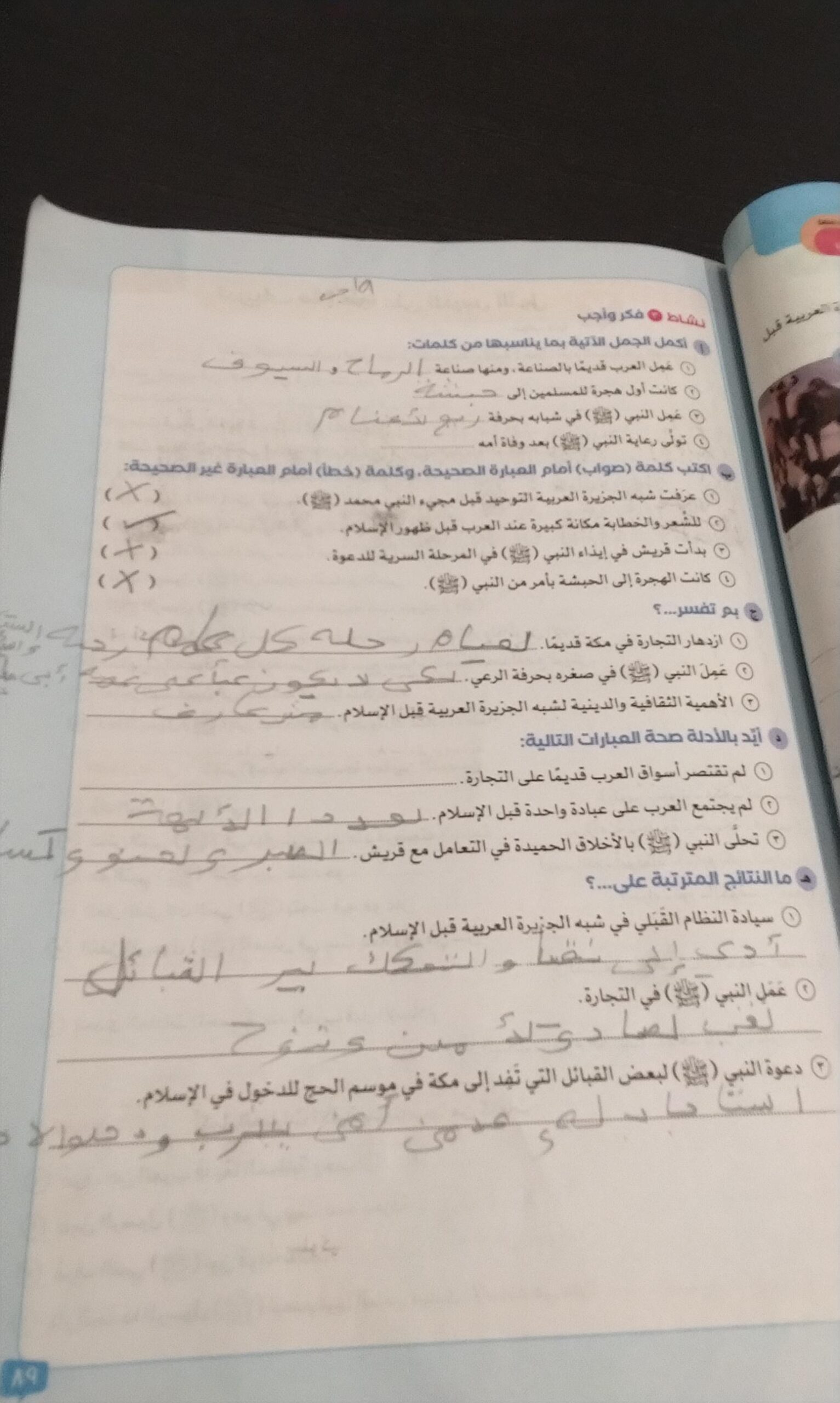 انتهينا من الدرس والواجب ص 89 و90