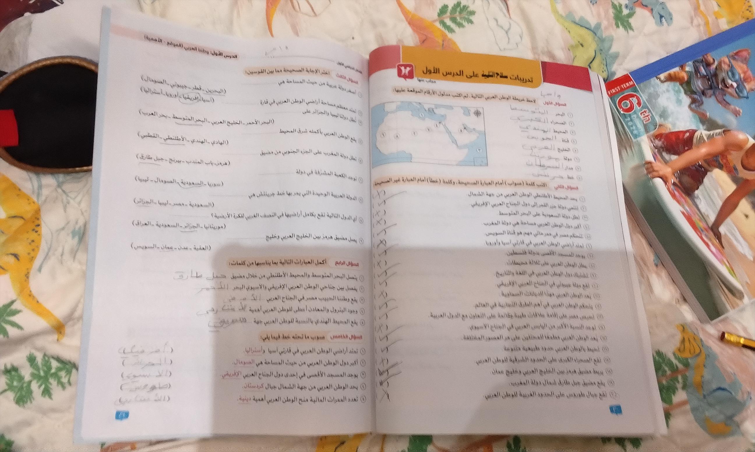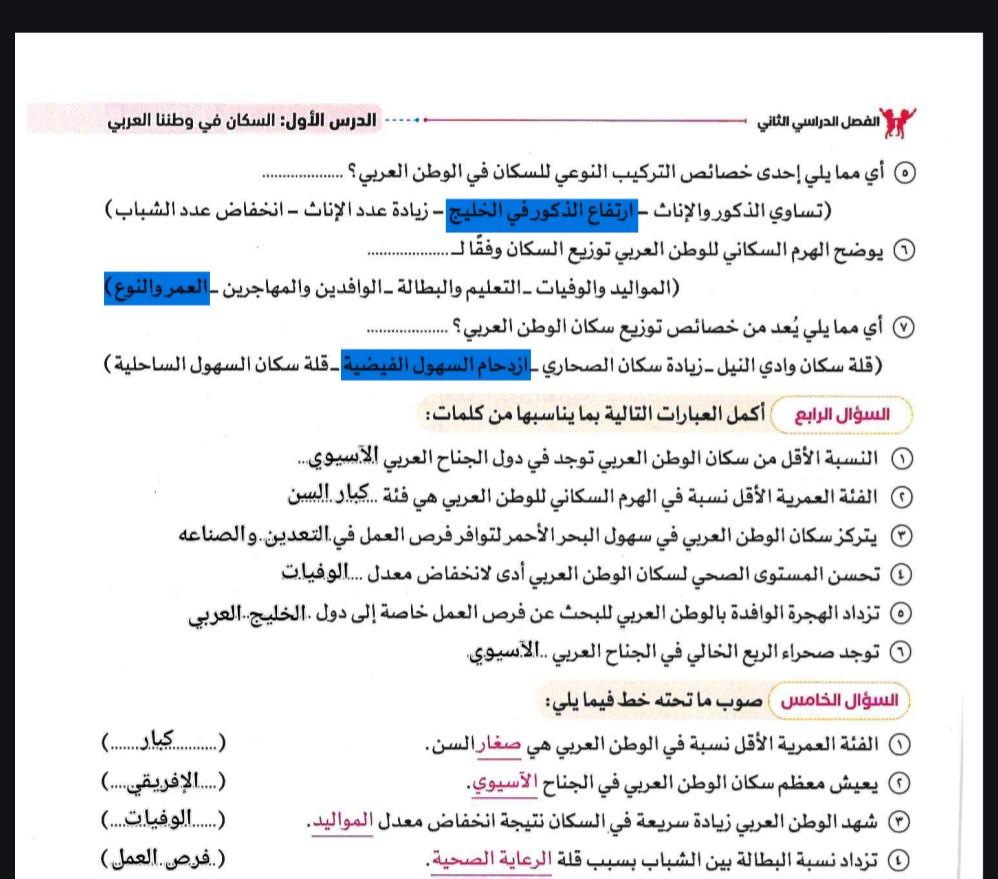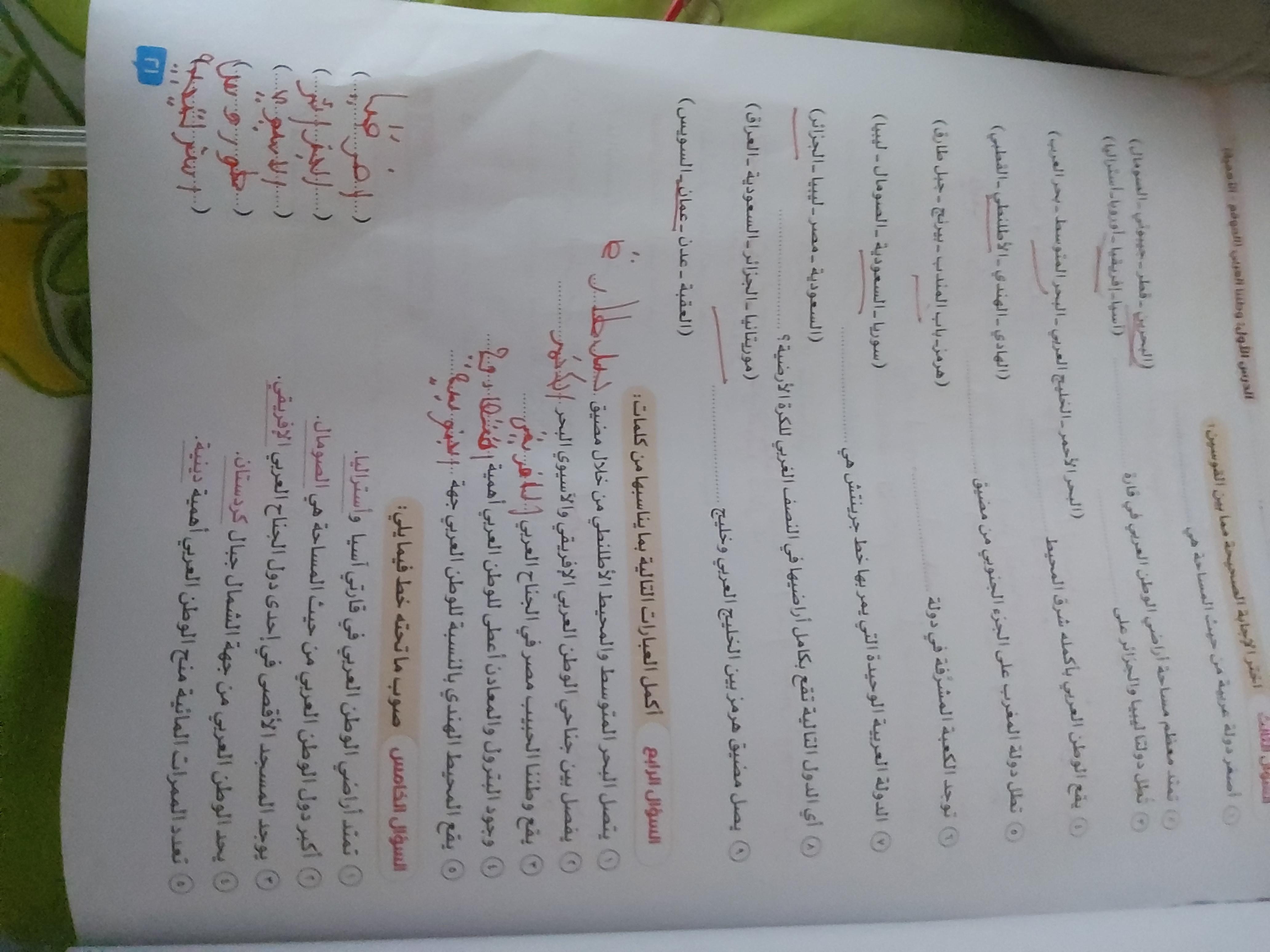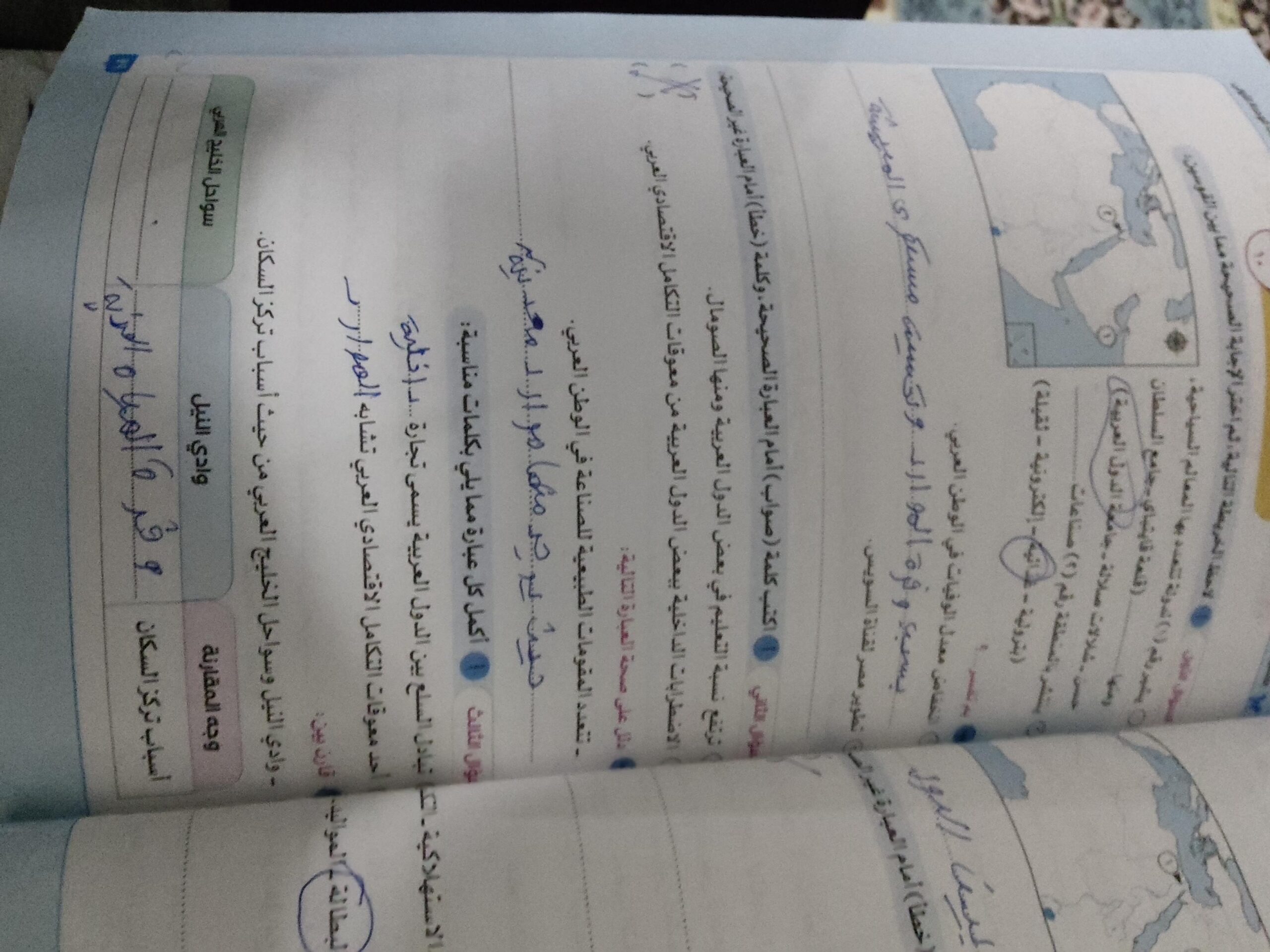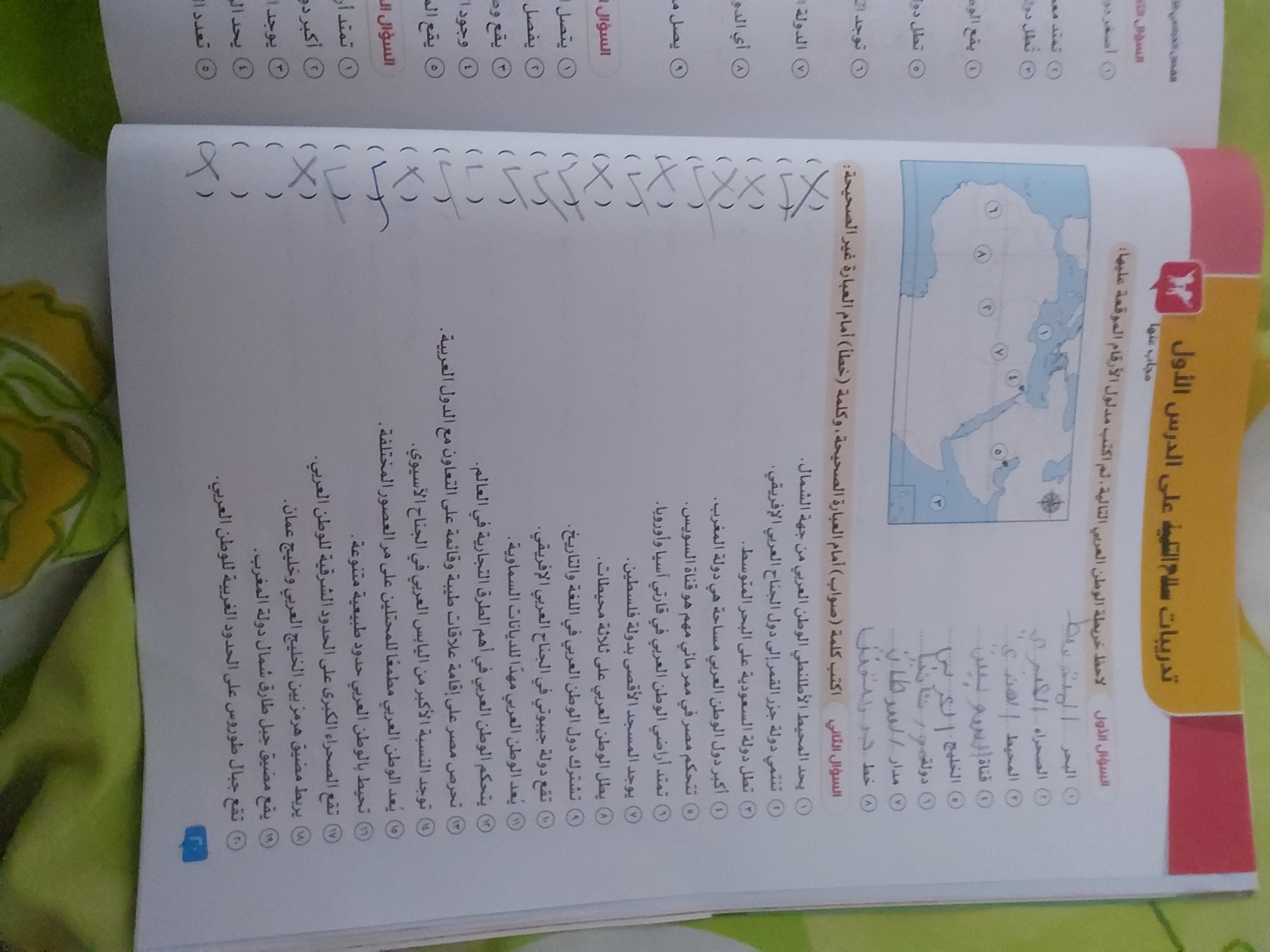 اخدنا اليوم الاهميه الاستراتيجيه والاقتصاديه للوطن العربي وحلينا تدريبات الكتاب المدرسي والواجب تدريبات سلاح التلميذ ص 20 و21 و22