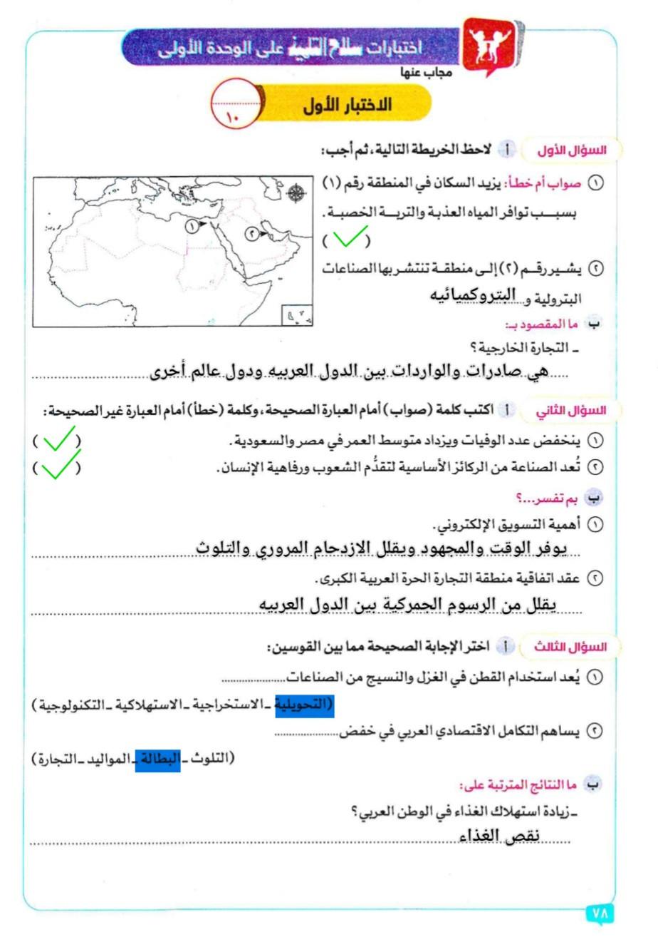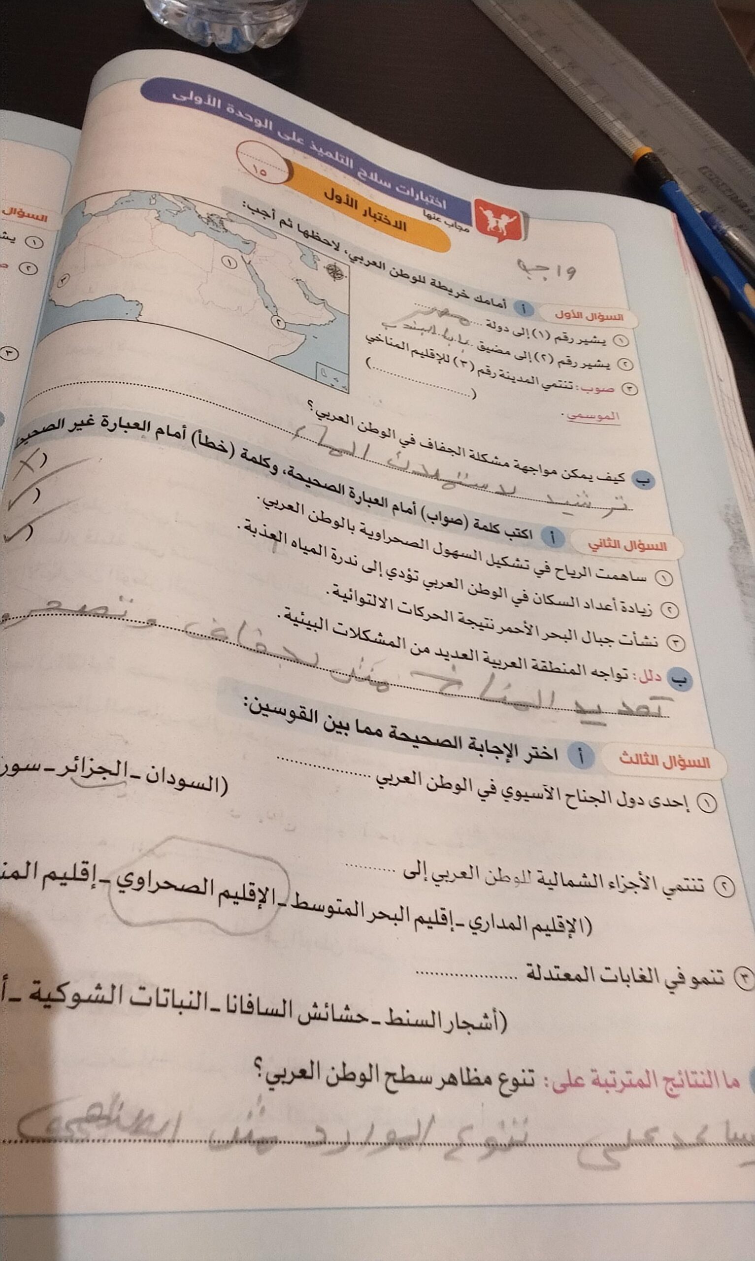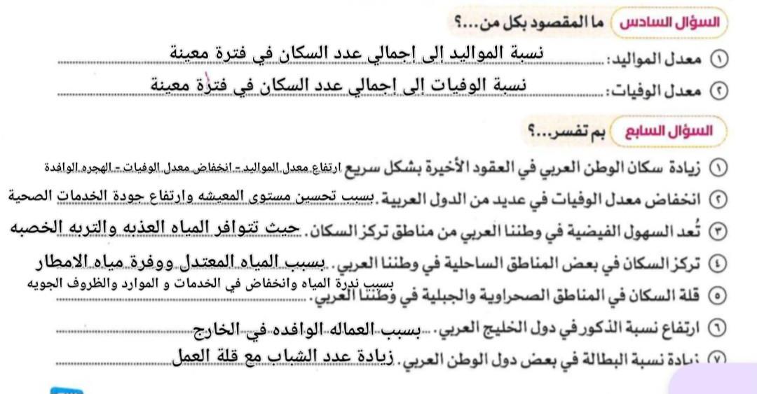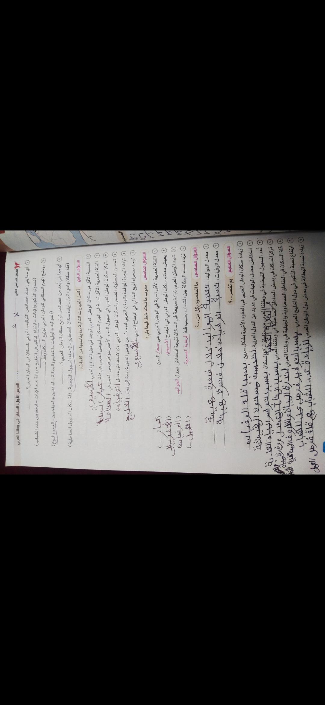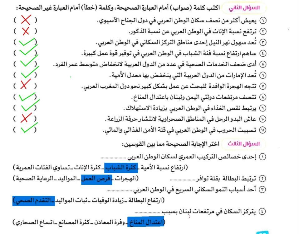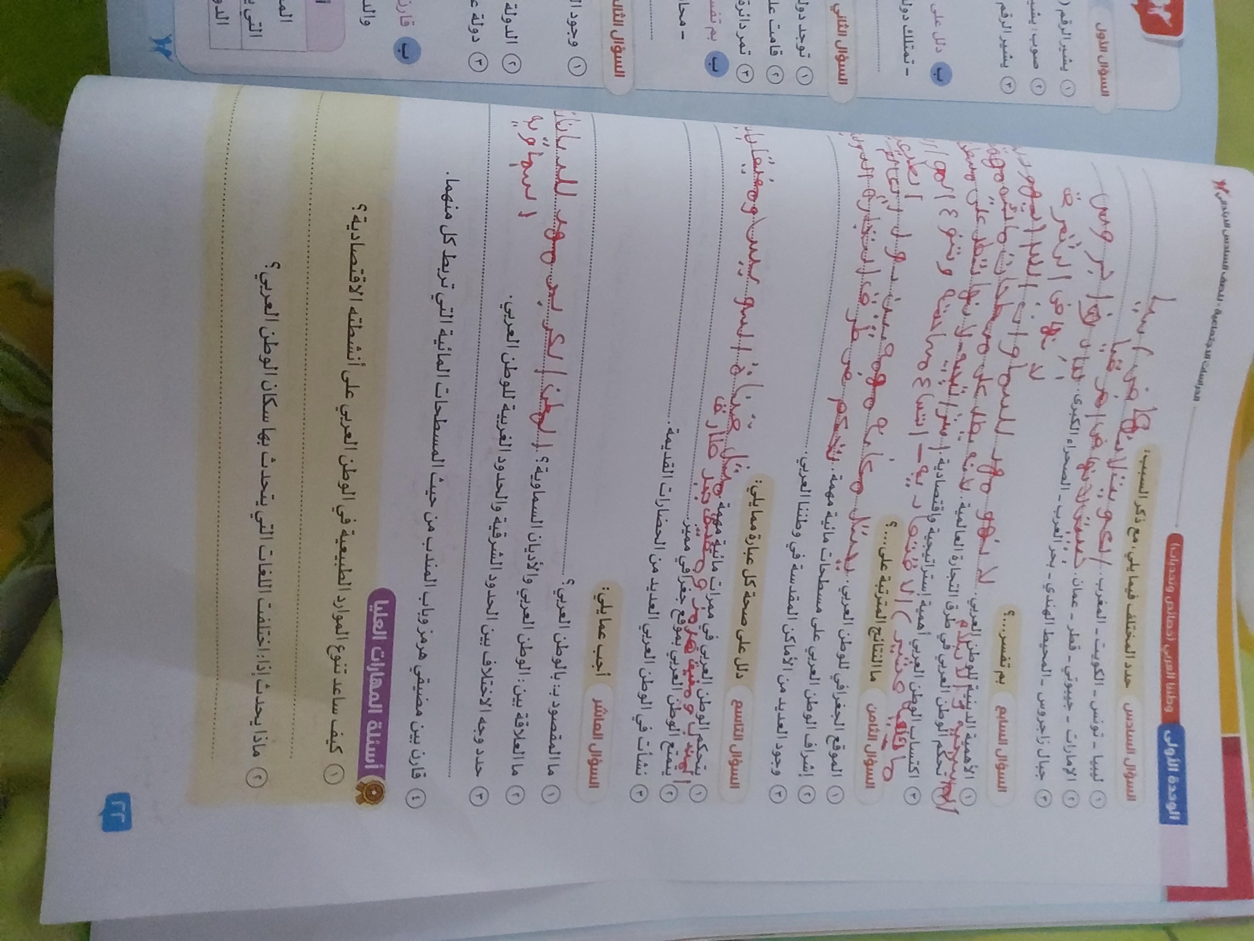 اخدنا اليوم الاهميه الاستراتيجيه والاقتصاديه للوطن العربي وحلينا تدريبات الكتاب المدرسي والواجب تدريبات سلاح التلميذ ص 20 و21 و22