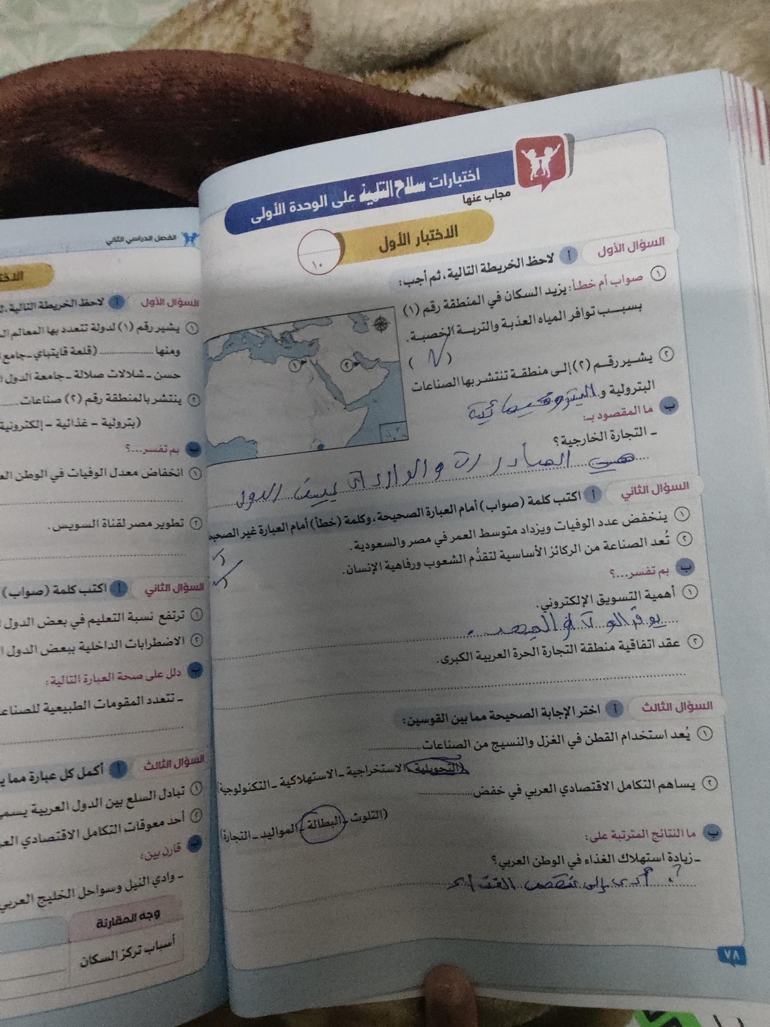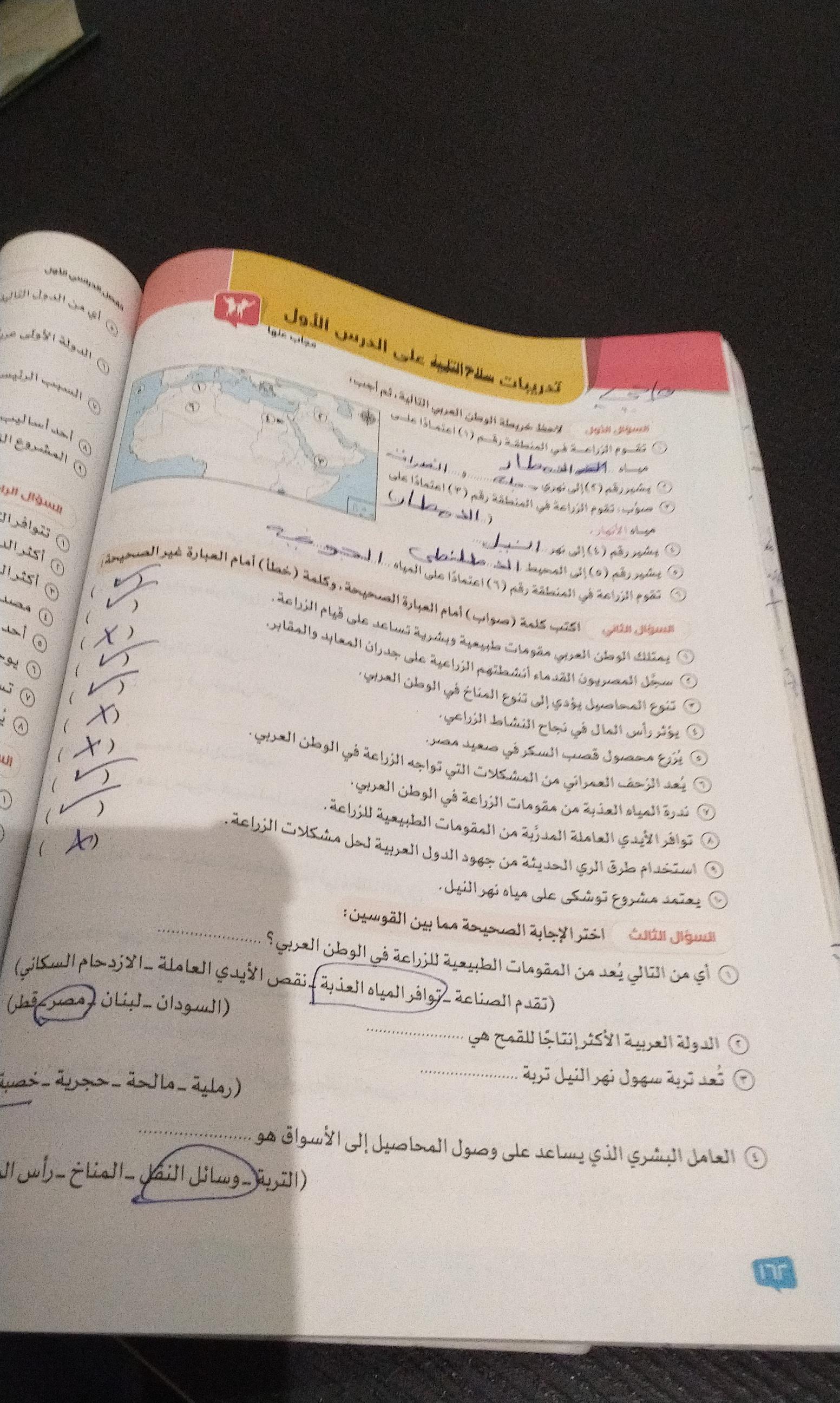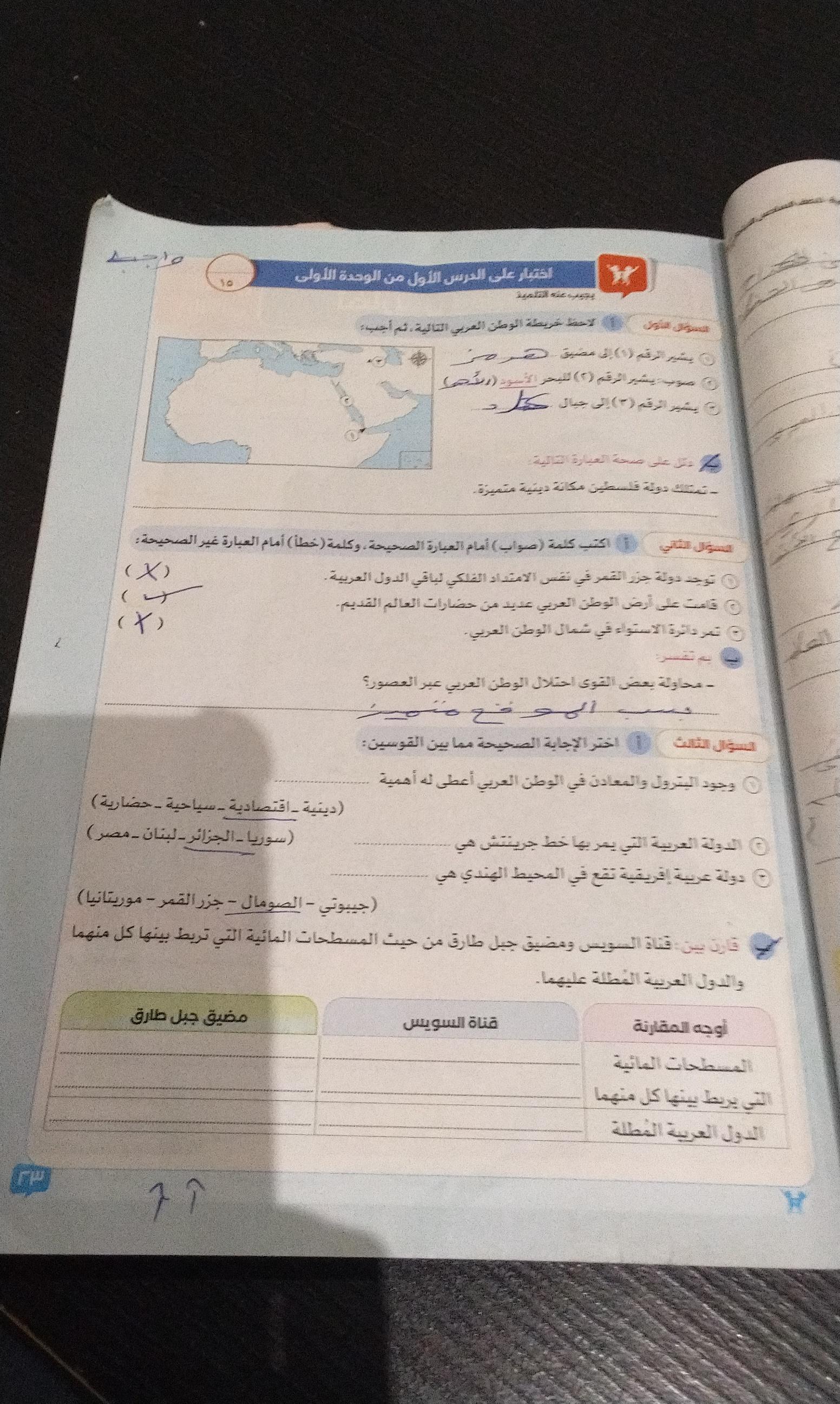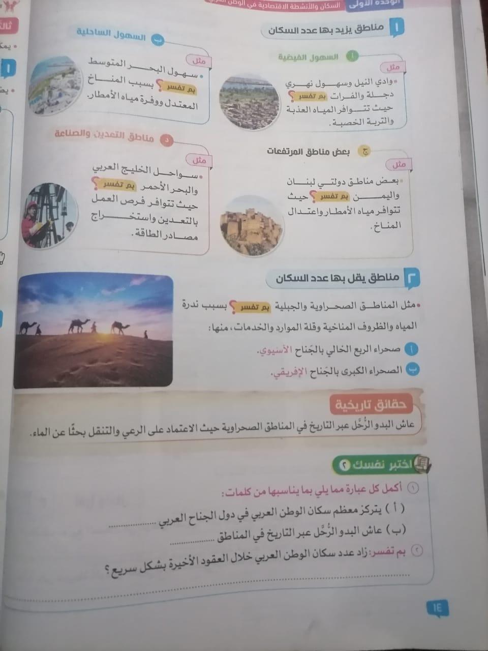 اخدنا اليوم الاهميه الاستراتيجيه والاقتصاديه للوطن العربي وحلينا تدريبات الكتاب المدرسي والواجب تدريبات سلاح التلميذ ص 20 و21 و22