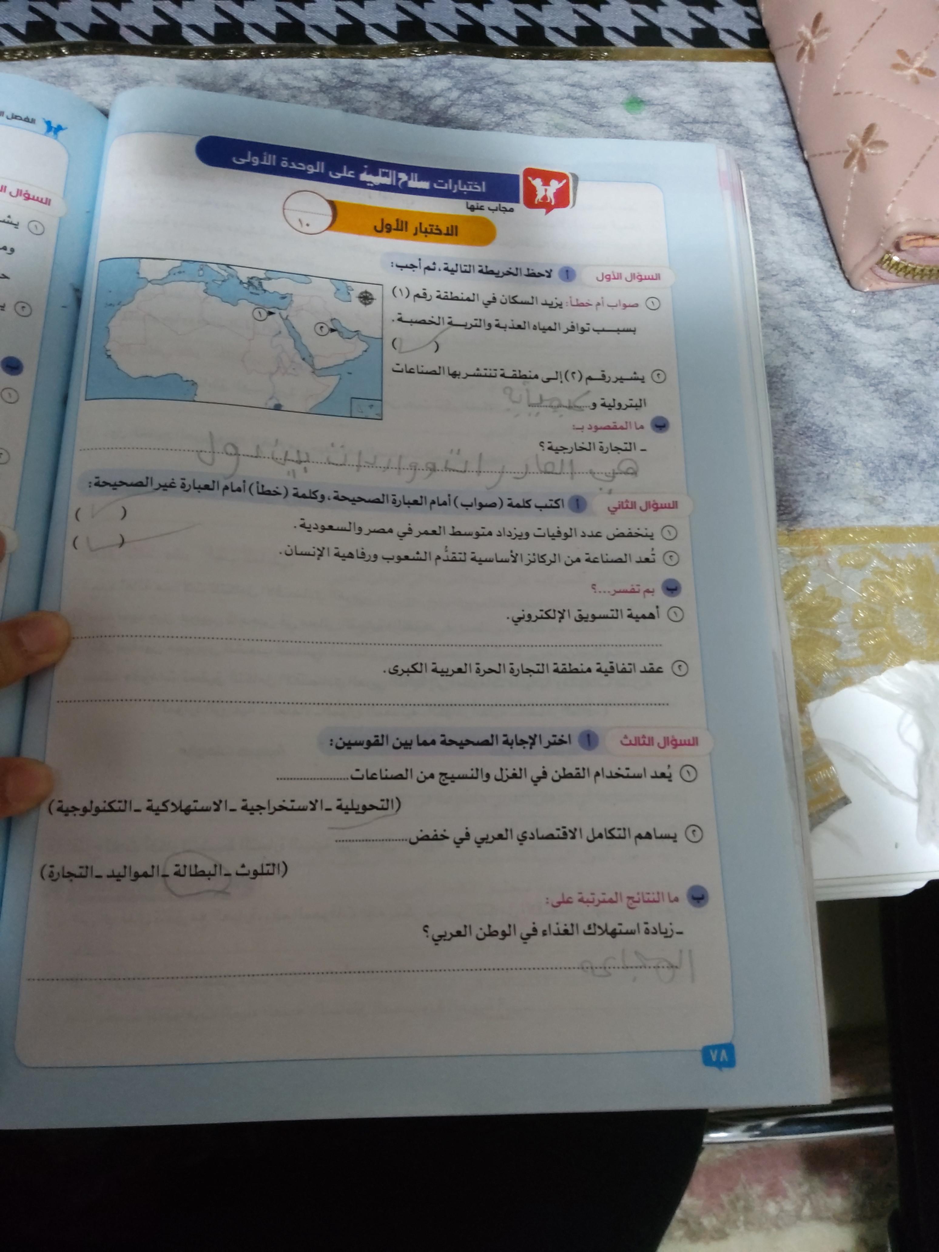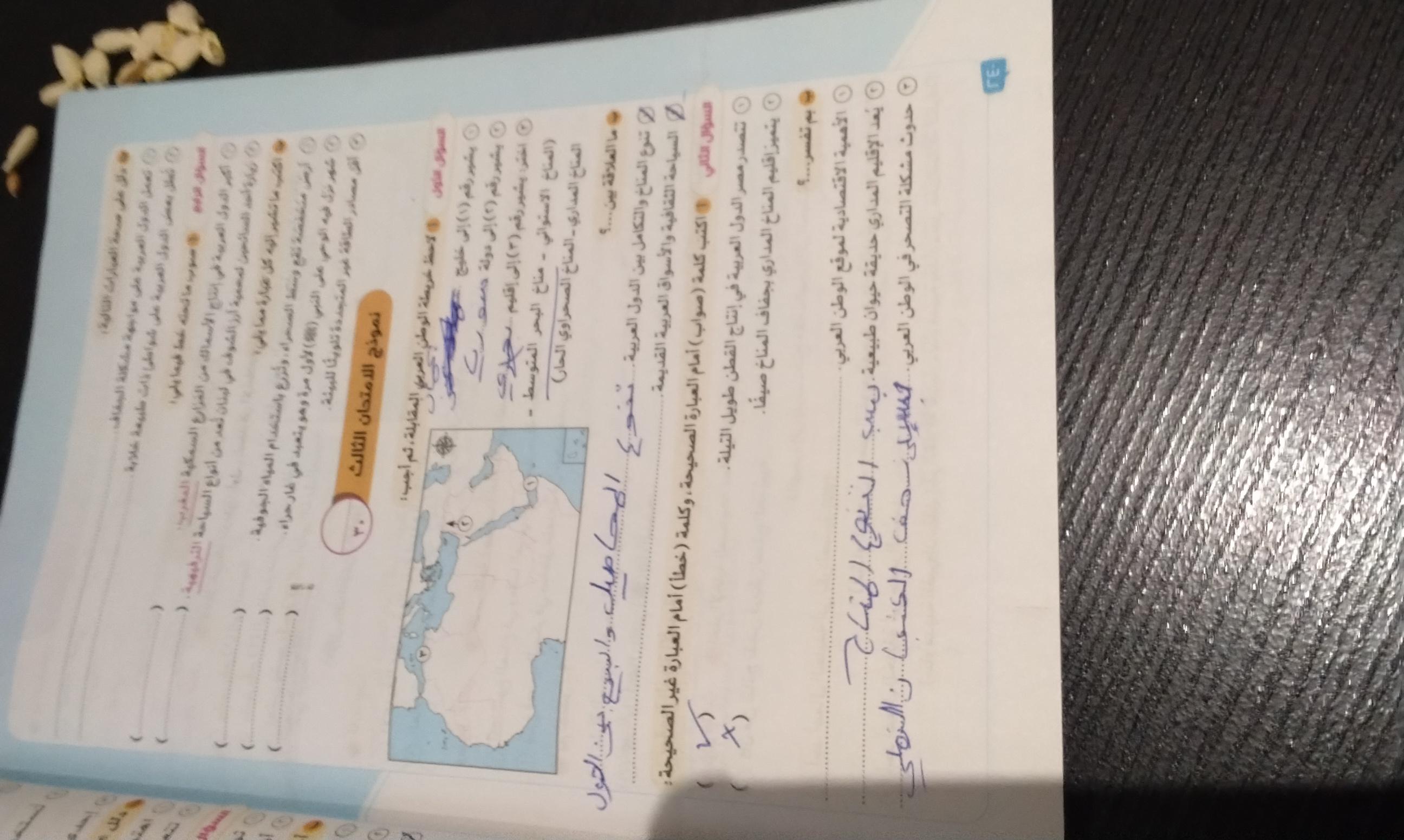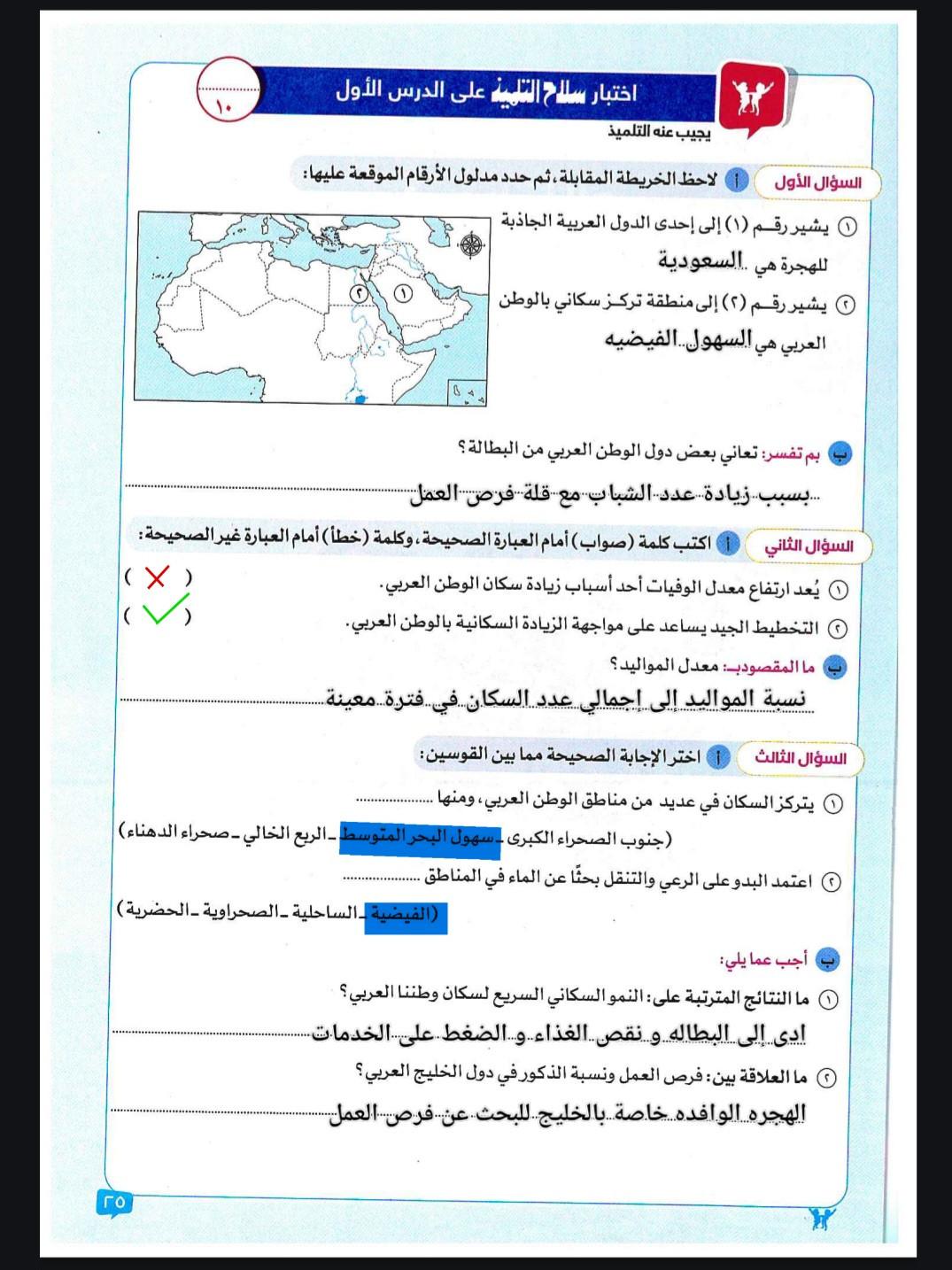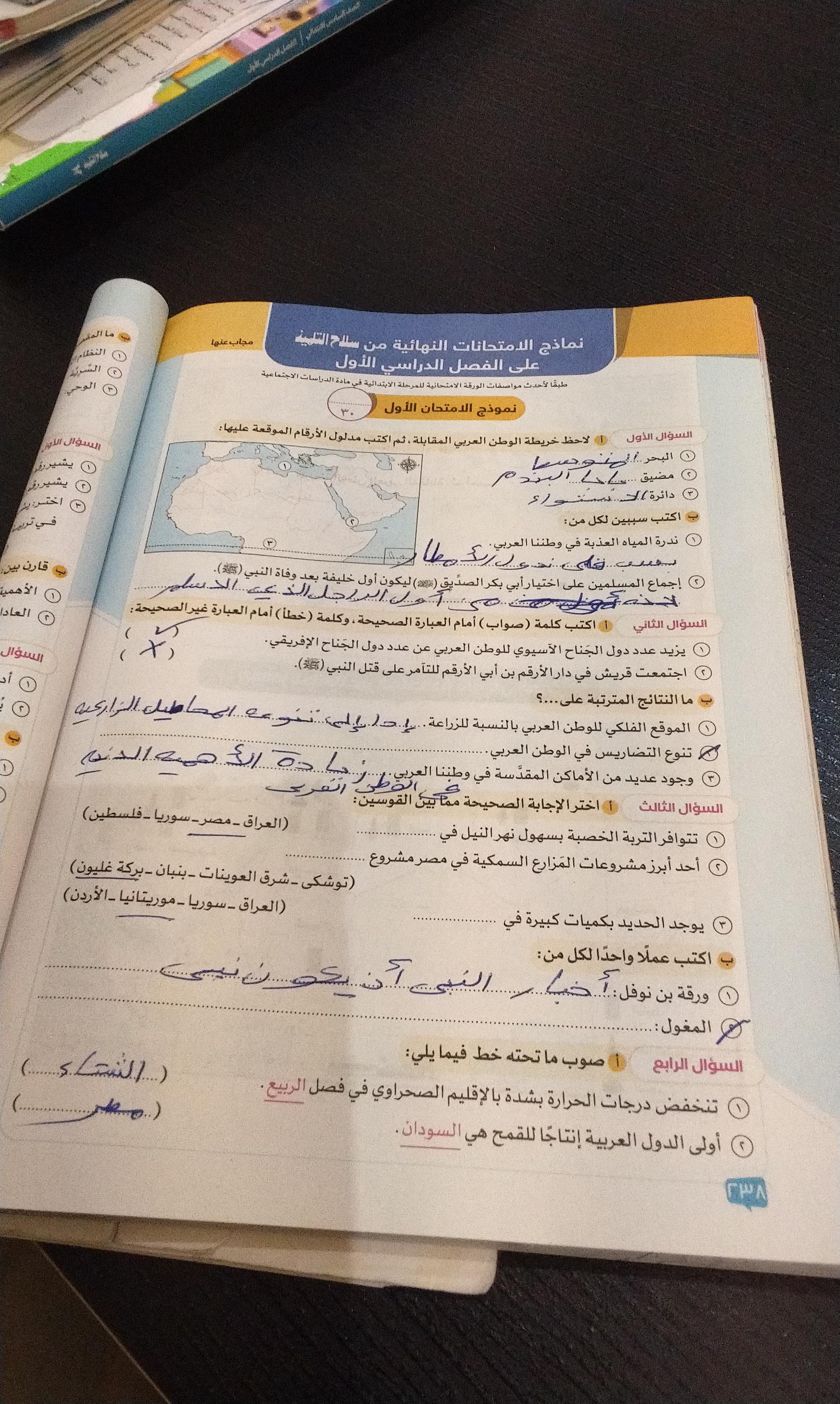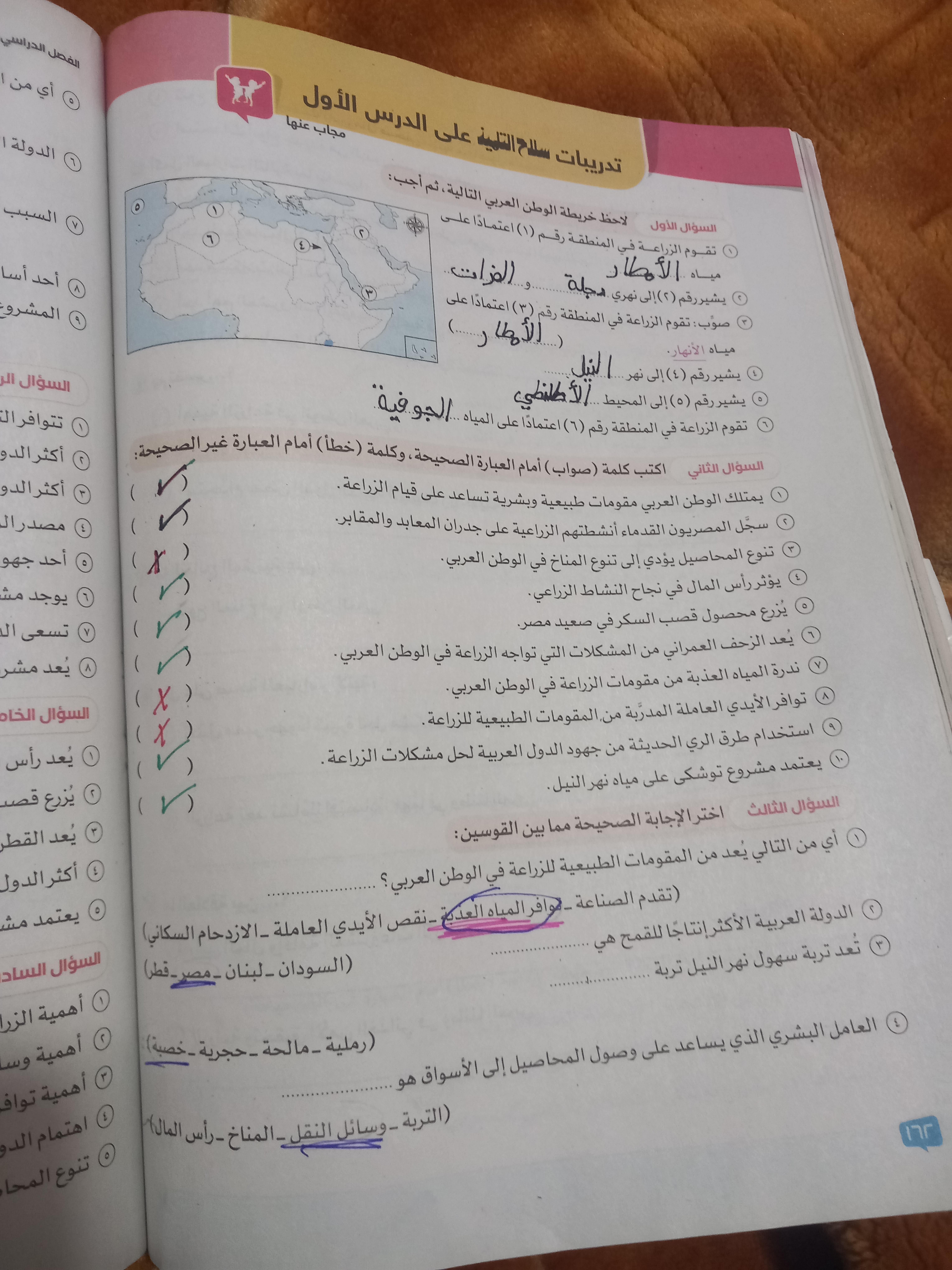 اخدنا اليوم الاهميه الاستراتيجيه والاقتصاديه للوطن العربي وحلينا تدريبات الكتاب المدرسي والواجب تدريبات سلاح التلميذ ص 20 و21 و22