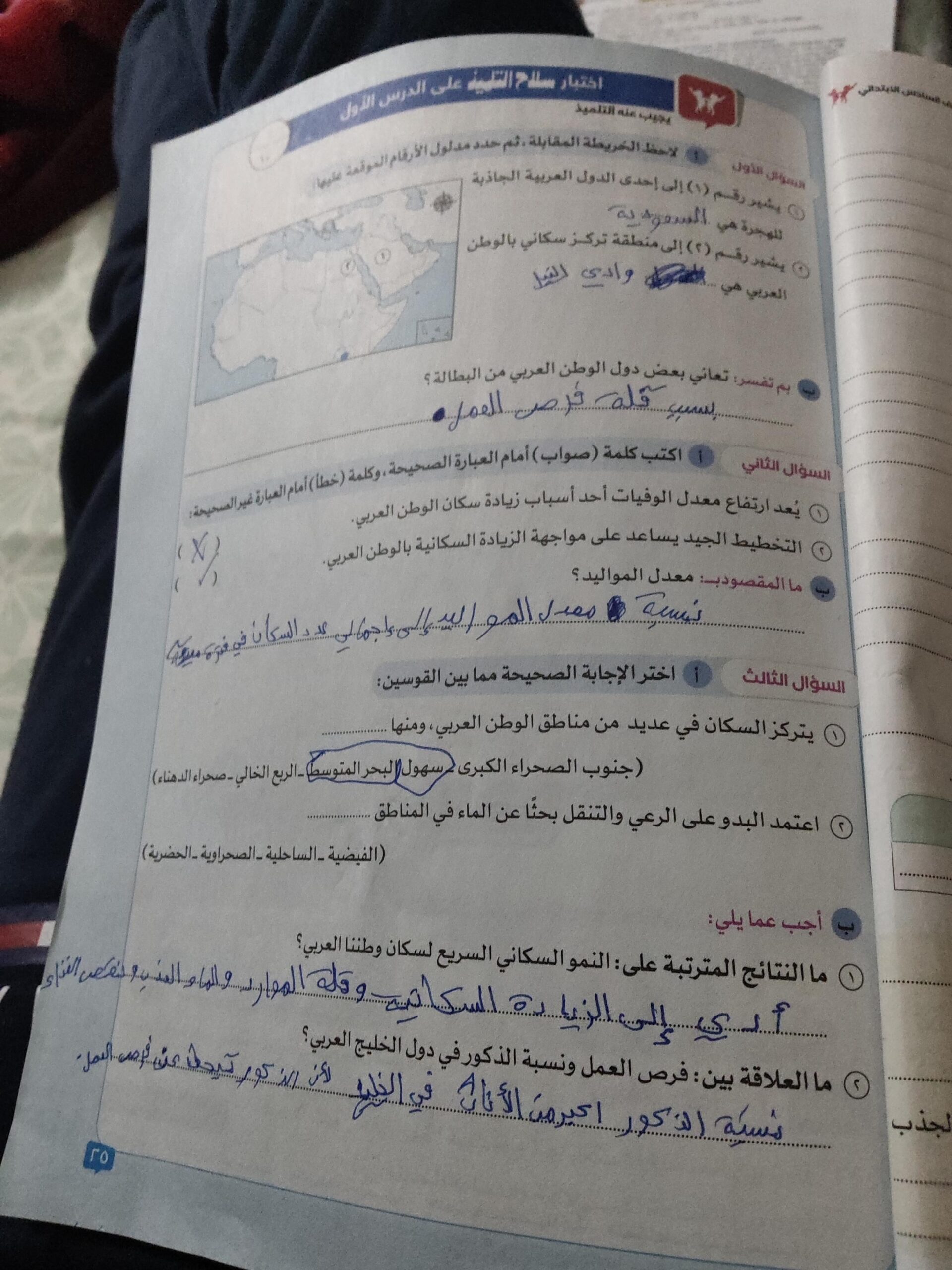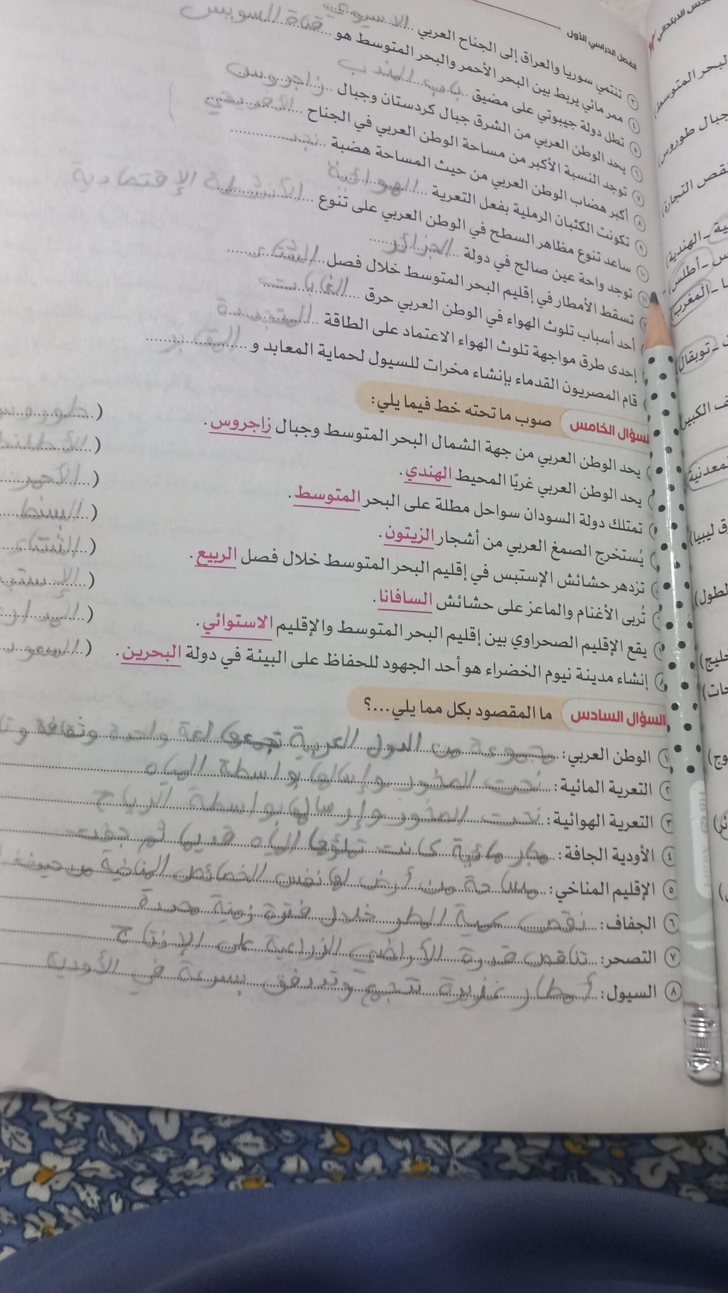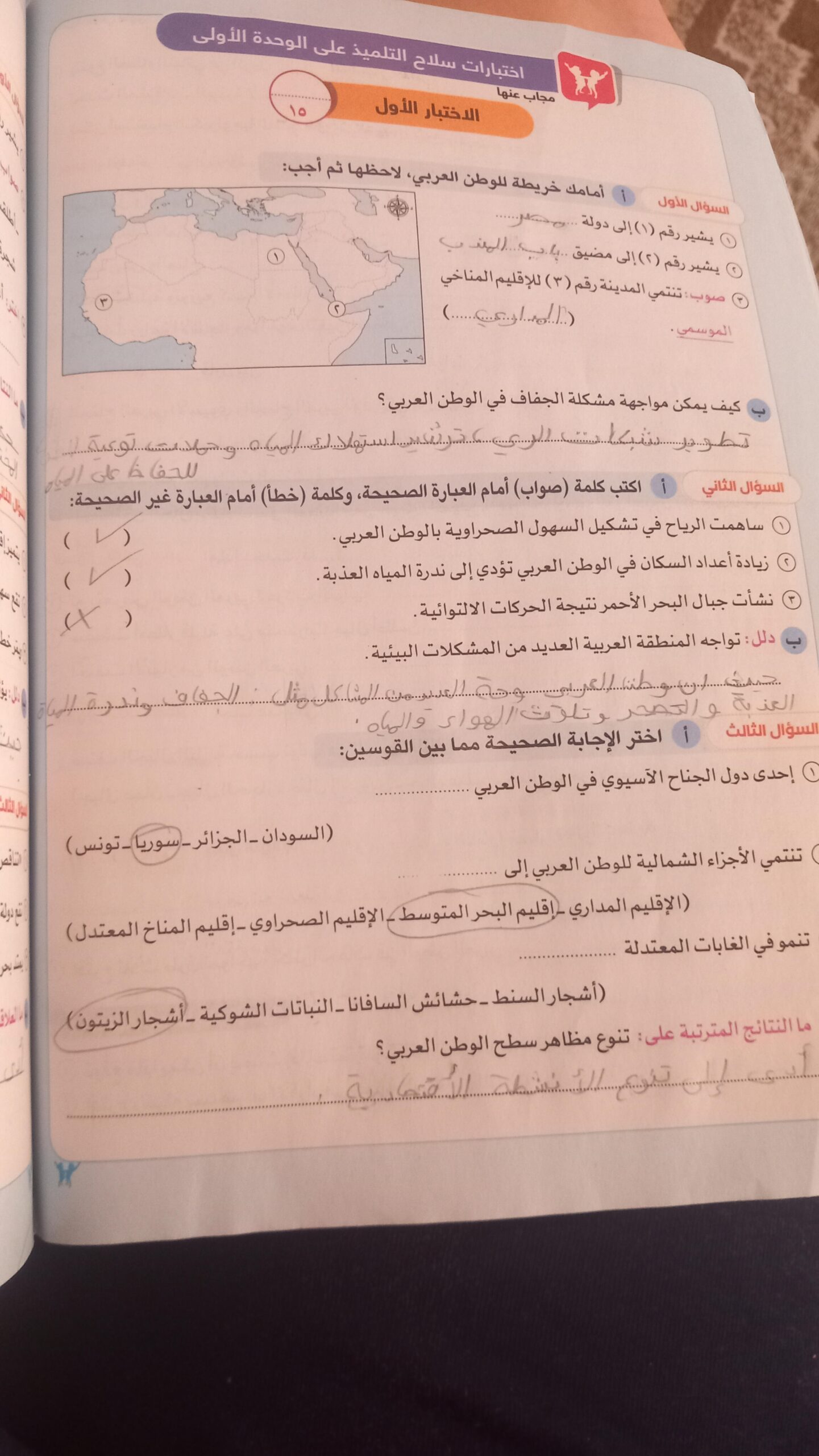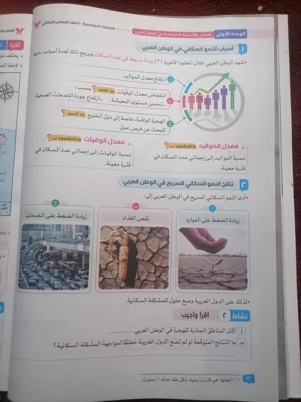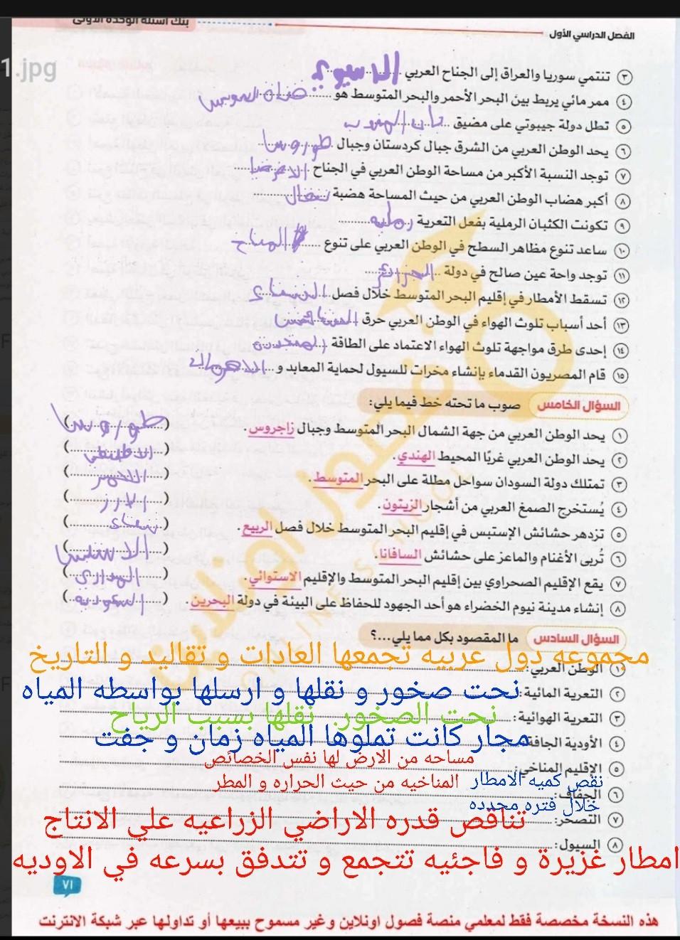اخدنا اليوم الاهميه الاستراتيجيه والاقتصاديه للوطن العربي وحلينا تدريبات الكتاب المدرسي والواجب تدريبات سلاح التلميذ ص 20 و21 و22