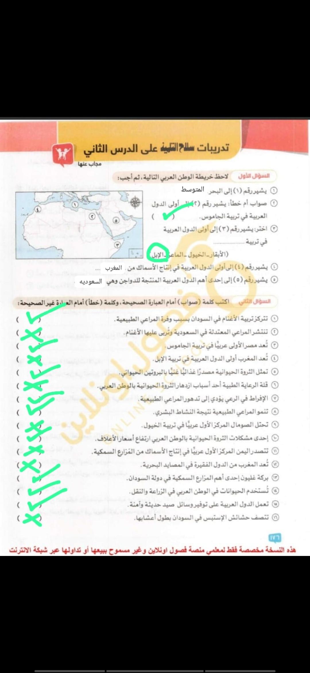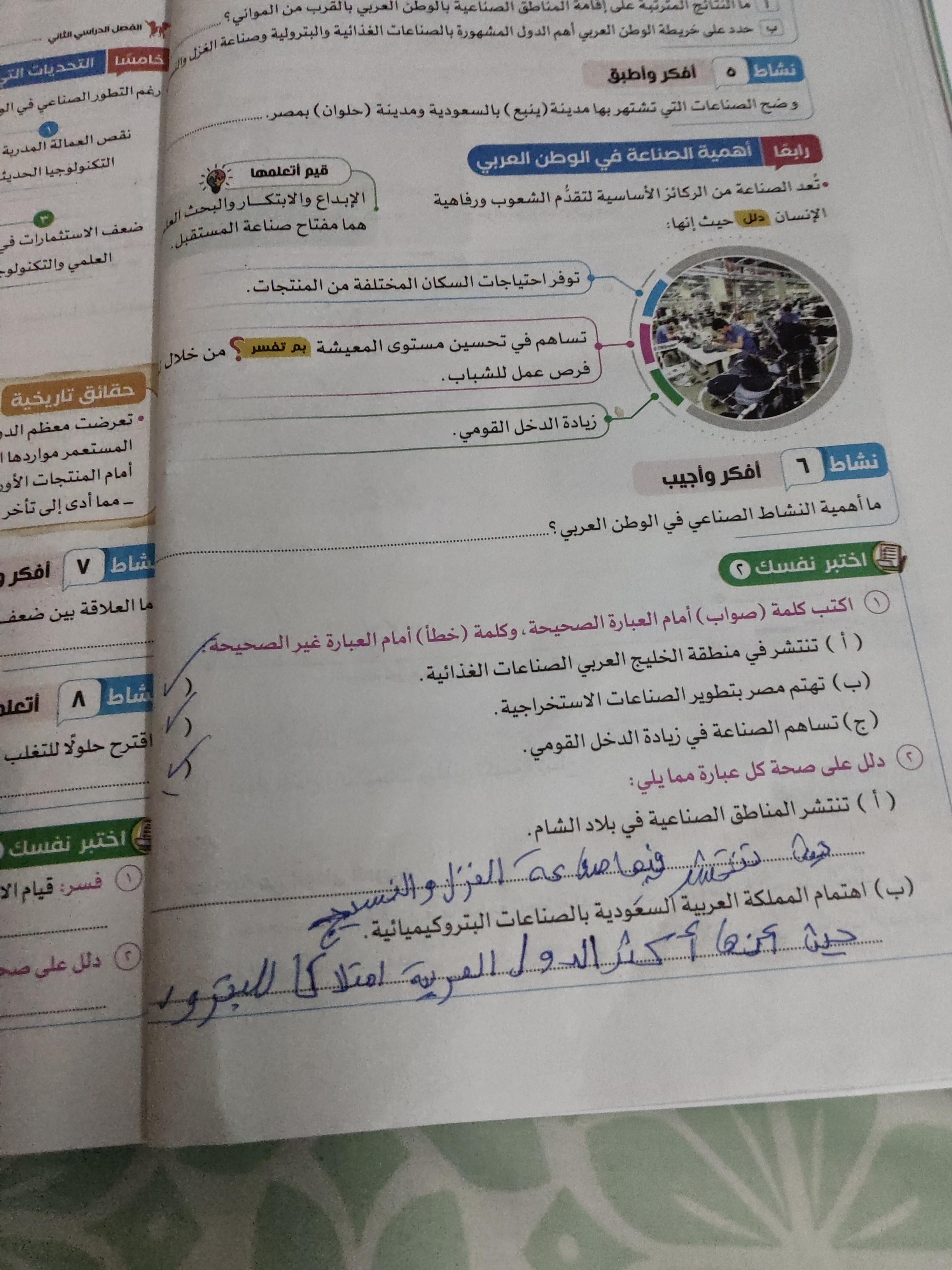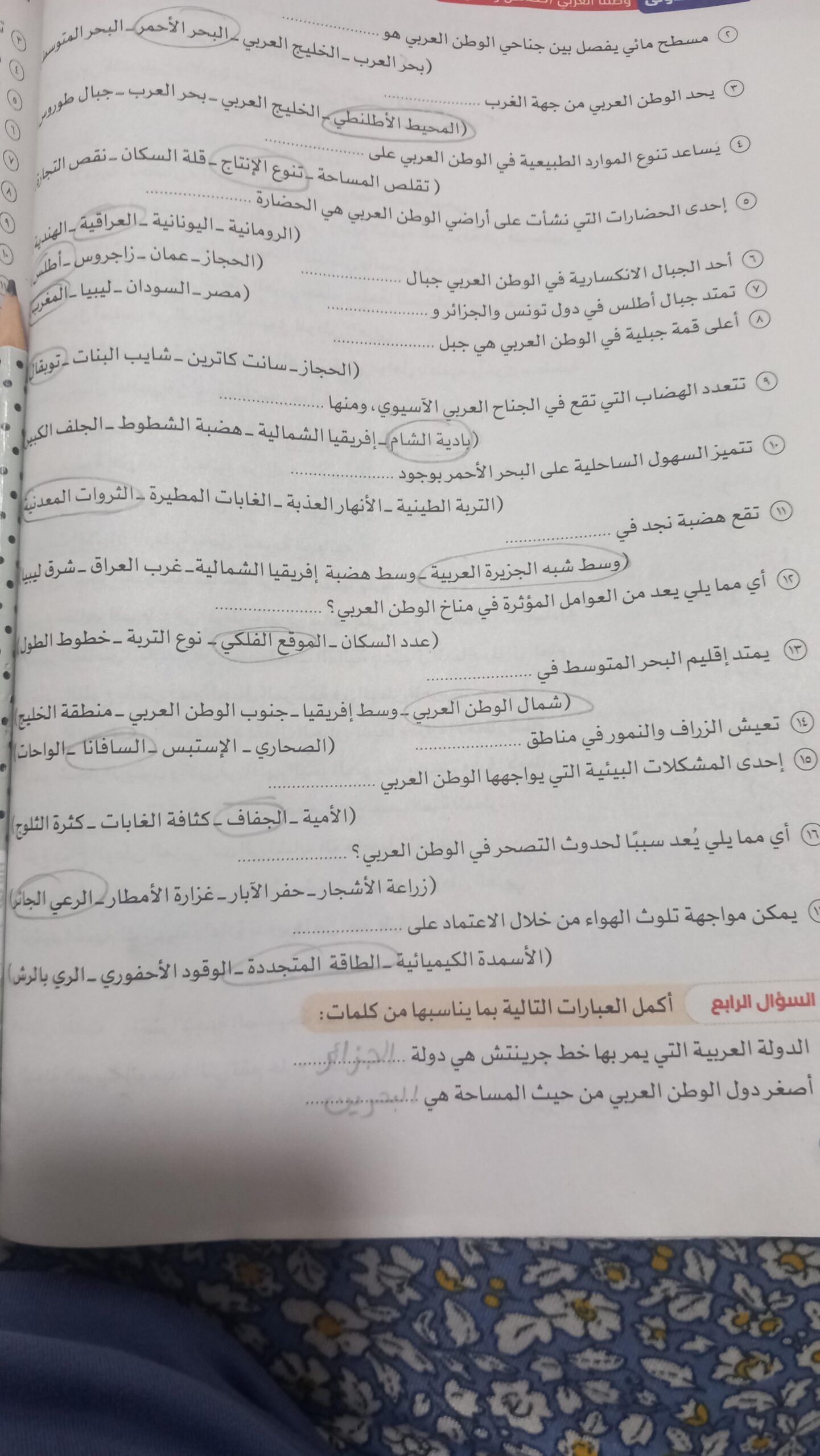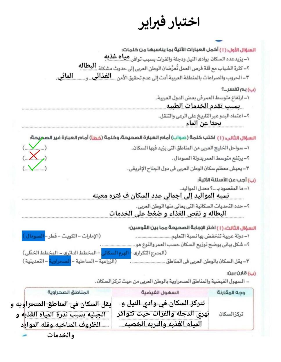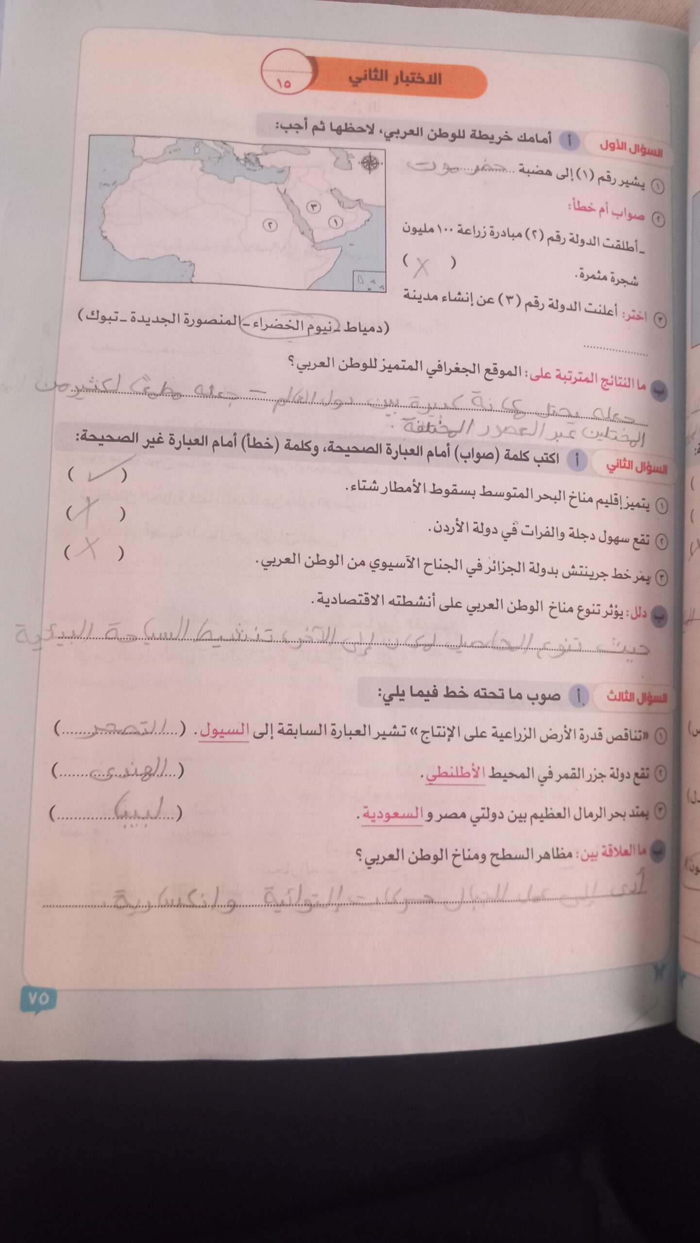 اخدنا اليوم الاهميه الاستراتيجيه والاقتصاديه للوطن العربي وحلينا تدريبات الكتاب المدرسي والواجب تدريبات سلاح التلميذ ص 20 و21 و22