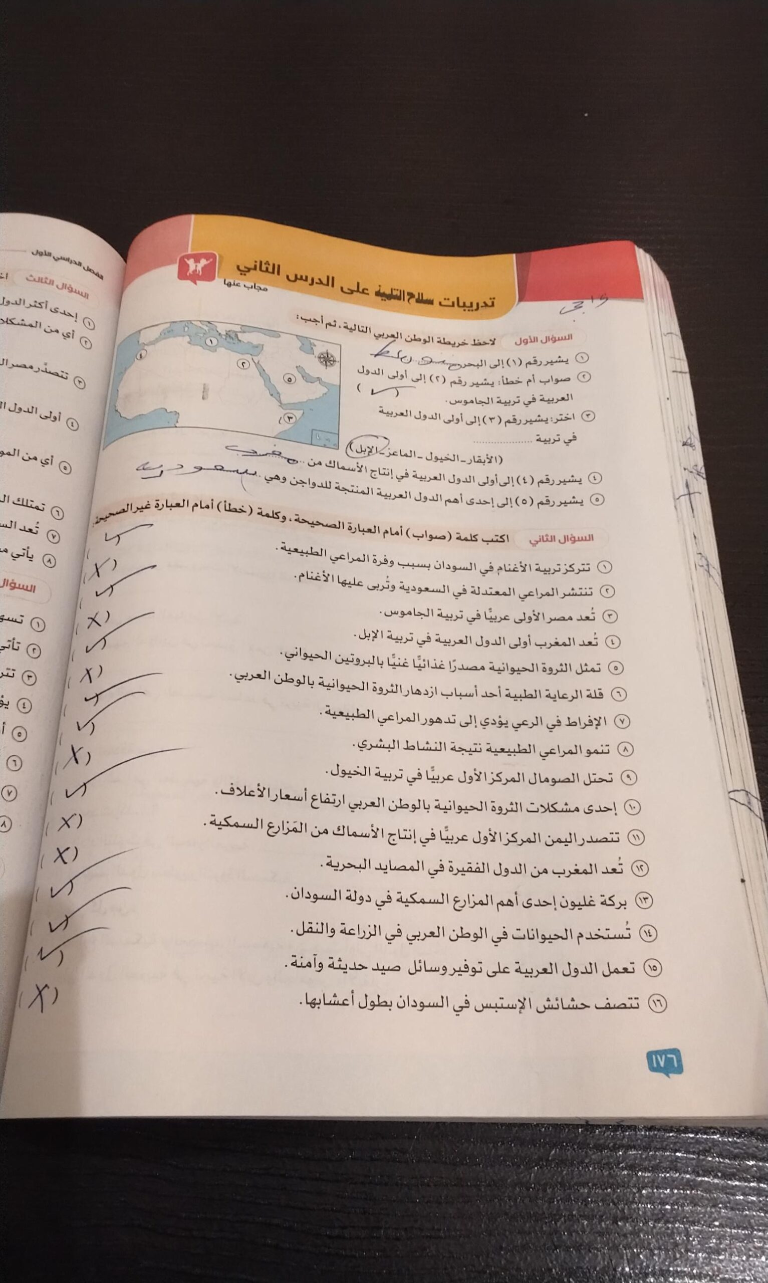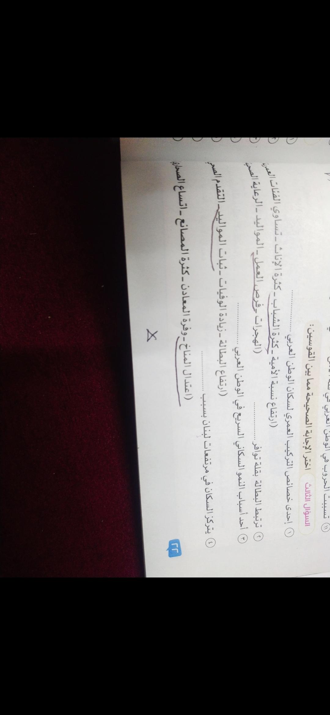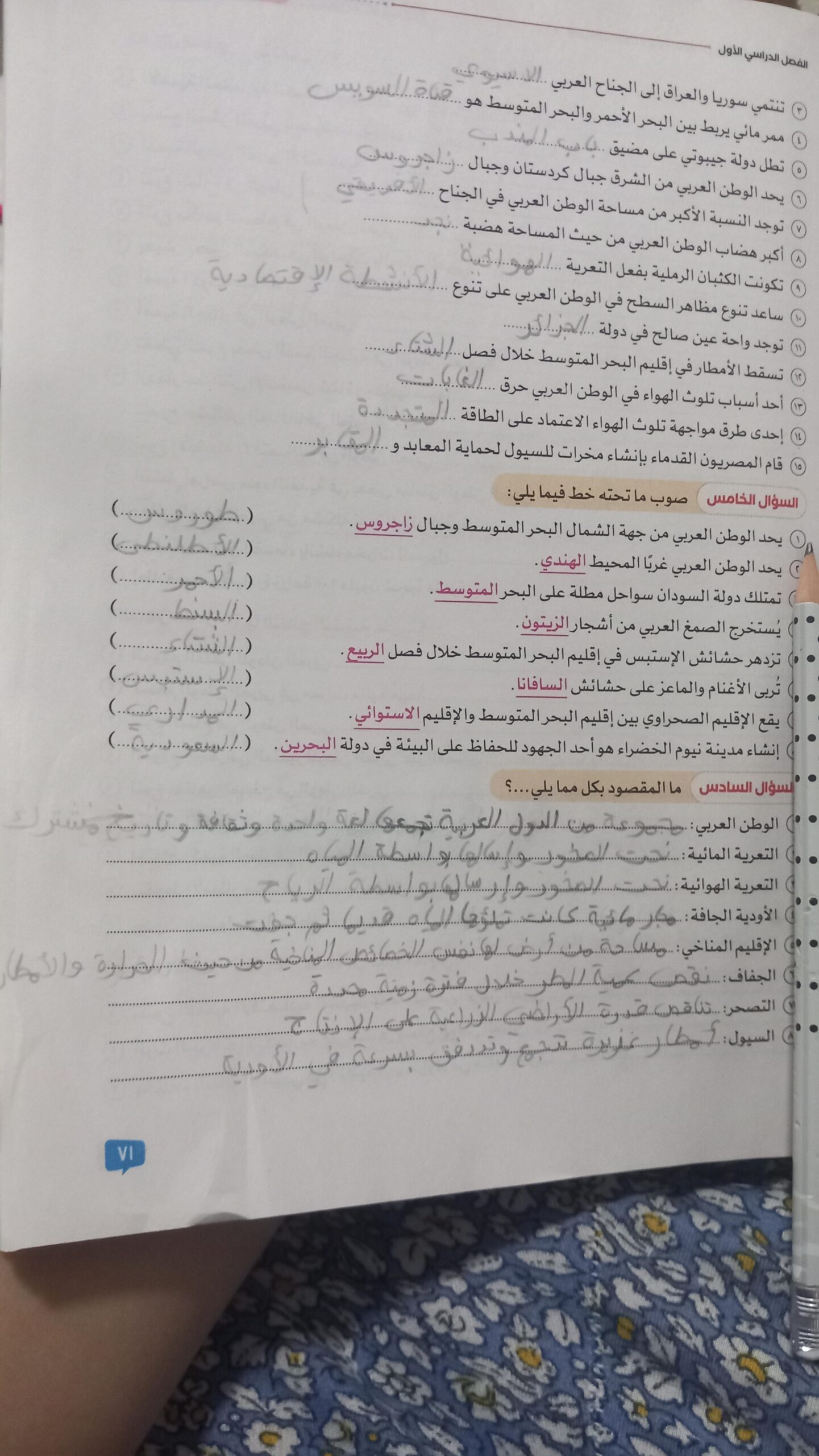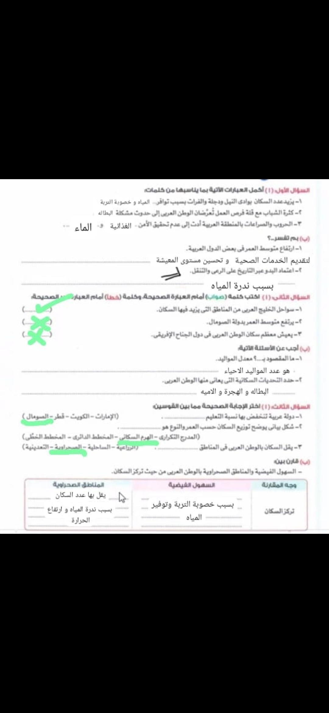 اخدنا اليوم الاهميه الاستراتيجيه والاقتصاديه للوطن العربي وحلينا تدريبات الكتاب المدرسي والواجب تدريبات سلاح التلميذ ص 20 و21 و22