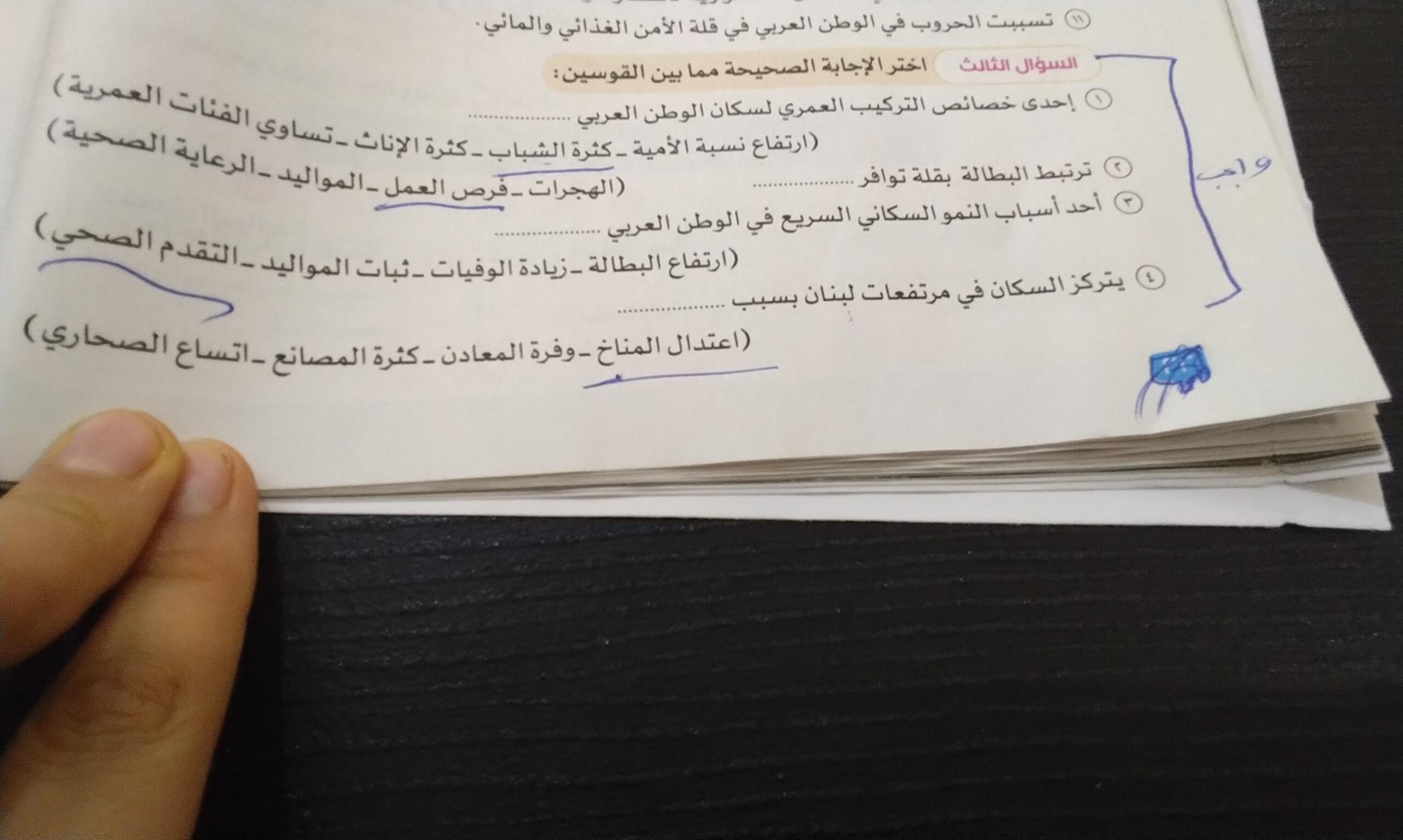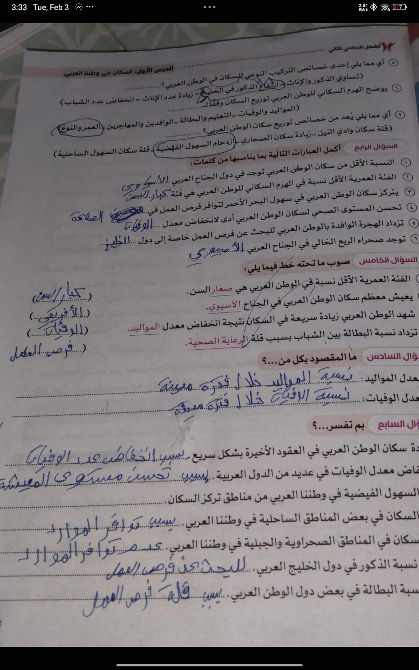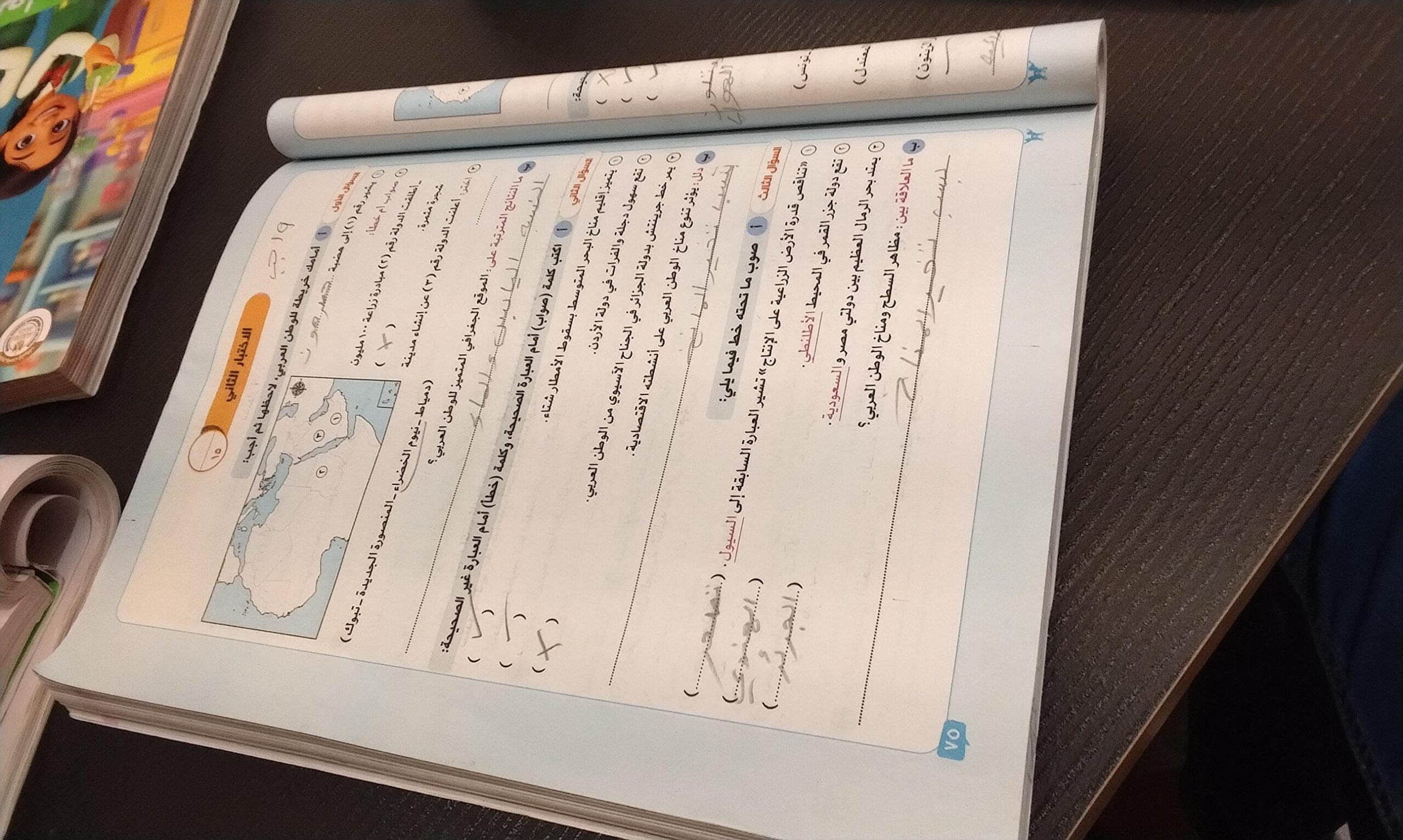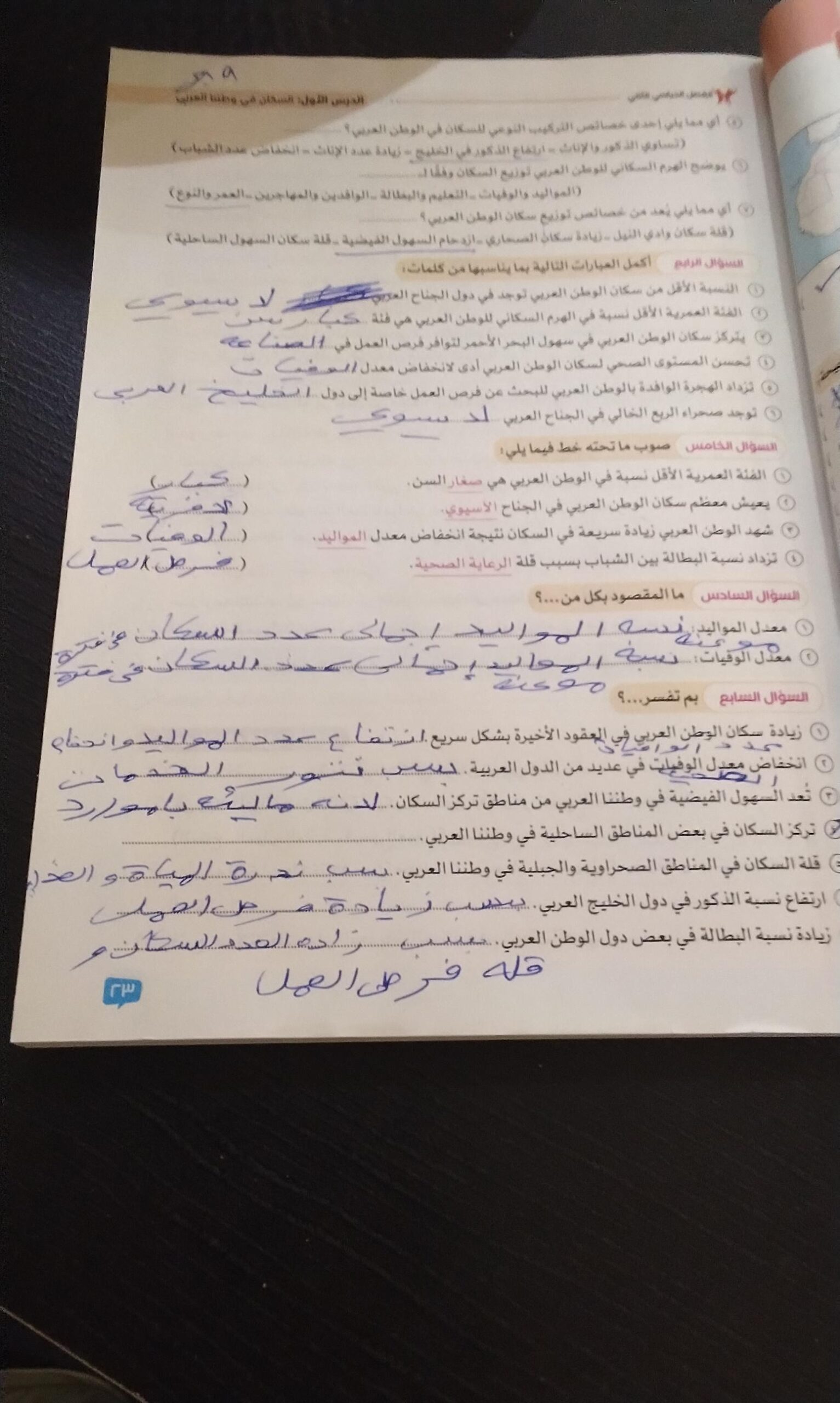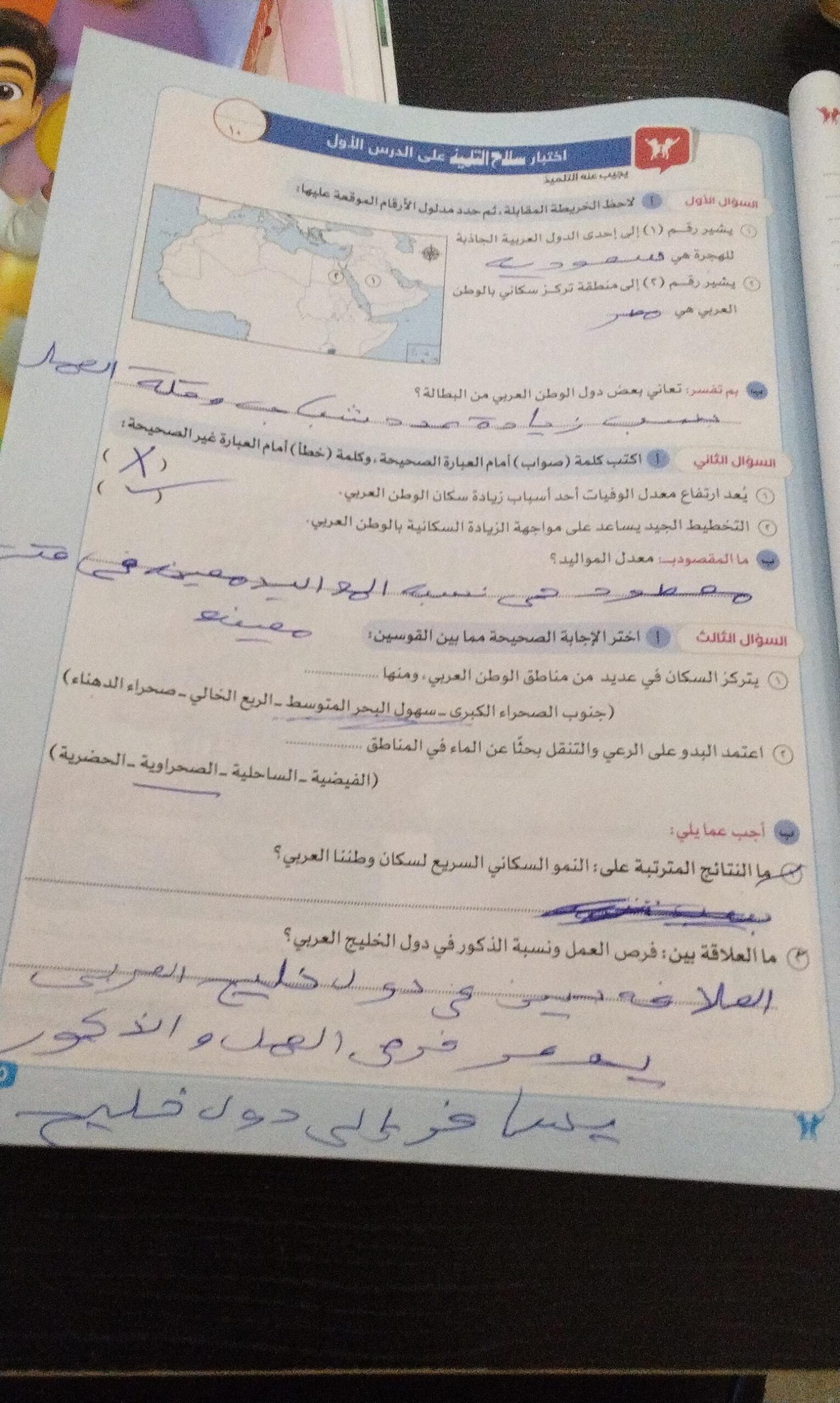 اخدنا اليوم الاهميه الاستراتيجيه والاقتصاديه للوطن العربي وحلينا تدريبات الكتاب المدرسي والواجب تدريبات سلاح التلميذ ص 20 و21 و22