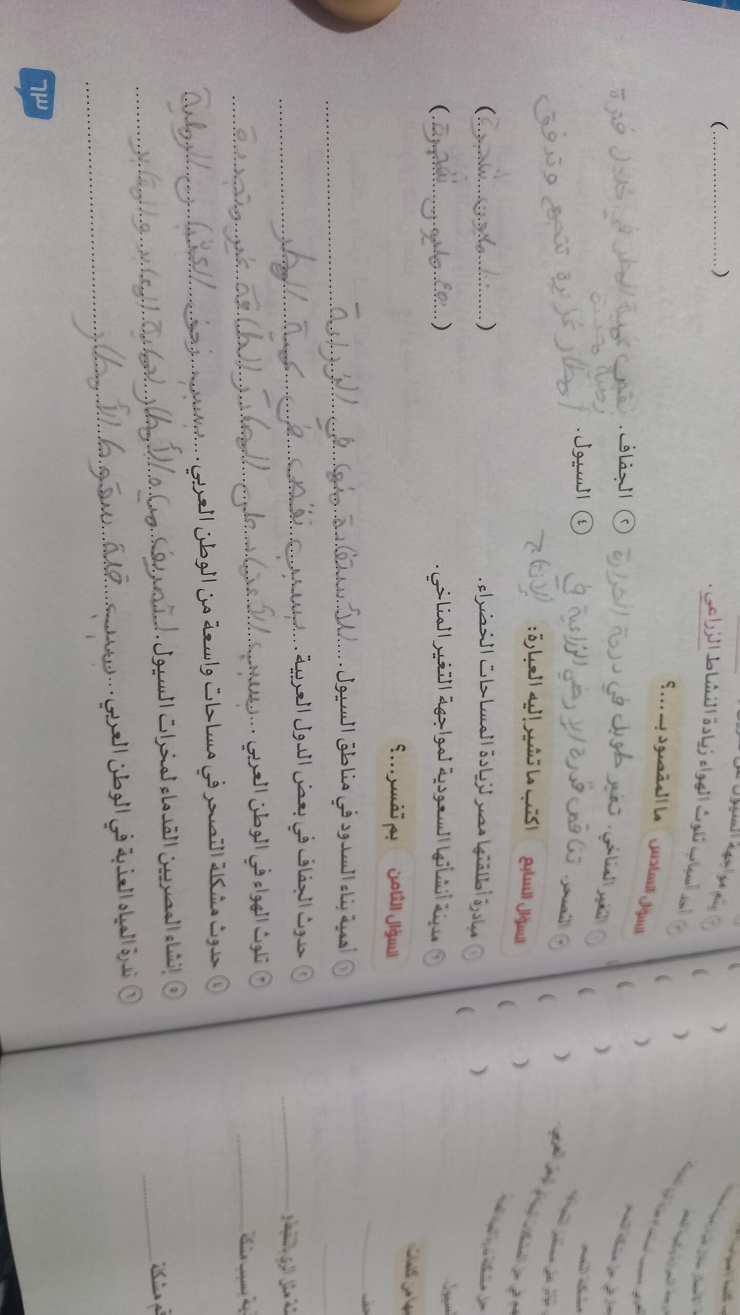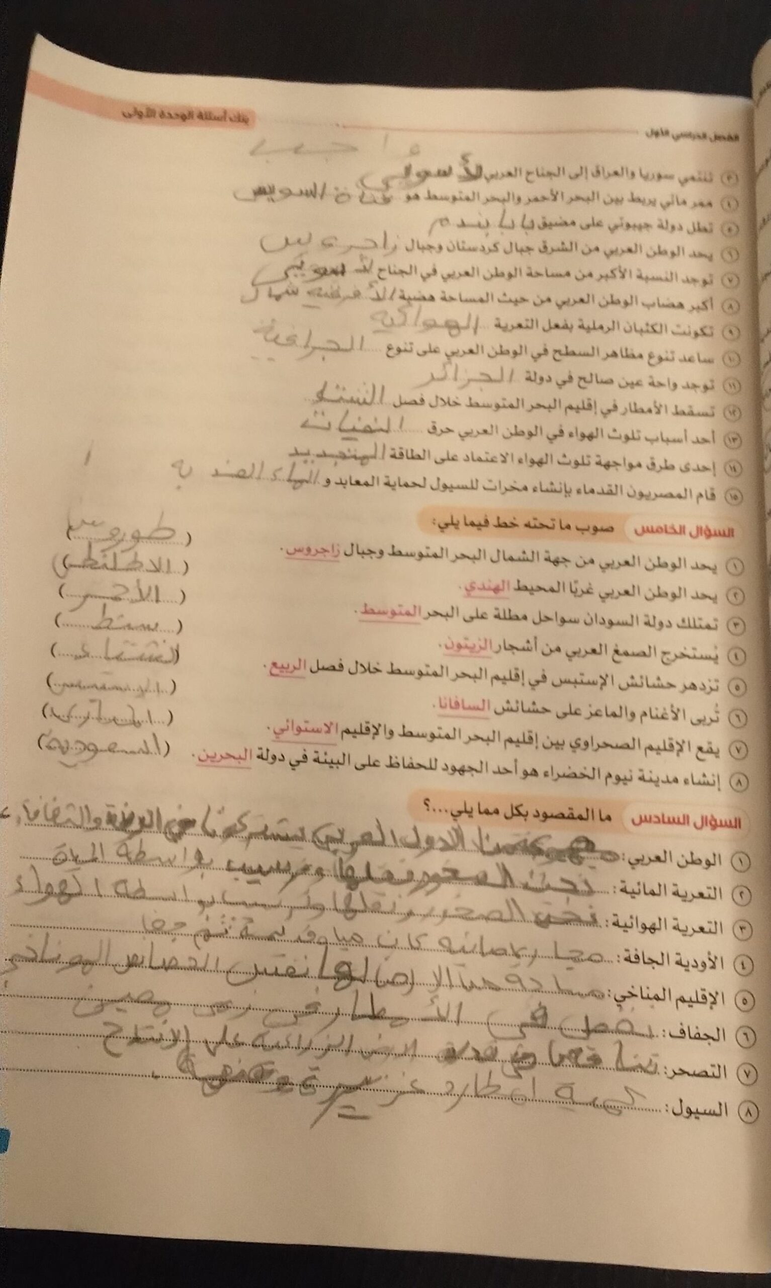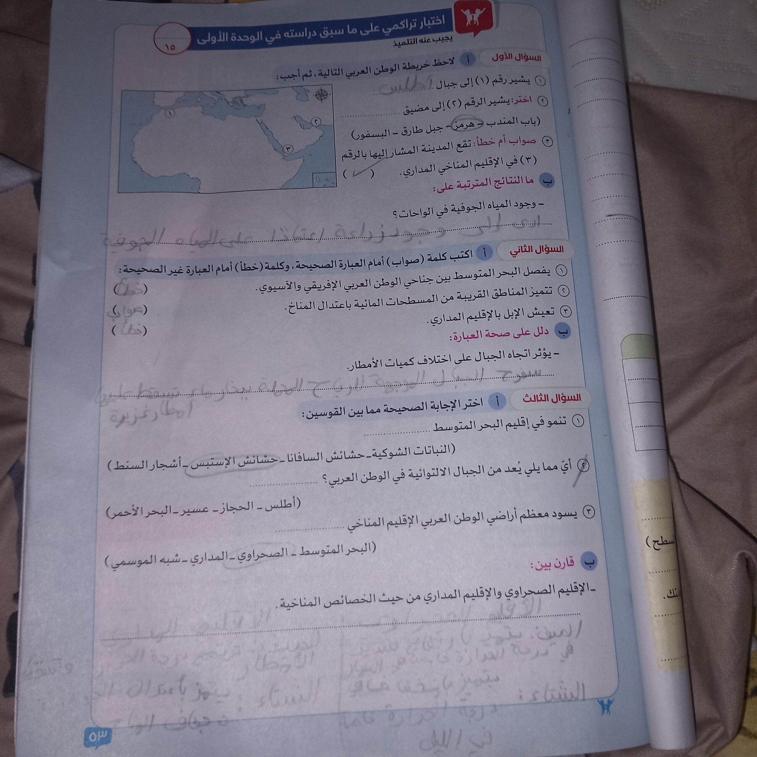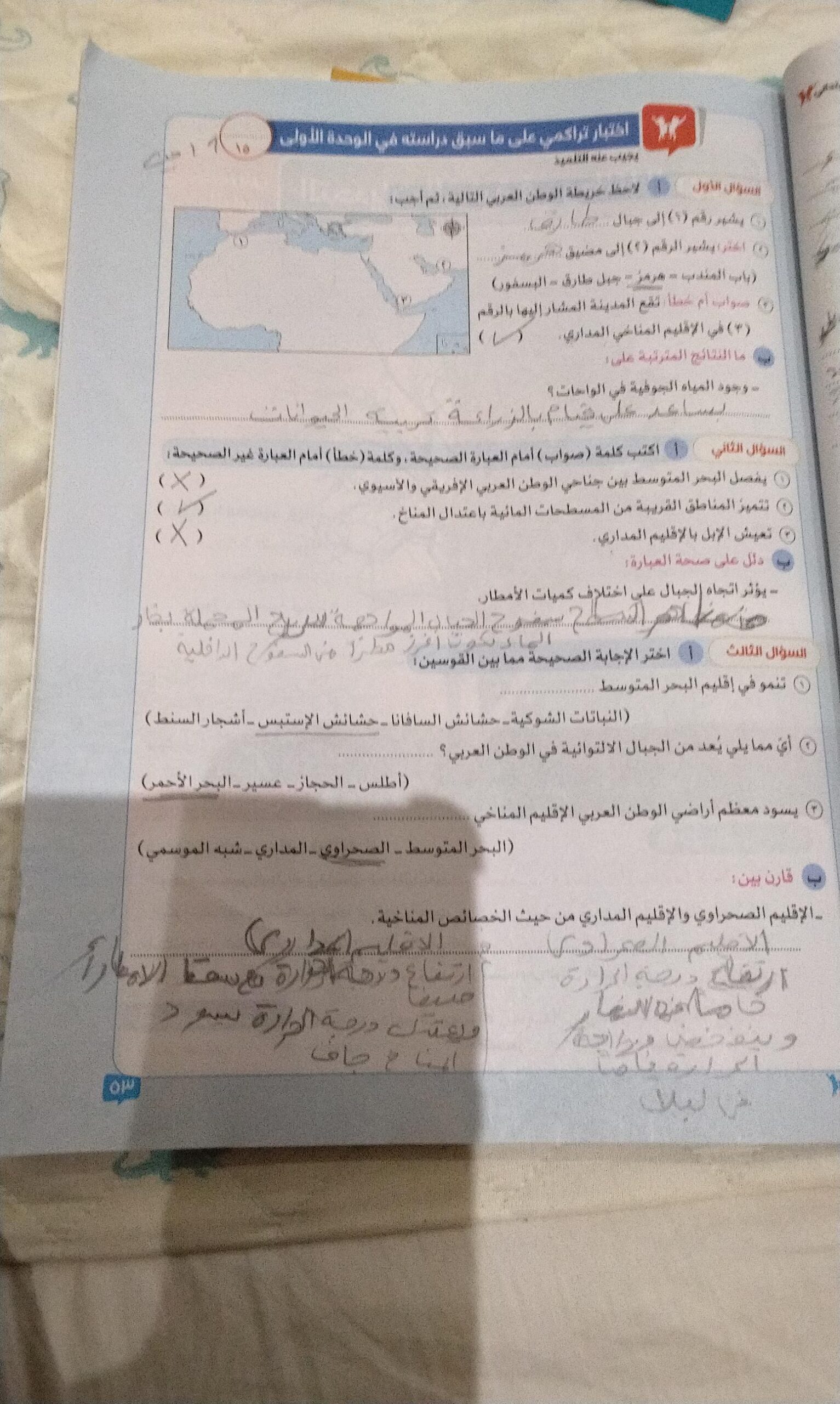 كملنا درس المناخ في الوطن العربي والواجب ص 50 و51