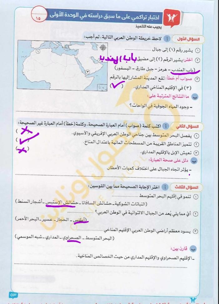 حلينا اليوم تدريبات علي درسس المناخ والواجب التراكمي ص 53