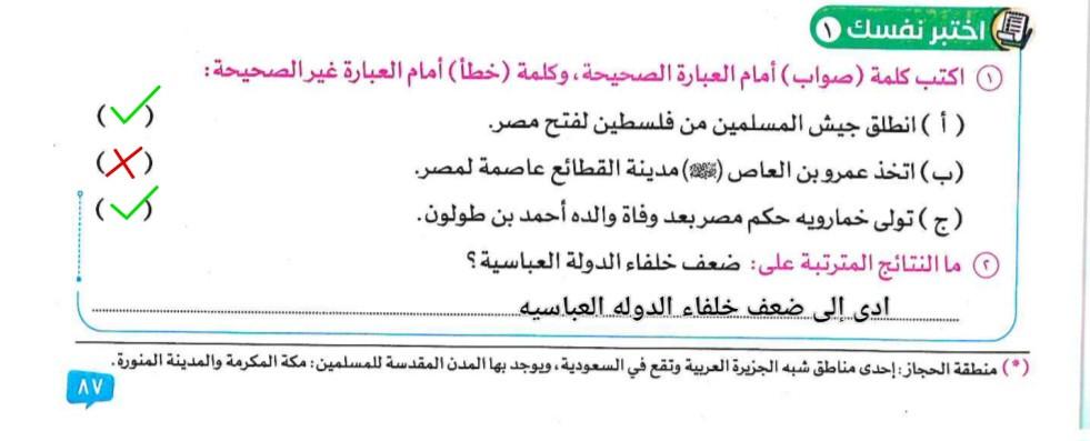 اخدنا اليوم الجزء الاول من مصر والدول المستقله وقفنا عند اختبر نفسك 1