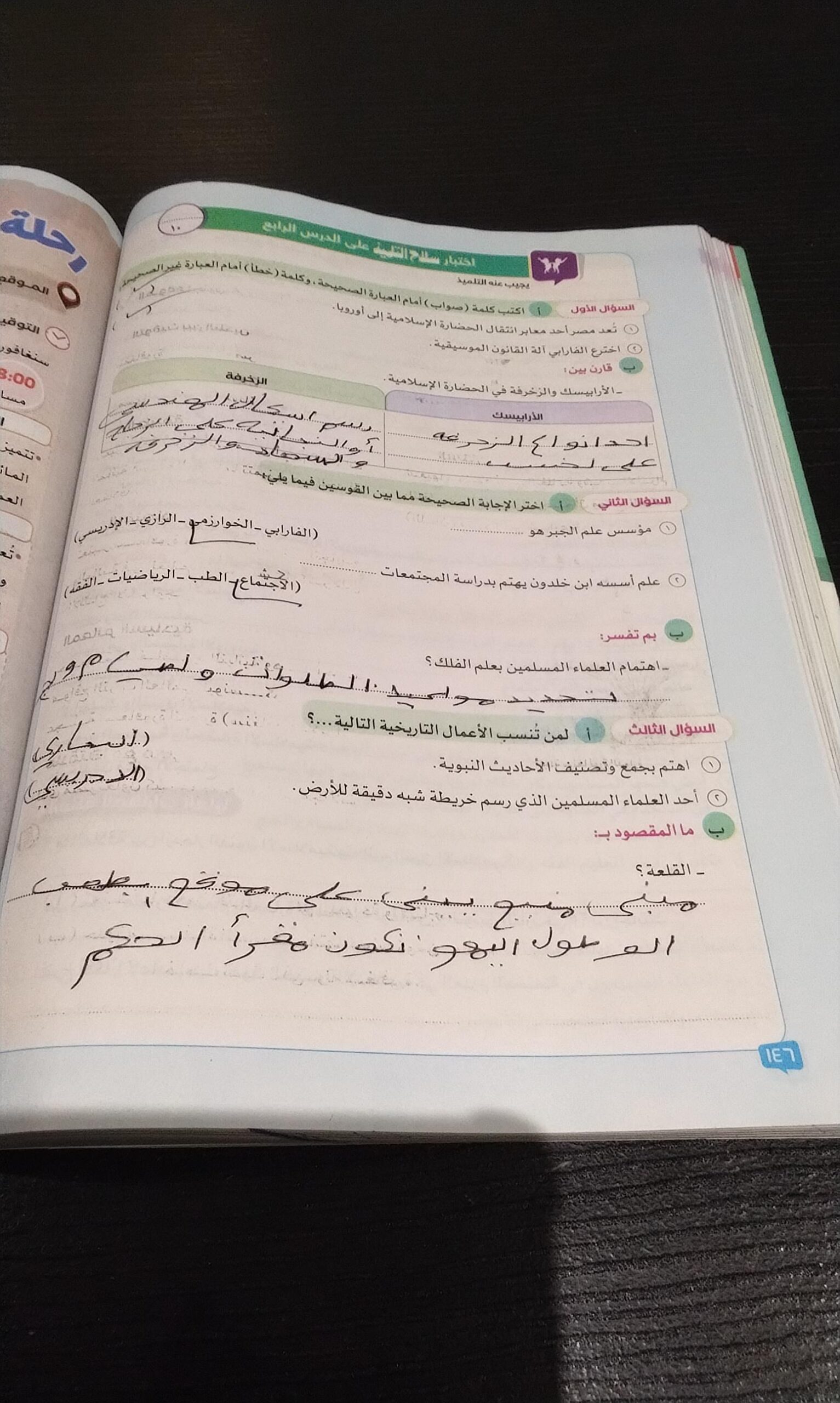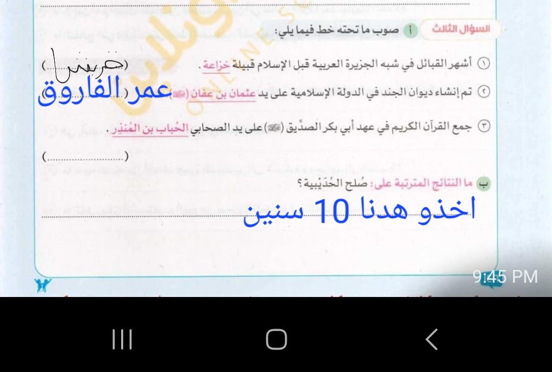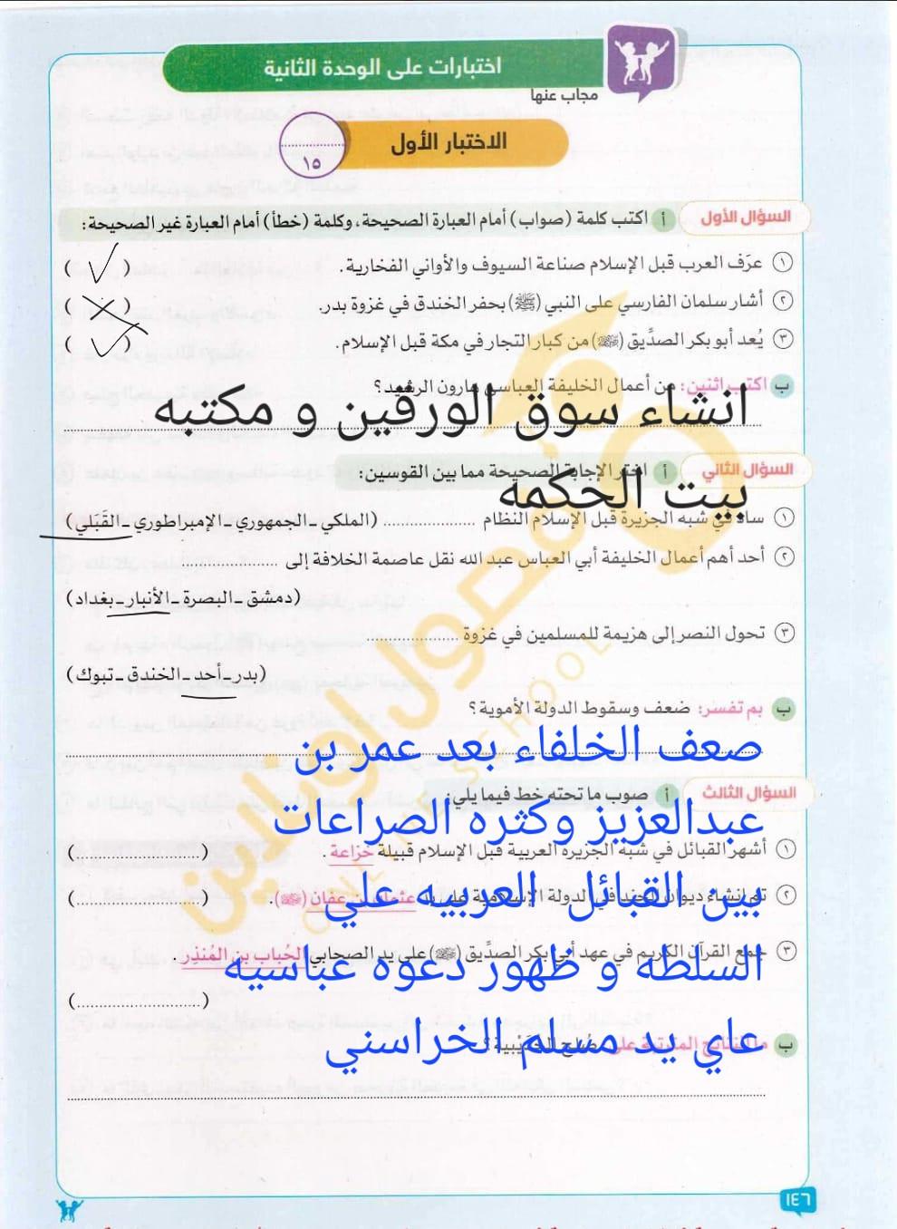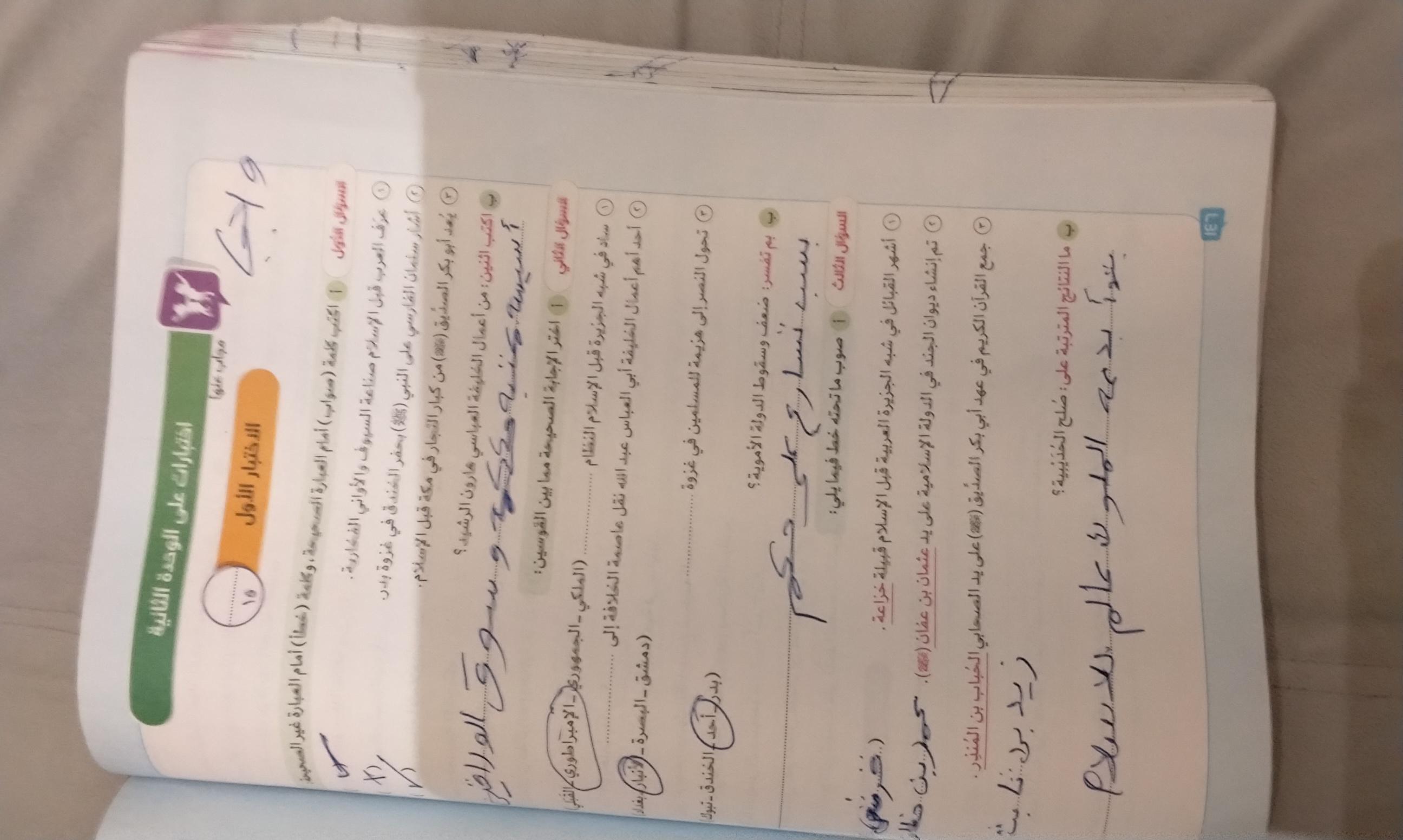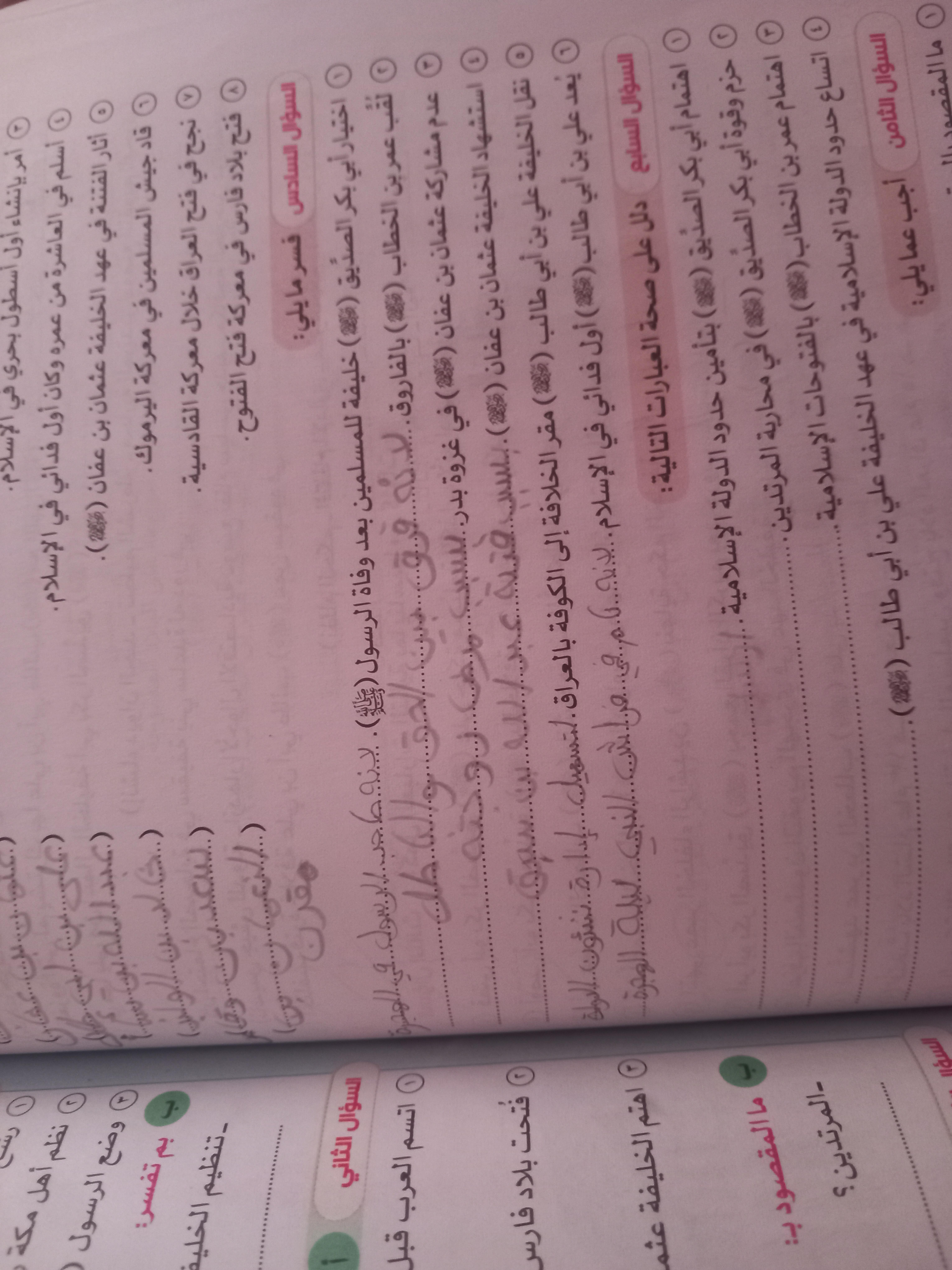 اخدنا اليوم الجزء الاول من مظاهر الحياه في الحضاره الاسلاميه ووقفنا عند الولاه ولا يوجد واجب نتقابل بعد العيد ان شاء الله كل سنه وانتوا طيبين