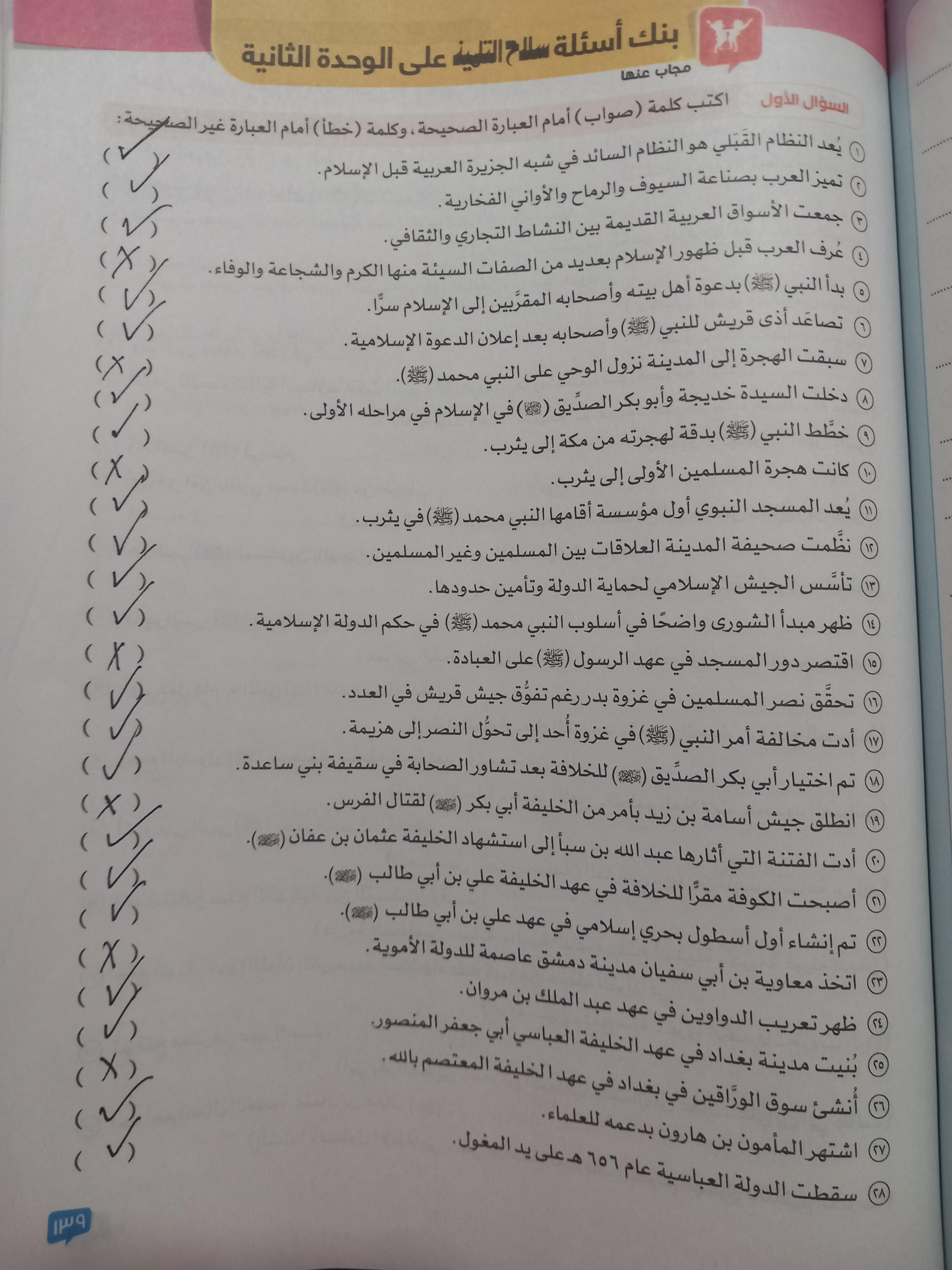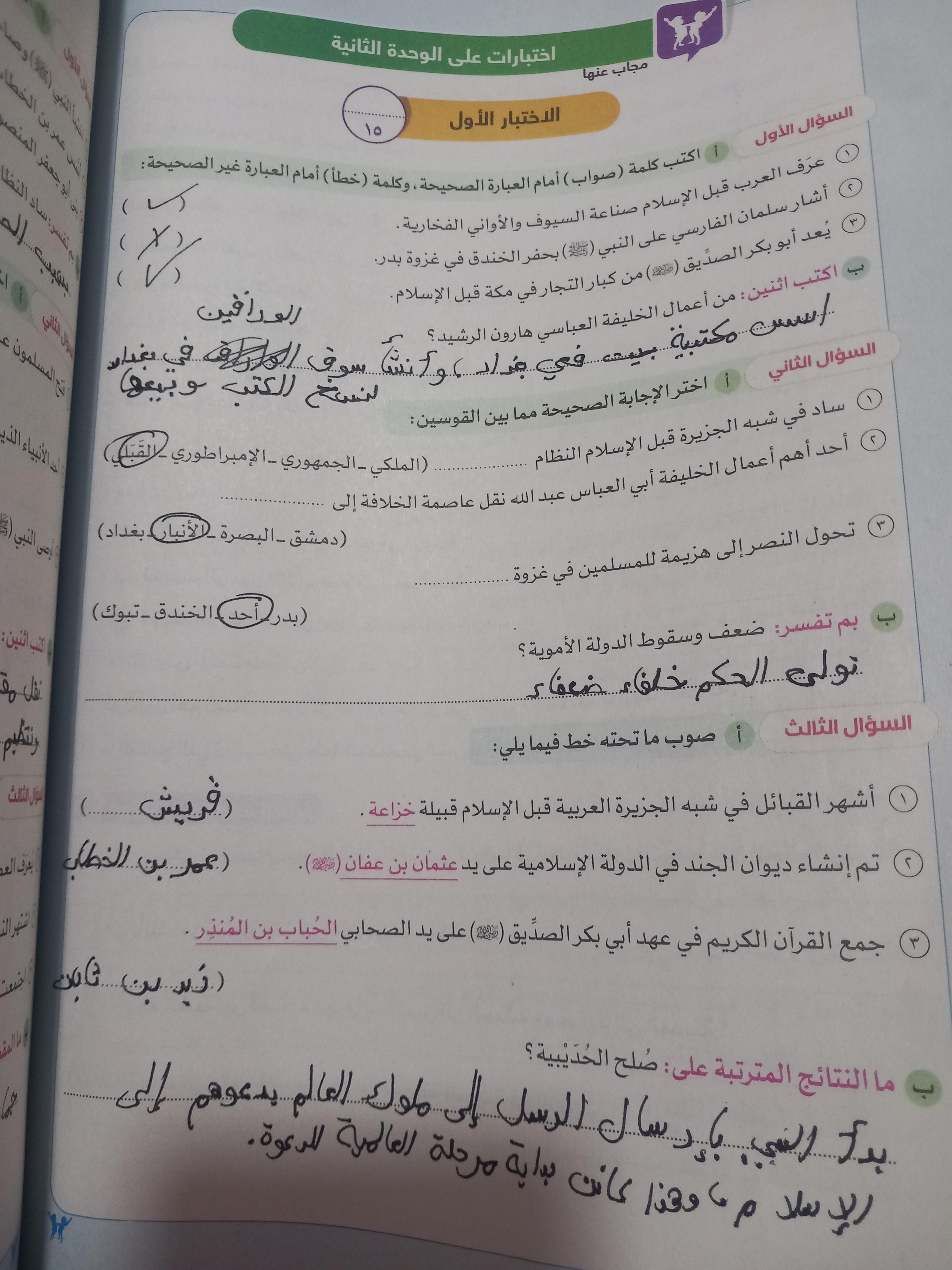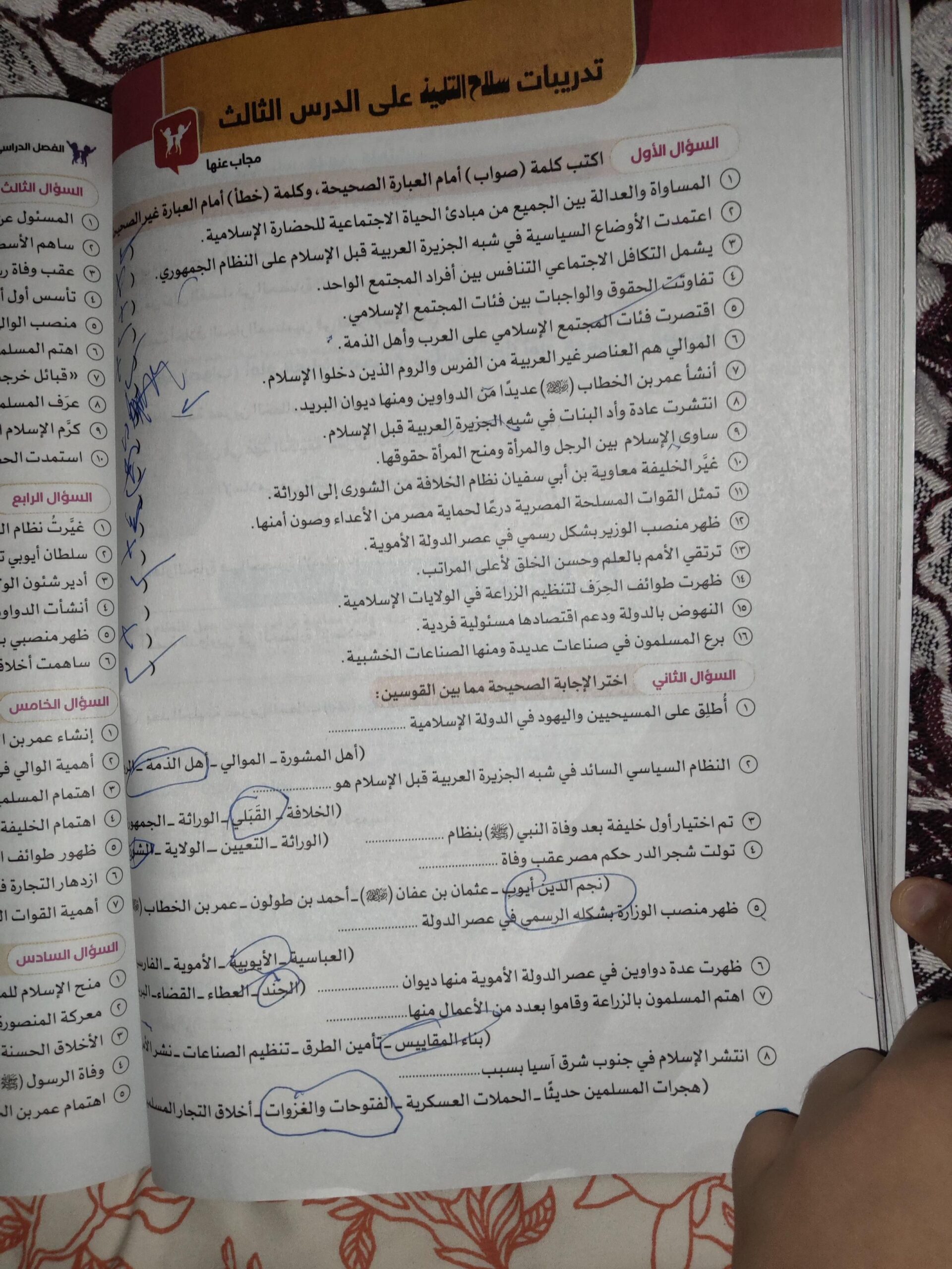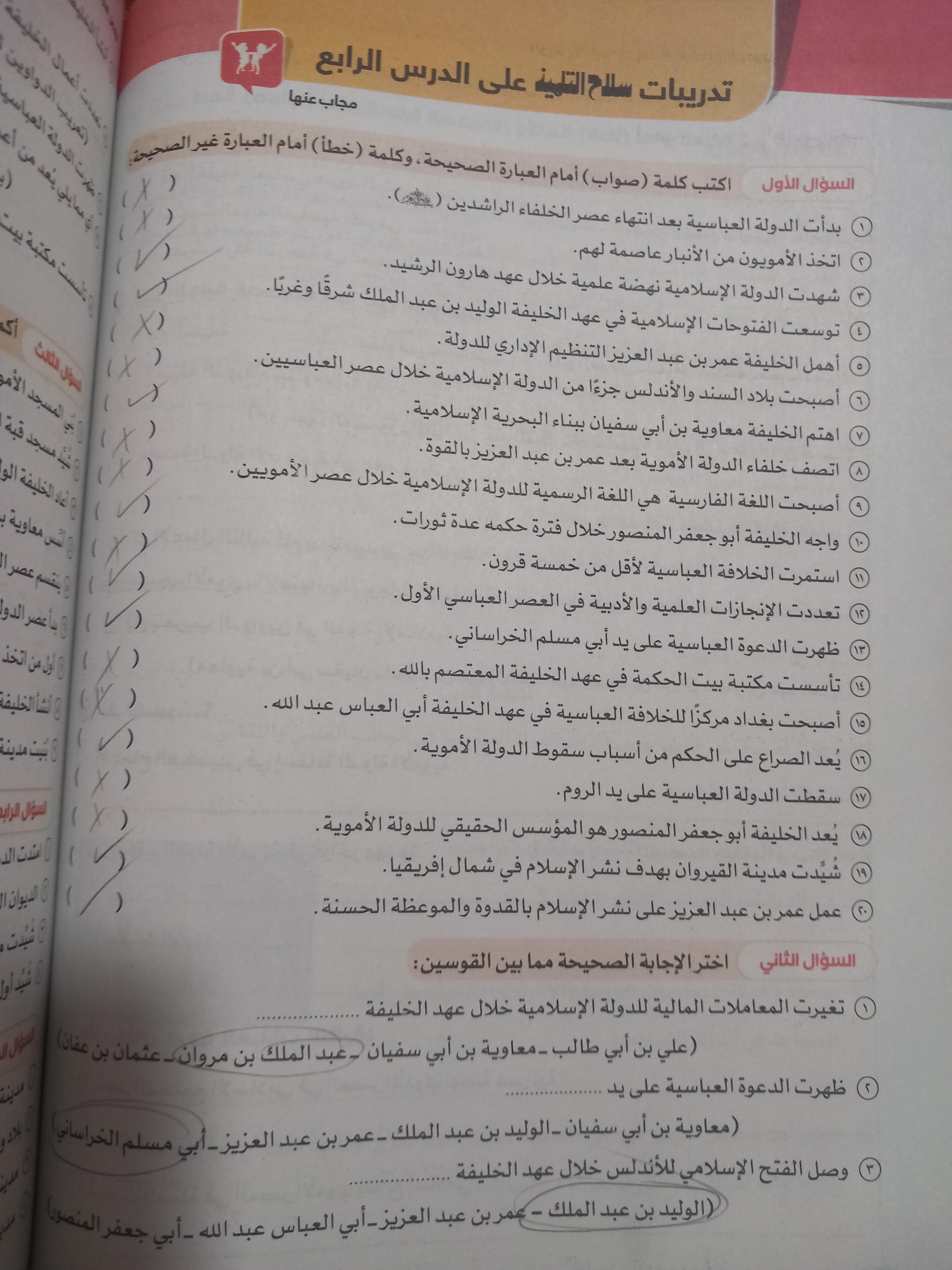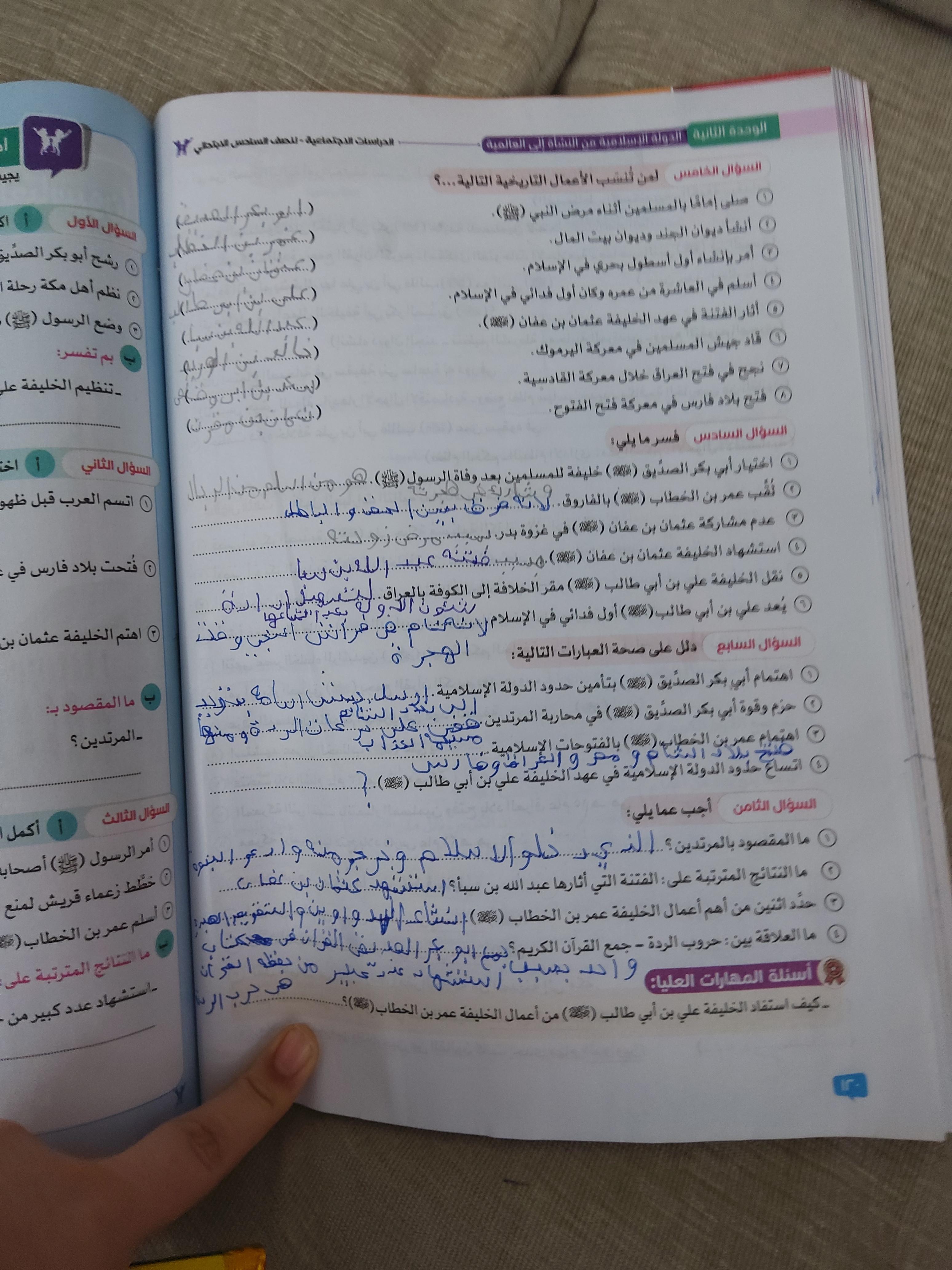 اخدنا اليوم الجزء الاول من مظاهر الحياه في الحضاره الاسلاميه ووقفنا عند الولاه ولا يوجد واجب نتقابل بعد العيد ان شاء الله كل سنه وانتوا طيبين