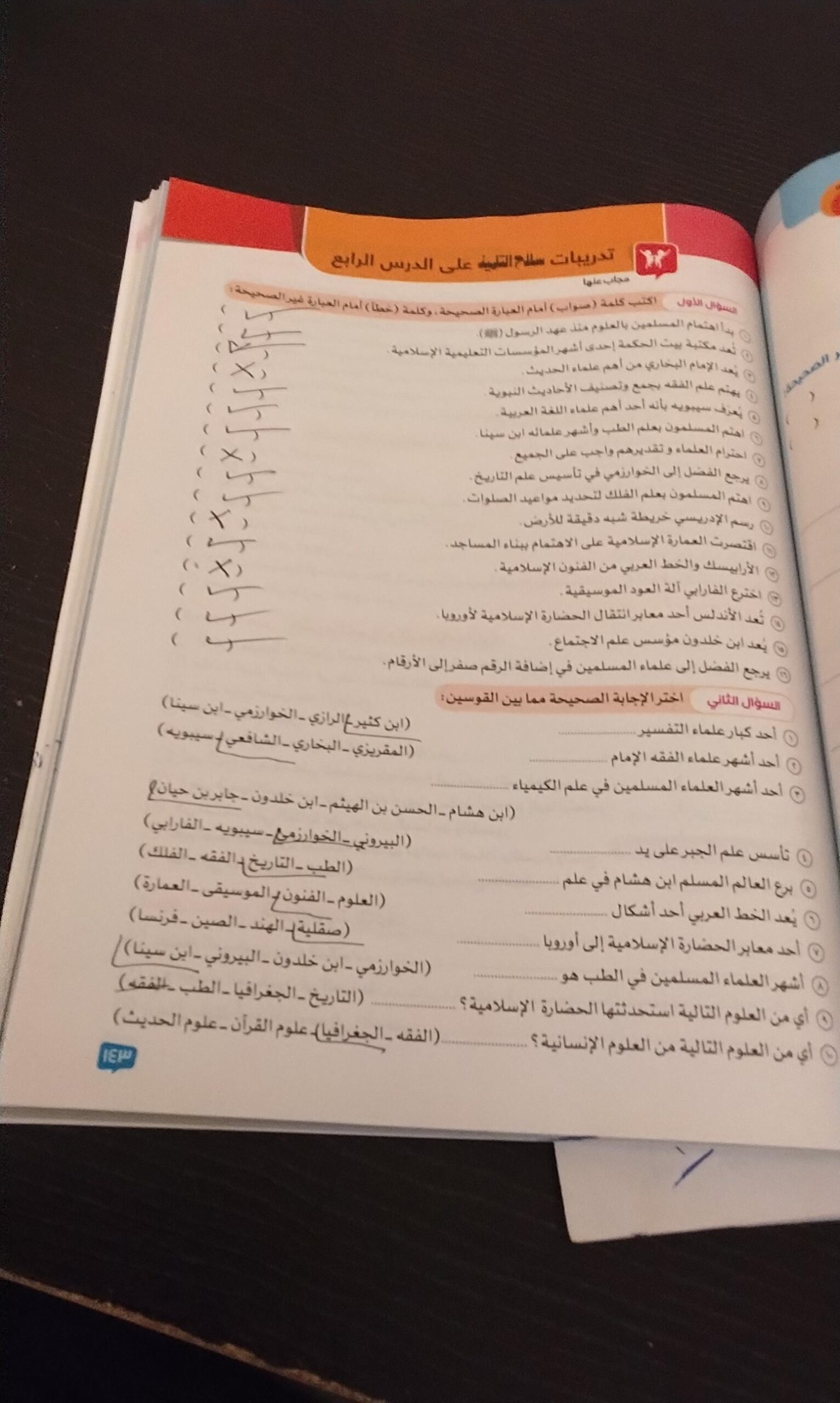 اخدنا اليوم الحصتين دراسات وحلينا تدريبات الدرس التاني والواجب ص 39 اختبار عالدرس