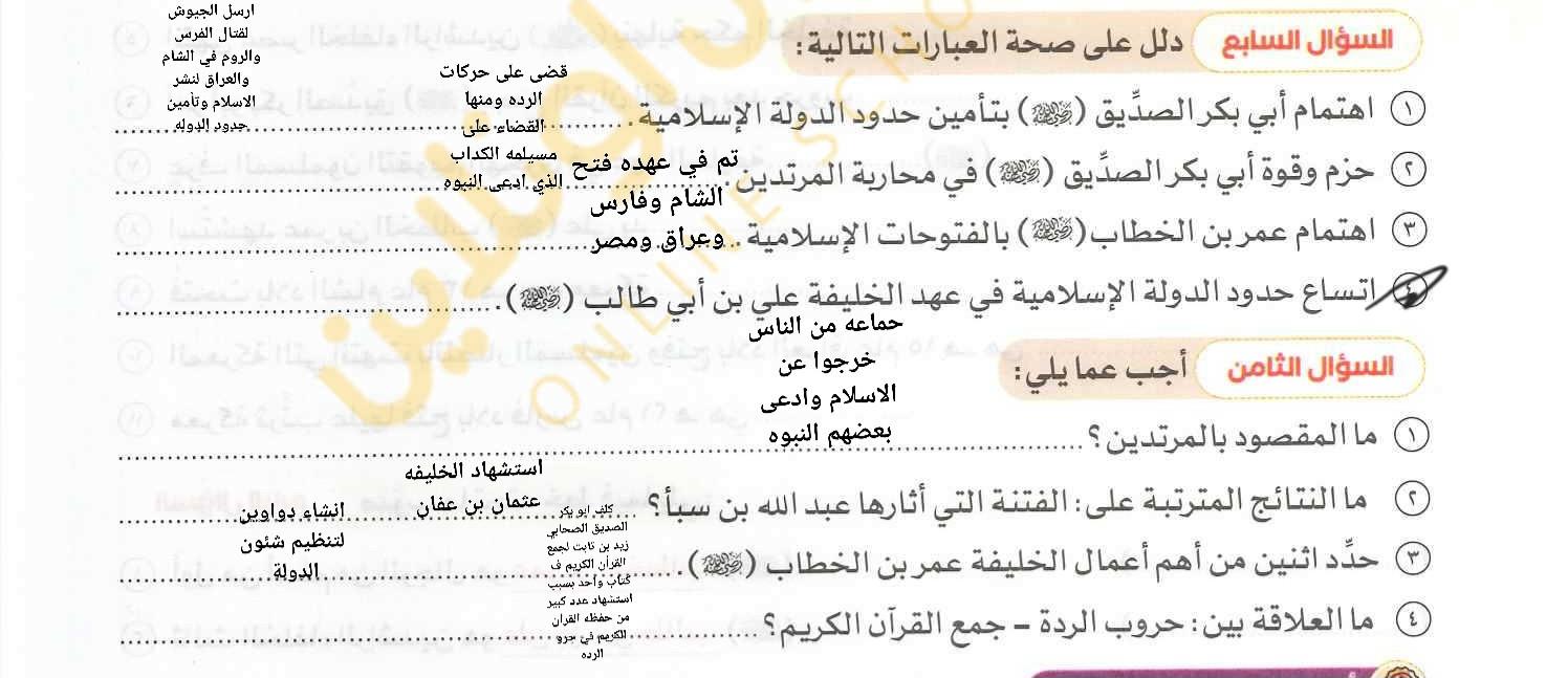 اخدنا اليوم الجزء الاول من الدرس التالت انجازات الخلفاء الراشدين ووقفنا عند ابو بكر الصديق رضي الله عنه