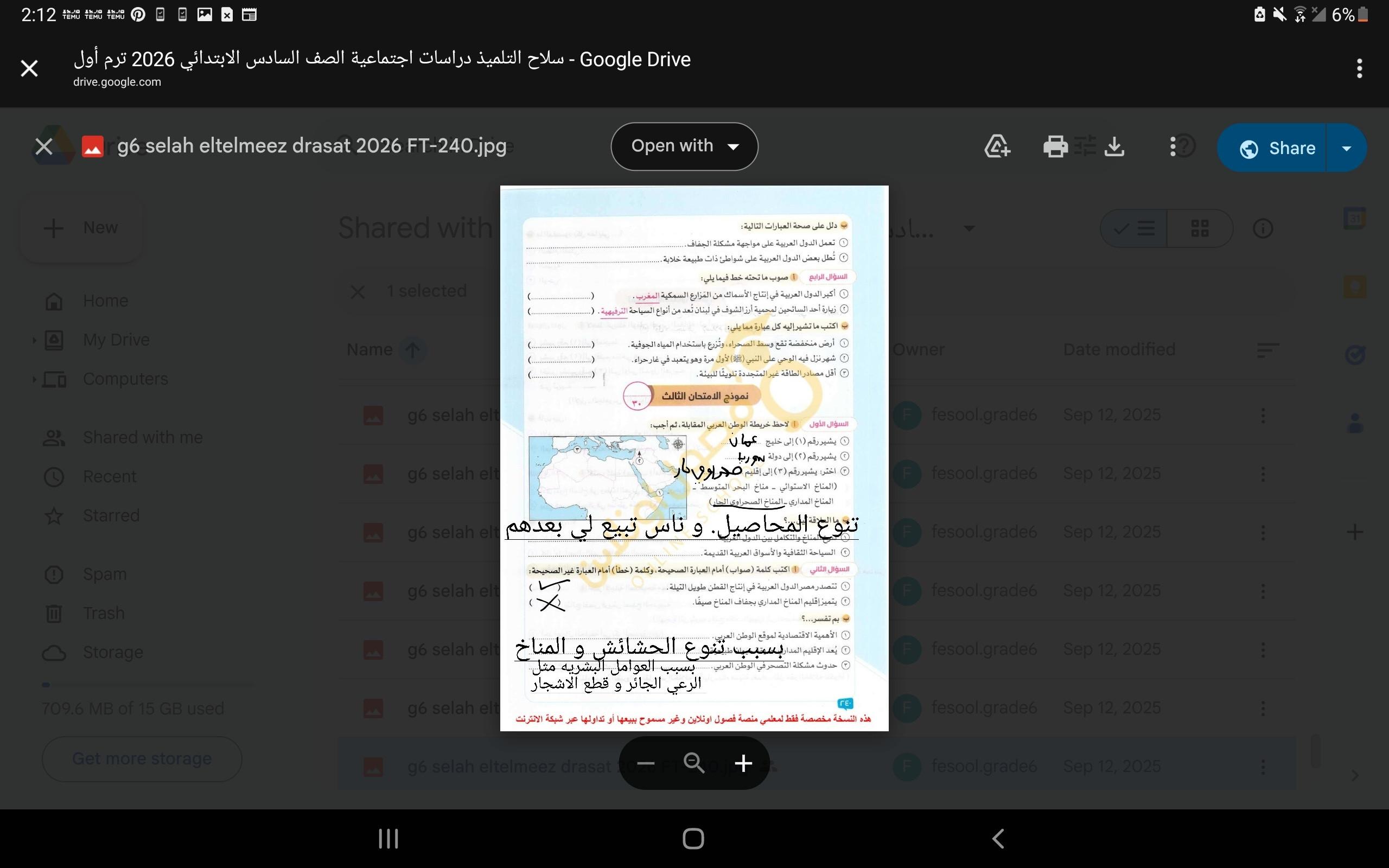 اخدنا اليوم المشكلات البيئيه ف الوطن العربي نحفظها كويس وكيفيه مواجهتها ولا يوجد واجب الا حفظ الدرس ونكمل الجزء الباقي الحصه الجايه ان شاء الله